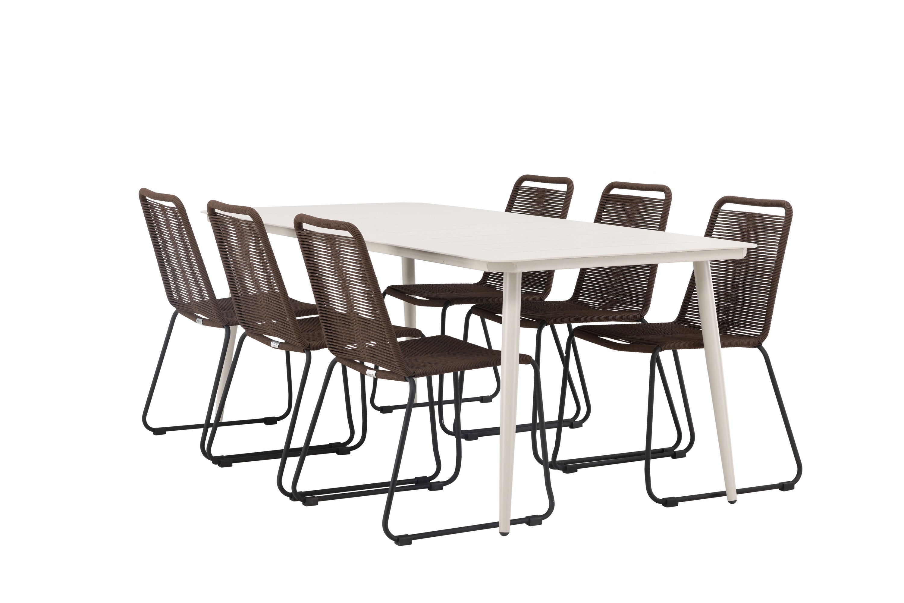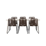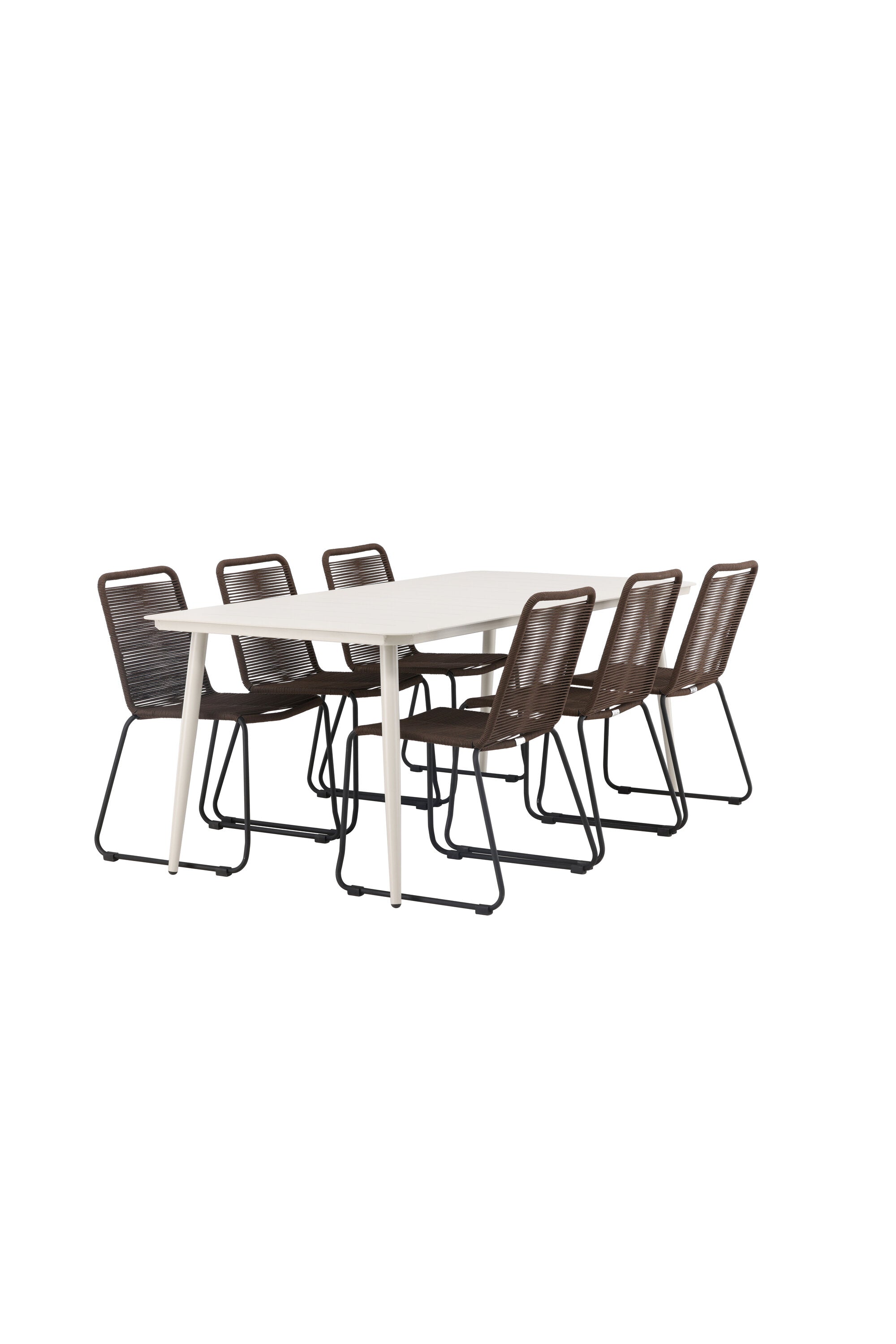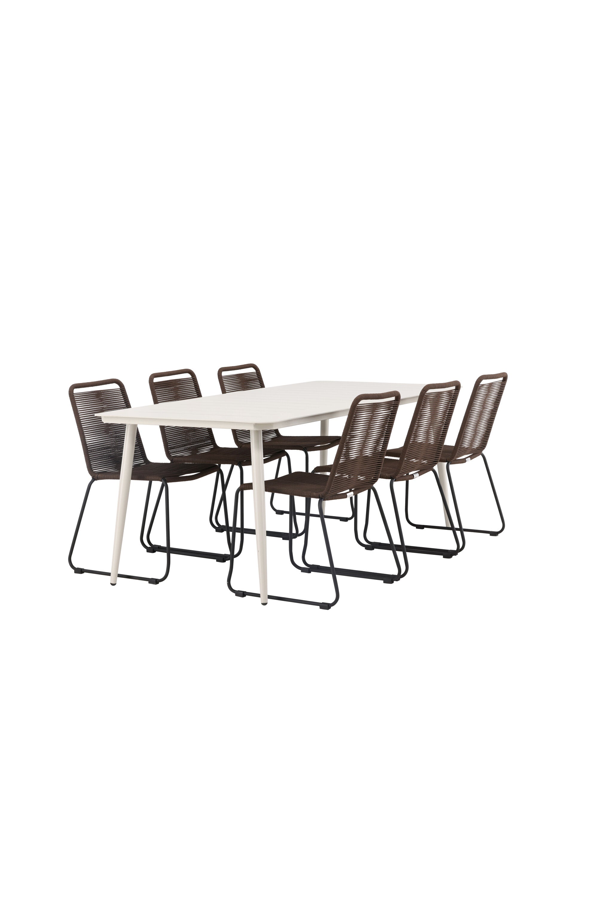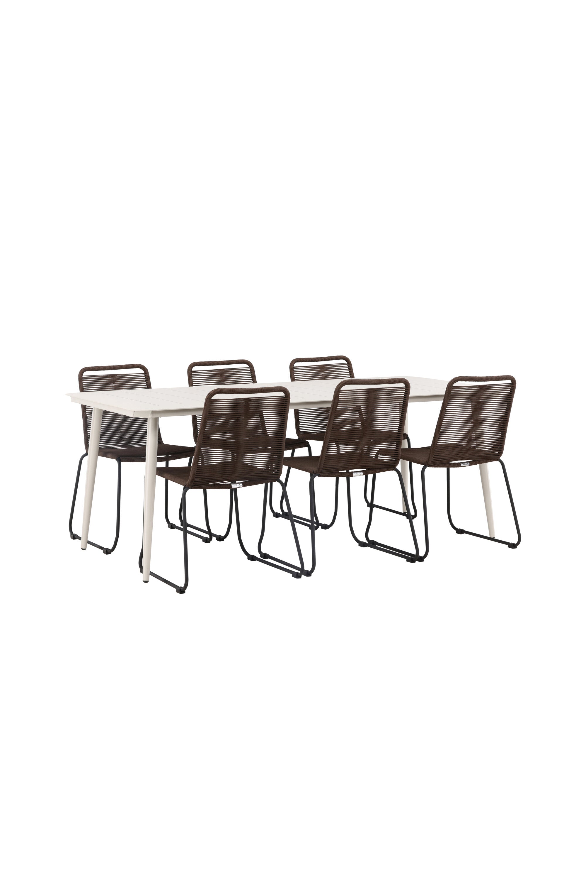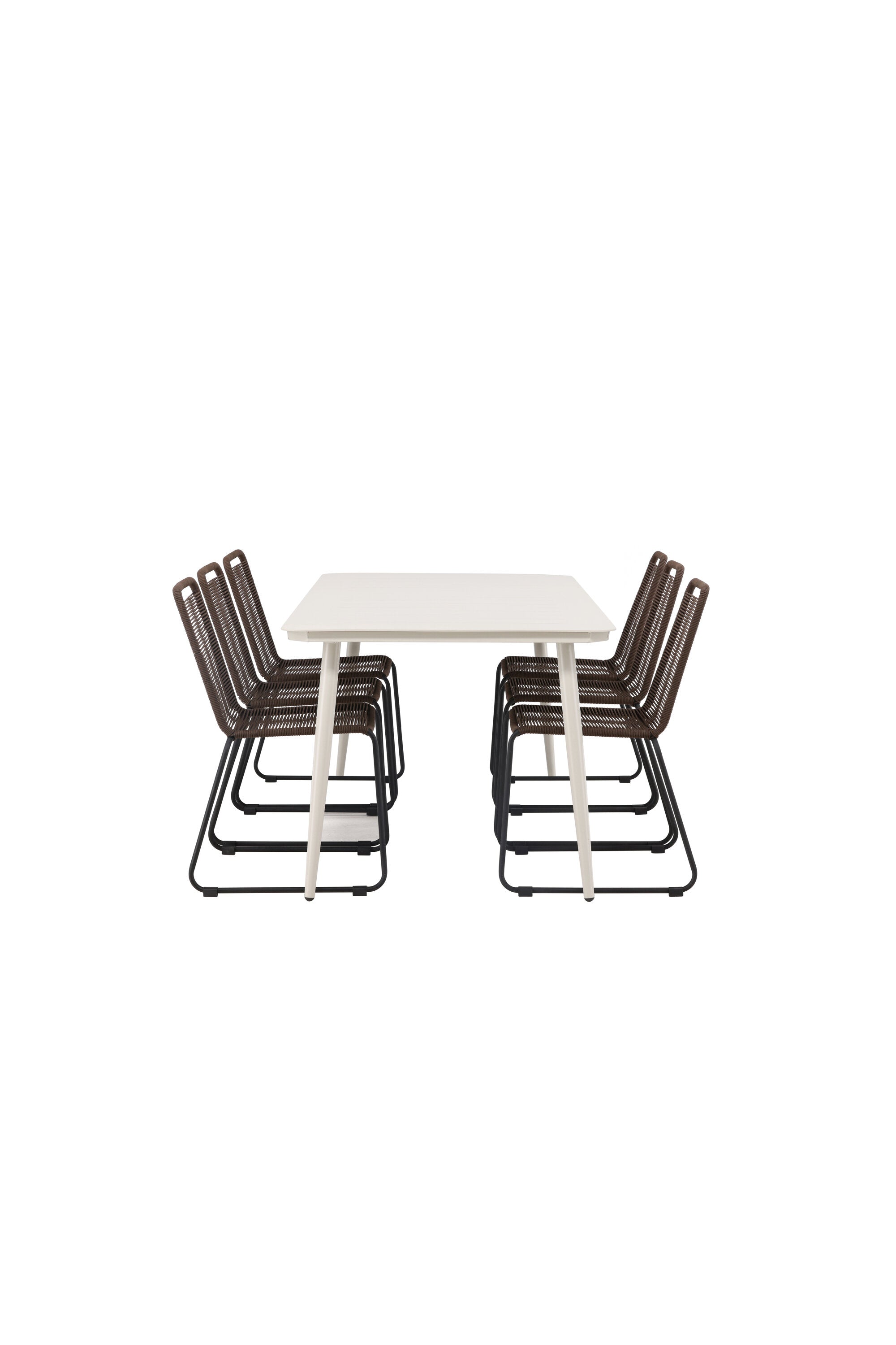 Lina Jídelní stůl - Béžová - 200*90 +Lindos Jídelní židle Hliník - Černá / _6
