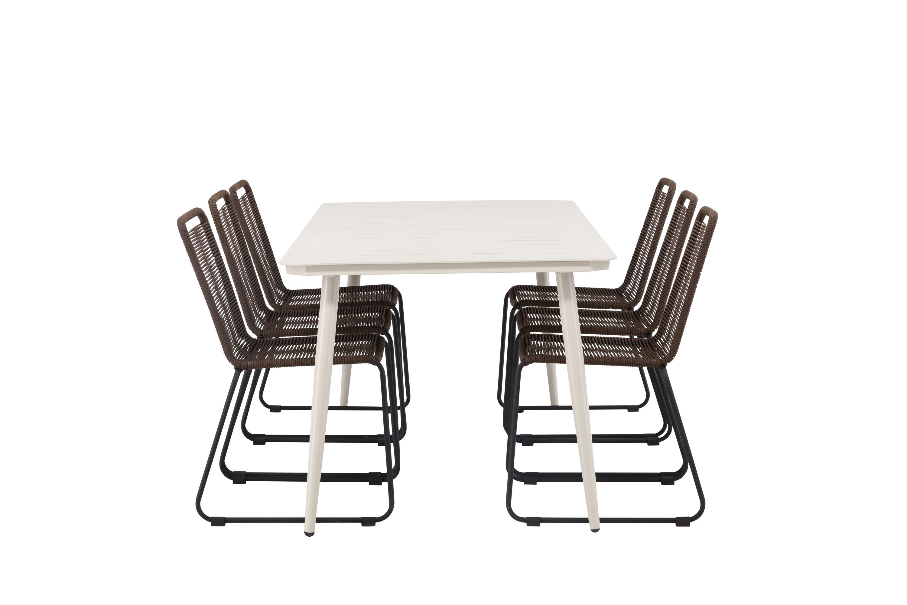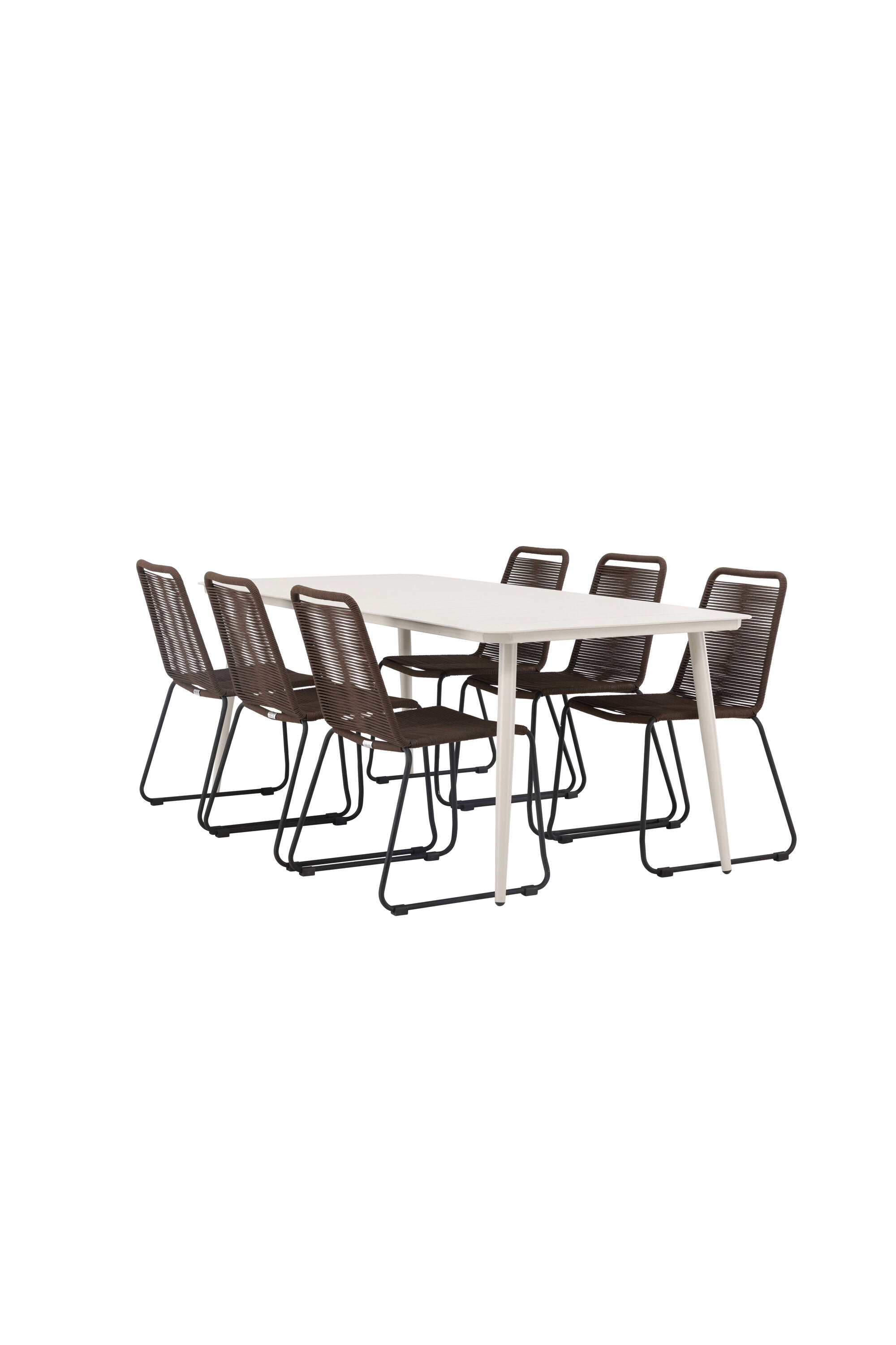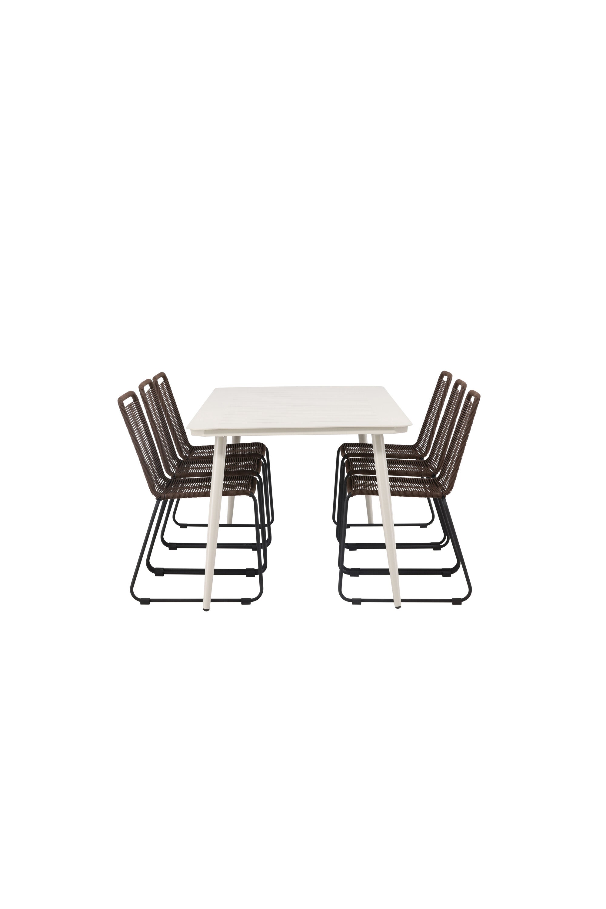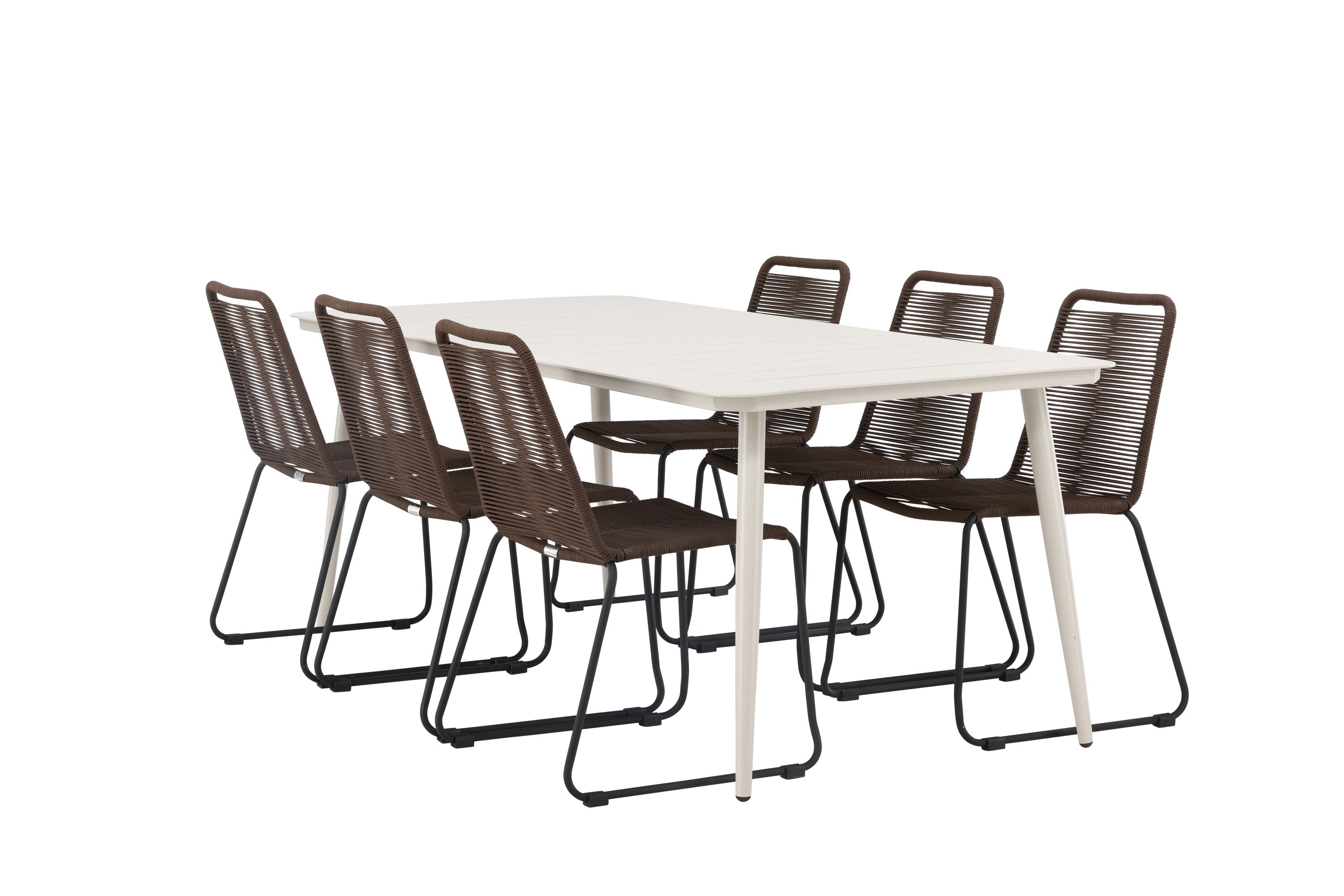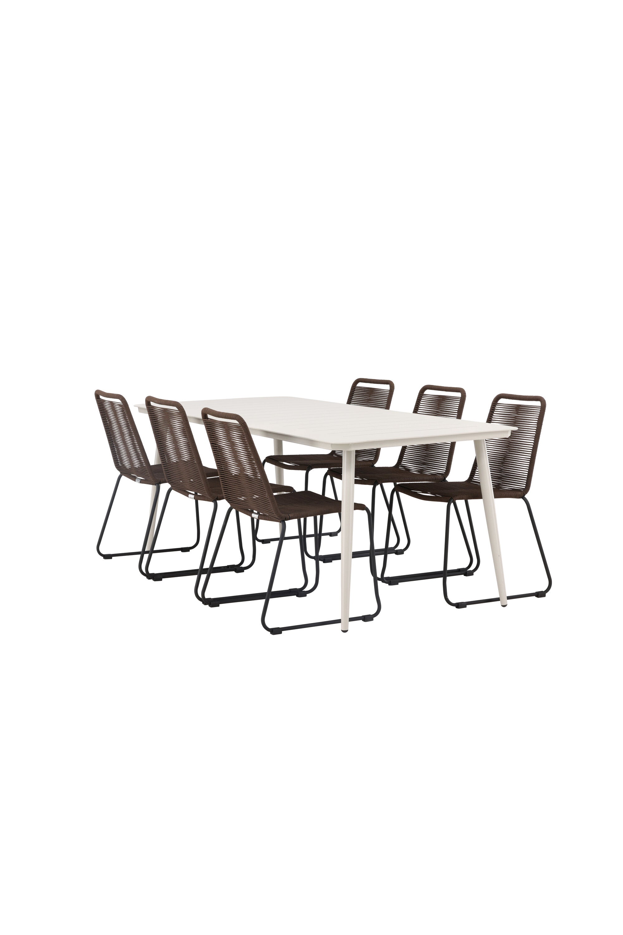 Lina Jídelní stůl - Béžová - 200*90 +Lindos Jídelní židle Hliník - Černá / _6