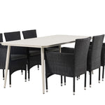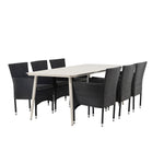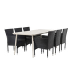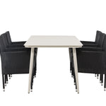 Lina Jídelní stůl - Béžová - 200*90 + Malina Jídelní židle Alumnium - Černá / Proutí _6