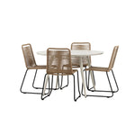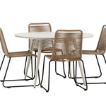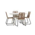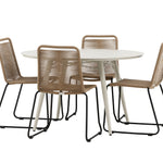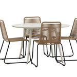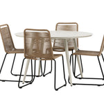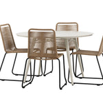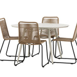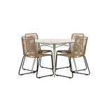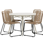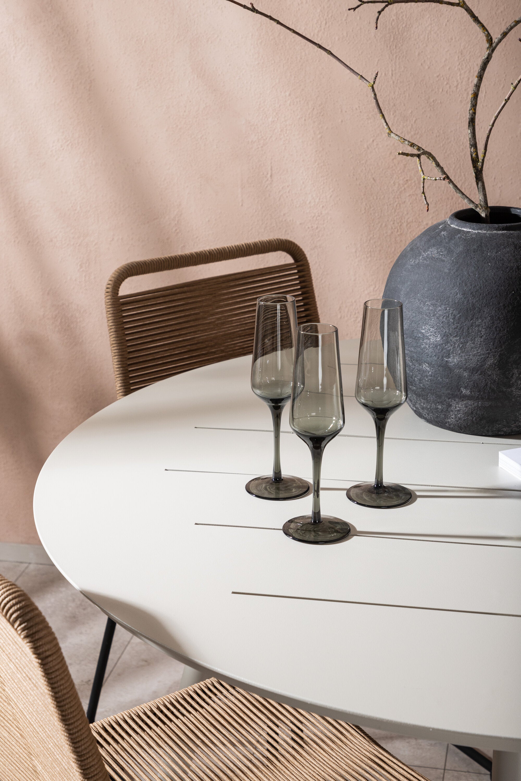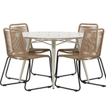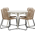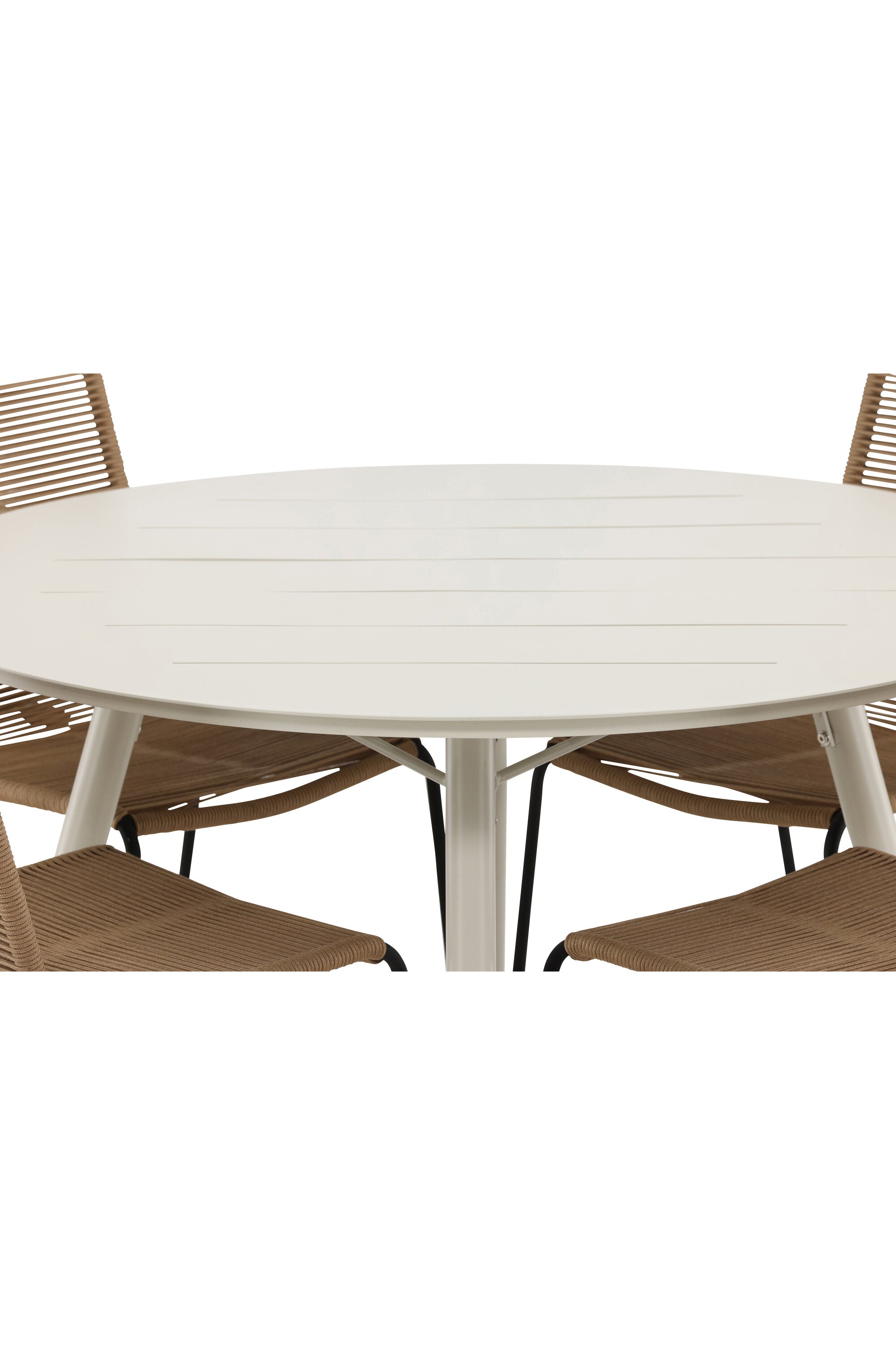 Lina Jídelní stůl - Béžový - Kulatý 120 cm - Stohovací židle Lindos - Black Alu / Latte Rope_4