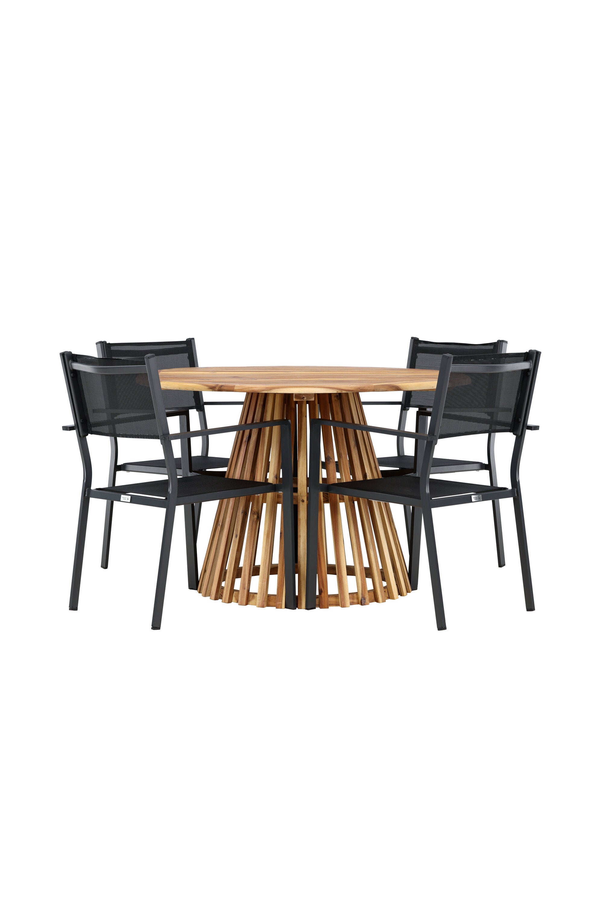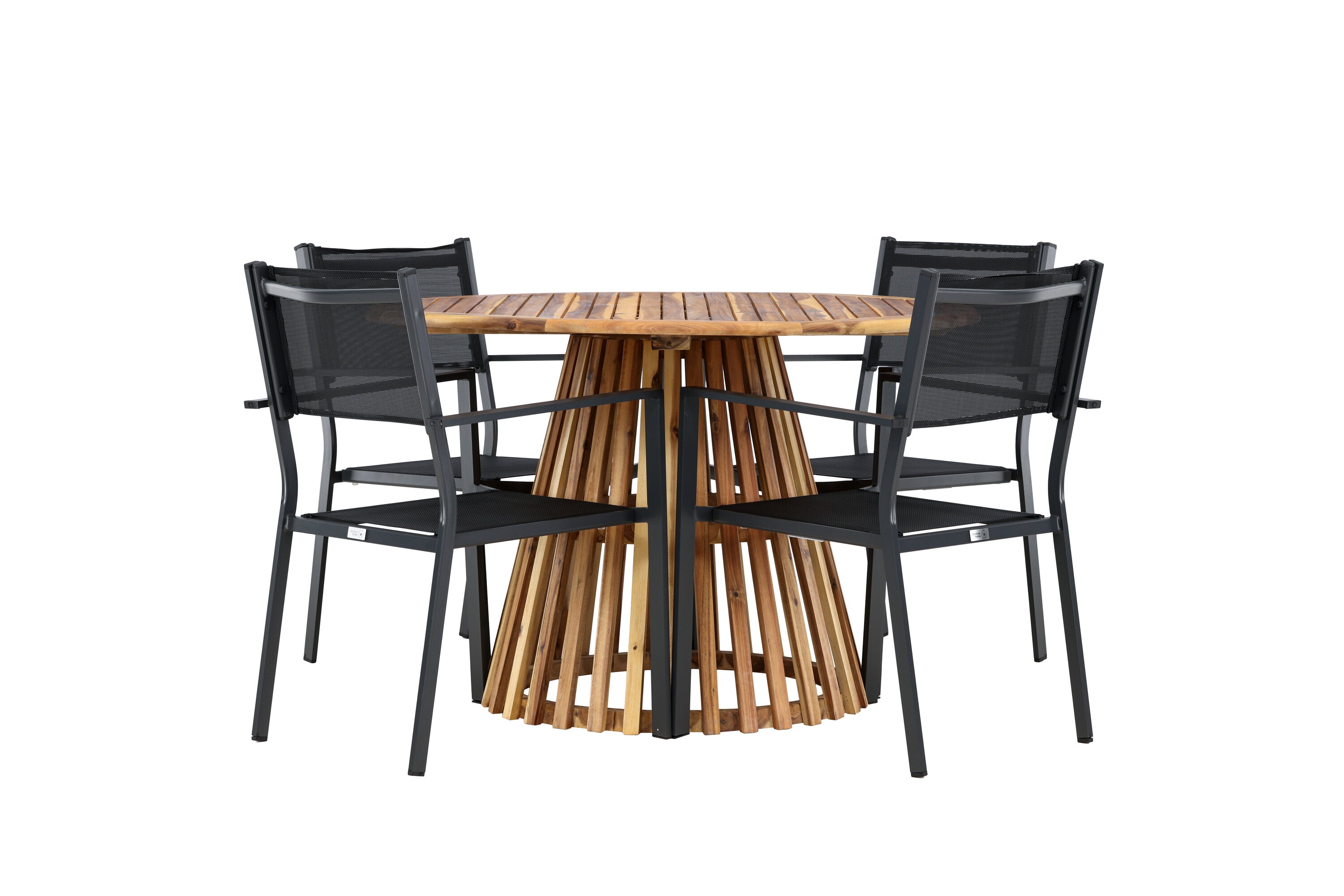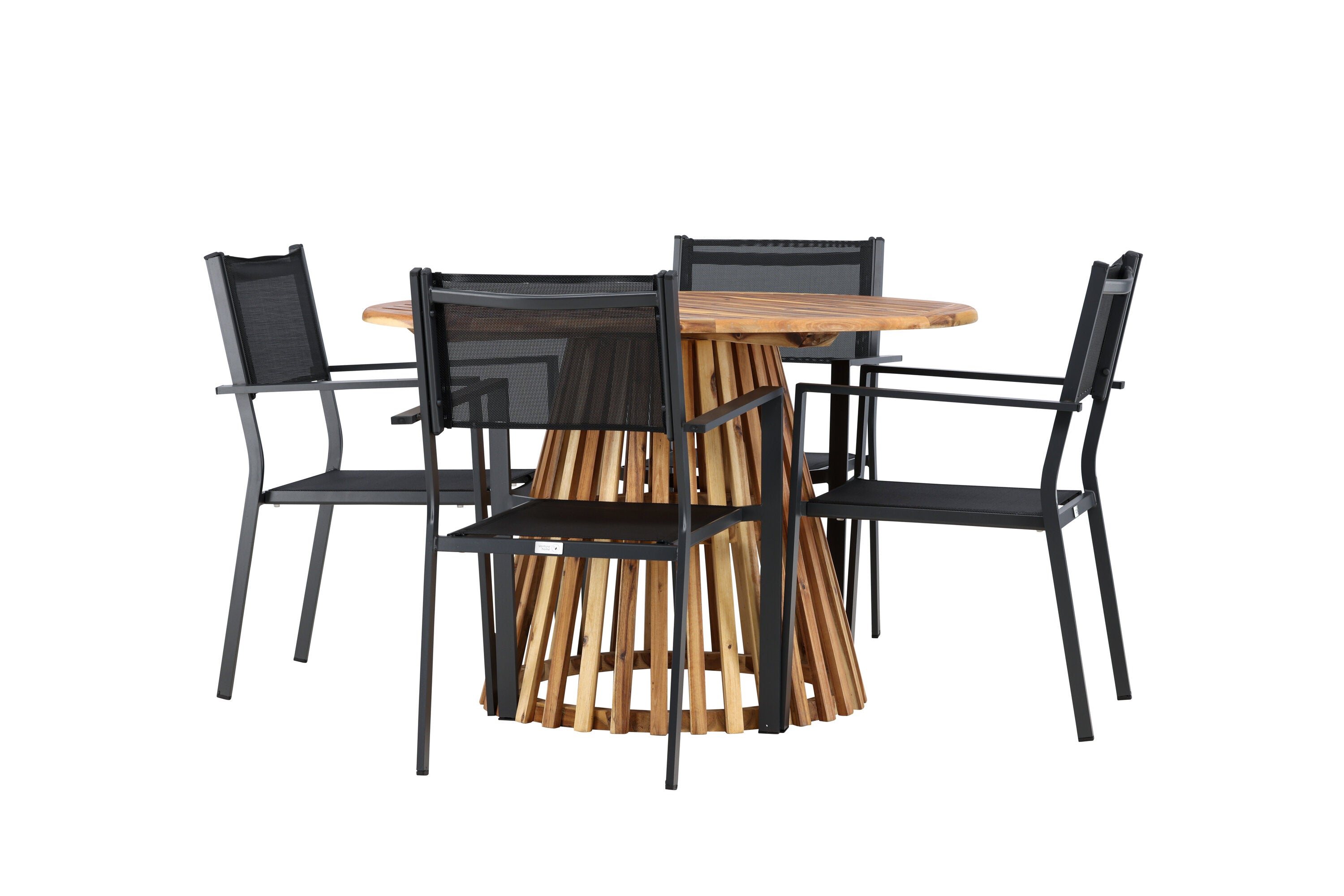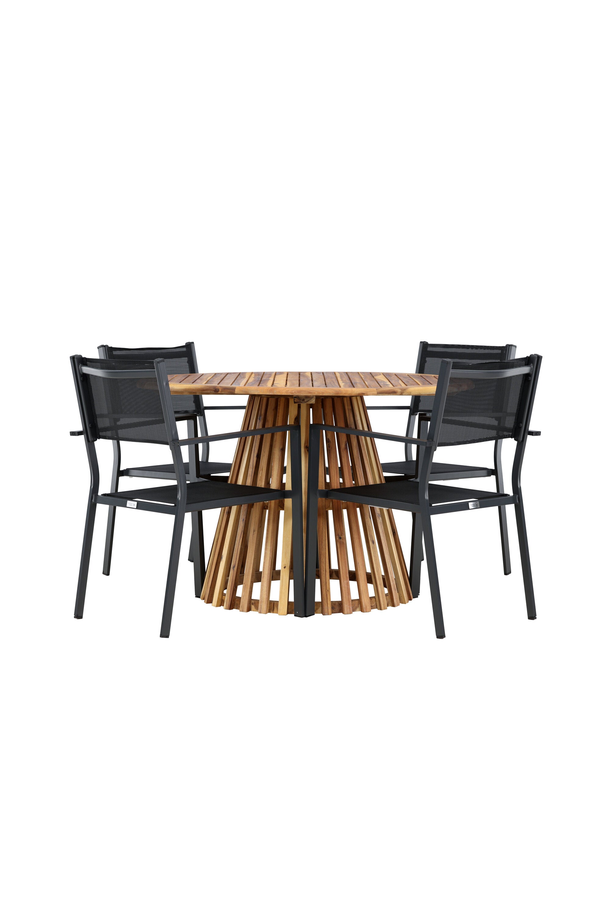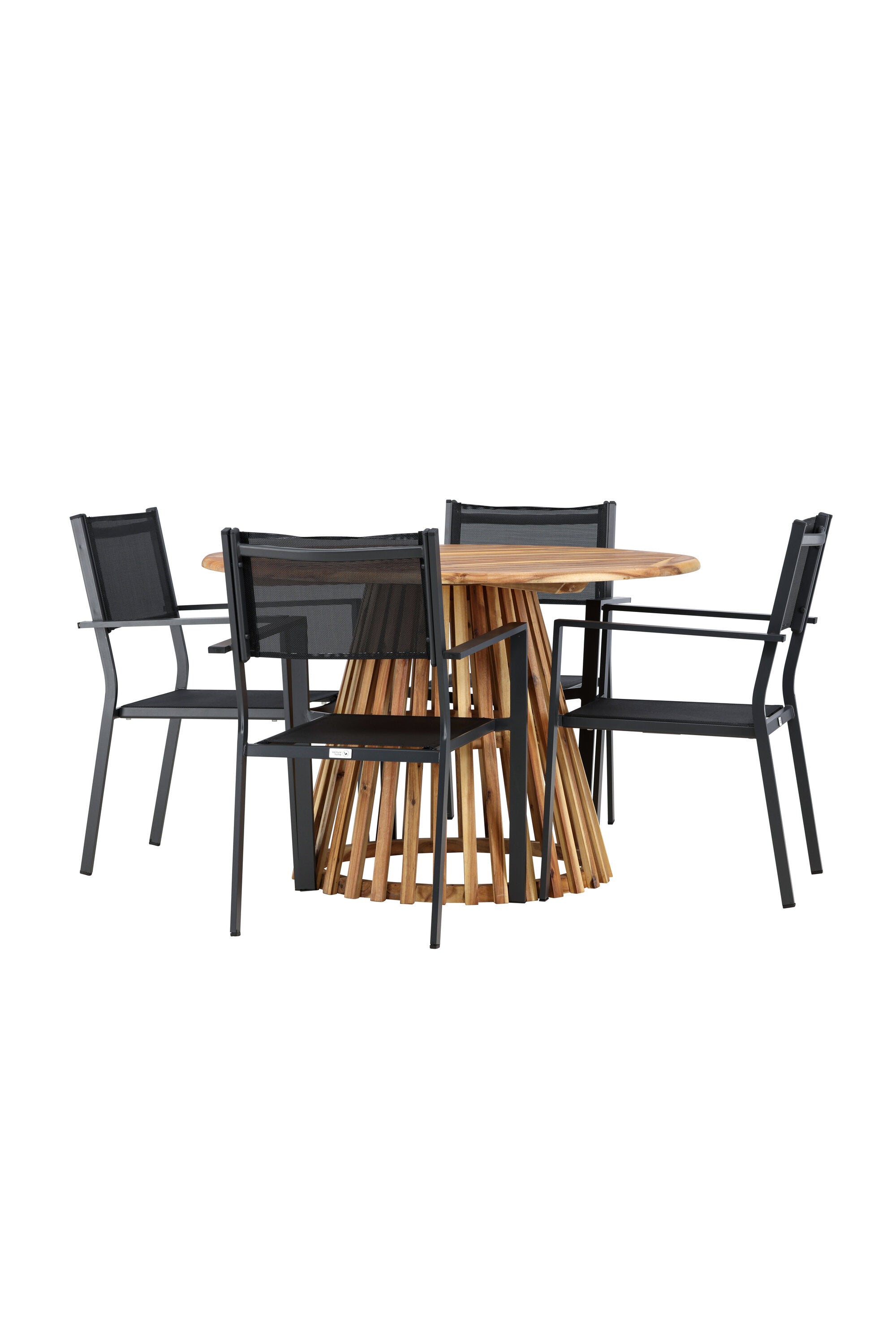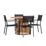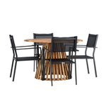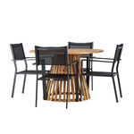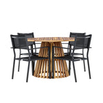 Lumpur Jídelní stůl Akácie - Teaklook / Kulatý ø110**75 + Stohovací židle Copacabana - Černá/Černá - Ersätter 4131-408 _4