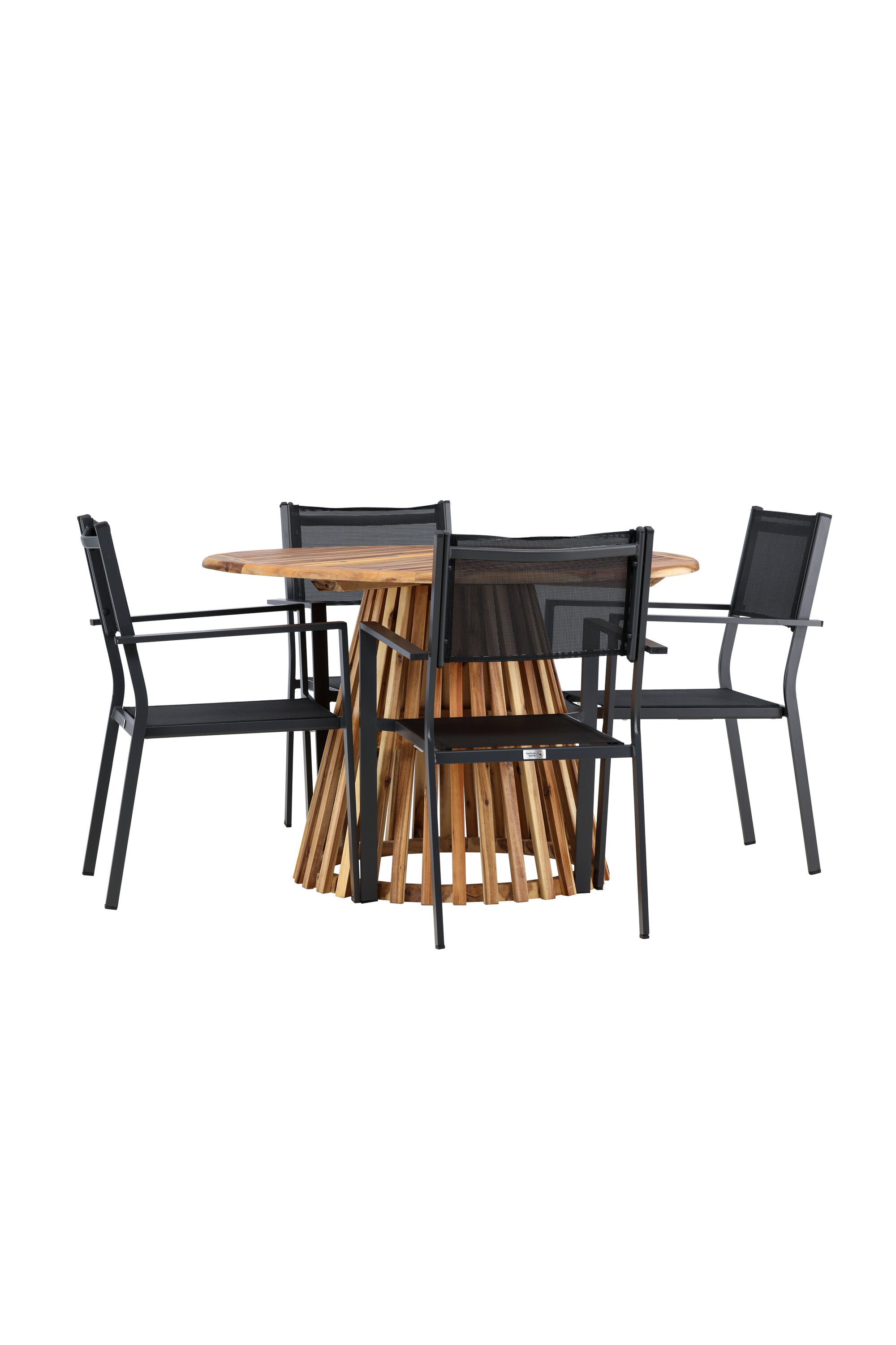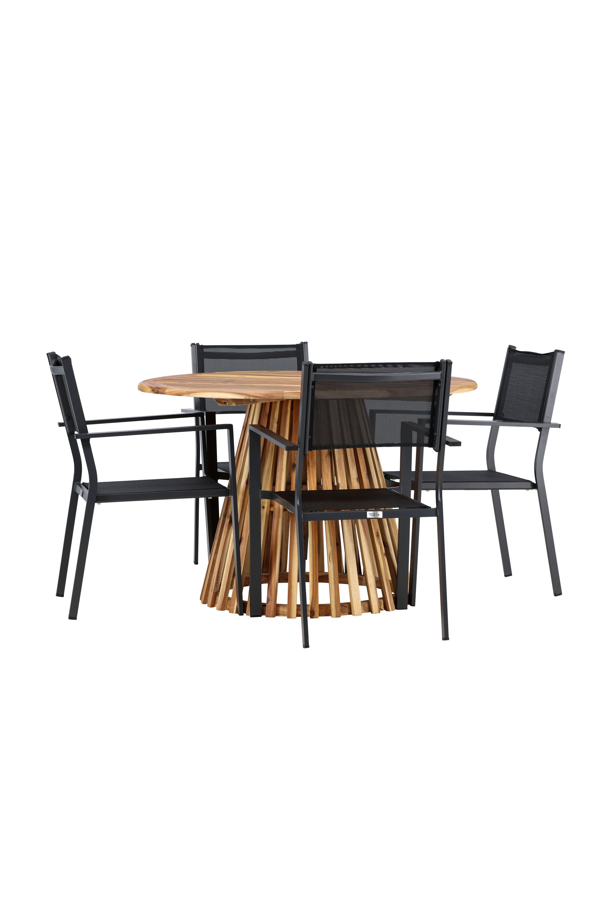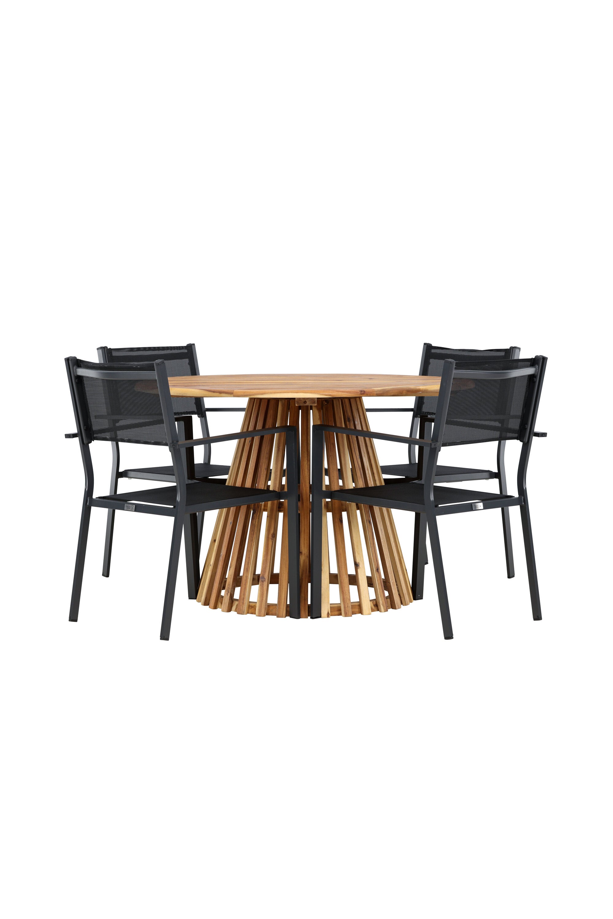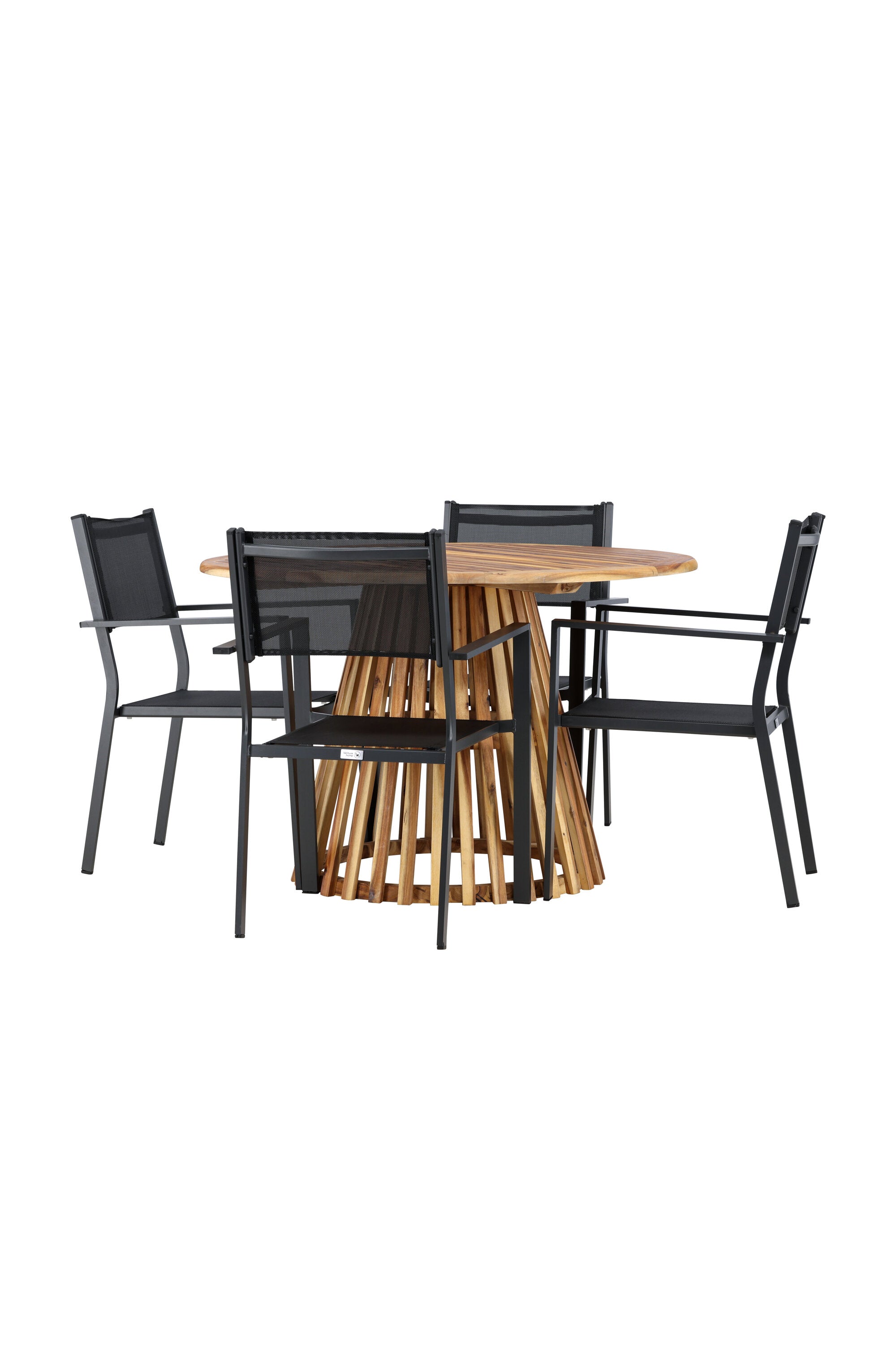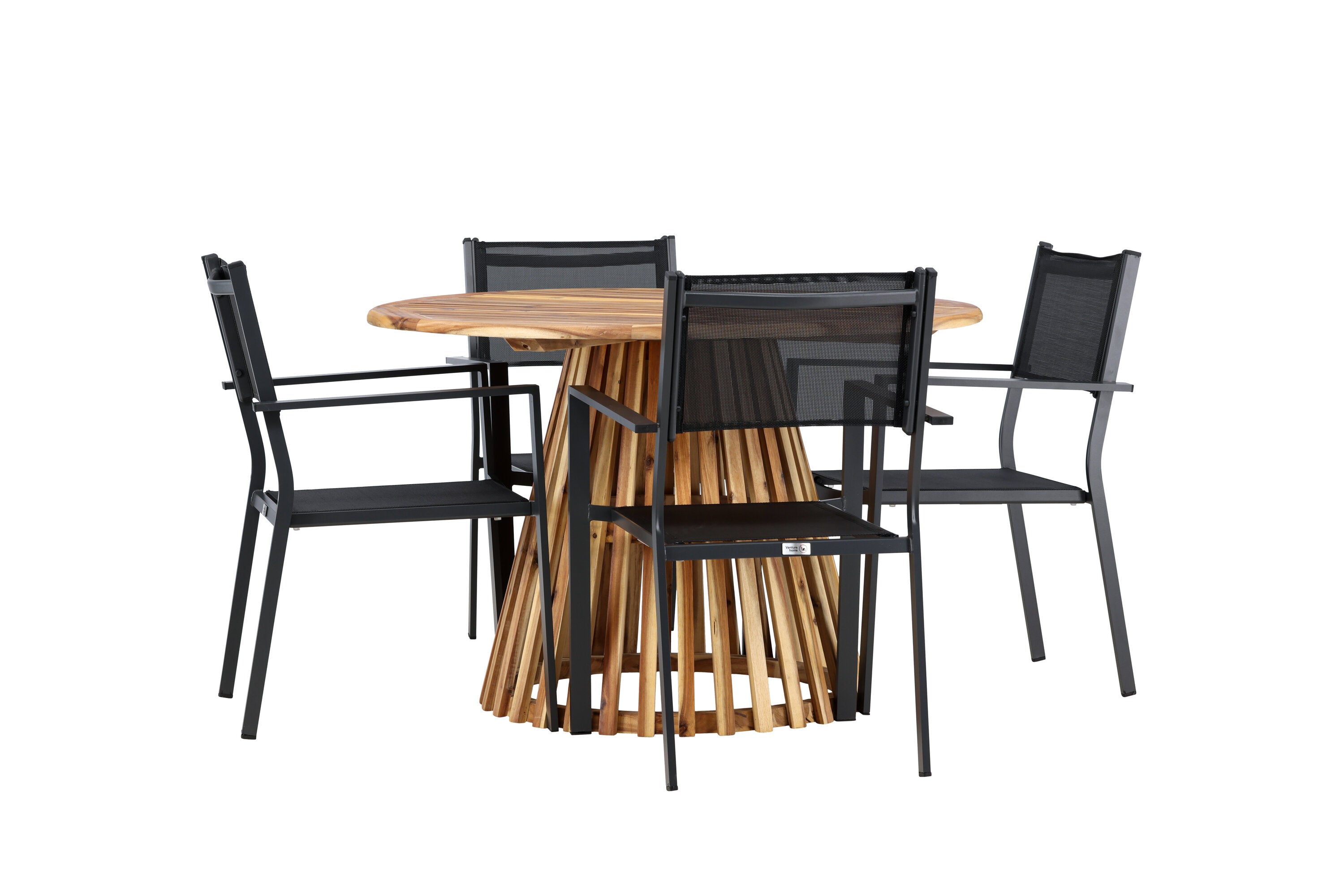 Lumpur Jídelní stůl Akácie - Teaklook / Kulatý ø110**75 + Stohovací židle Copacabana - Černá/Černá - Ersätter 4131-408 _4