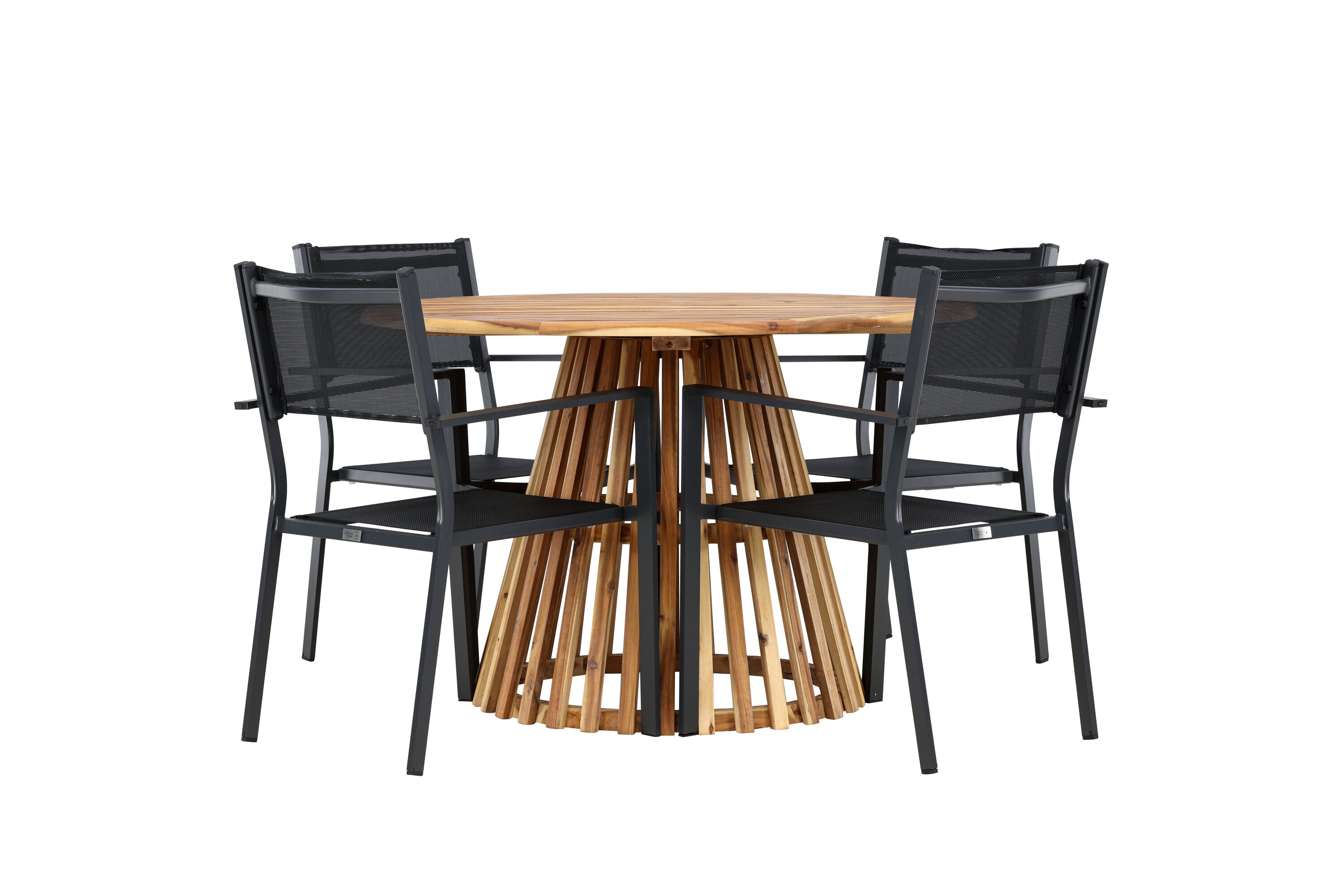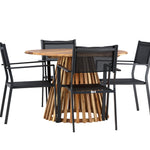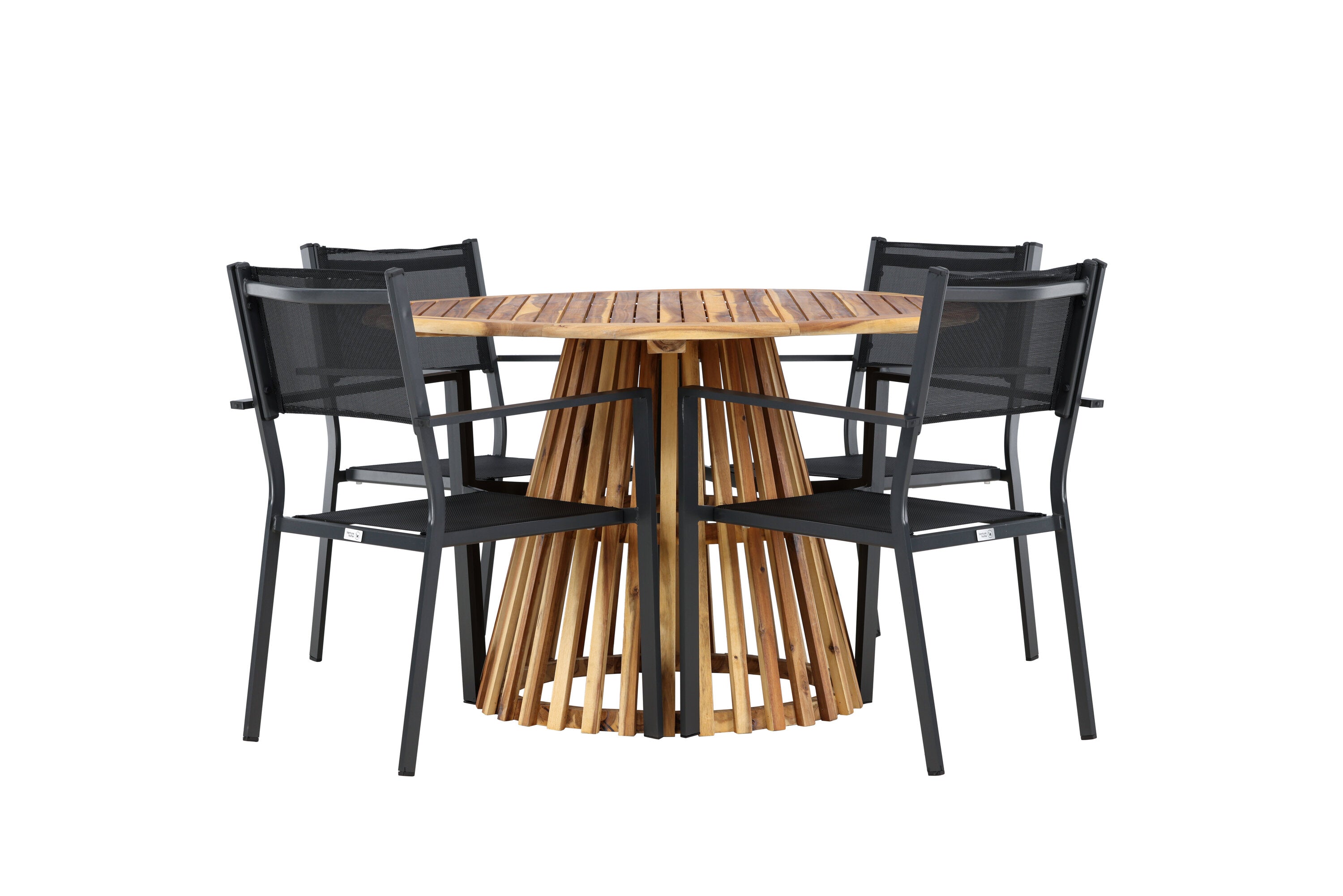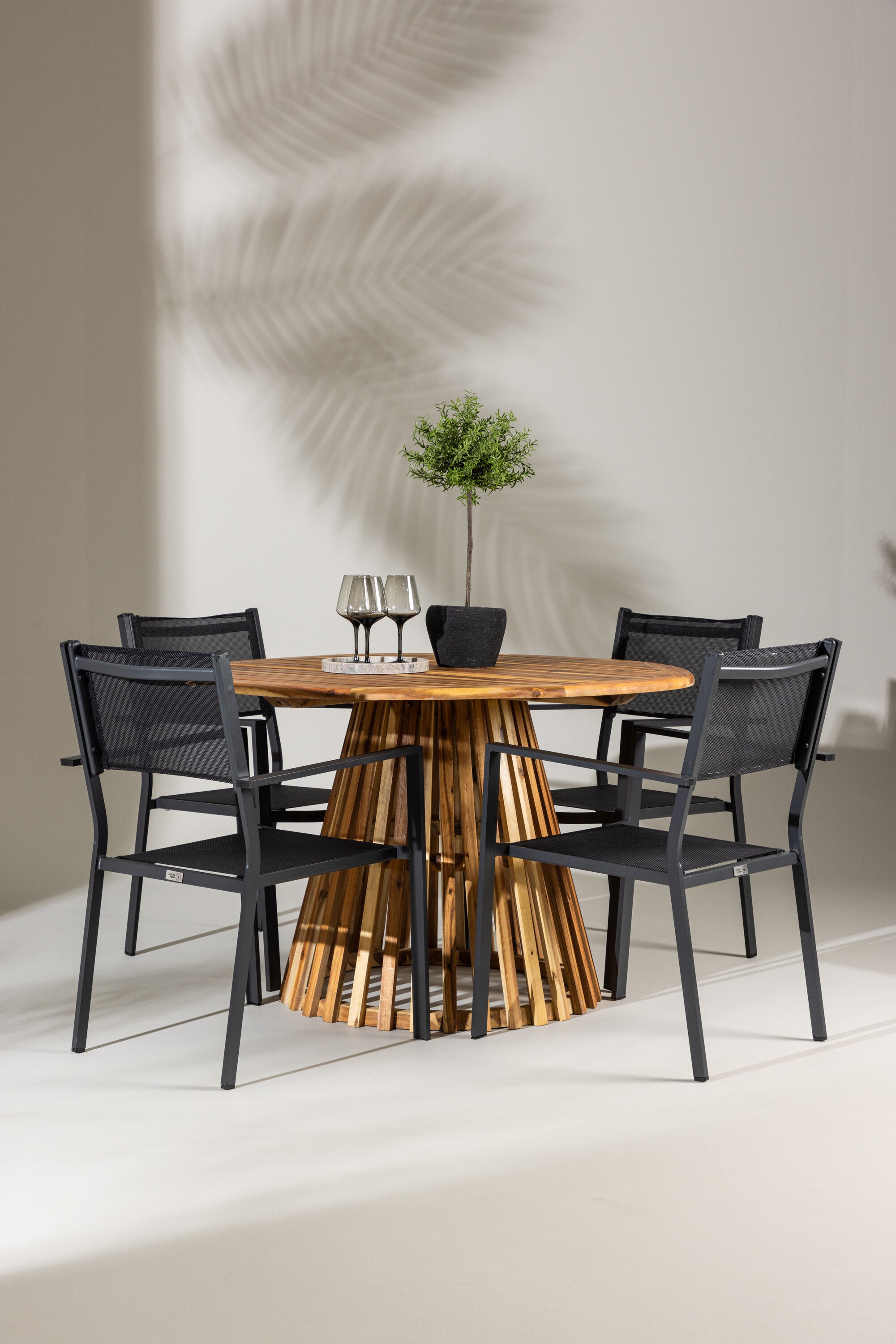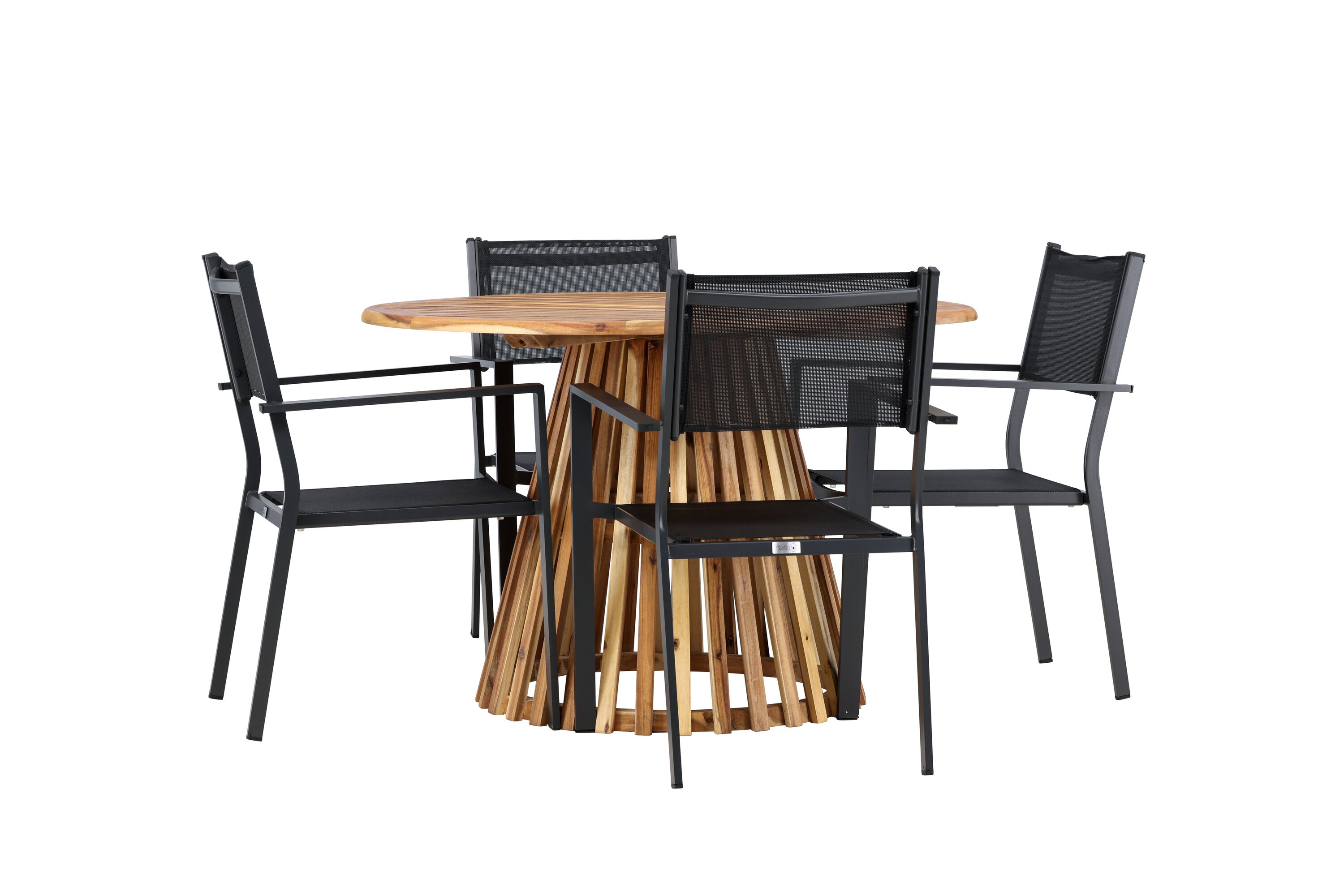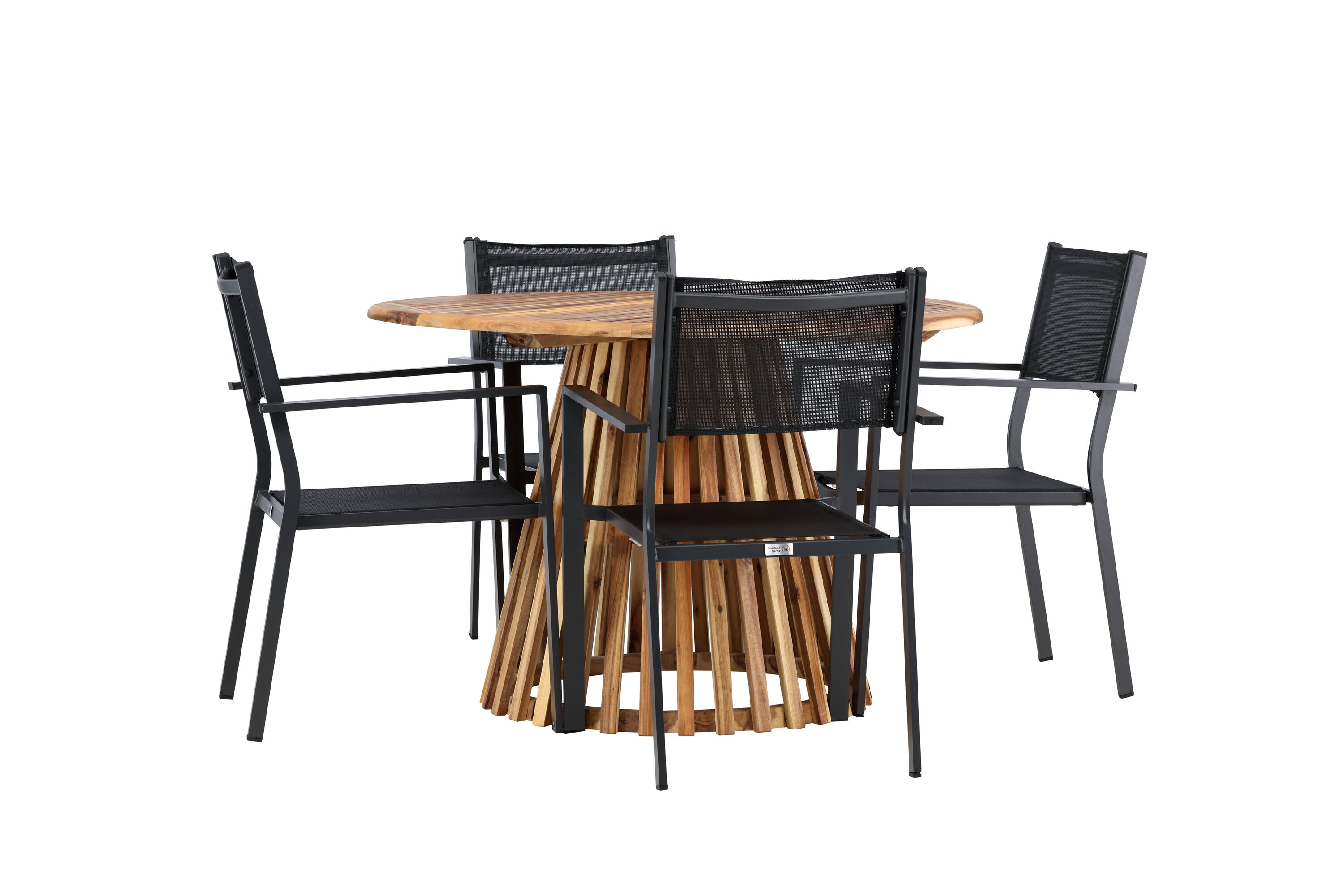 Lumpur Jídelní stůl Akácie - Teaklook / Kulatý ø110**75 + Stohovací židle Copacabana - Černá/Černá - Ersätter 4131-408 _4