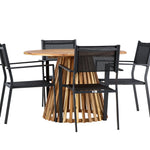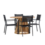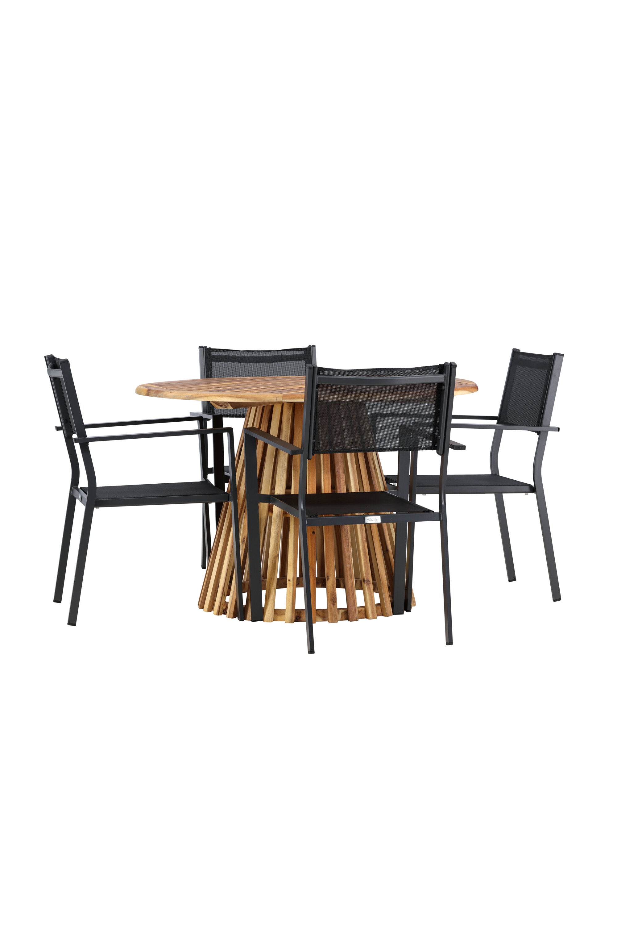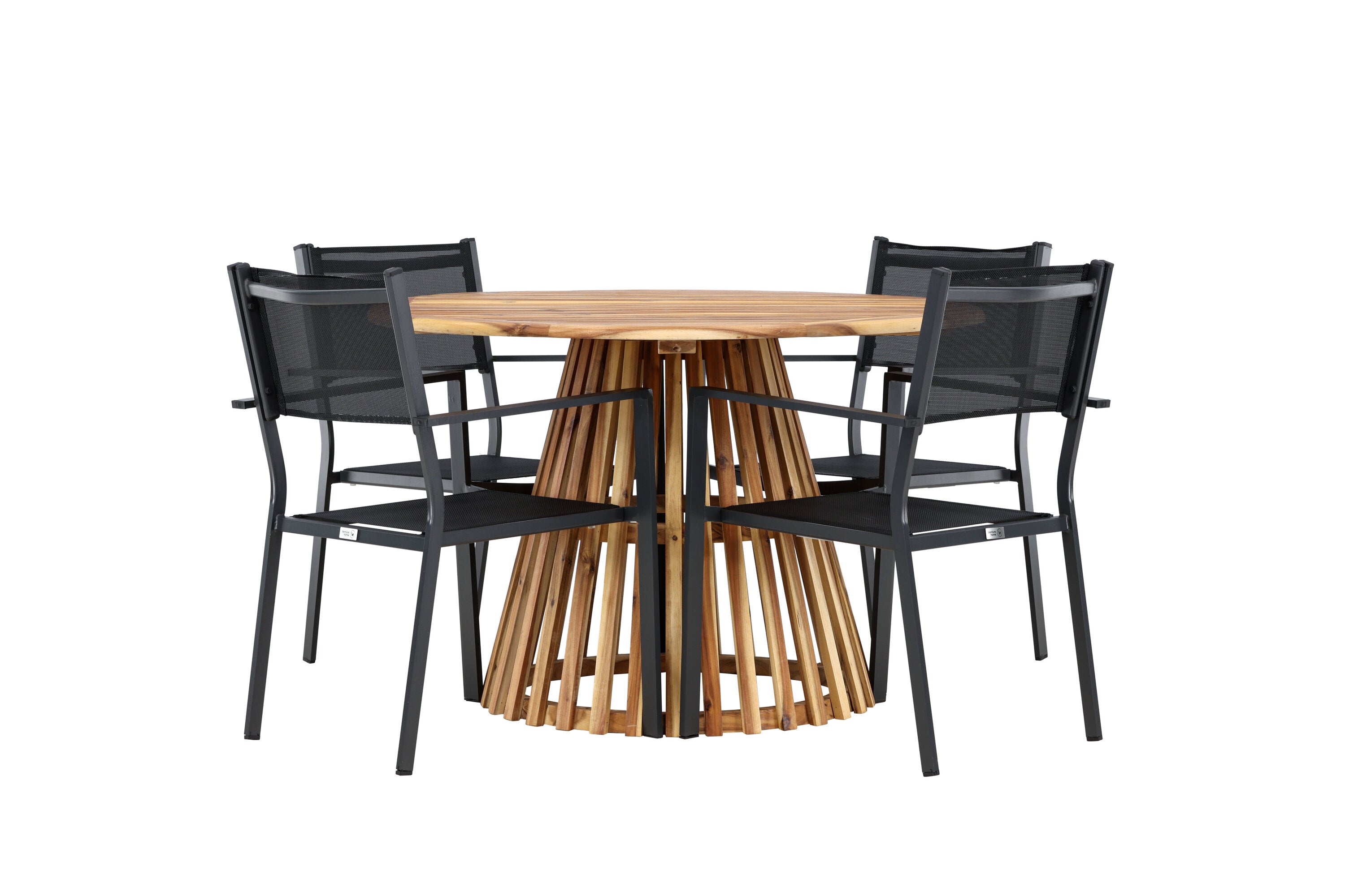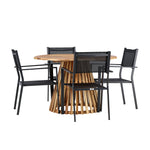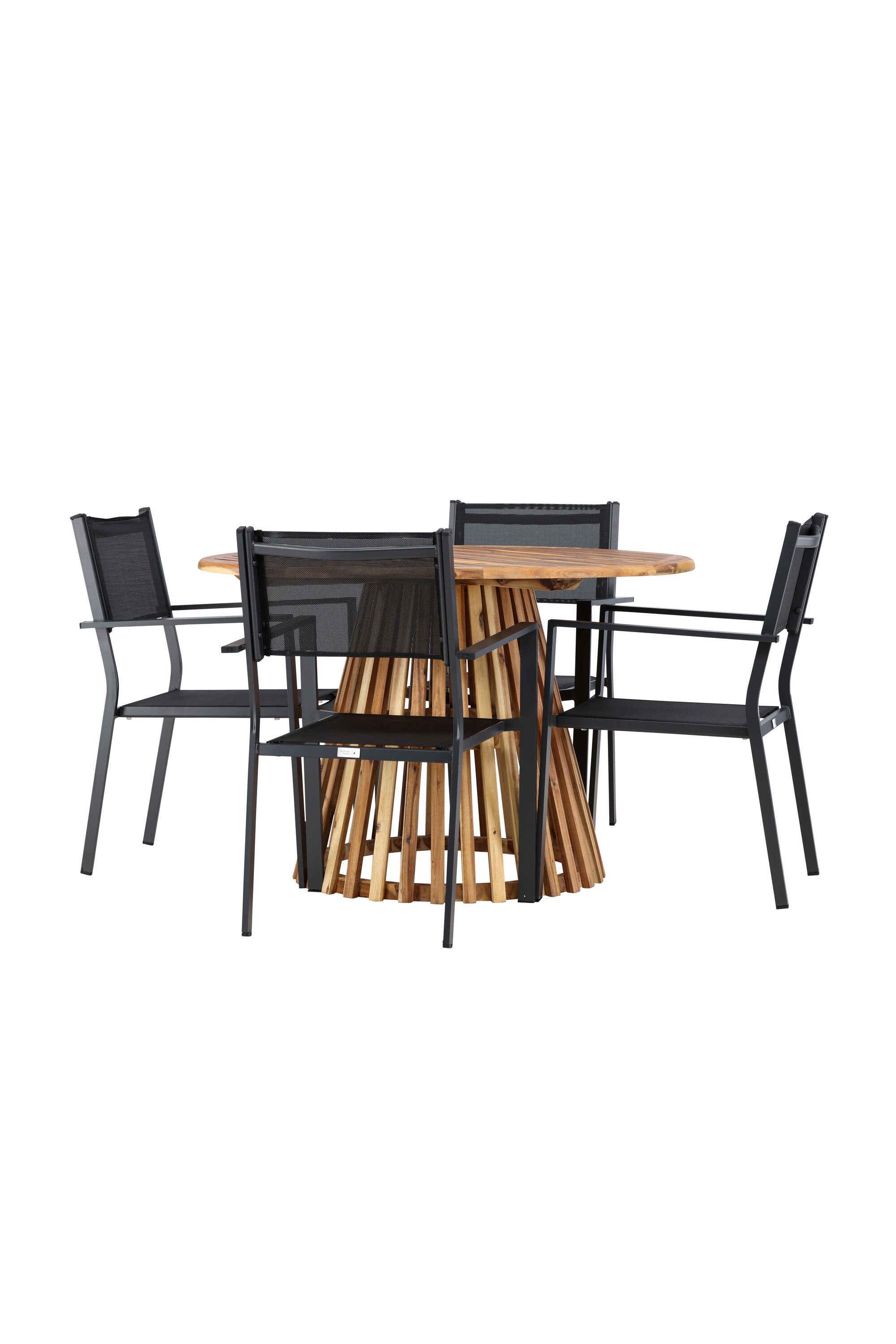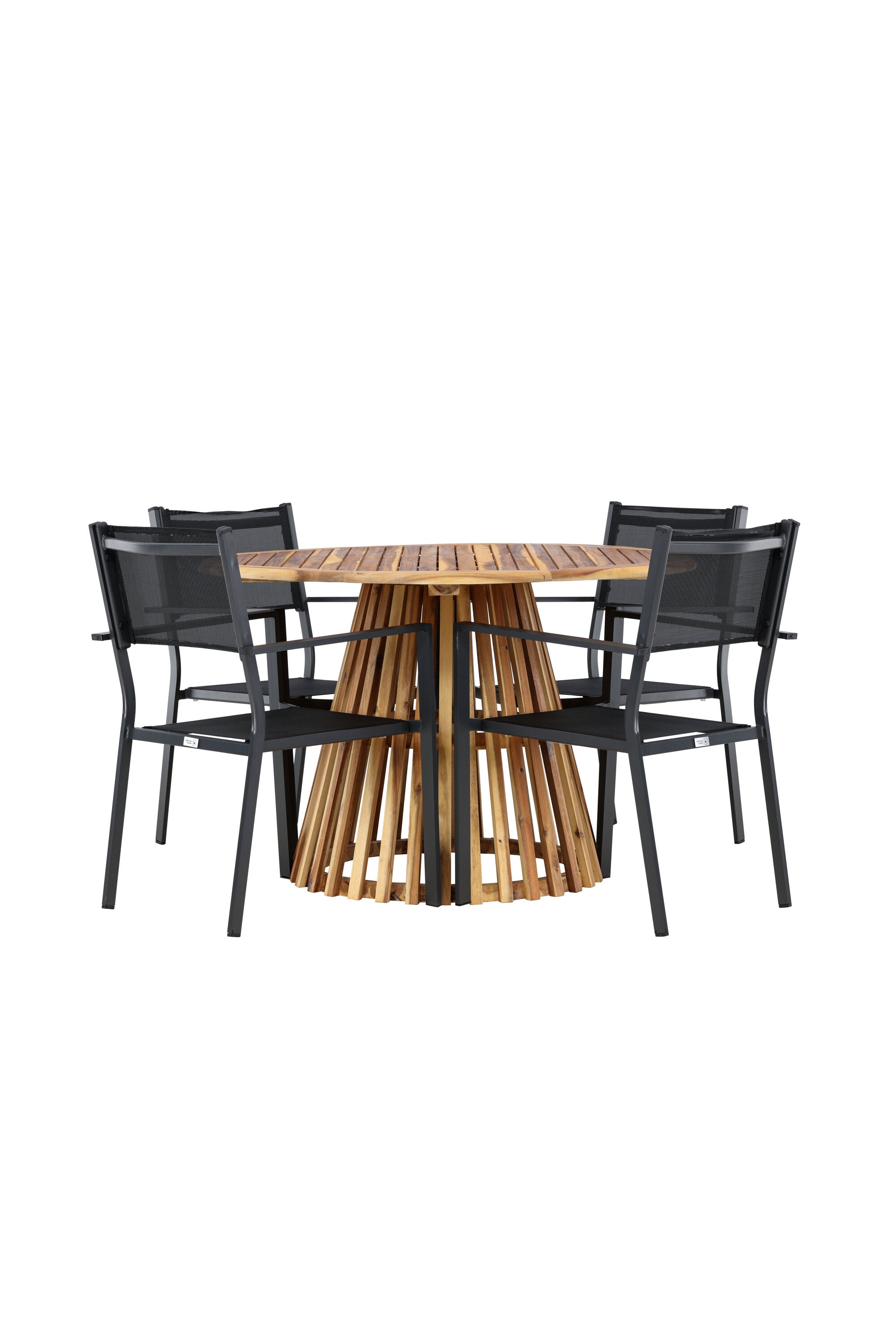 Lumpur Jídelní stůl Akácie - Teaklook / Kulatý ø110**75 + Stohovací židle Copacabana - Černá/Černá - Ersätter 4131-408 _4