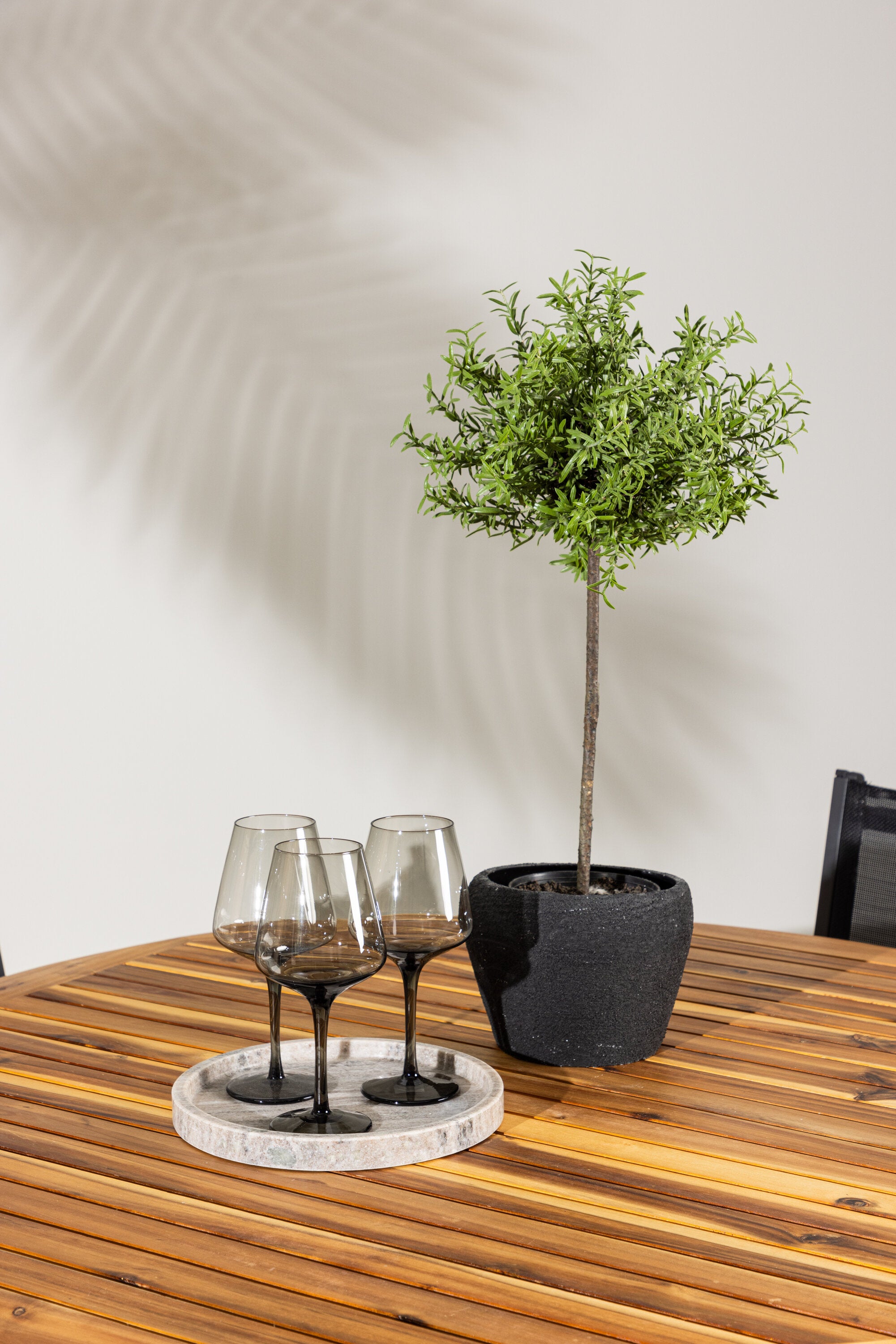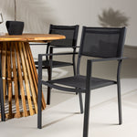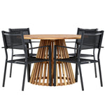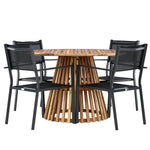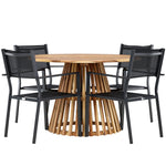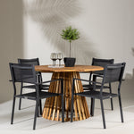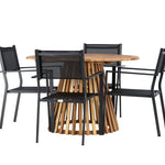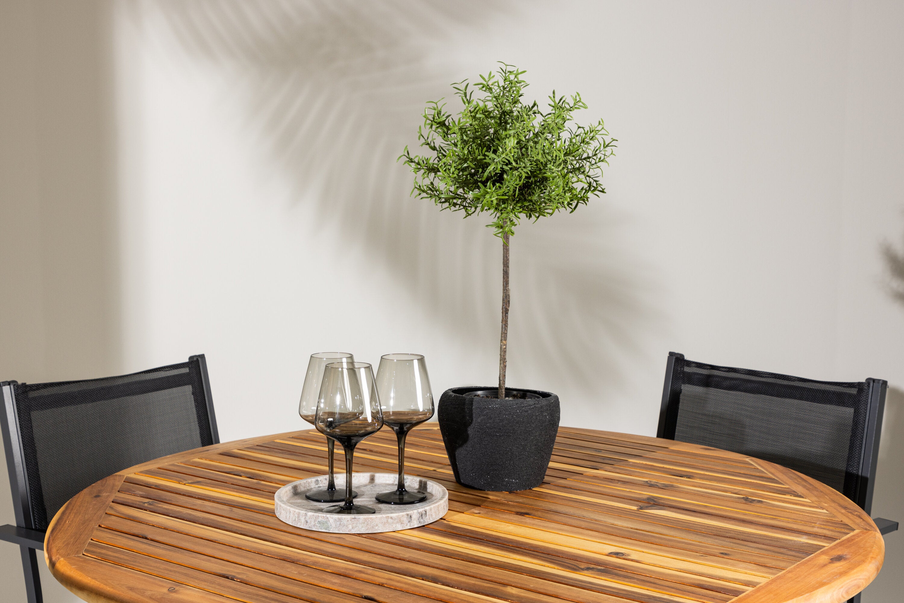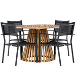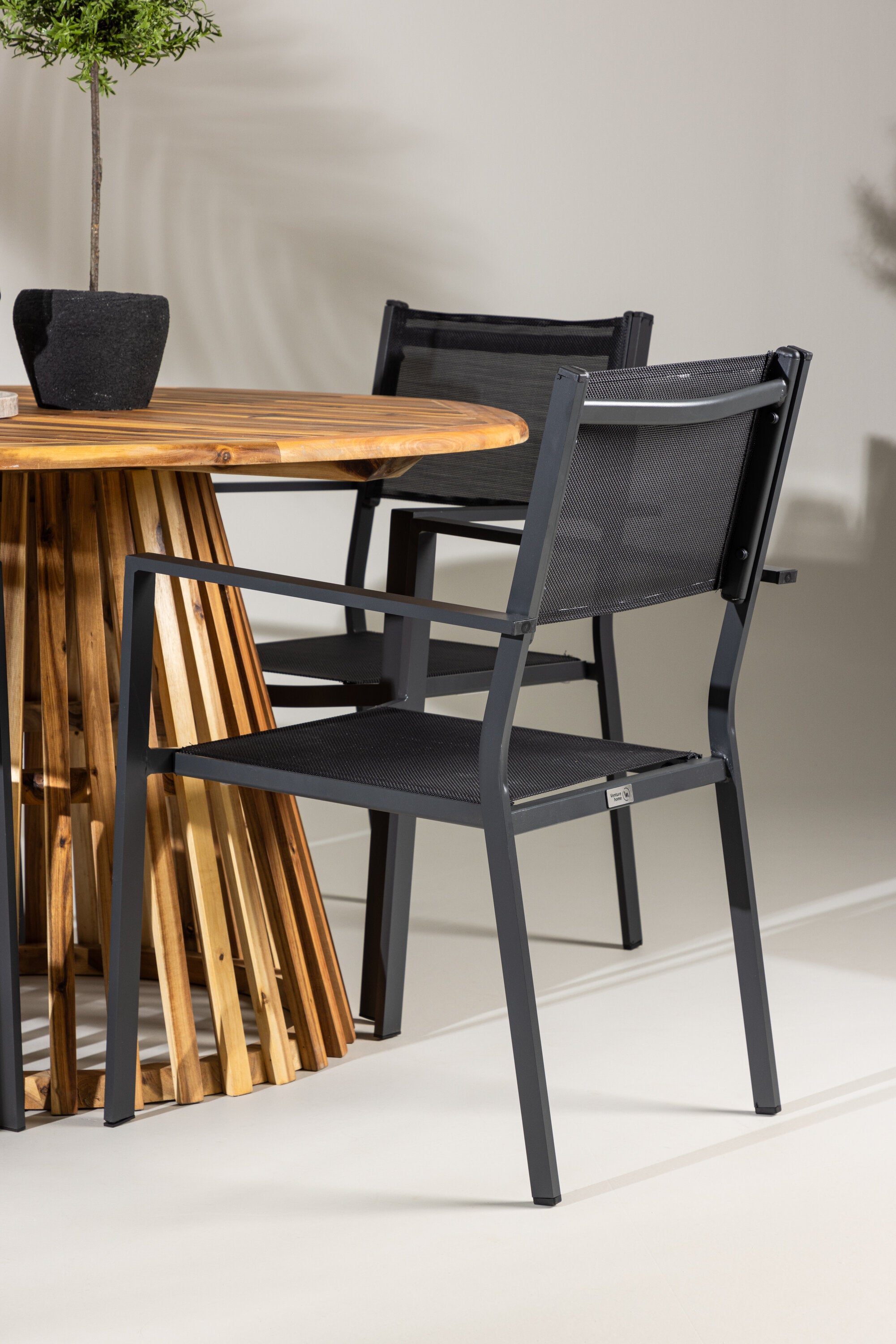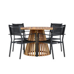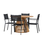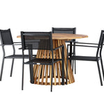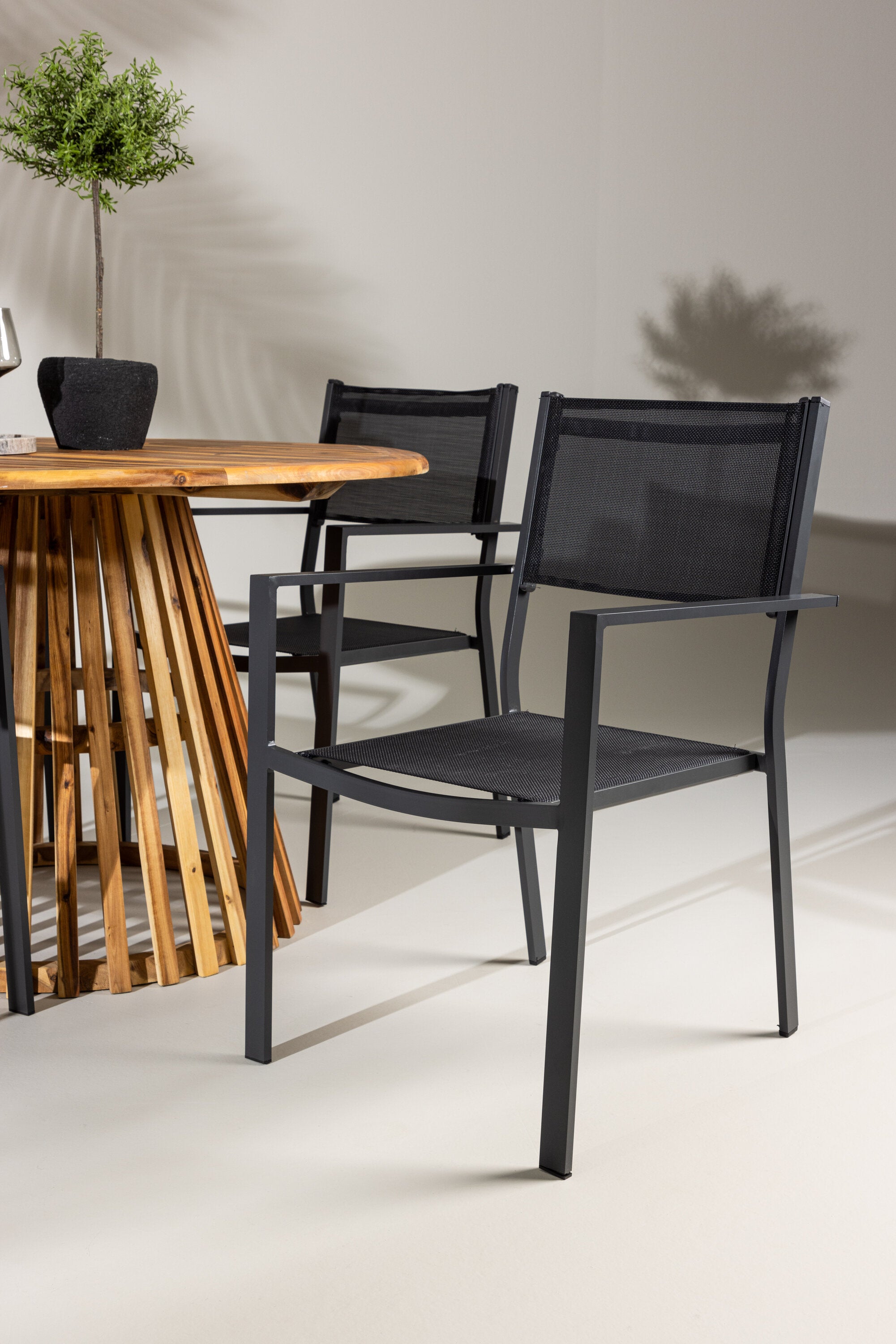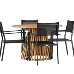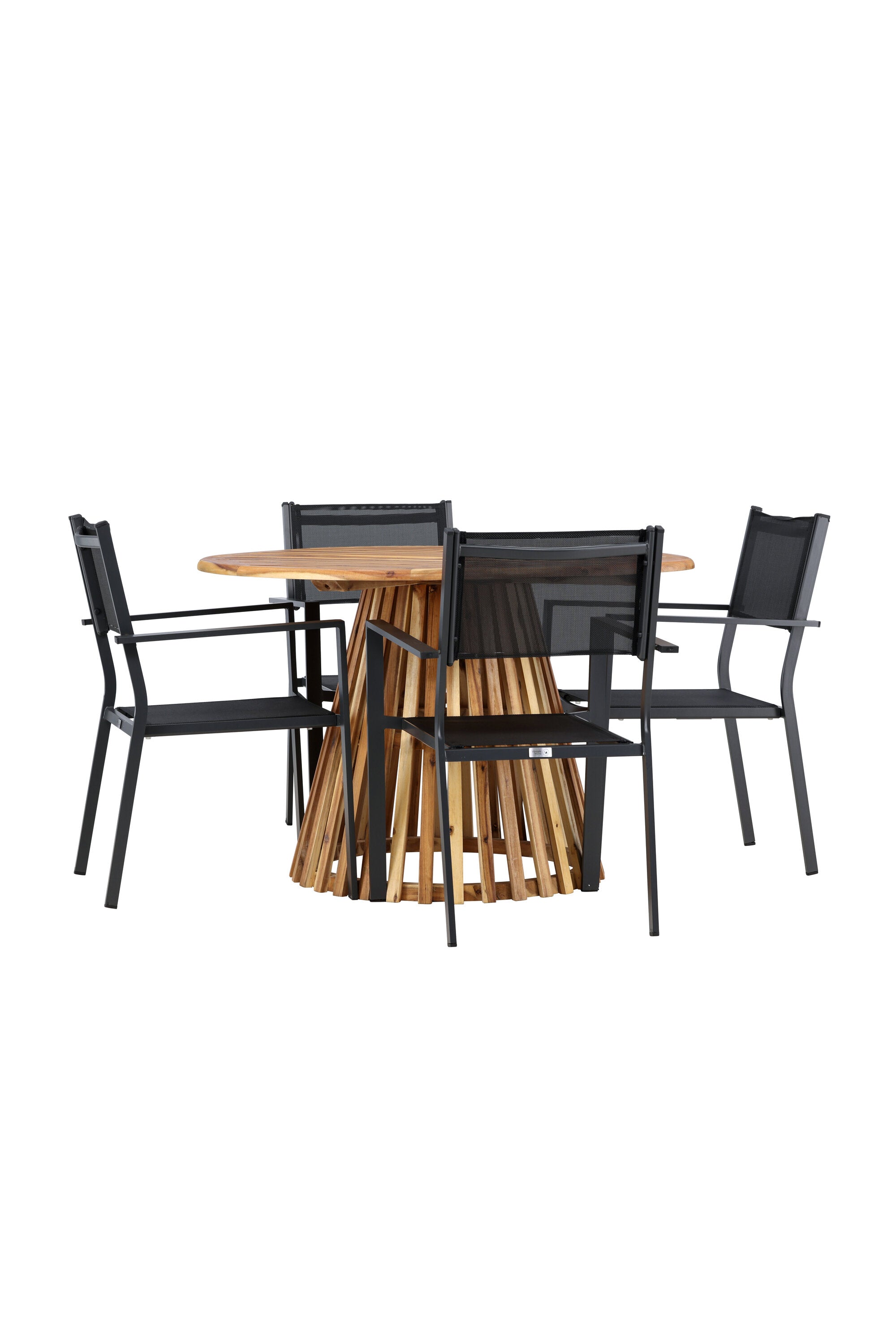 Lumpur Jídelní stůl Akácie - Teaklook / Kulatý ø110**75 + Stohovací židle Copacabana - Černá/Černá - Ersätter 4131-408 _4