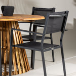 Židle Copacabana doplňují stůl Lumpur svým moderním designem a spolehlivou hliníkovou konstrukcí. Černá barva židlí dodává vašemu jídelnímu prostoru elegantní nádech a dokonale ladí s přírodní barvou dřeva stolu.