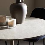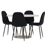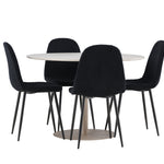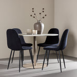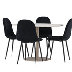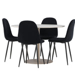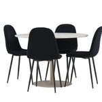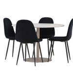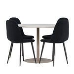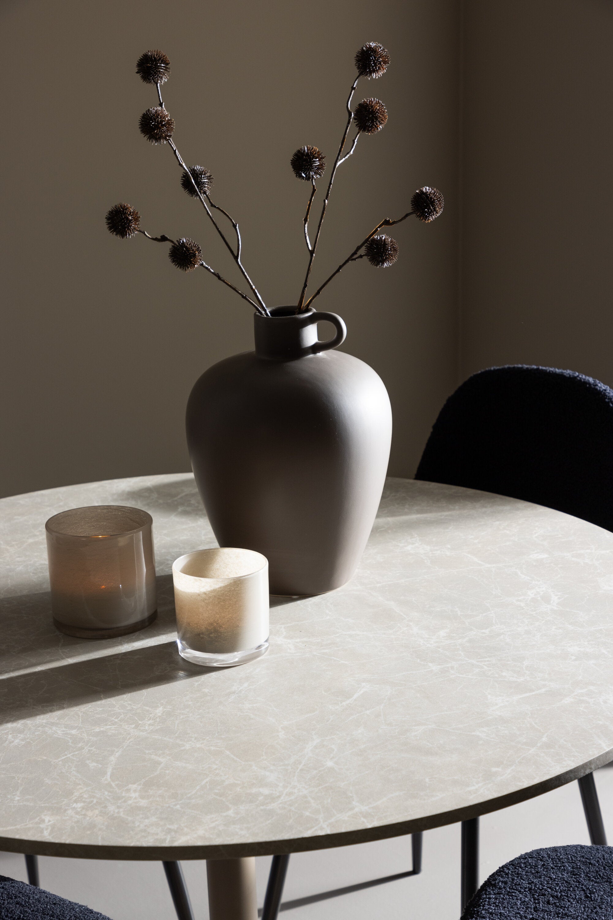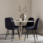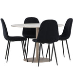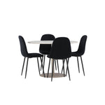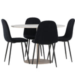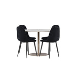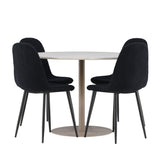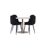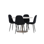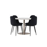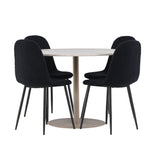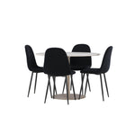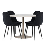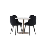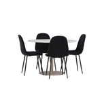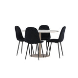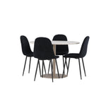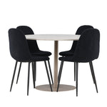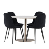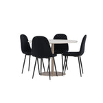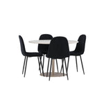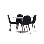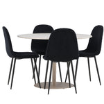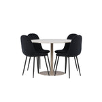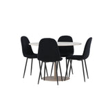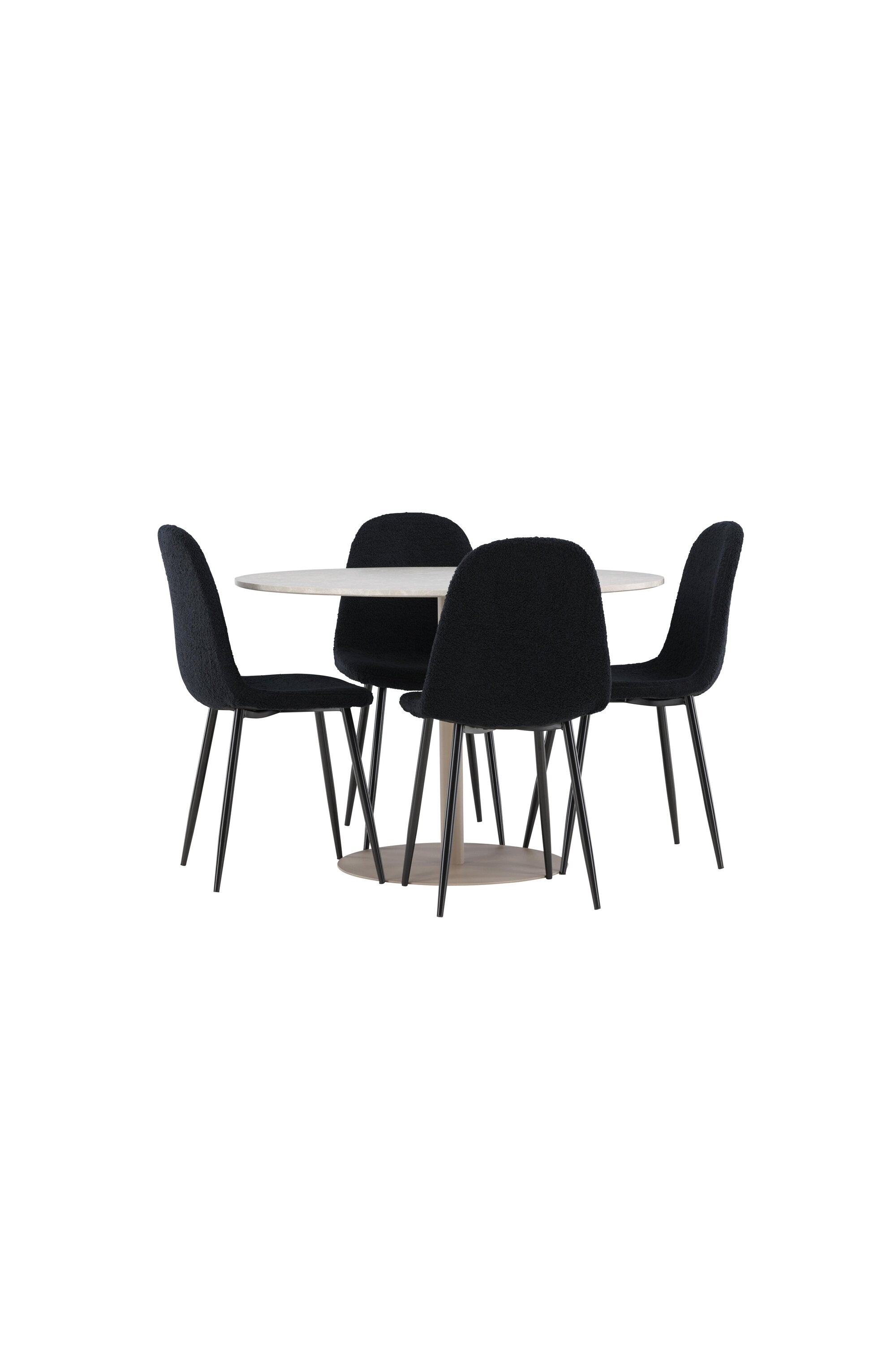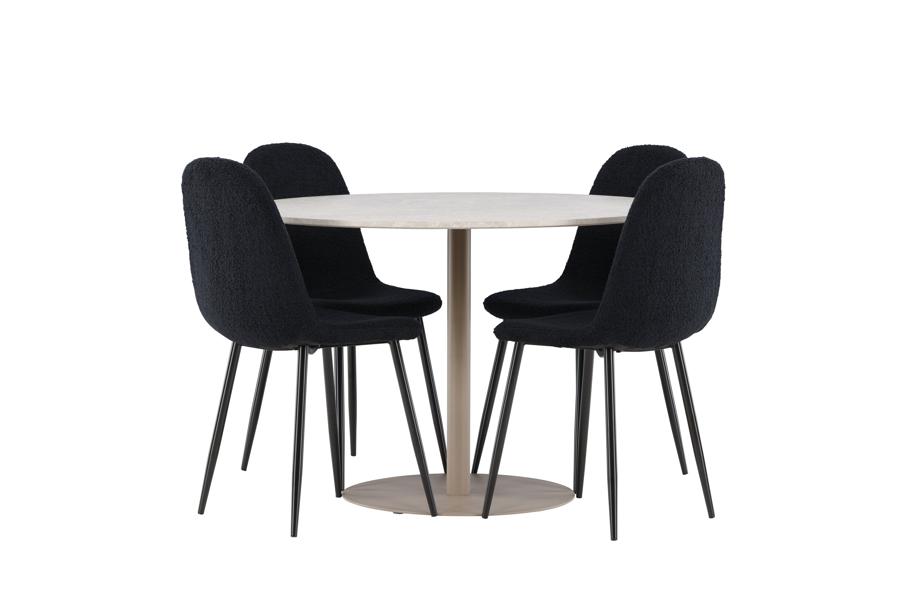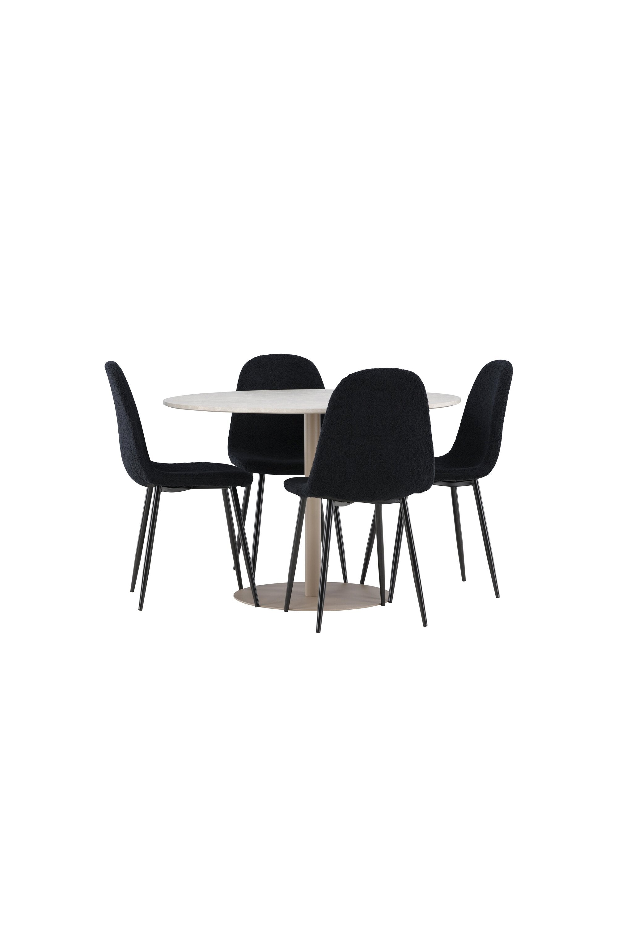 Proměňte svou jídelnu pomocí elegantního a moderního jídelního setu, který se skládá ze stolu Lycke a židlí Polar. Tato jídelní souprava je navržena tak, aby v sobě spojovala styl a pohodlí a stala se tak fantastickým doplňkem vašeho domova. Stůl Lycke je působivým středobodem se svou sofistikovanou béžovou barvou a MDF konstrukcí. Stůl s průměrem 110 cm nabízí dostatek prostoru pro stolování i společenská setkání a jeho harmonický design dodá vaší jídelně moderní a elegantní nádech. Odolný povrch usnadňuje čištění a údržbu stolu a zajišťuje jeho dlouhotrvající krásu a funkčnost. Čtyři doprovodné židle Polar skvěle doplňují stůl. Tyto židle jsou čalouněny měkkým černým polyesterovým plyšovým plyšem, který poskytuje luxusní a pohodlné sezení. Teddy materiál je známý pro svou hřejivost a měkkost, umožňuje vám i vašim hostům pohodlně sedět při dlouhých večeřích a rozhovorech. Černé nohy na židlích poskytují stabilní konstrukci a zároveň podtrhují moderní a elegantní vzhled židlí. Jídelní set Lycke se židlemi Polar je perfektní volbou pro ty, kteří chtějí vytvořit stylové a funkční jídelní prostředí. Kombinace moderního designu a vysokého komfortu dělá z každého jídla příjemný zážitek. Vítejte na nové úrovni stylu a pohodlí u vás doma s Lycke a Polar!