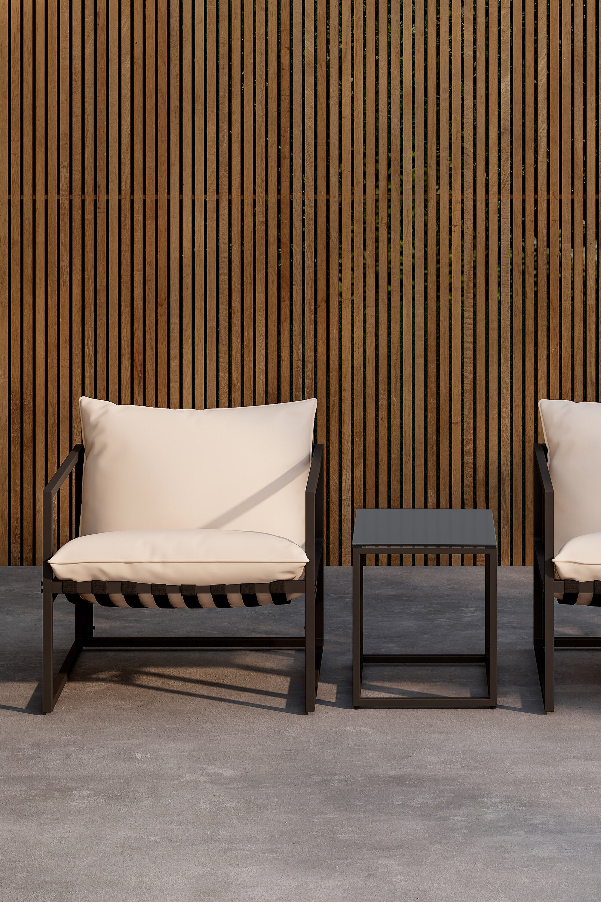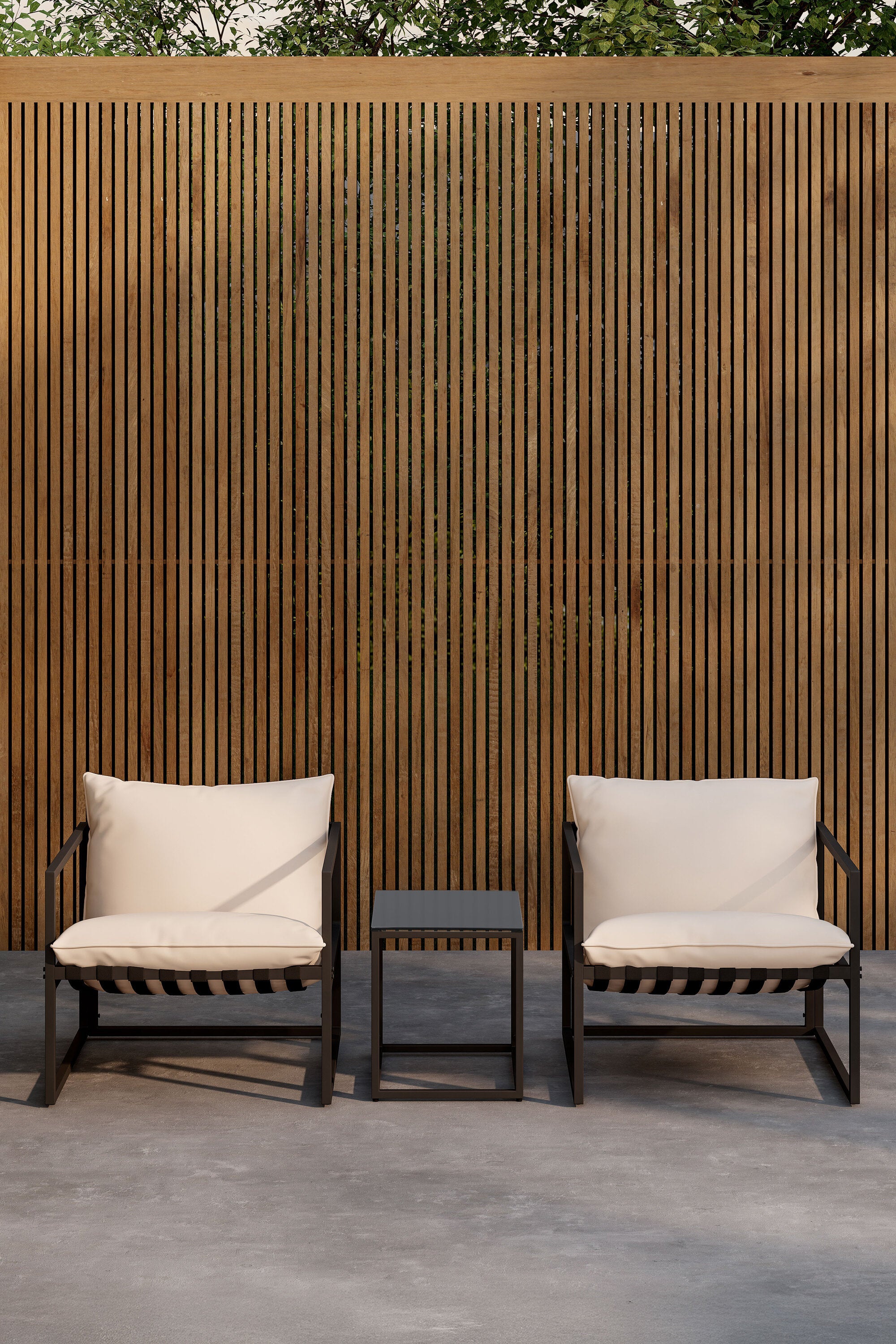 Křesla jsou vyrobena z robustní oceli a jsou dodávána s měkkými polštáři z odolného polyesteru, které poskytují příjemný zážitek ze sezení. Stůl je navržen se skleněnou deskou spočívající na ocelovém rámu, což vytváří stylový a odolný povrch. Umístěte Messinu na verandu nebo terasu a užijte si chvíle odpočinku ve stylu a pohodlí.