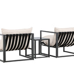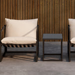 Salonek Messina je perfektní volbou pro ty, kteří chtějí na terase vytvořit stylovou a příjemnou atmosféru. V trendové černé barvě poskytuje Messina moderní a elegantní výraz, který zapadne do jakéhokoli venkovního prostředí. Set se skládá ze dvou pohodlných křesel a elegantního skleněného stolku – perfektní kombinace pro chvíle odpočinku na slunci.