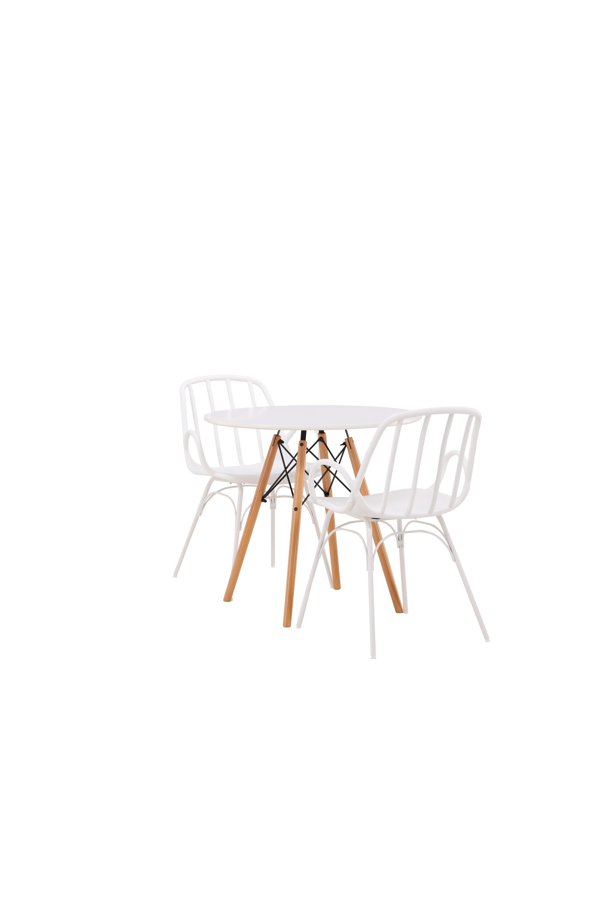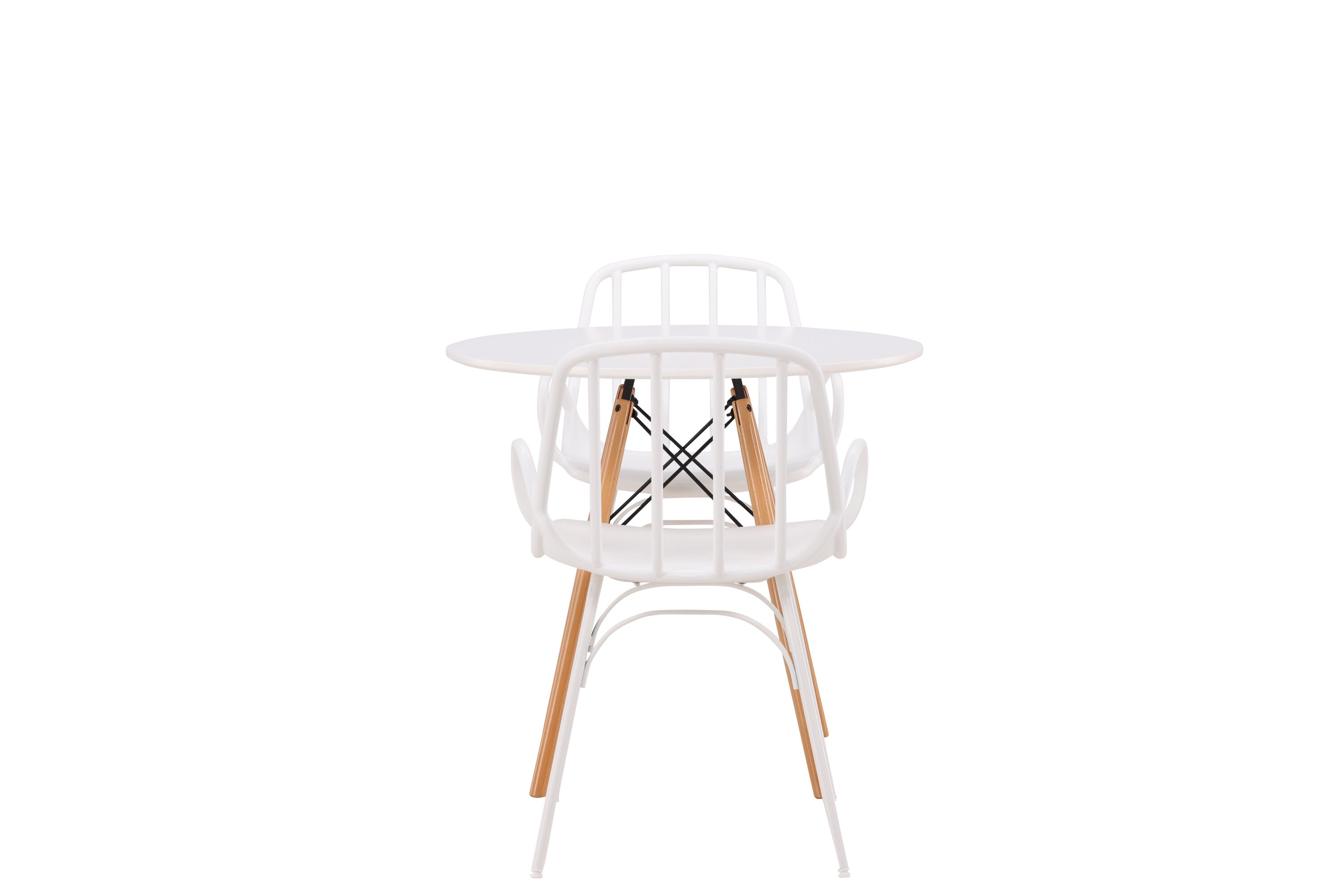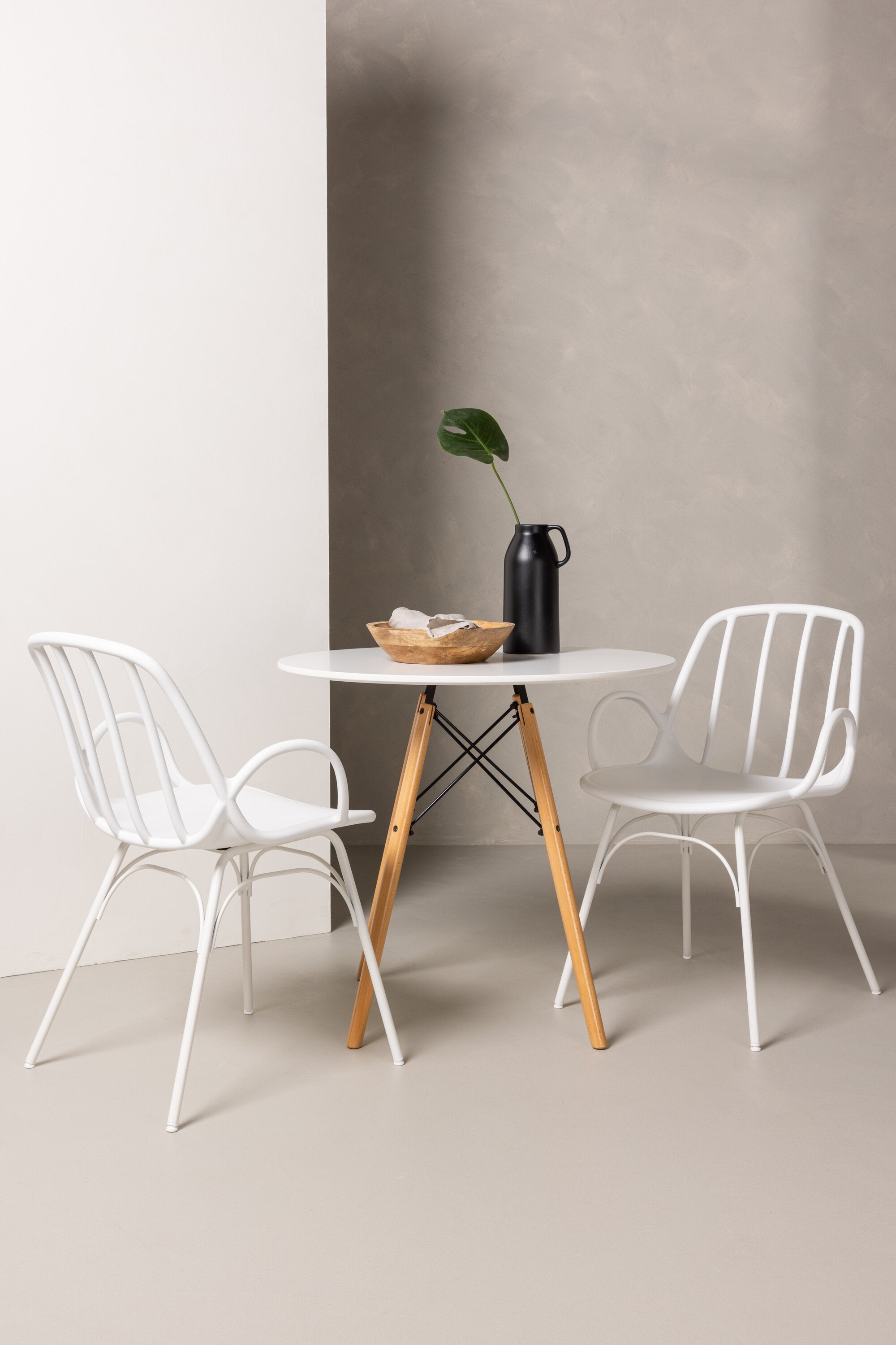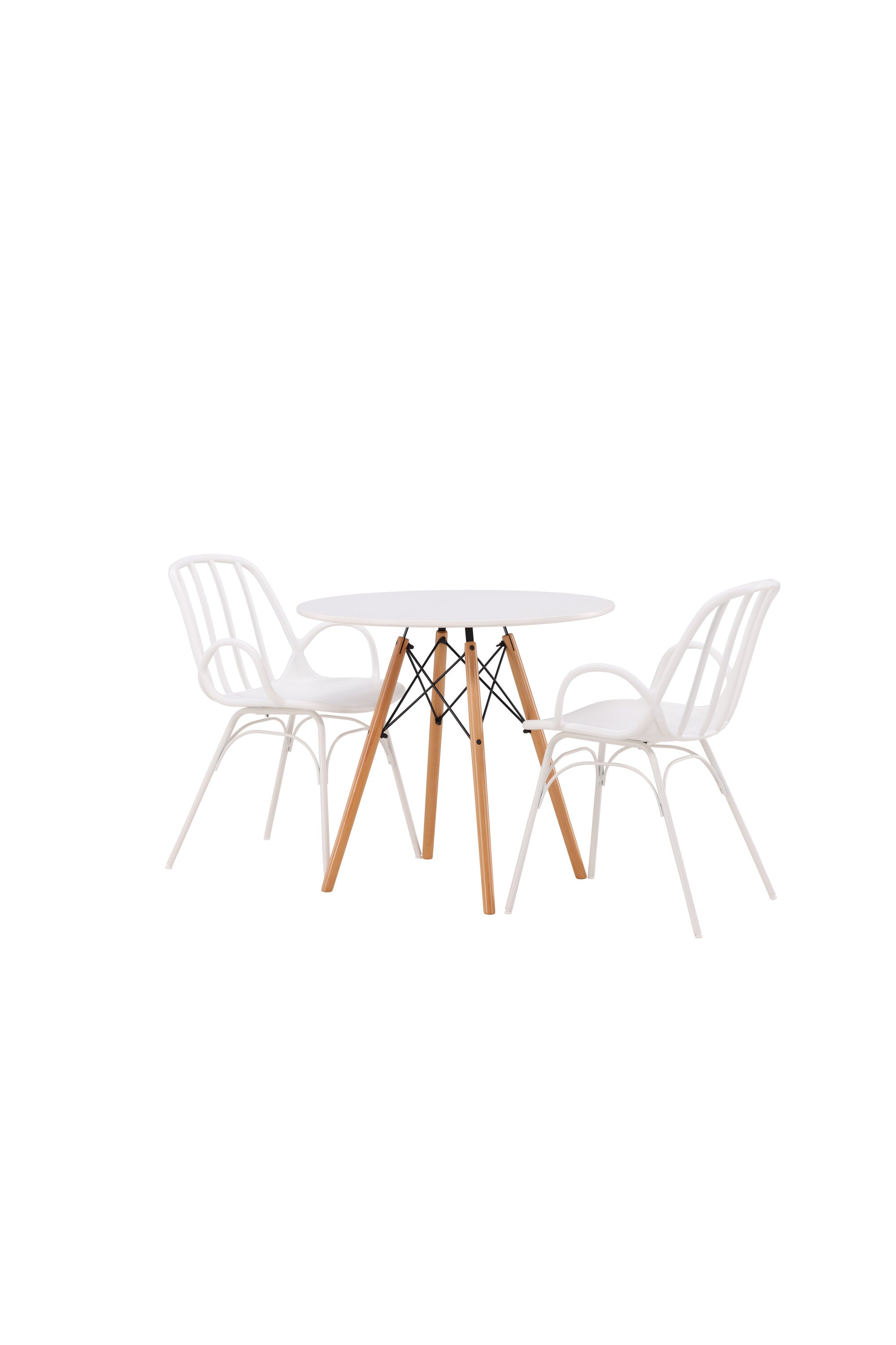Stůl Danburi má elegantní průměr 60 centimetrů a je vyroben z materiálu MDF a nohou z bukového dřeva, což poskytuje pevnou a stabilní konstrukci. Bílá barva desky stolu nabízí svěží a moderní vzhled, zatímco nohy v přírodní barvě dřeva dodávají místnosti teplý a příjemný nádech.