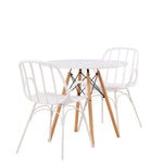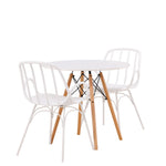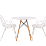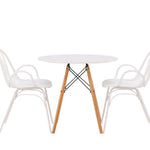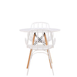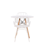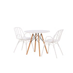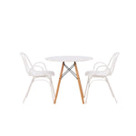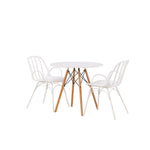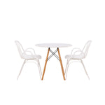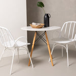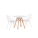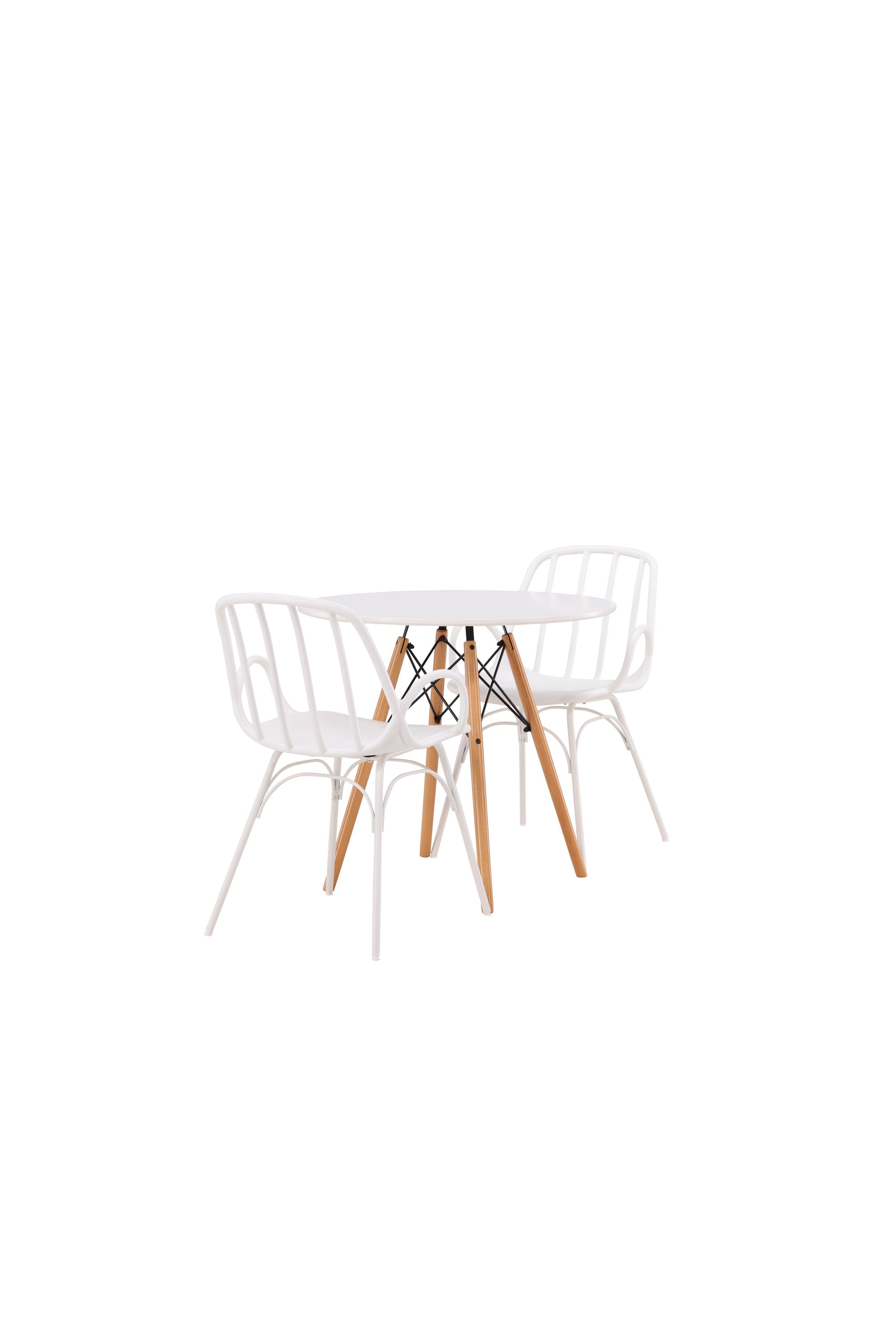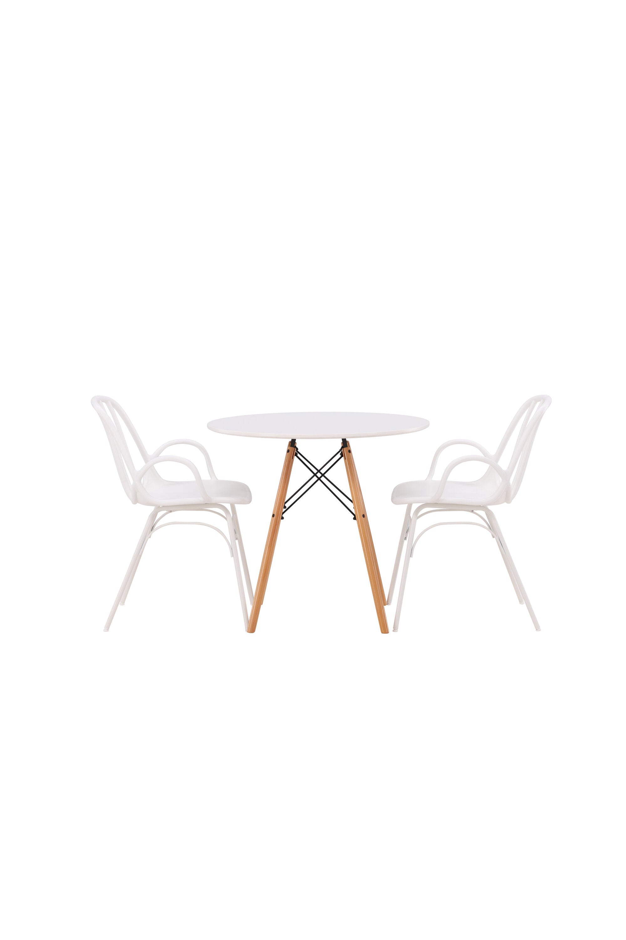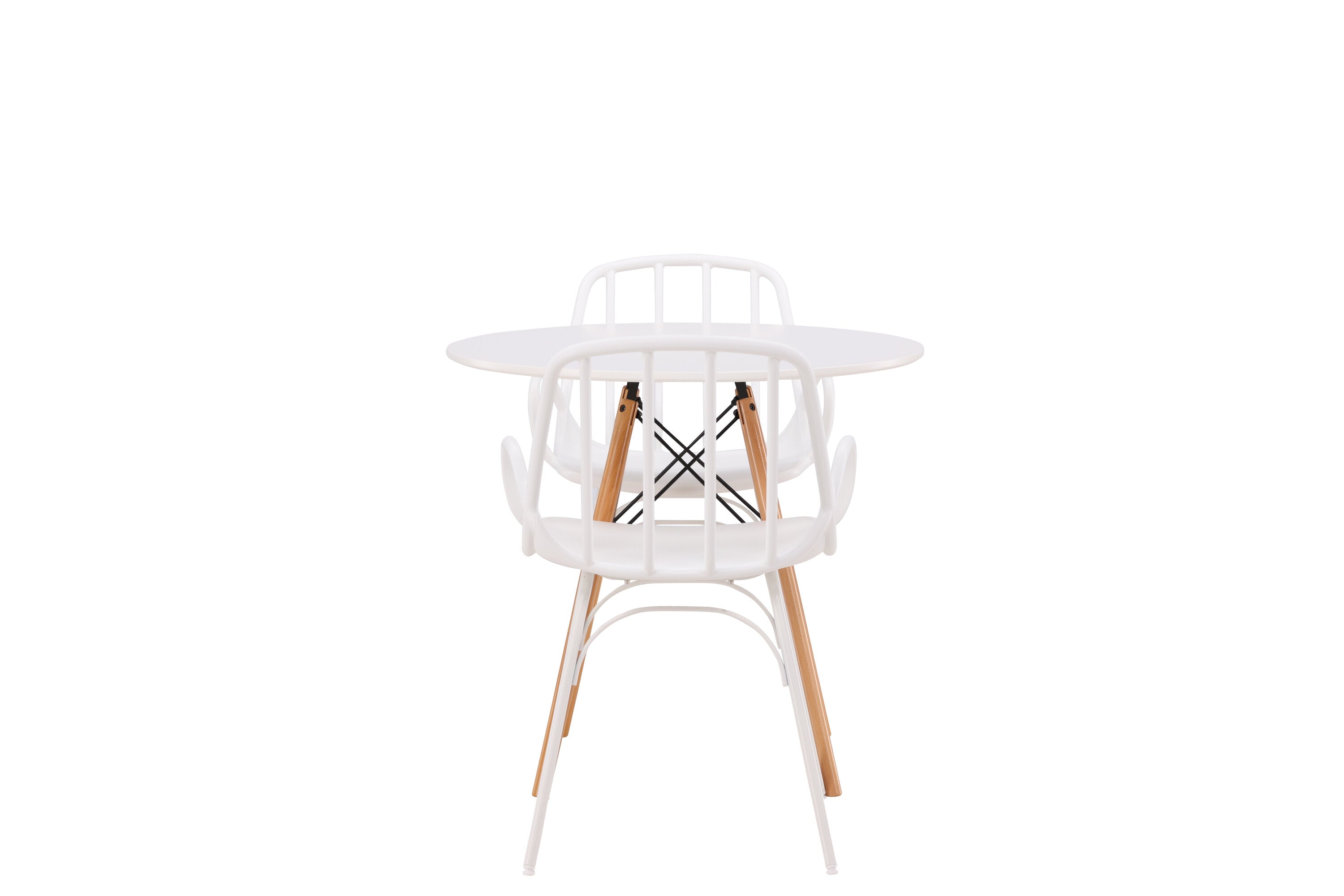 Stůl Danburi má elegantní průměr 60 centimetrů a je vyroben z materiálu MDF a nohou z bukového dřeva, což poskytuje pevnou a stabilní konstrukci. Bílá barva desky stolu nabízí svěží a moderní vzhled, zatímco nohy v přírodní barvě dřeva dodávají místnosti teplý a příjemný nádech.