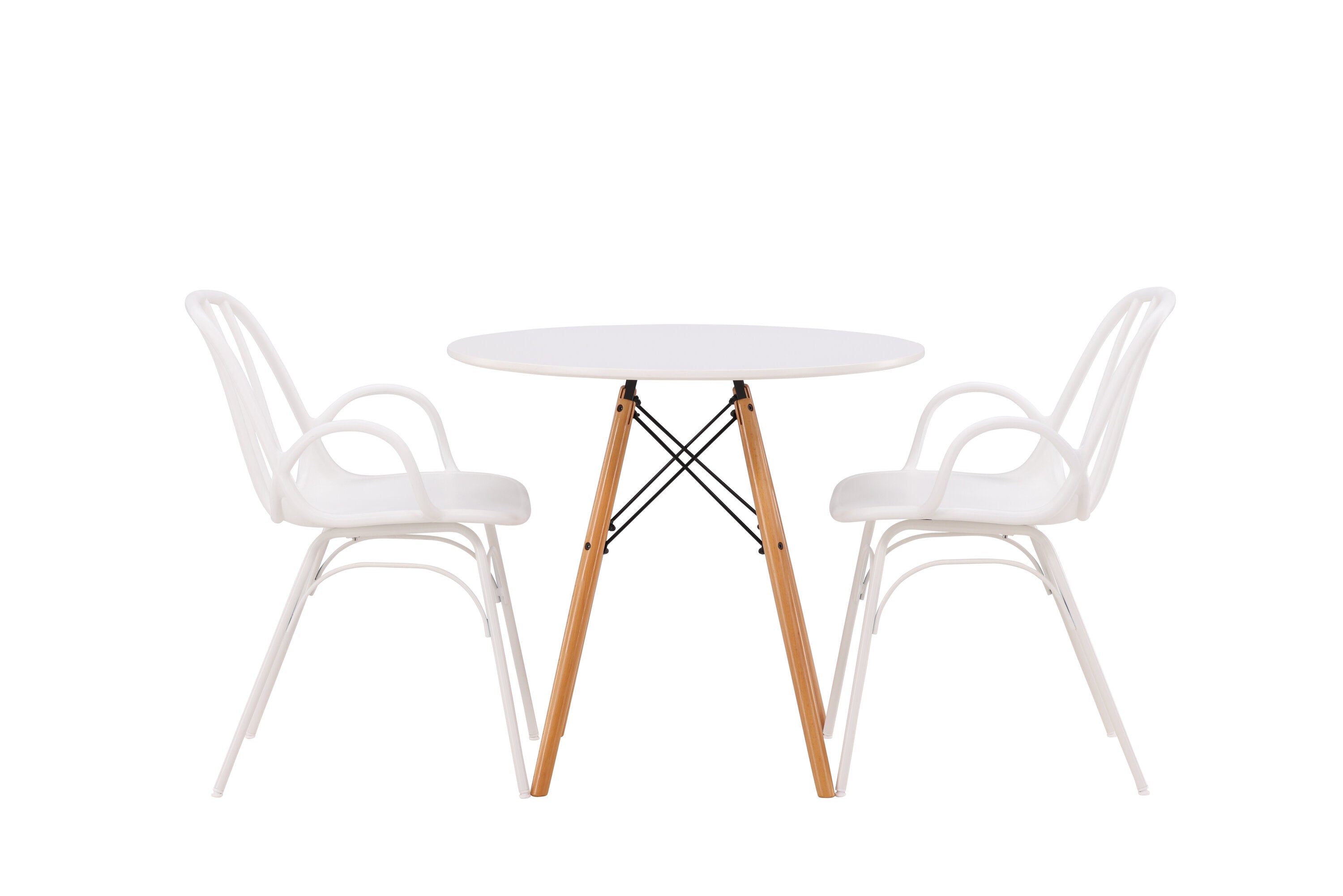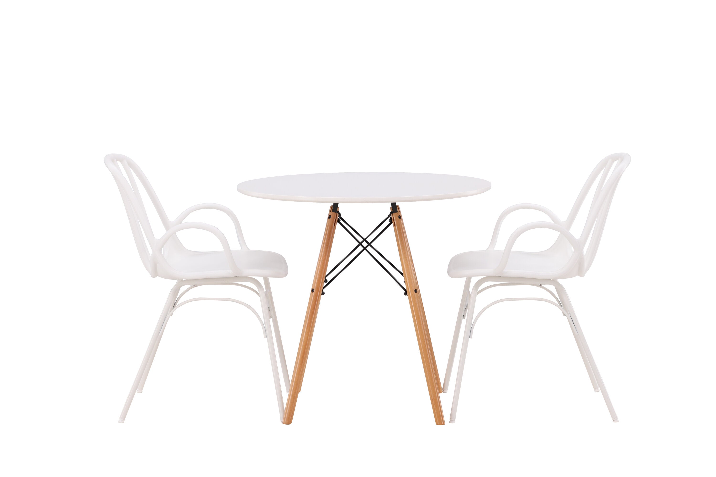 Ať už se jedná o romantickou večeři pro dva nebo neformální snídani, náš jídelní set se stolem Danburi a židlemi Dyrön je perfektní volbou pro vytvoření příjemné a stylové atmosféry u vás doma.