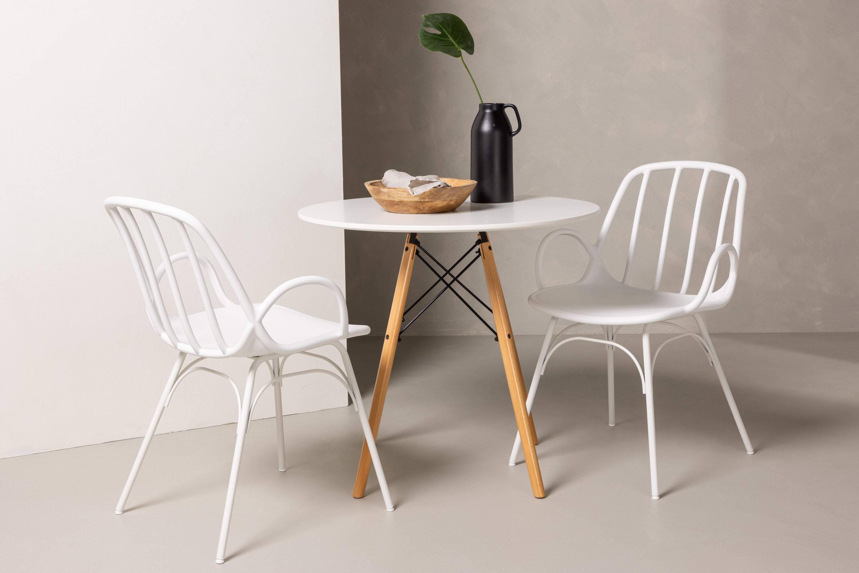 Židle Dyrön se svým elegantním a jednoduchým designem skvěle doplňují stůl. Tyto bílé židle nabízejí pohodlné sezení a perfektně se hodí ke kompaktnímu stolu. Díky svému efektivnímu designu a odolné konstrukci jsou židle Dyrön ideální volbou pro každodenní stolování nebo formálnější příležitosti.