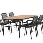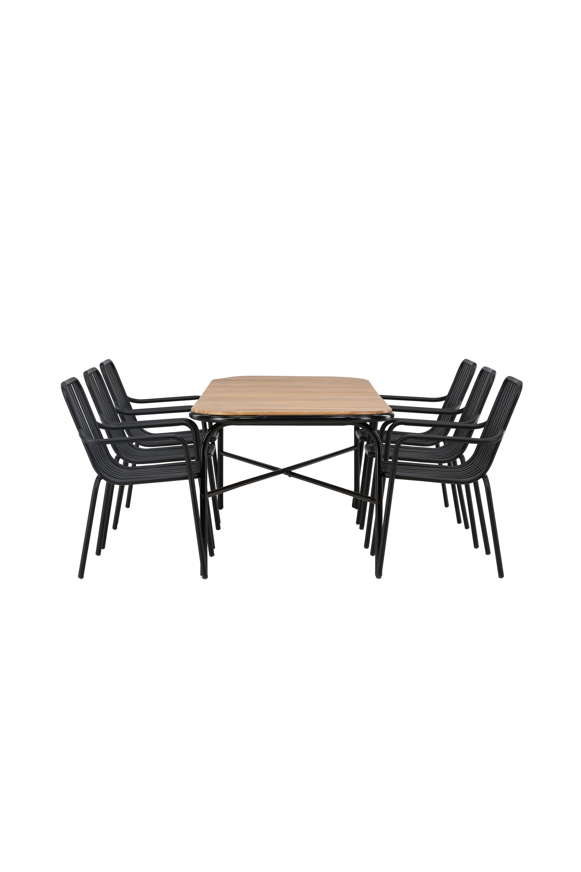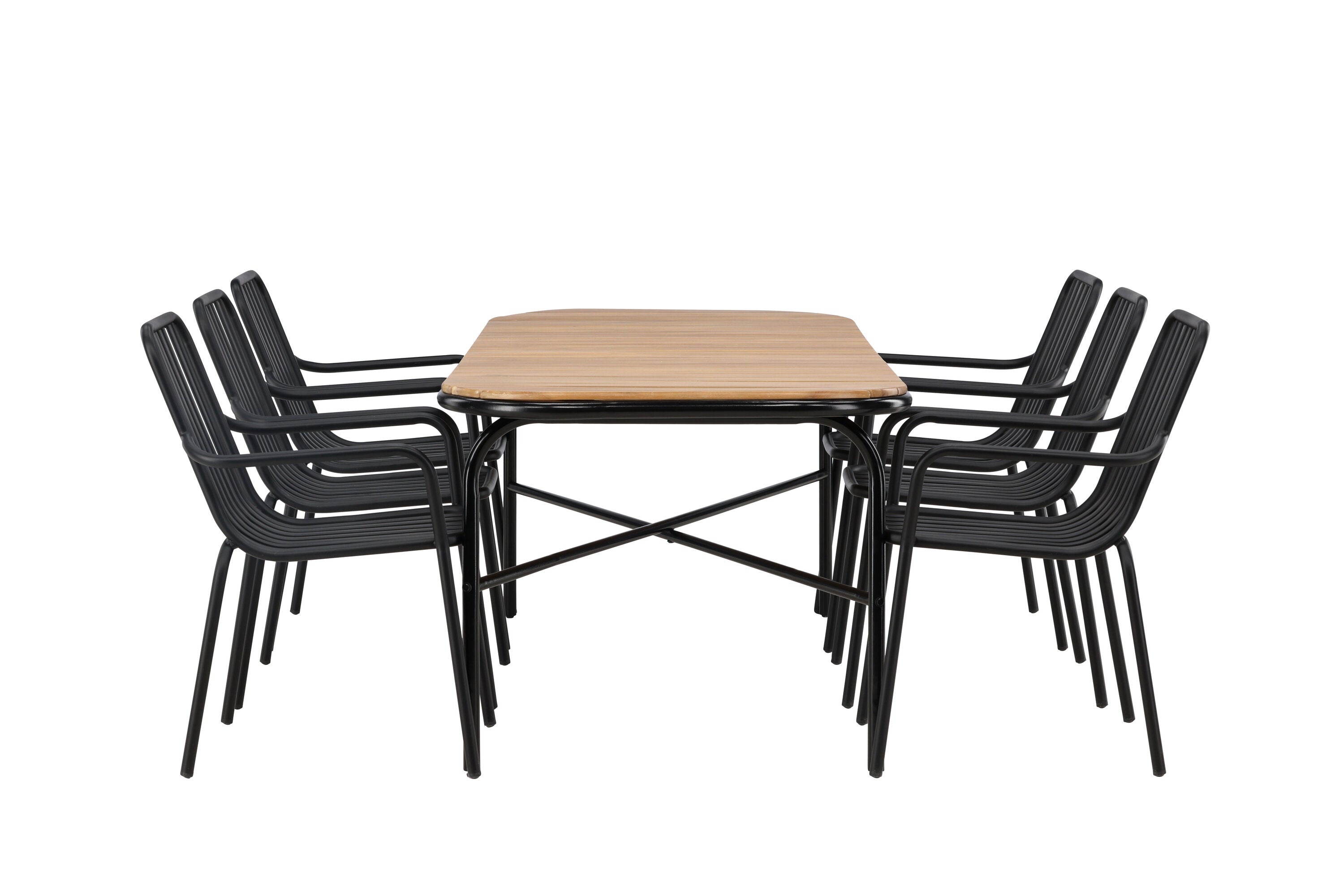 Ocelový jídelní stůl Holmbeck – černá / obdélníková 90*200*75 + hliníková jídelní židle Peking – černá / _6