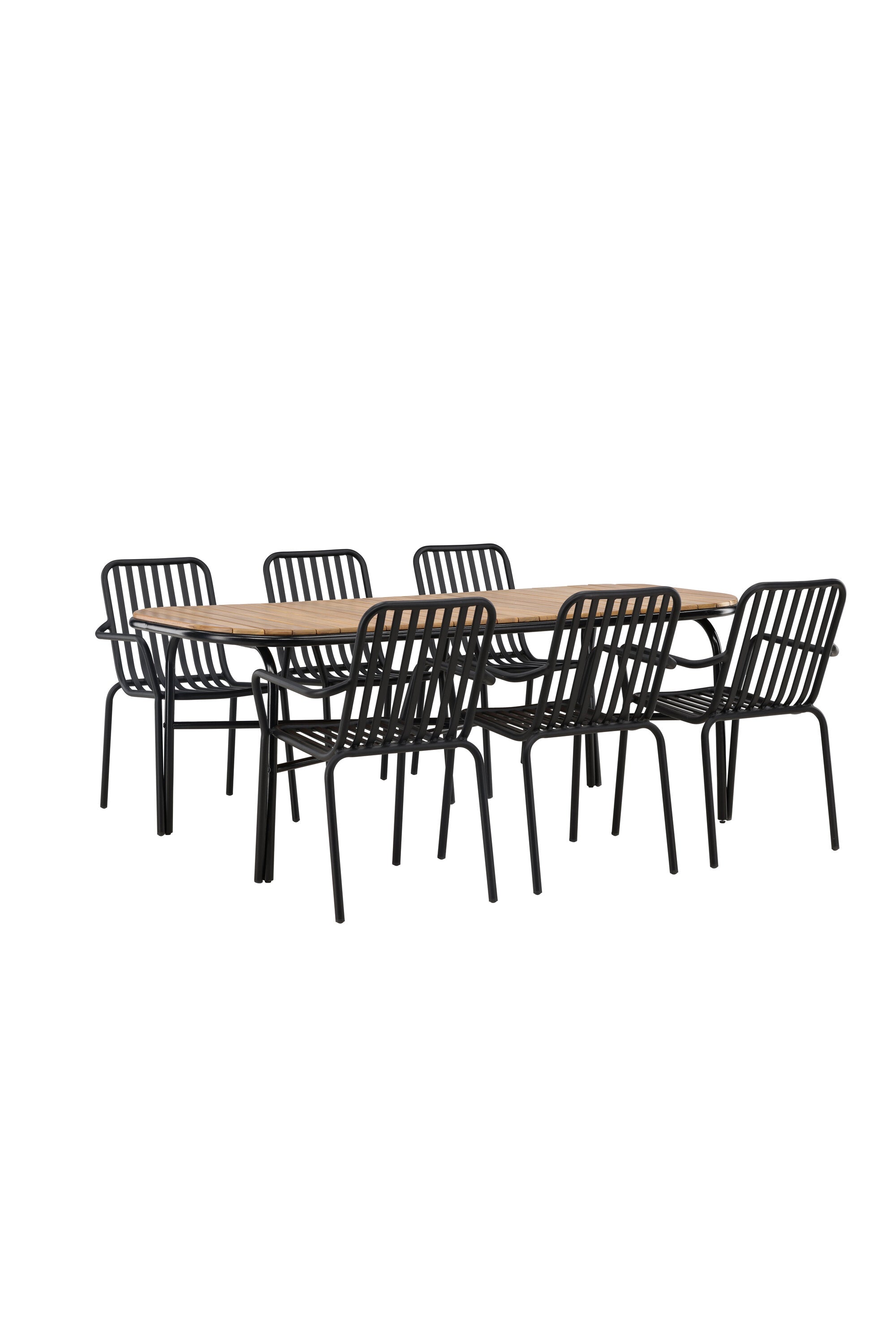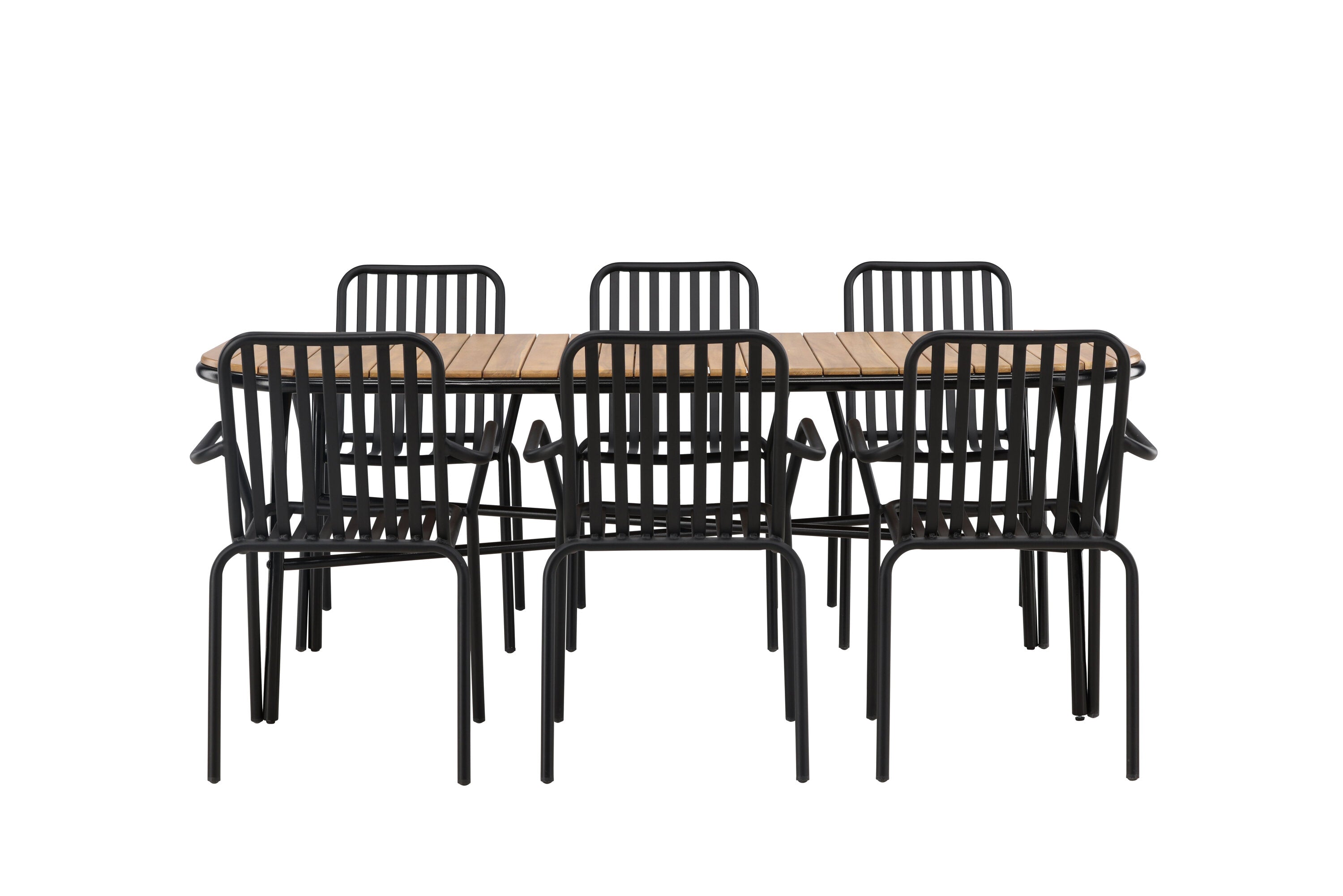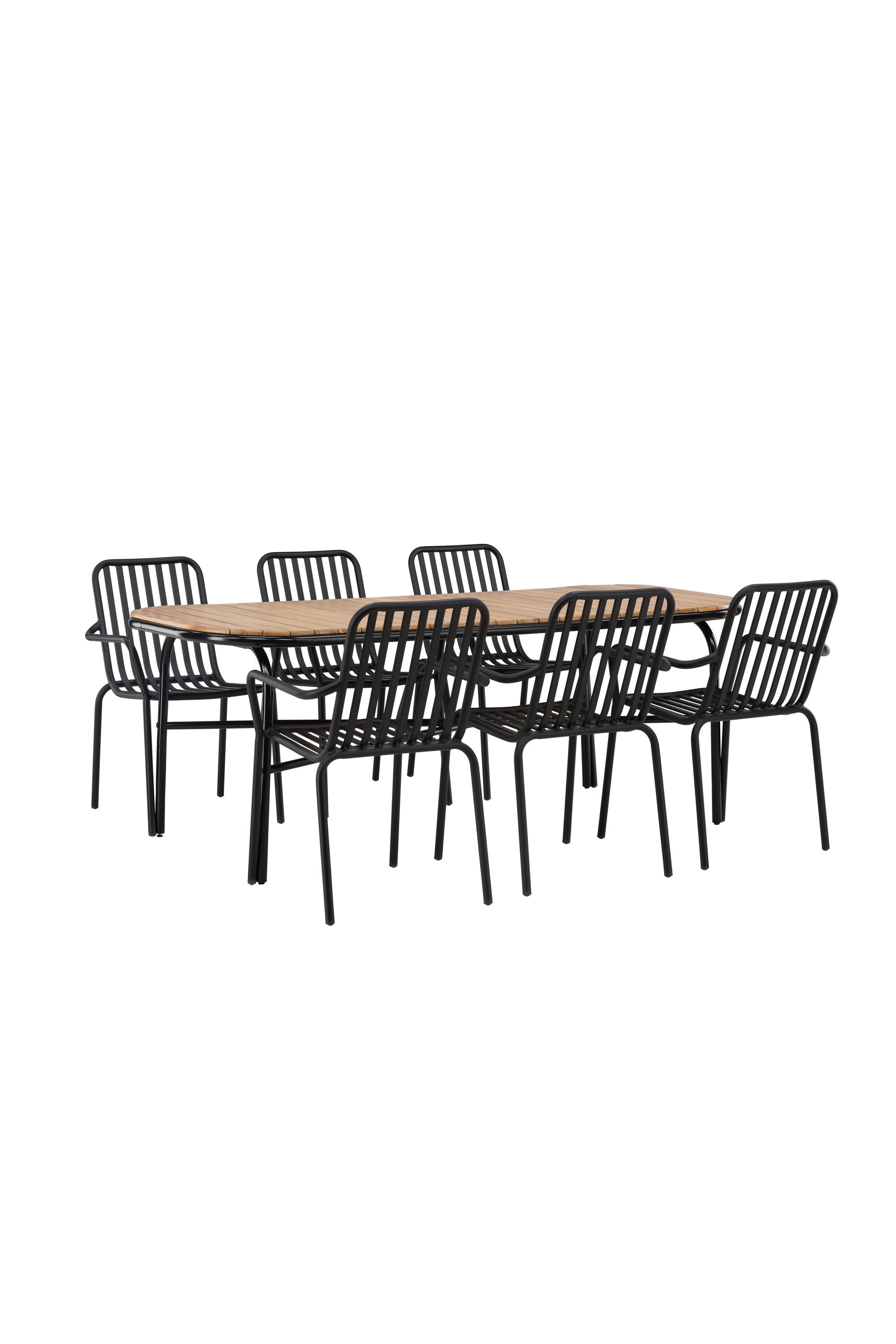 Vítejte doma ve stylové jídelně se všemi okouzlujícími funkcemi! Oblíbený jídelní stůl Holmbeck má obdélníkovou desku z elegantní akácie se zaoblenými hranami a minimalistickou základnu z černé oceli. Zde v dokonalé kombinaci s černými jídelními židlemi ze série Beijing. Díky žebrovanému designu a černé barvě židle působí moderně a nadčasově. Vyrobeno z hliníku, který usnadňuje pohyb a má integrované područky pro větší pohodlí. Nechť je čas zde vrcholem dne! Rozměry stolu: 200 x 90 x 75 cm.