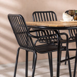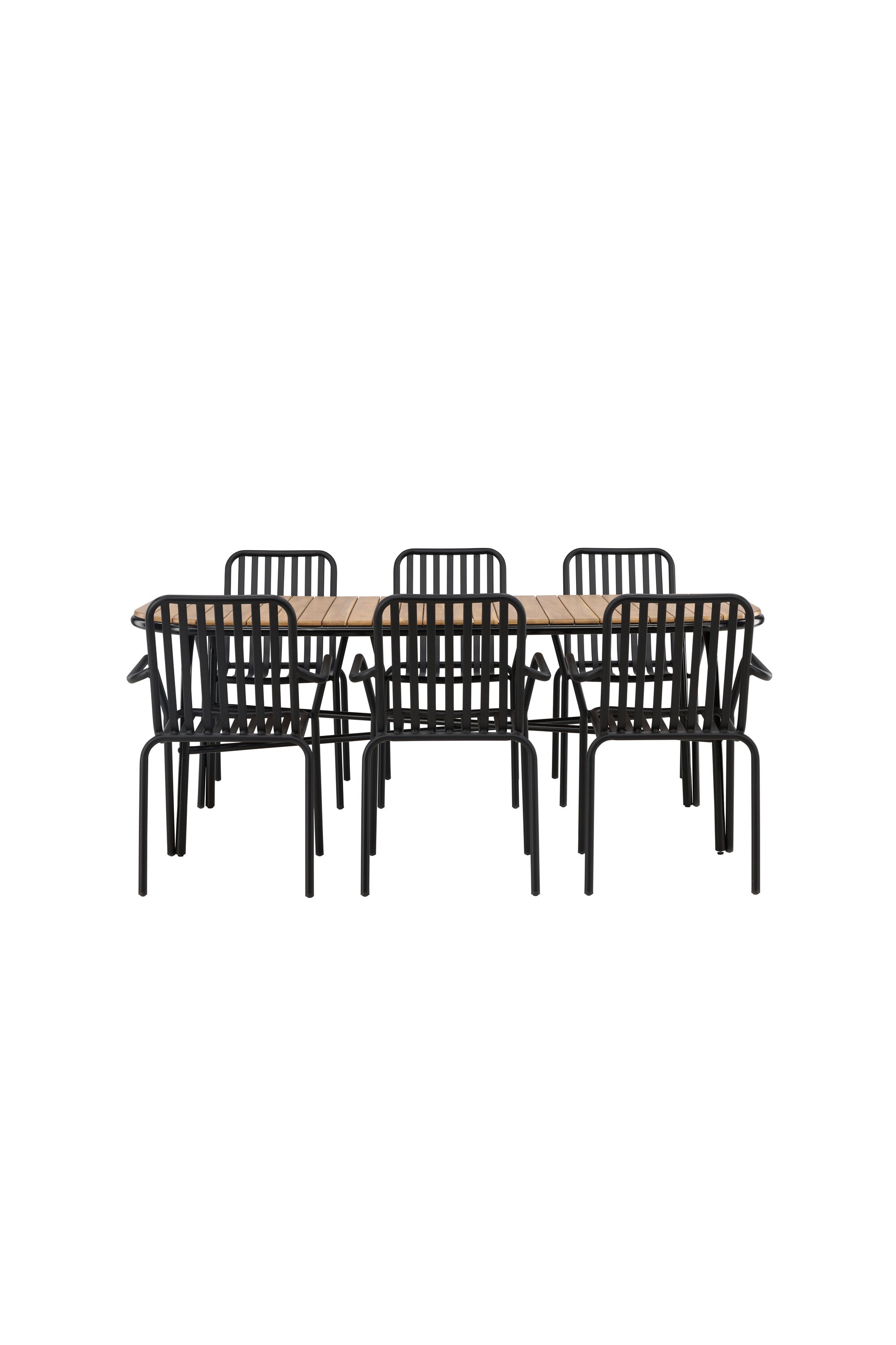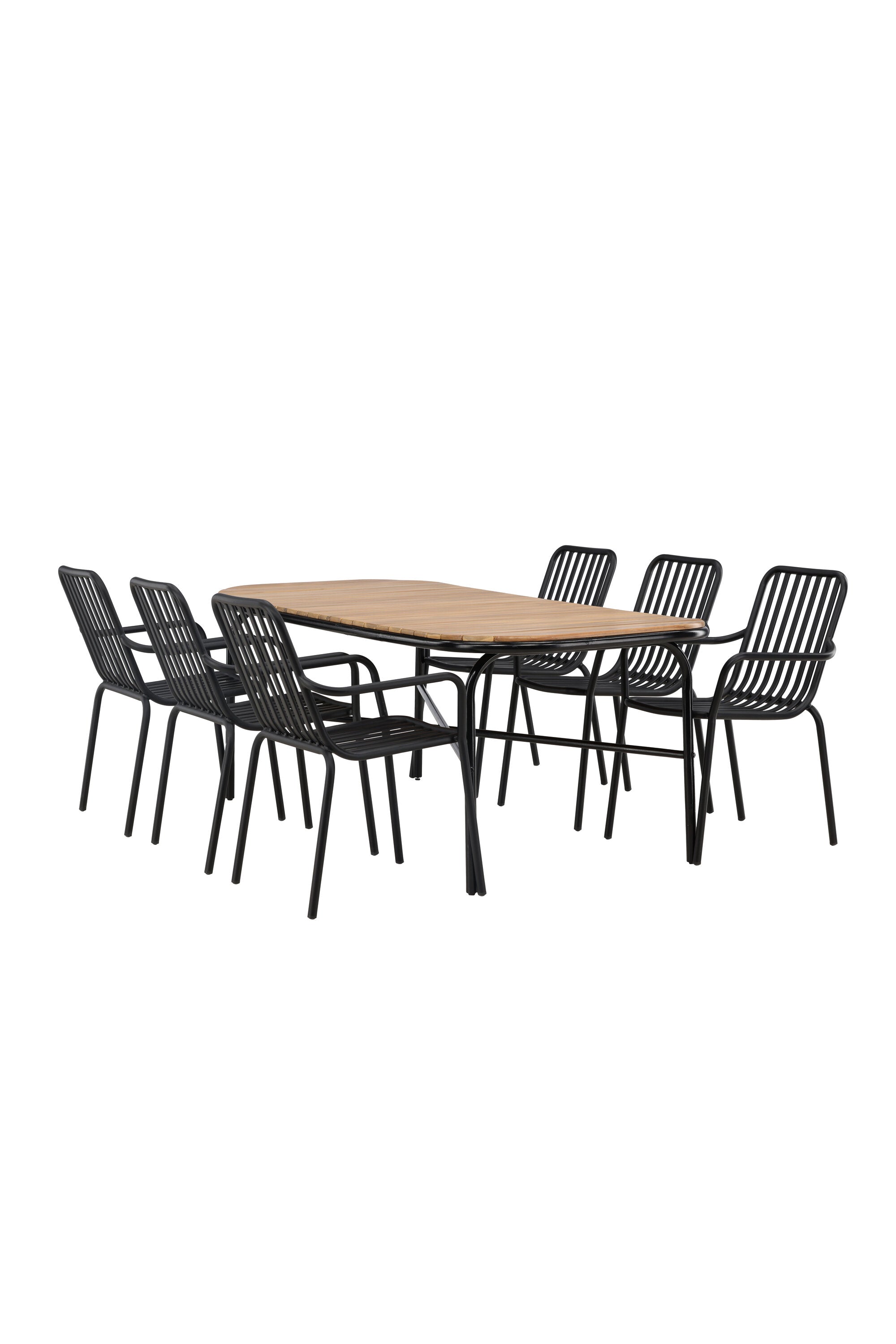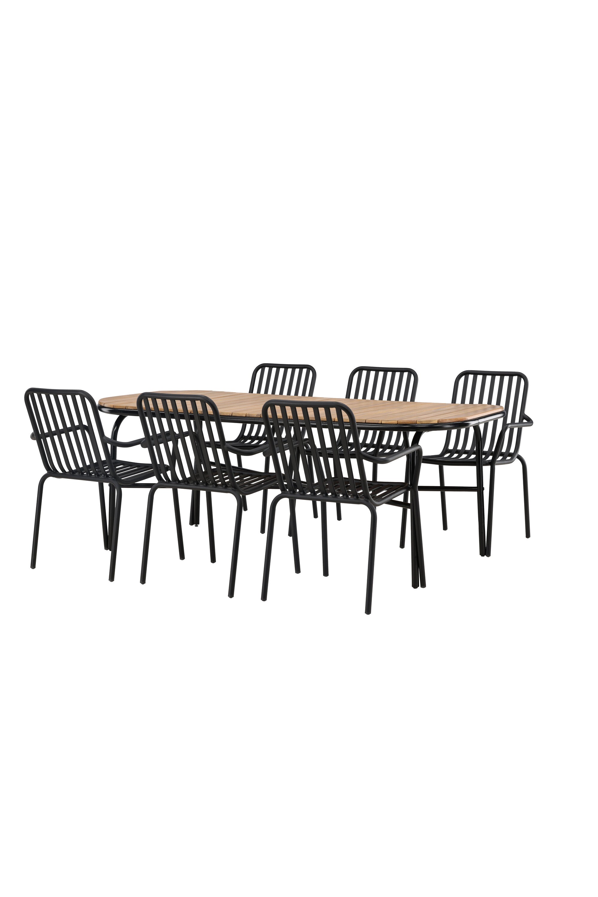 Vítejte doma ve stylové jídelně se všemi okouzlujícími funkcemi! Oblíbený jídelní stůl Holmbeck má obdélníkovou desku z elegantní akácie se zaoblenými hranami a minimalistickou základnu z černé oceli. Zde v dokonalé kombinaci s černými jídelními židlemi ze série Beijing. Díky žebrovanému designu a černé barvě židle působí moderně a nadčasově. Vyrobeno z hliníku, který usnadňuje pohyb a má integrované područky pro větší pohodlí. Nechť je čas zde vrcholem dne! Rozměry stolu: 200 x 90 x 75 cm.