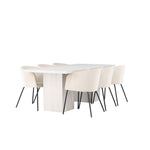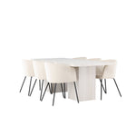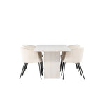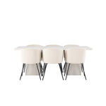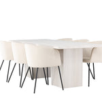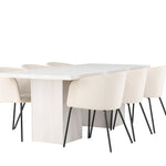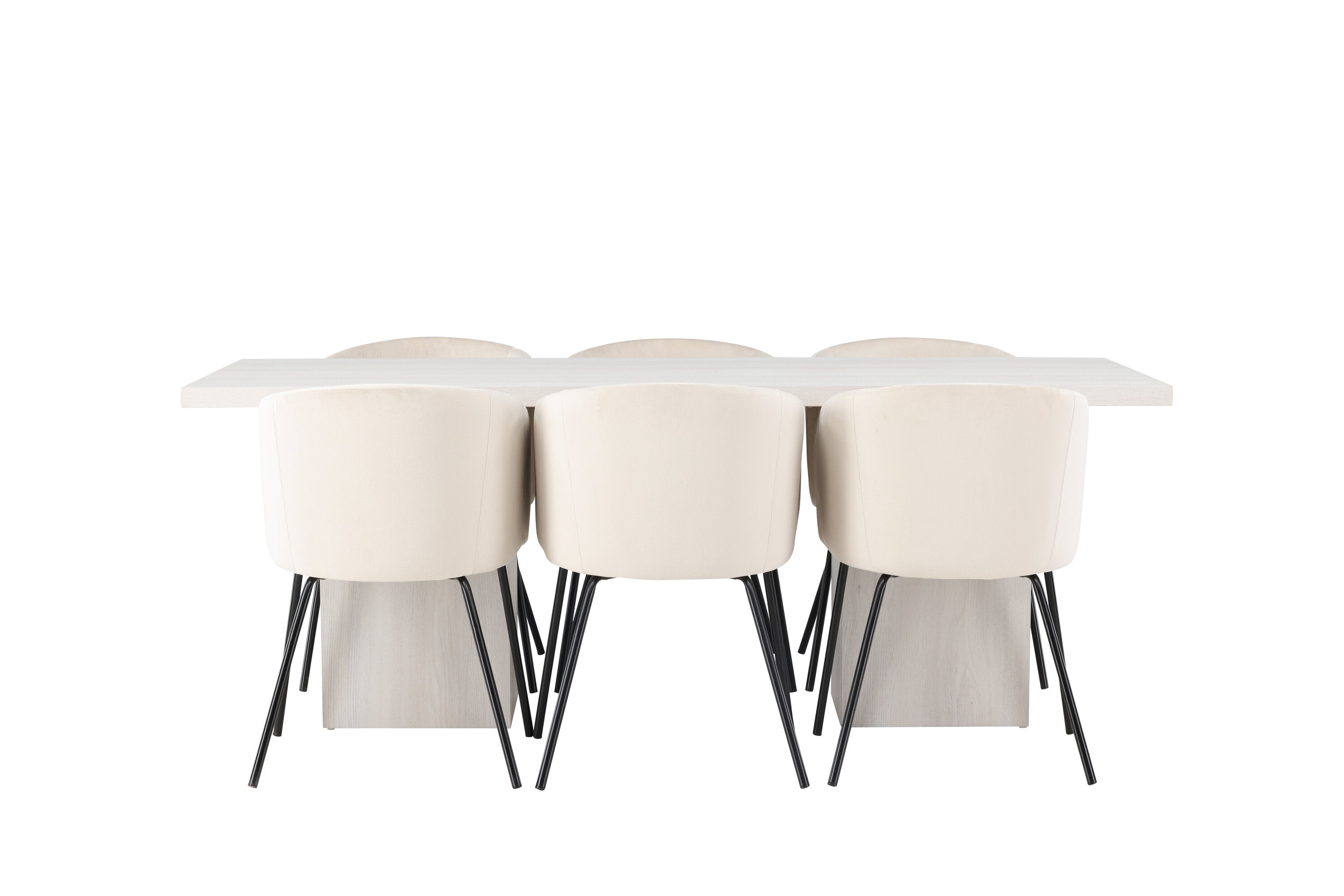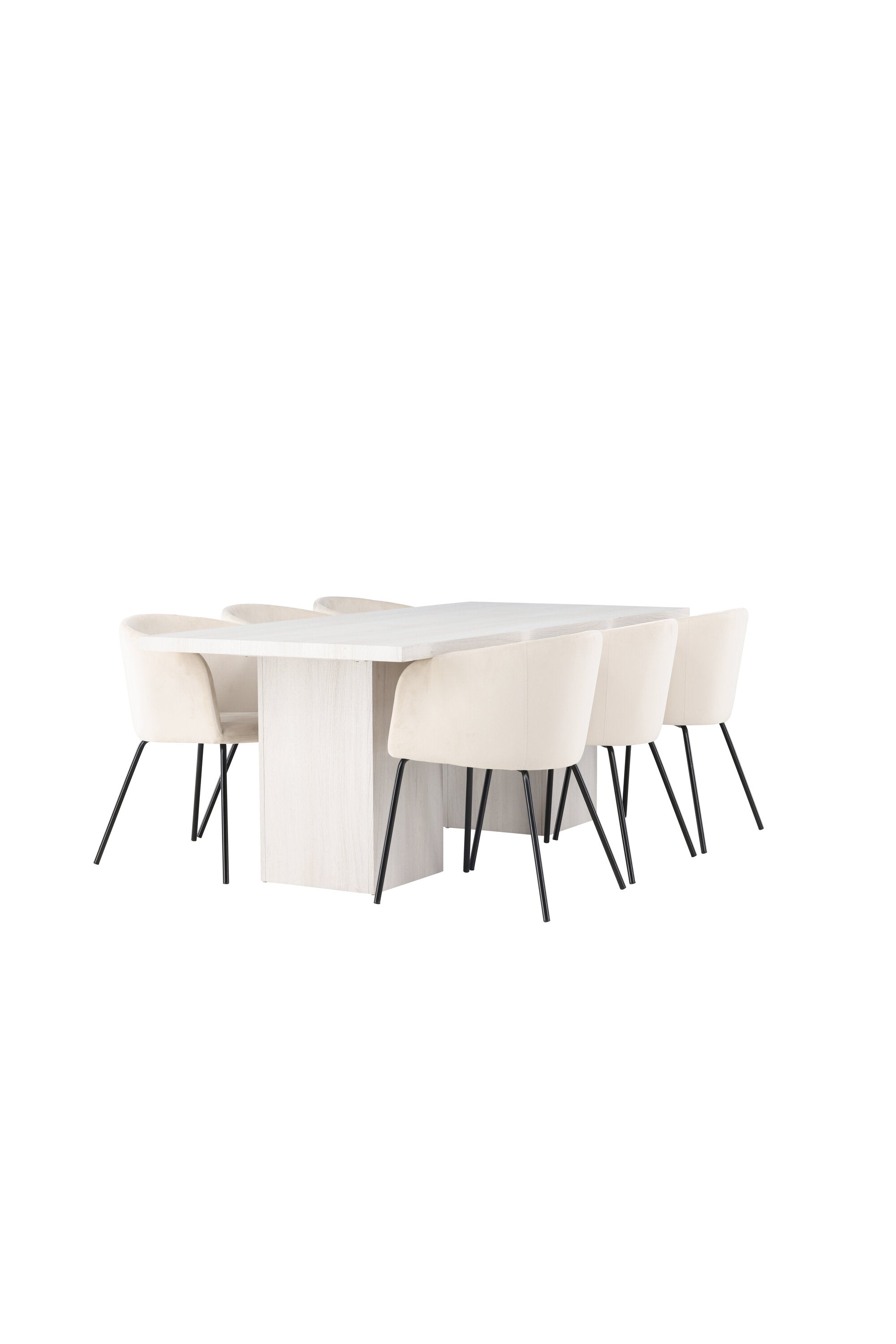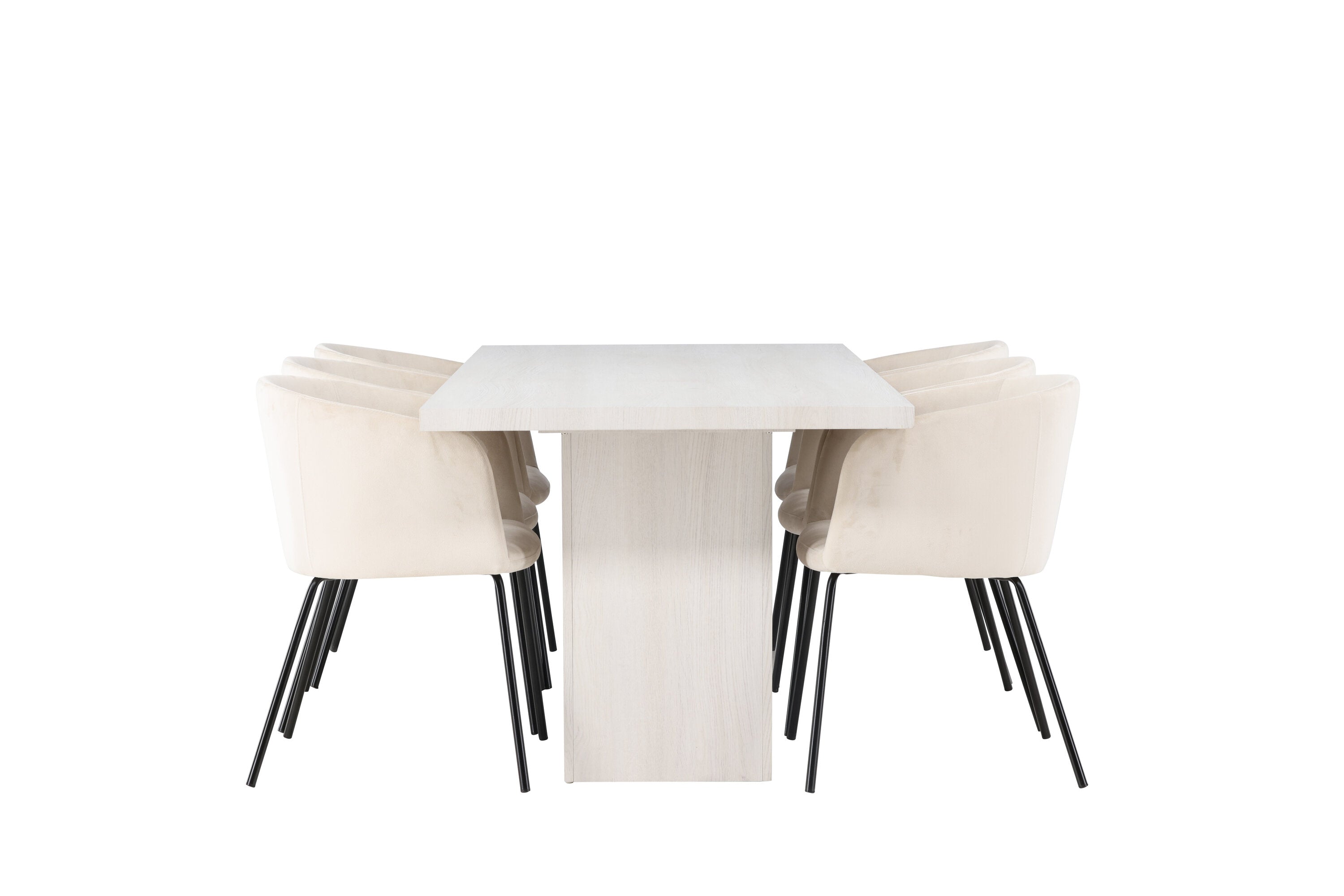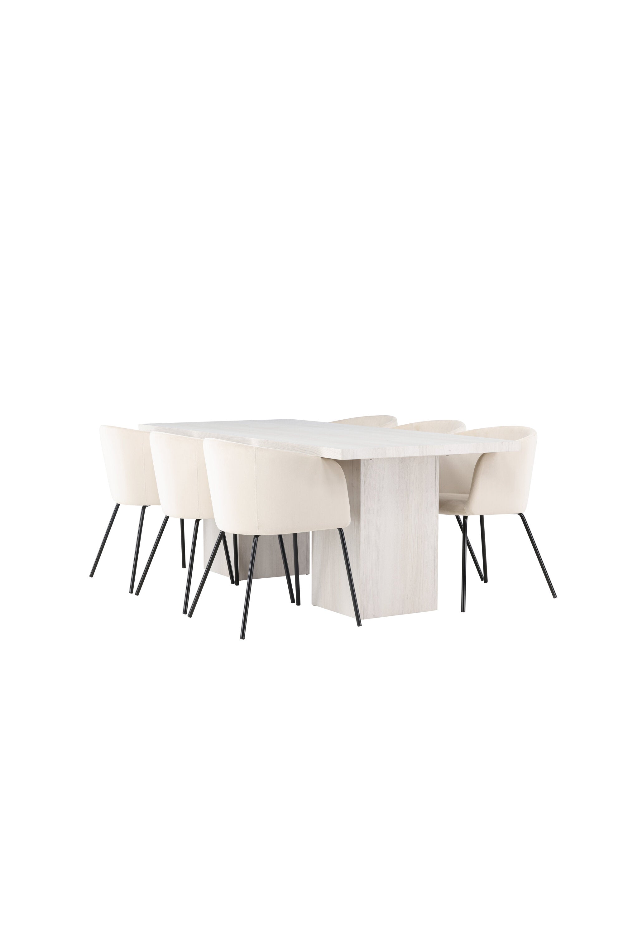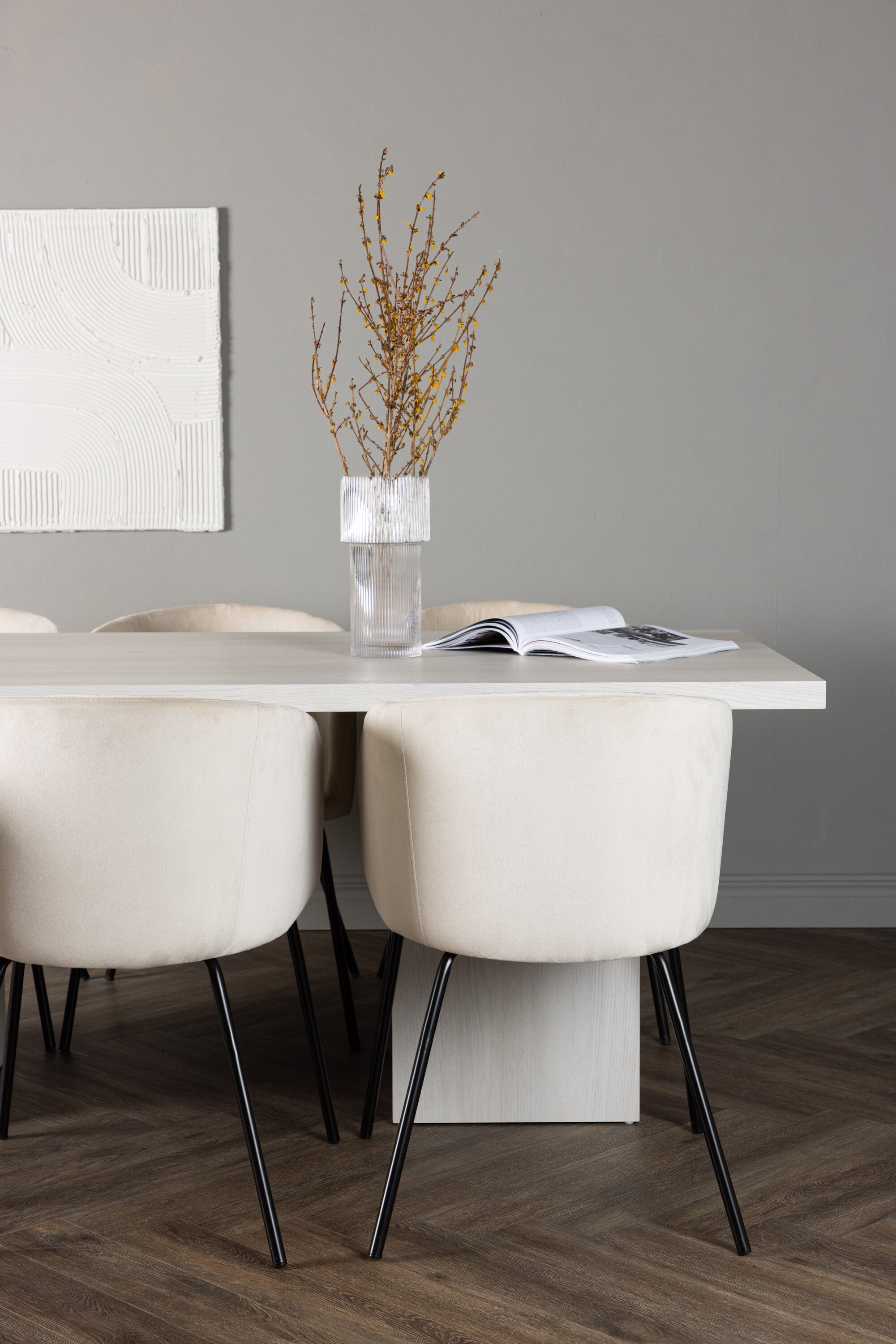 Olga Jídelní stůl 200*75 - White Wash + Židle Berit - Černá / Béžová Velvet _6