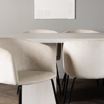 Jídelní stůl Olga a židle Berit společně vytvářejí dokonalou atmosféru pro večeře a společenská setkání. V tomto elegantním jídelním setu budete okamžitě vyzváni, abyste se posadili a vychutnali si každý okamžik!