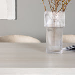 Náš robustní jídelní stůl Olga se rychle stane oblíbeným díky své bílé úpravě a modernímu skandinávskému designu. Stůl má obdélníkovou desku z bíle natřené MDF desky, která do vašeho pokoje vnese pocit světla a svěžesti. Dvě robustní nohy stolu mají tvar bloků a dokonale ladí s deskou stolu a vytvářejí soudržný a moderní vzhled. Rozměry stolu: 200x75cm.