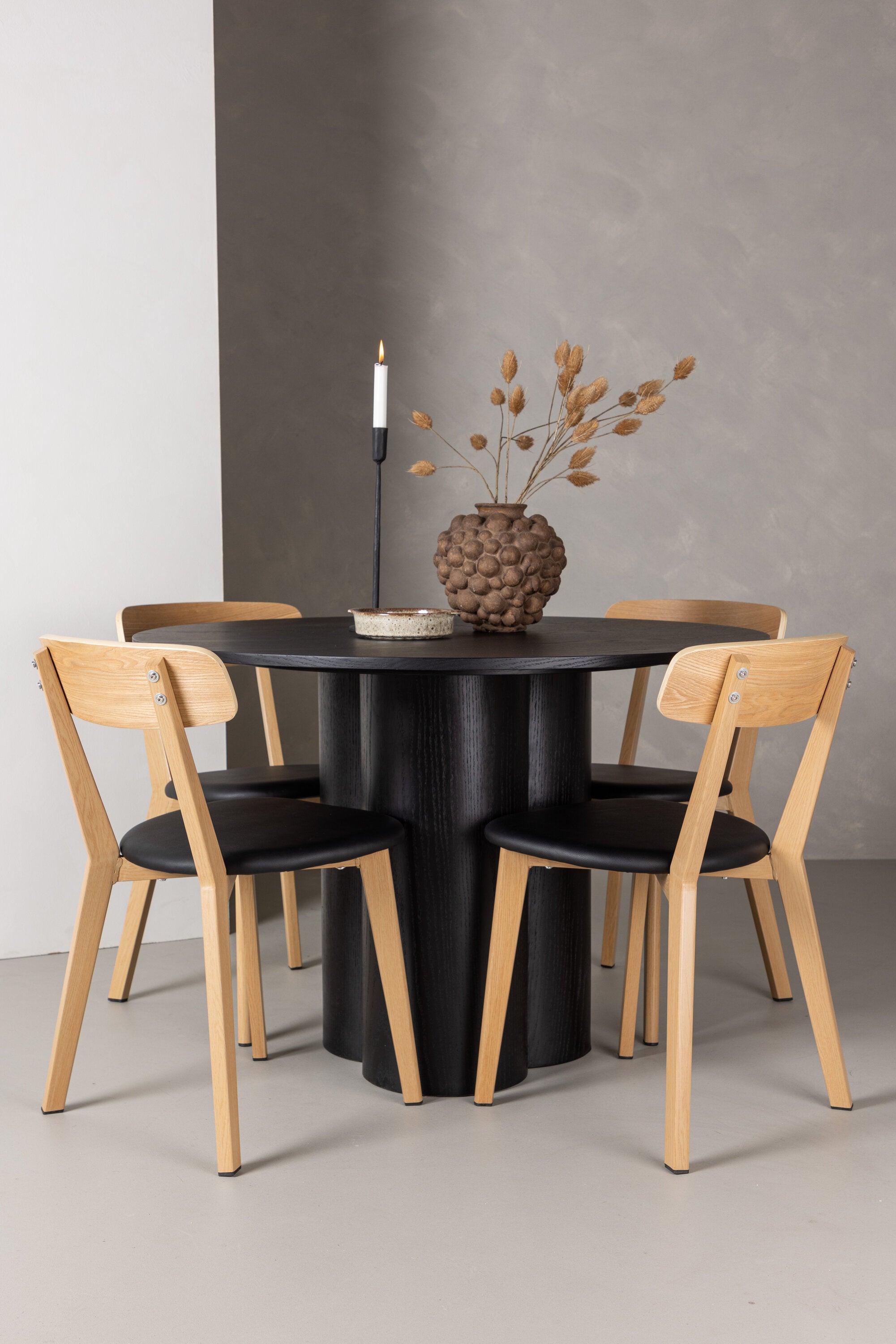 OliviaJídelní stůl-Black/BlackVeneer+SanjosJídelní židle-Oaklook/BlackPU_4