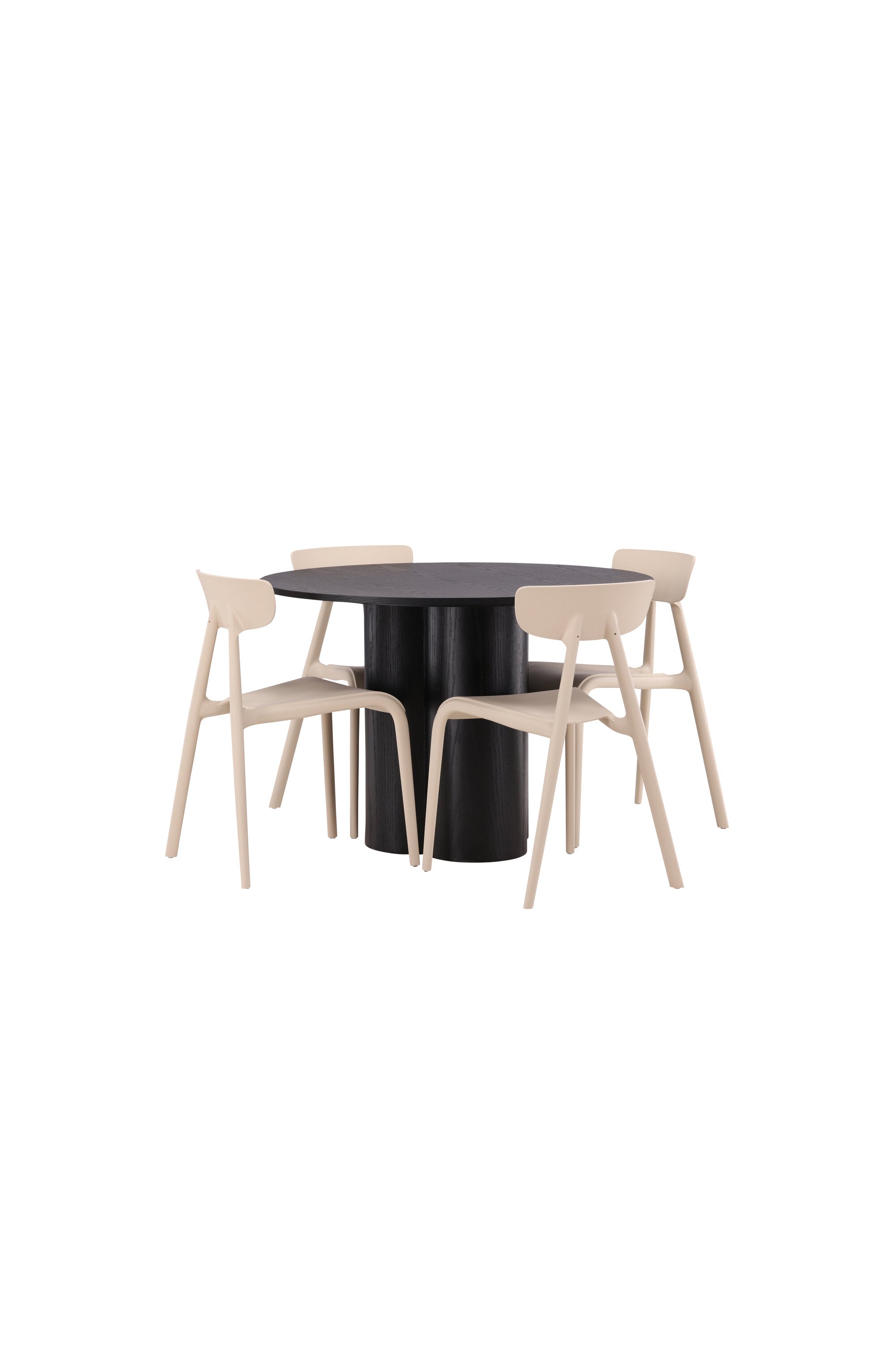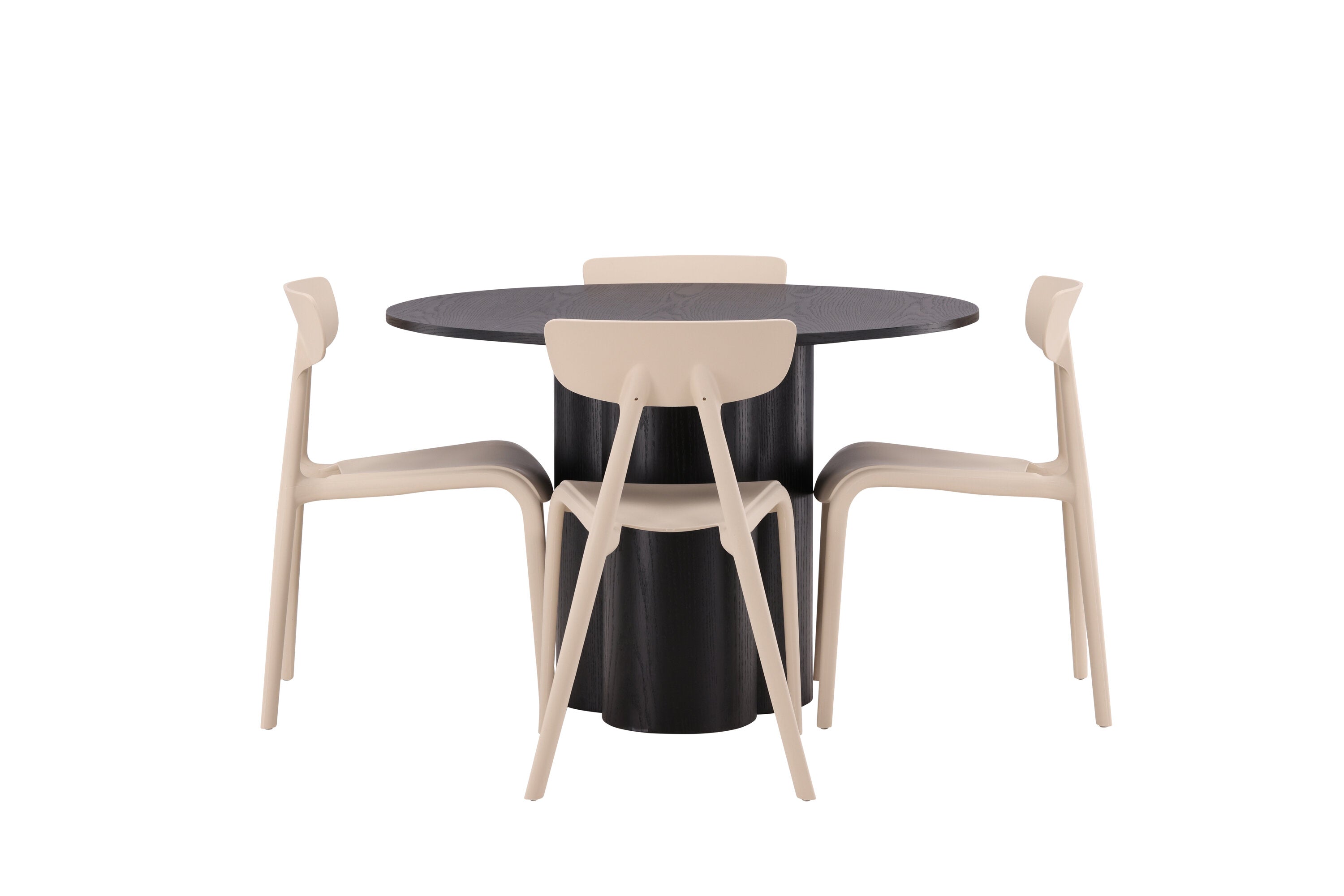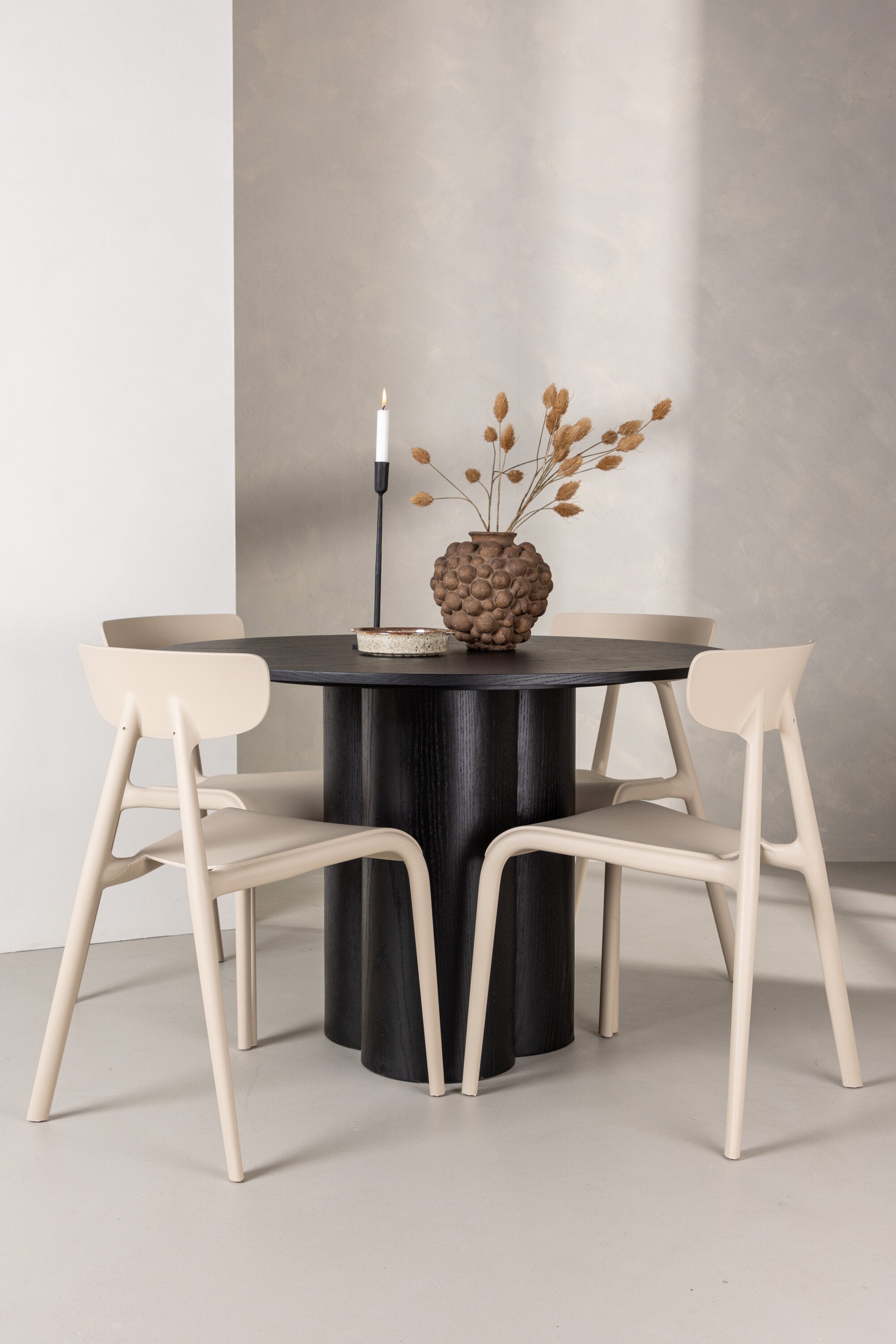 Je to zápas! Vychutnejte si příjemná jídla u našeho oblíbeného jídelního stolu Olivia. Stůl má konzistentně holistický design v černé MDF s tenkou, kulatou deskou a třemi nohami ve tvaru válce, které jsou shromážděny pod středem stolu. Barva má na dýhované desce světlý obal, který zviditelní vzor materiálu a dodá nábytku pohyb. Zde společně s moderními jídelními židlemi ze série Ursholmen. Vyrobeno z odolného plastu v krásné béžové barvě, kterou lze snadno sladit s ostatním nábytkem. Vyhněte se kompromisům mezi stylem a vhodností!