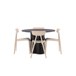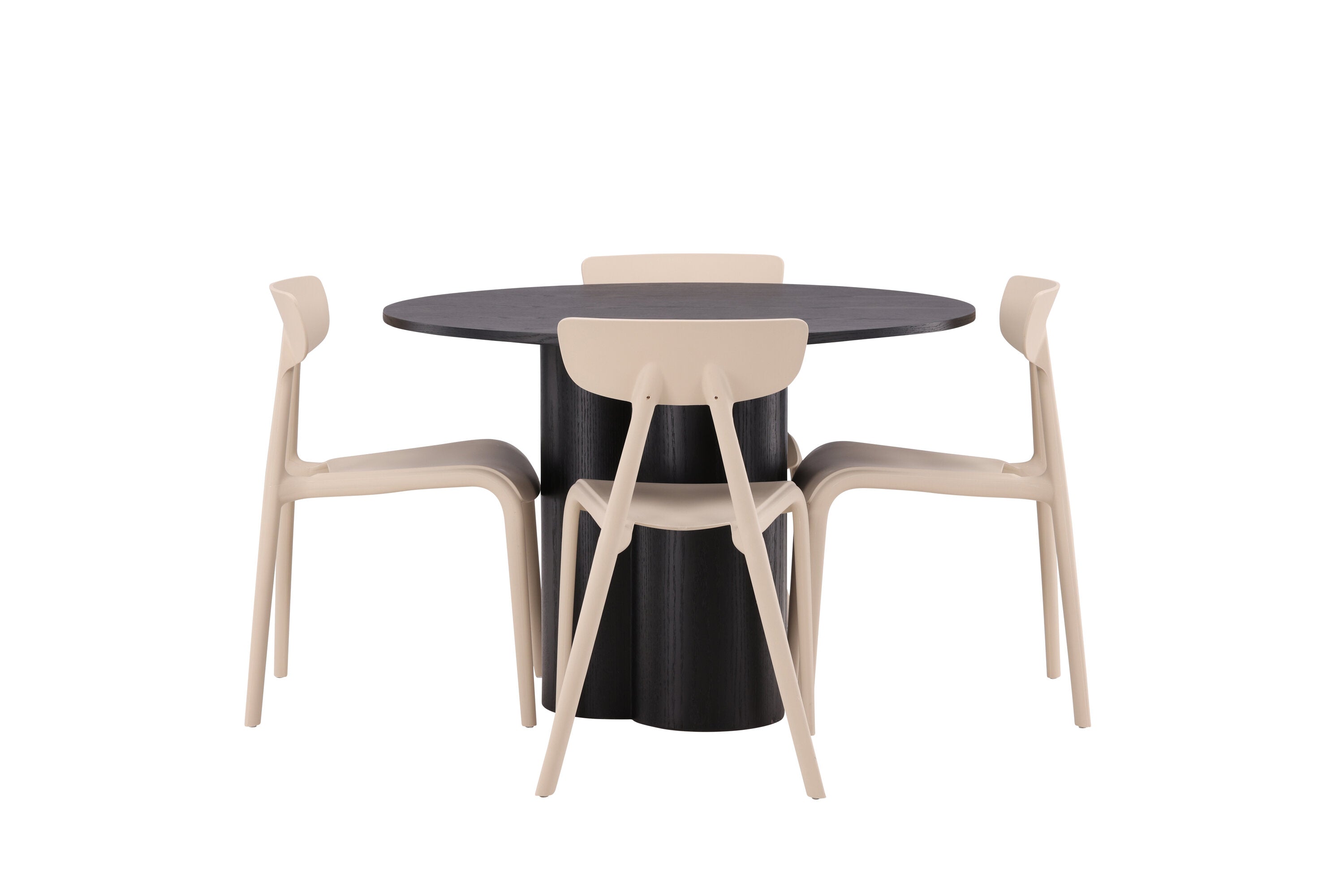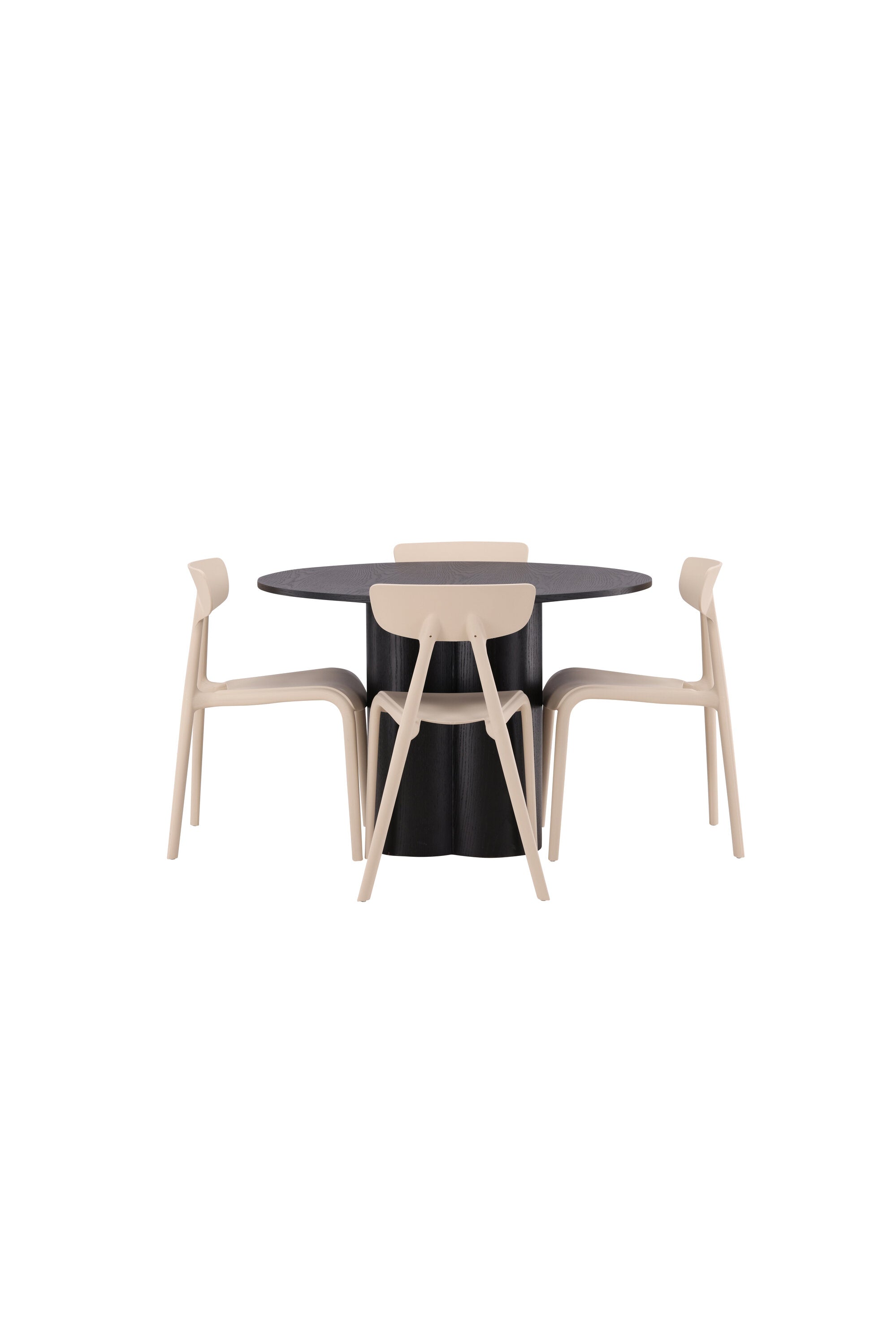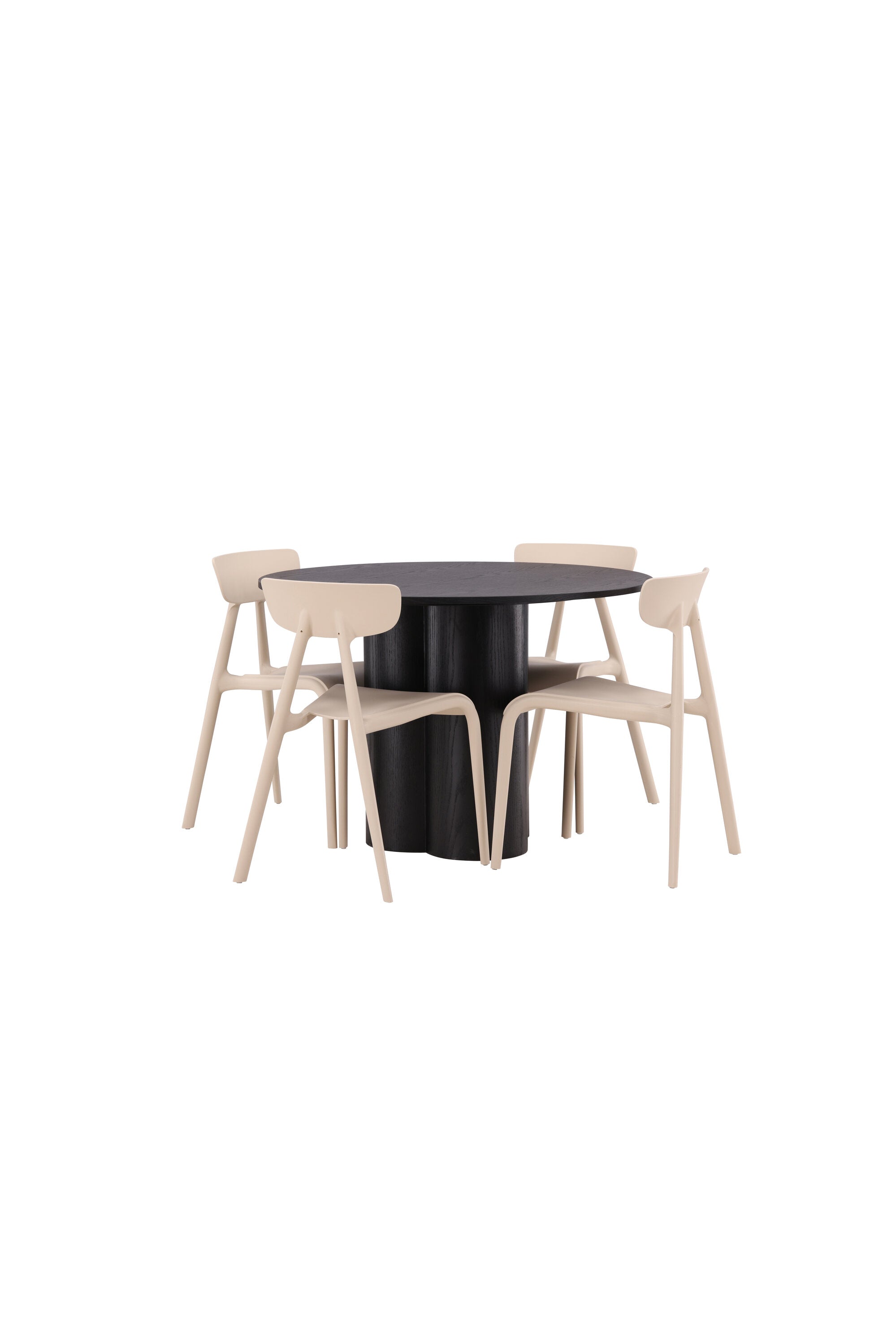 Je to zápas! Vychutnejte si příjemná jídla u našeho oblíbeného jídelního stolu Olivia. Stůl má konzistentně holistický design v černé MDF s tenkou, kulatou deskou a třemi nohami ve tvaru válce, které jsou shromážděny pod středem stolu. Barva má na dýhované desce světlý obal, který zviditelní vzor materiálu a dodá nábytku pohyb. Zde společně s moderními jídelními židlemi ze série Ursholmen. Vyrobeno z odolného plastu v krásné béžové barvě, kterou lze snadno sladit s ostatním nábytkem. Vyhněte se kompromisům mezi stylem a vhodností!