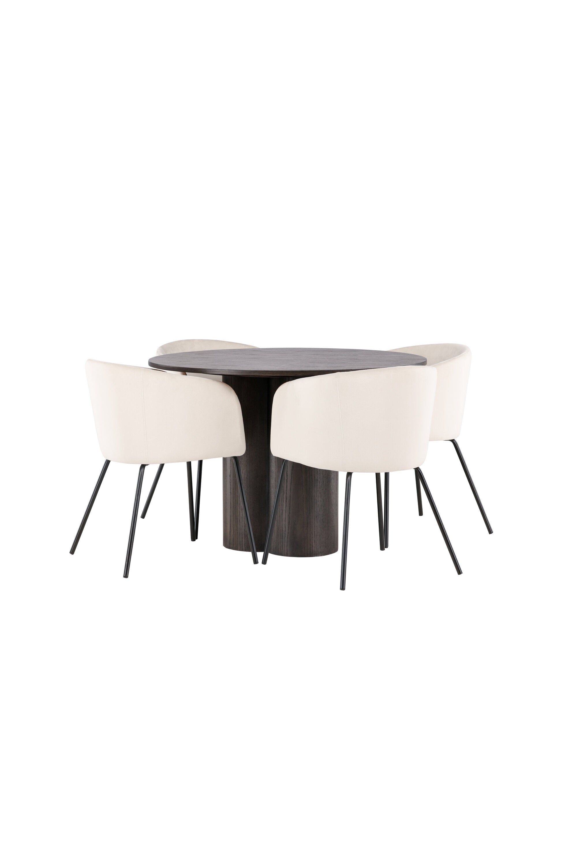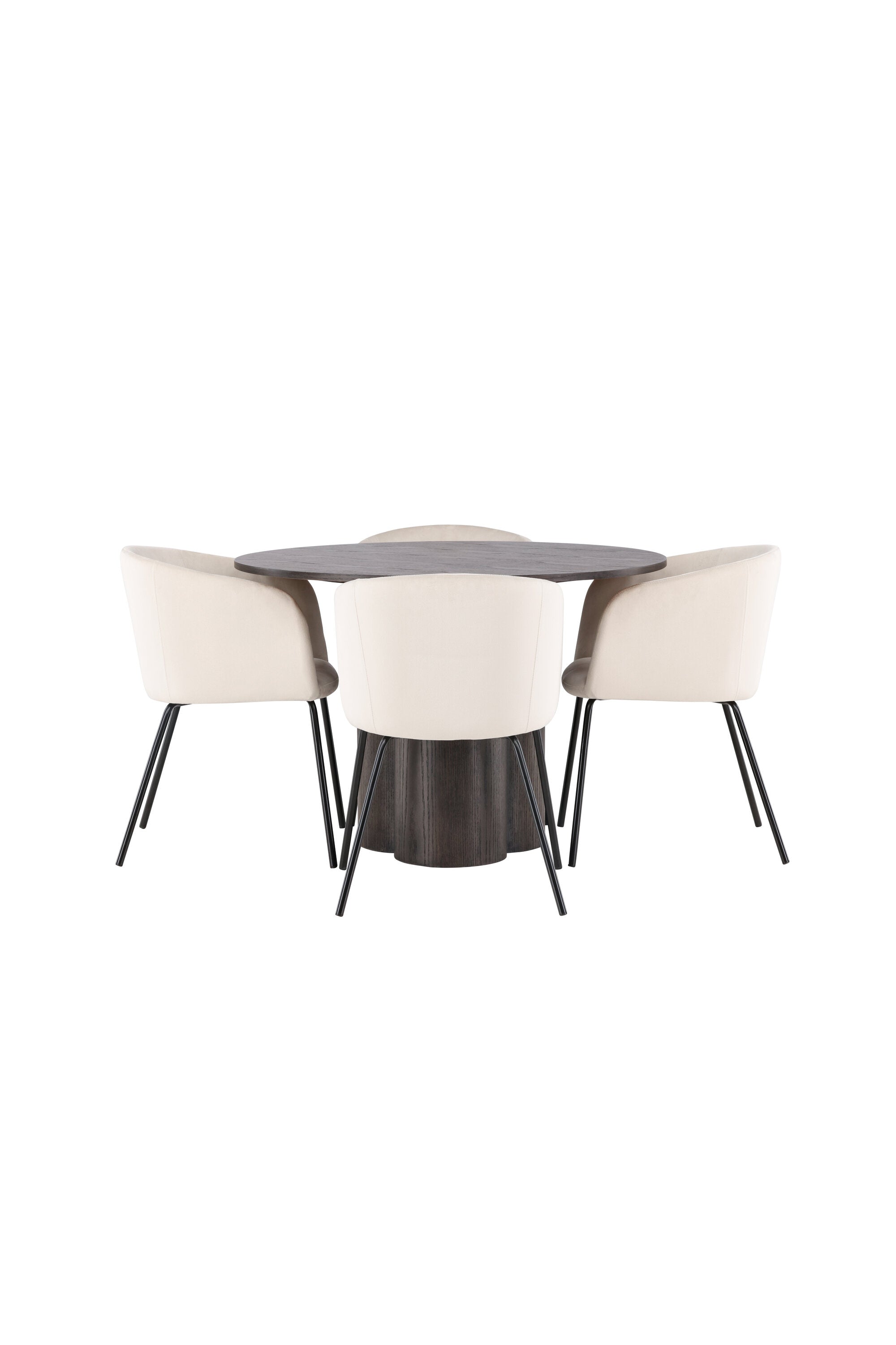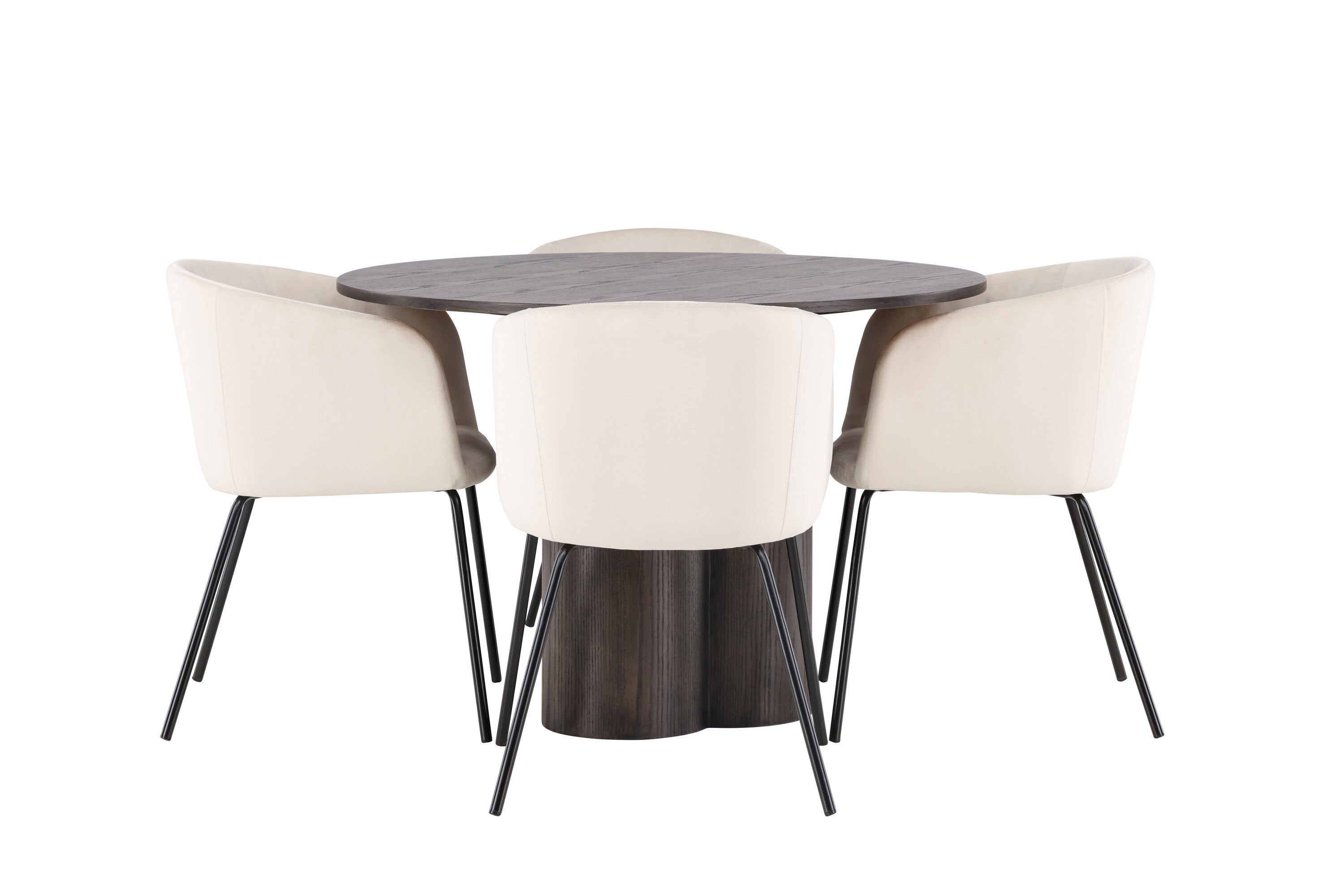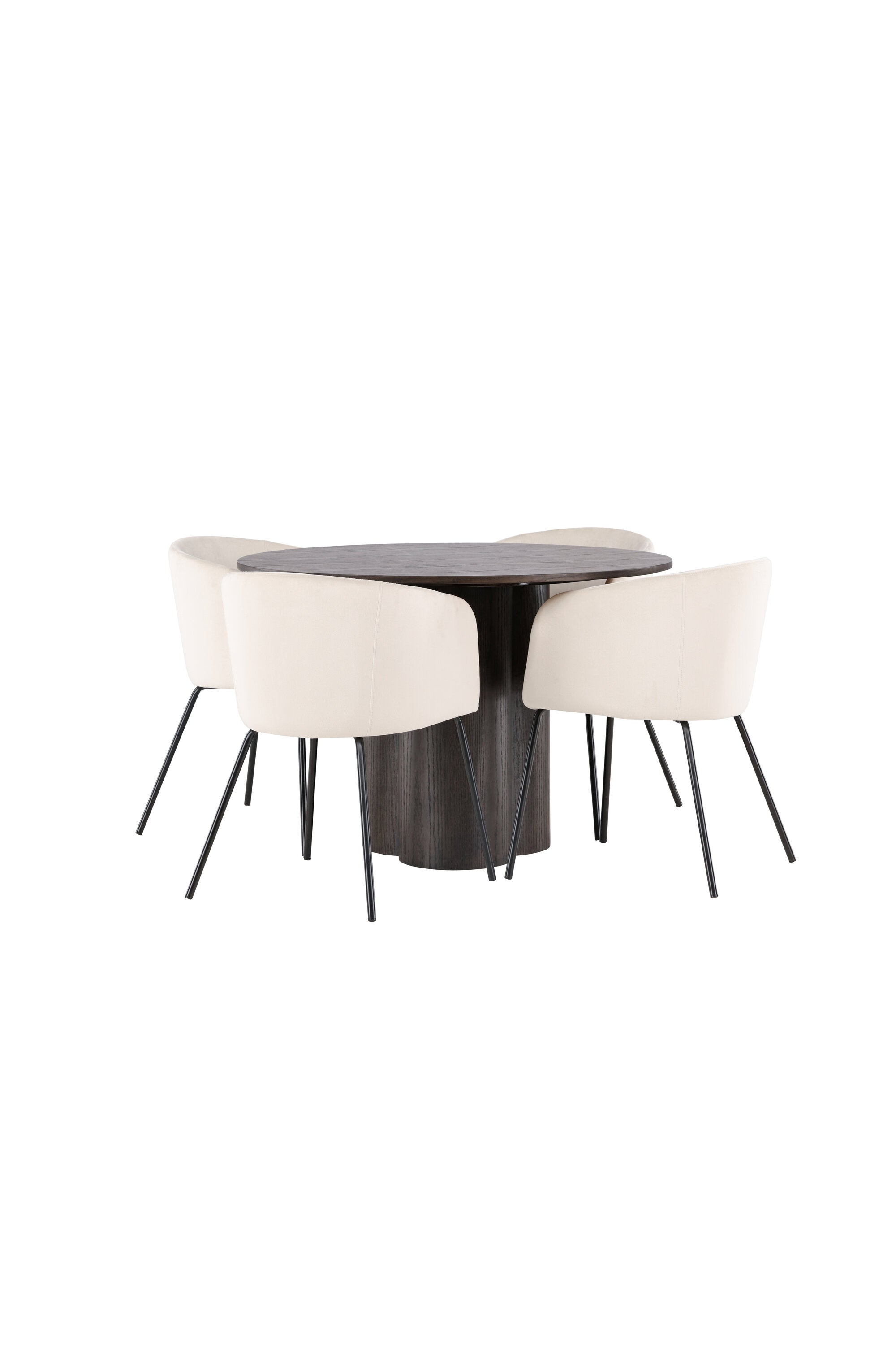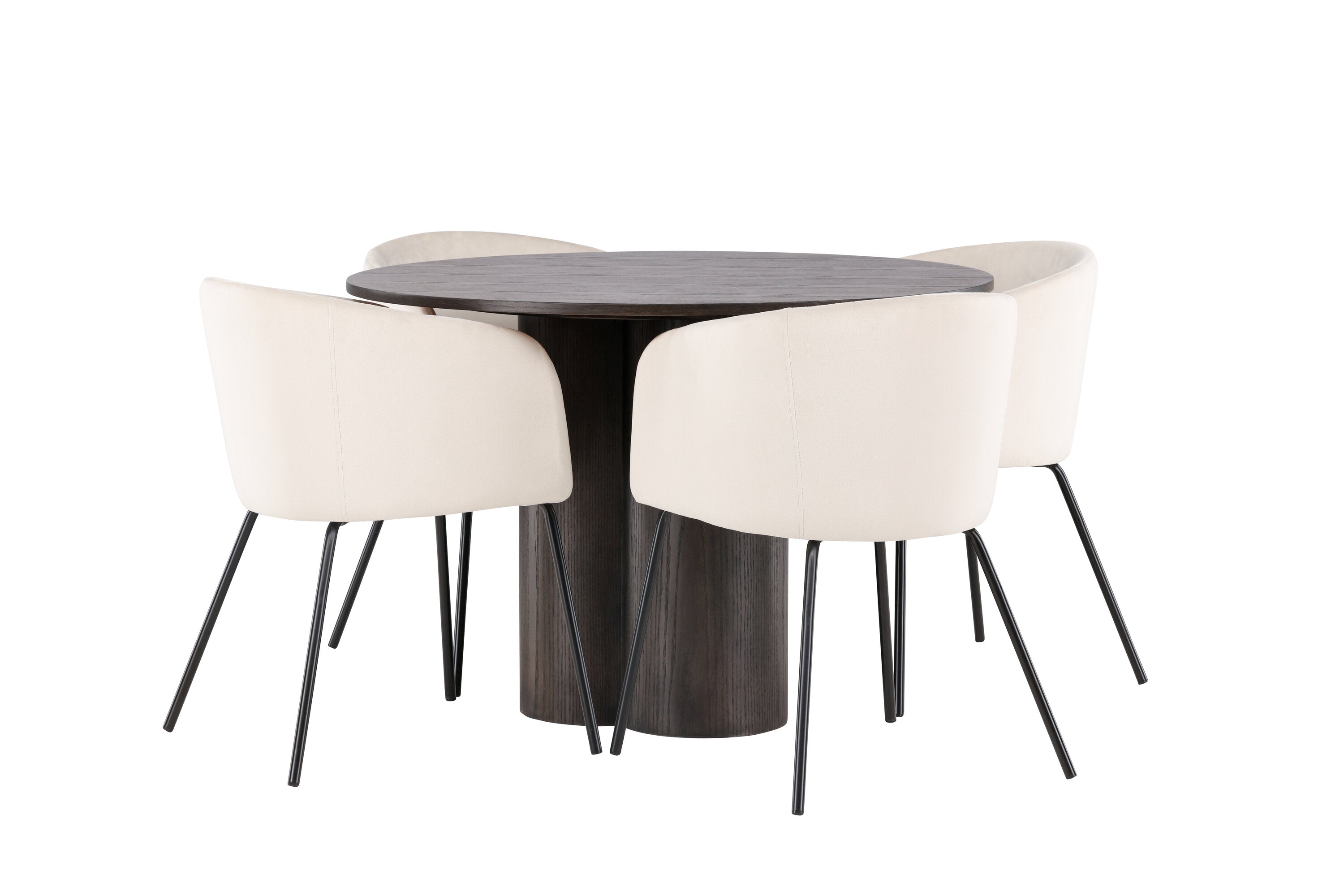 OliviaJídelní stůl-Mocca/MoccaVeneer+BeritChair-Black/BeigeVelvet_4