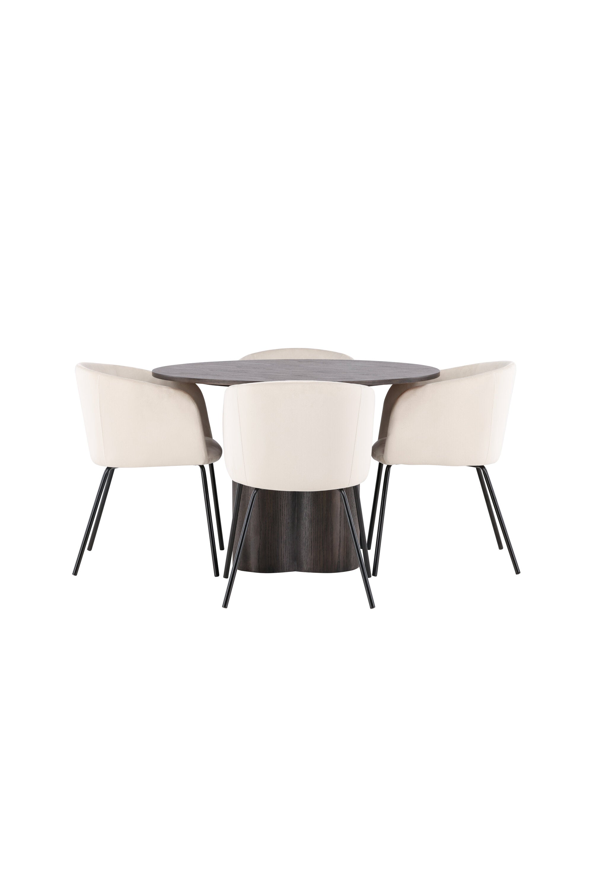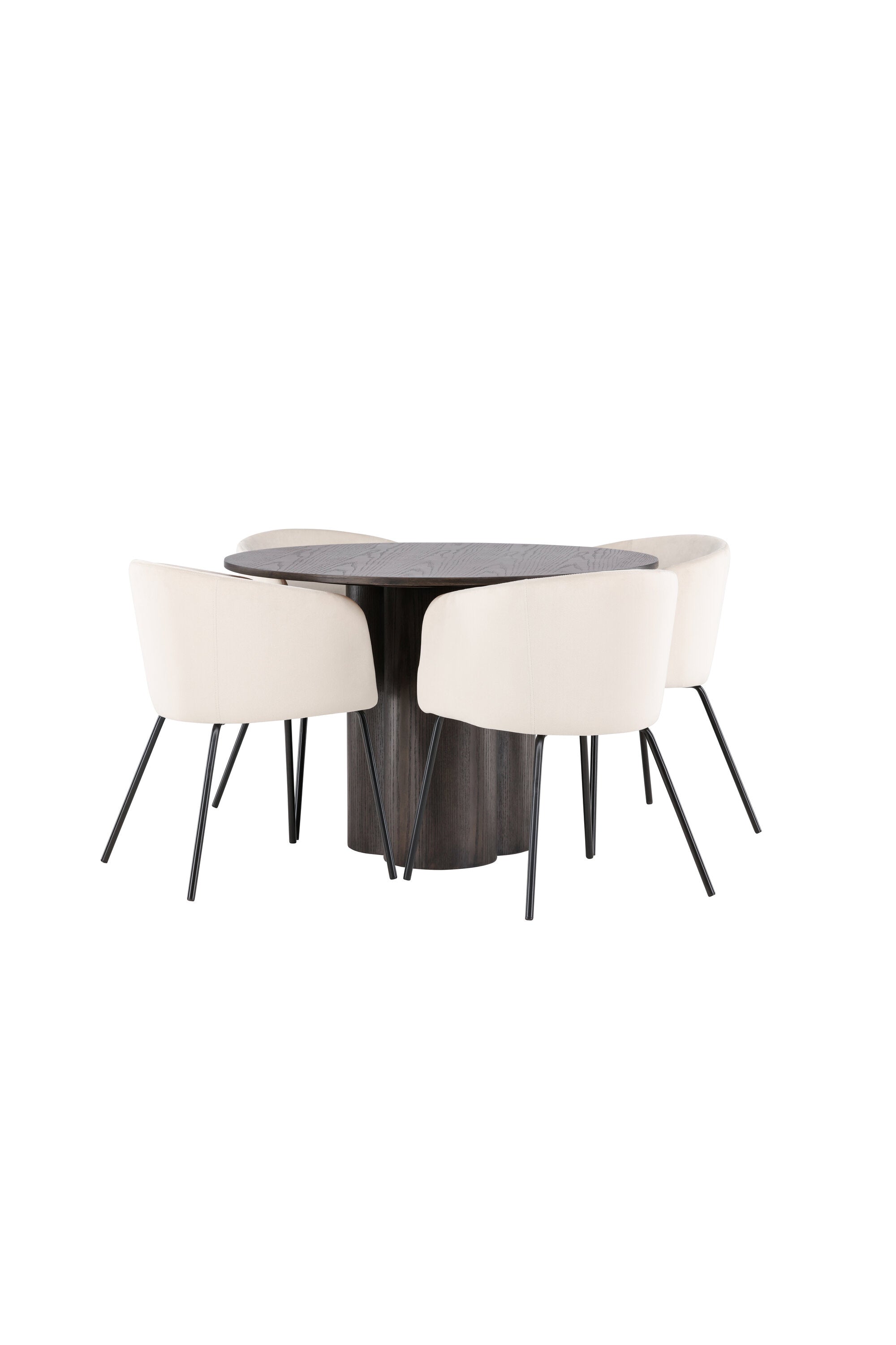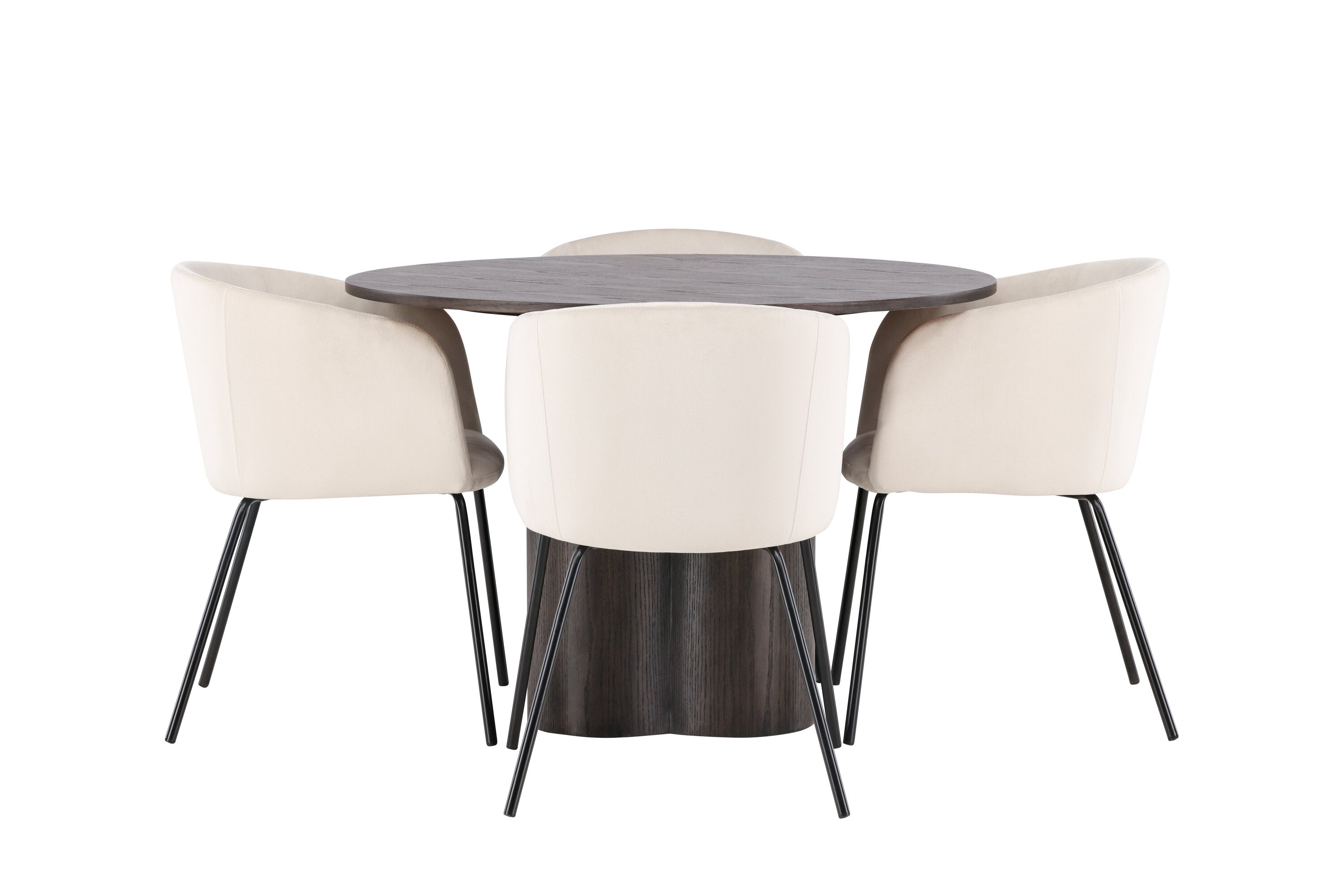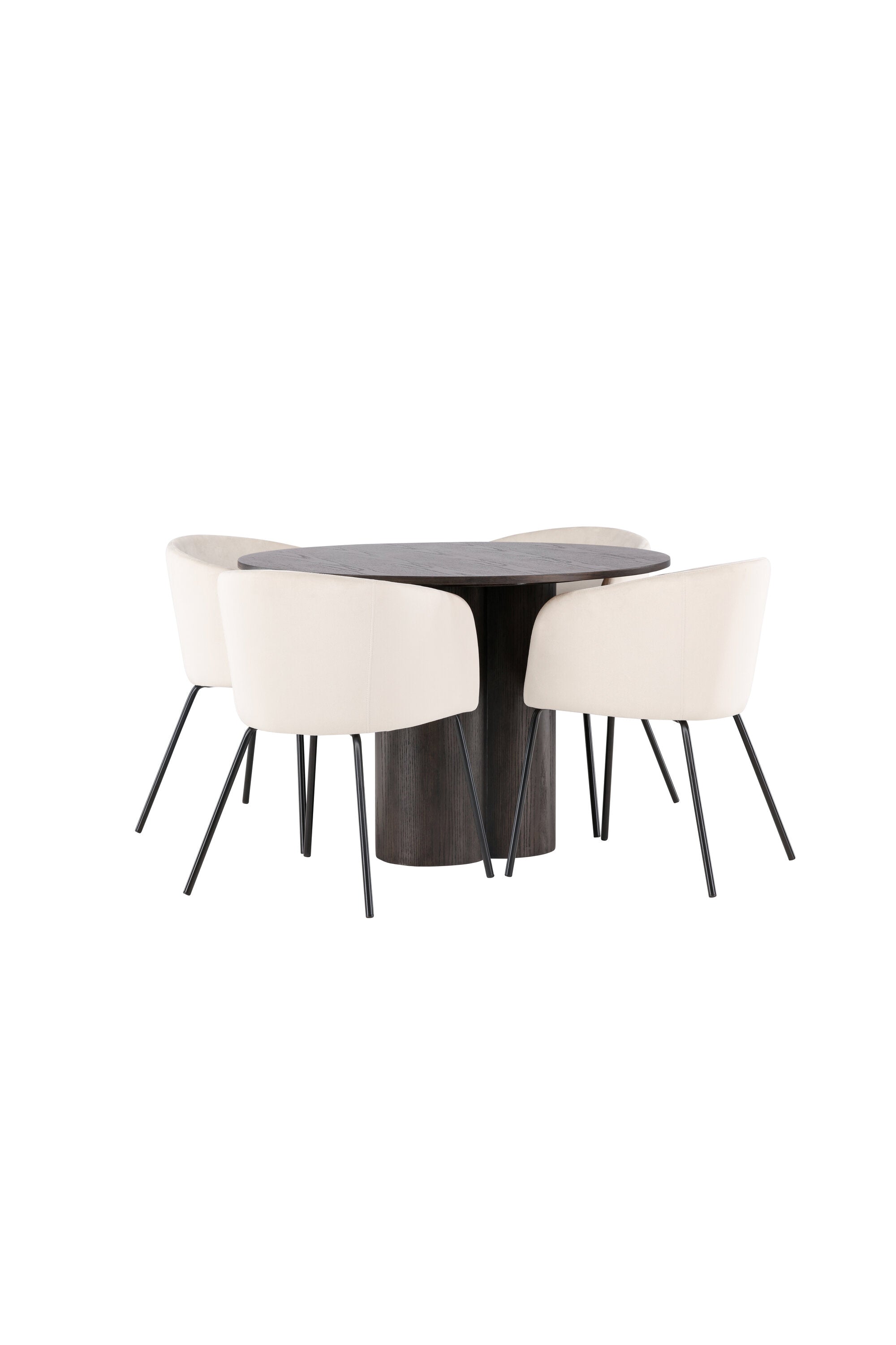 OliviaJídelní stůl-Mocca/MoccaVeneer+BeritChair-Black/BeigeVelvet_4