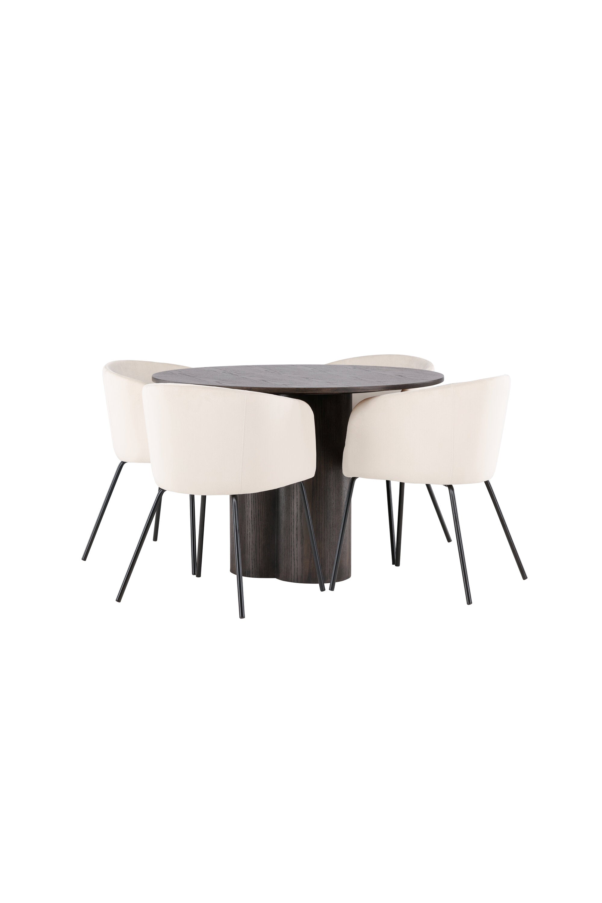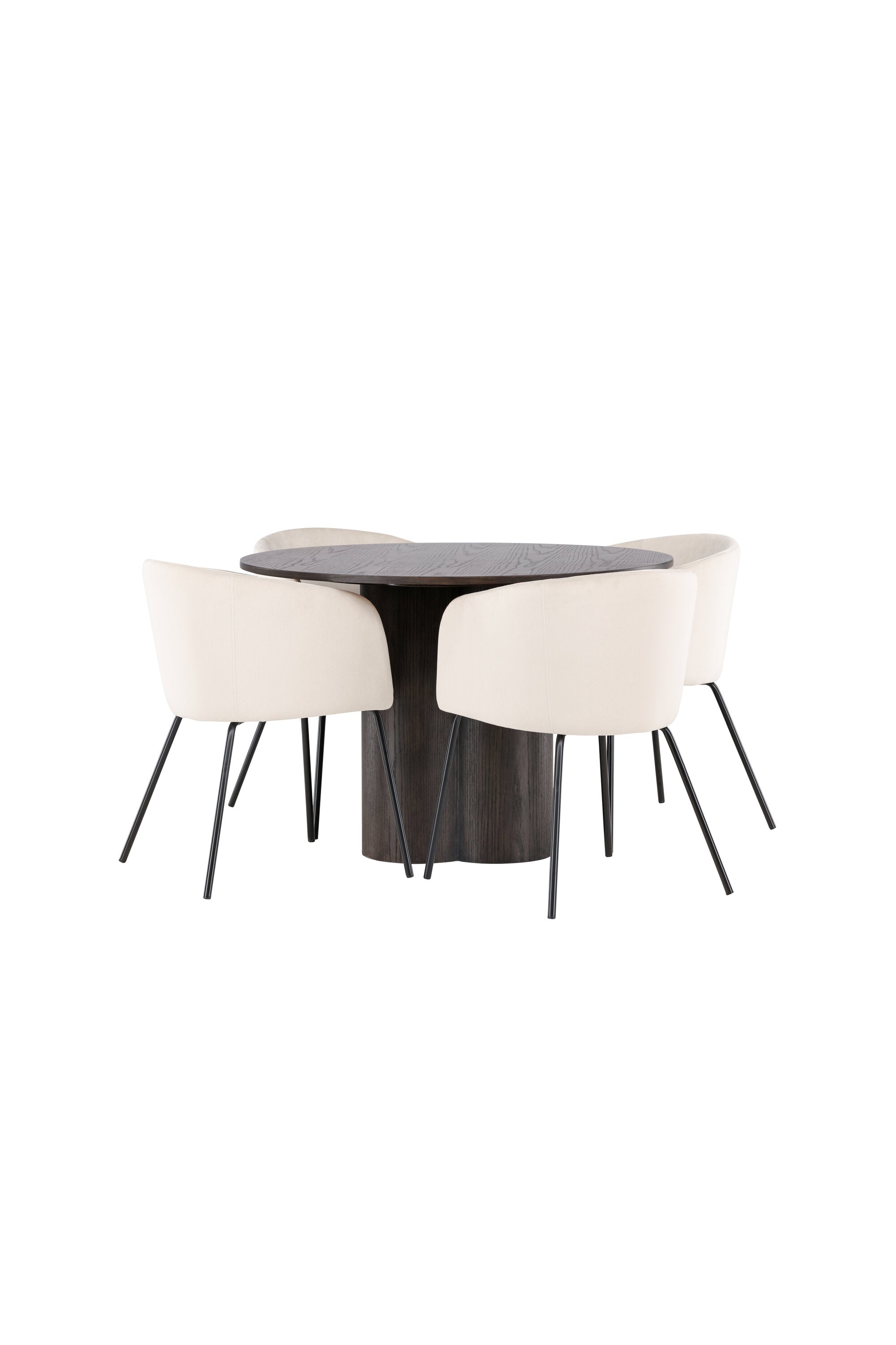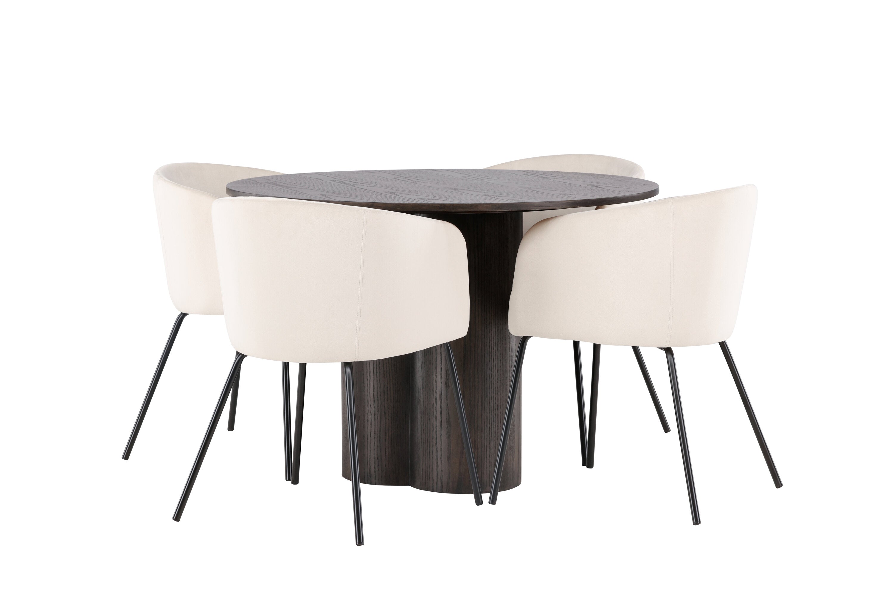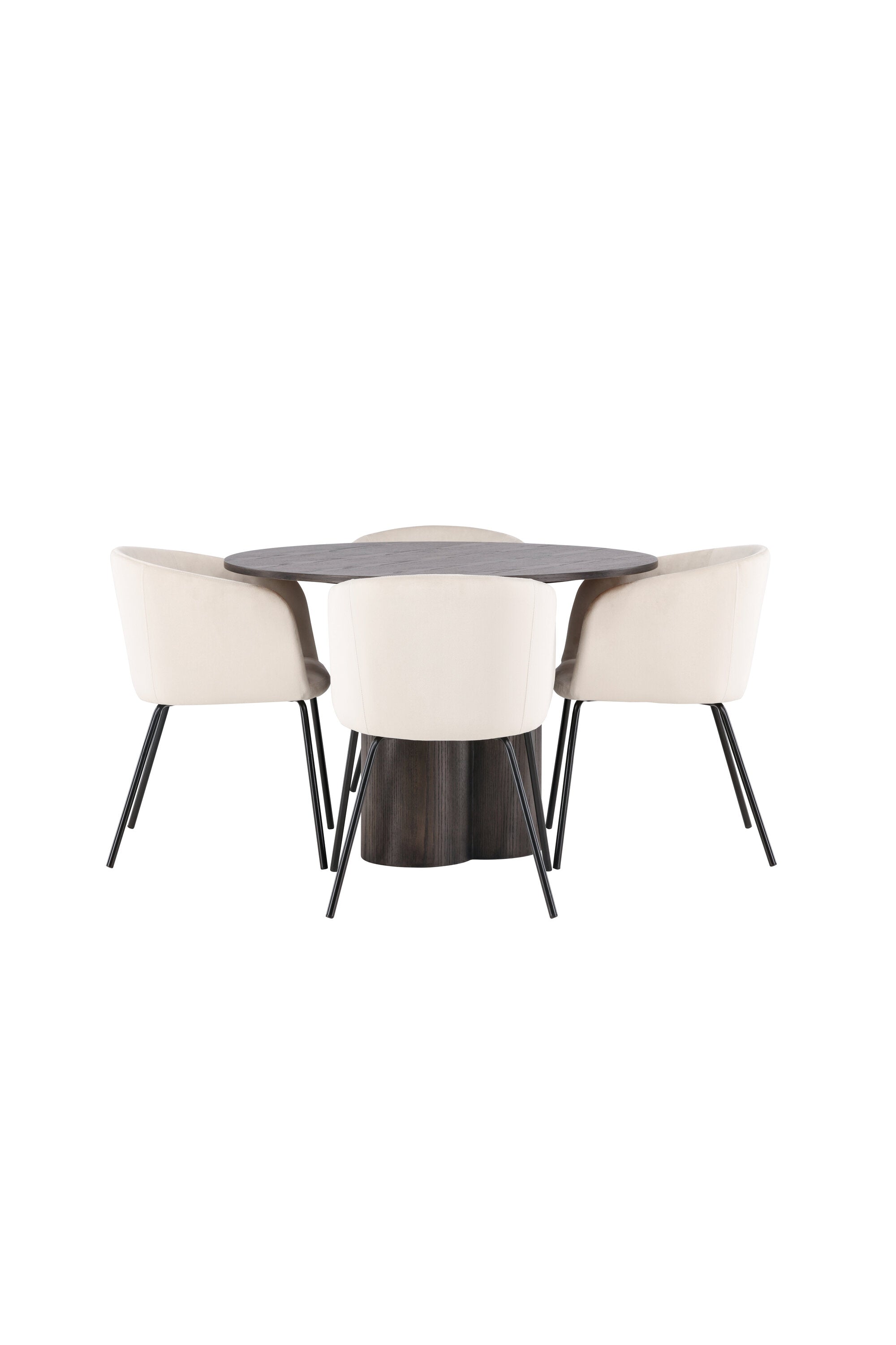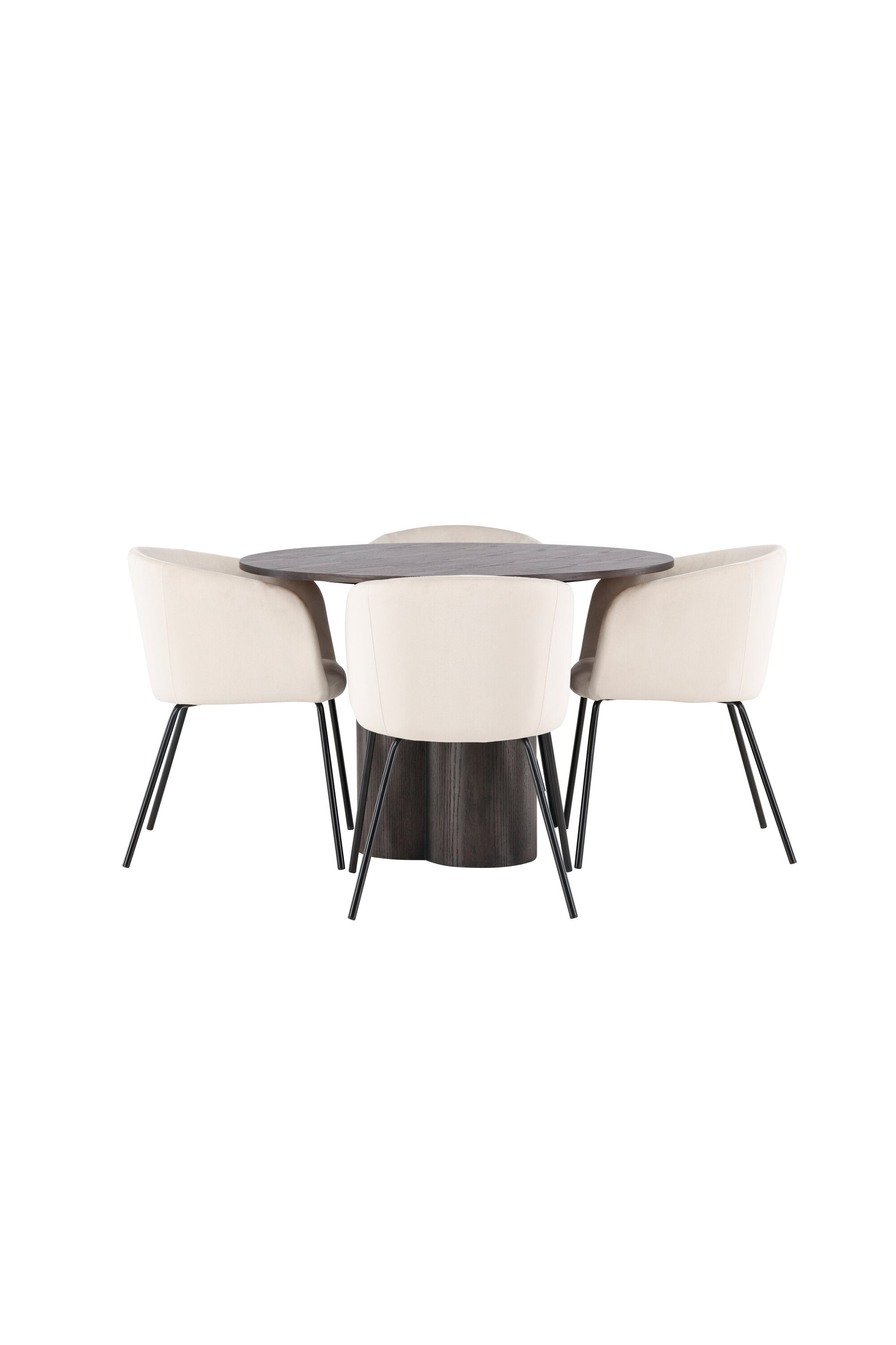 OliviaJídelní stůl-Mocca/MoccaVeneer+BeritChair-Black/BeigeVelvet_4