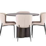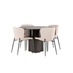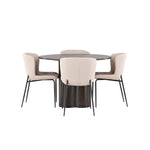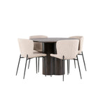 Tady nikdo nekončí na hraně! Kulatý jídelní stůl Olivia má celkově skandinávský design v moderní mocca barvě. Stůl má tenkou desku z MDF a tři nohy ve tvaru válce, které jsou shromážděny pod středem stolu. Barva má světlý obal, díky kterému je viditelný vzor materiálu. Zde společně s módními jídelními židlemi ze série Modesto. Židle je celočalouněná béžovou chlupatou látkou se stylovými úzkými nohami v černém kovu. Mírně zaoblená záda a čalouněný sedák poskytují extra pohodlí a rozšiřují příjemné jídlo kolem jídelního stolu. Luxusní, stylové a pohodlné! Rozměry stolu: 110 cm.