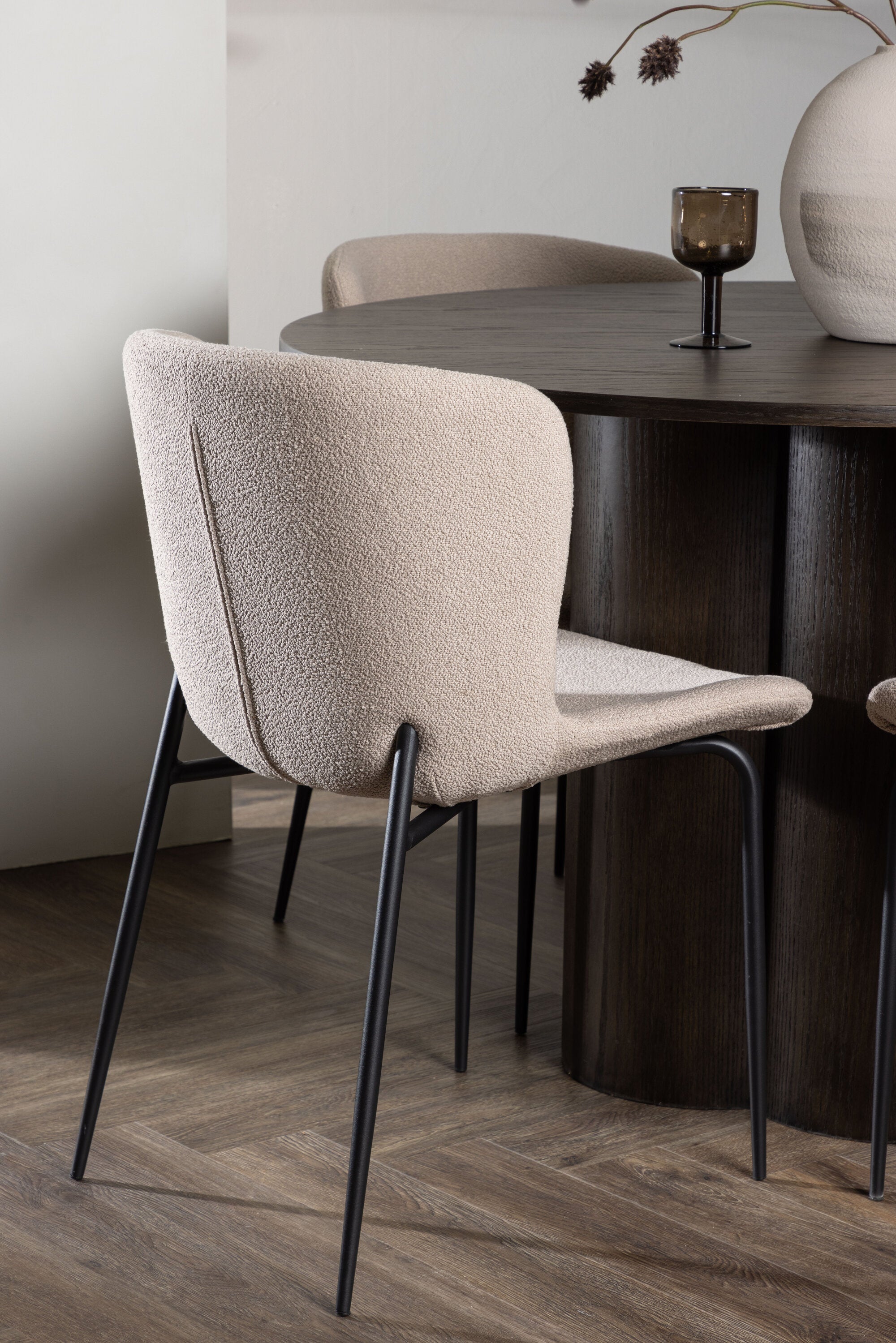 OliviaJídelní stůl-Mocca/MoccaVeneer+ModestoJídelní Židle-Šedá/SmokedBlackBoucle_4