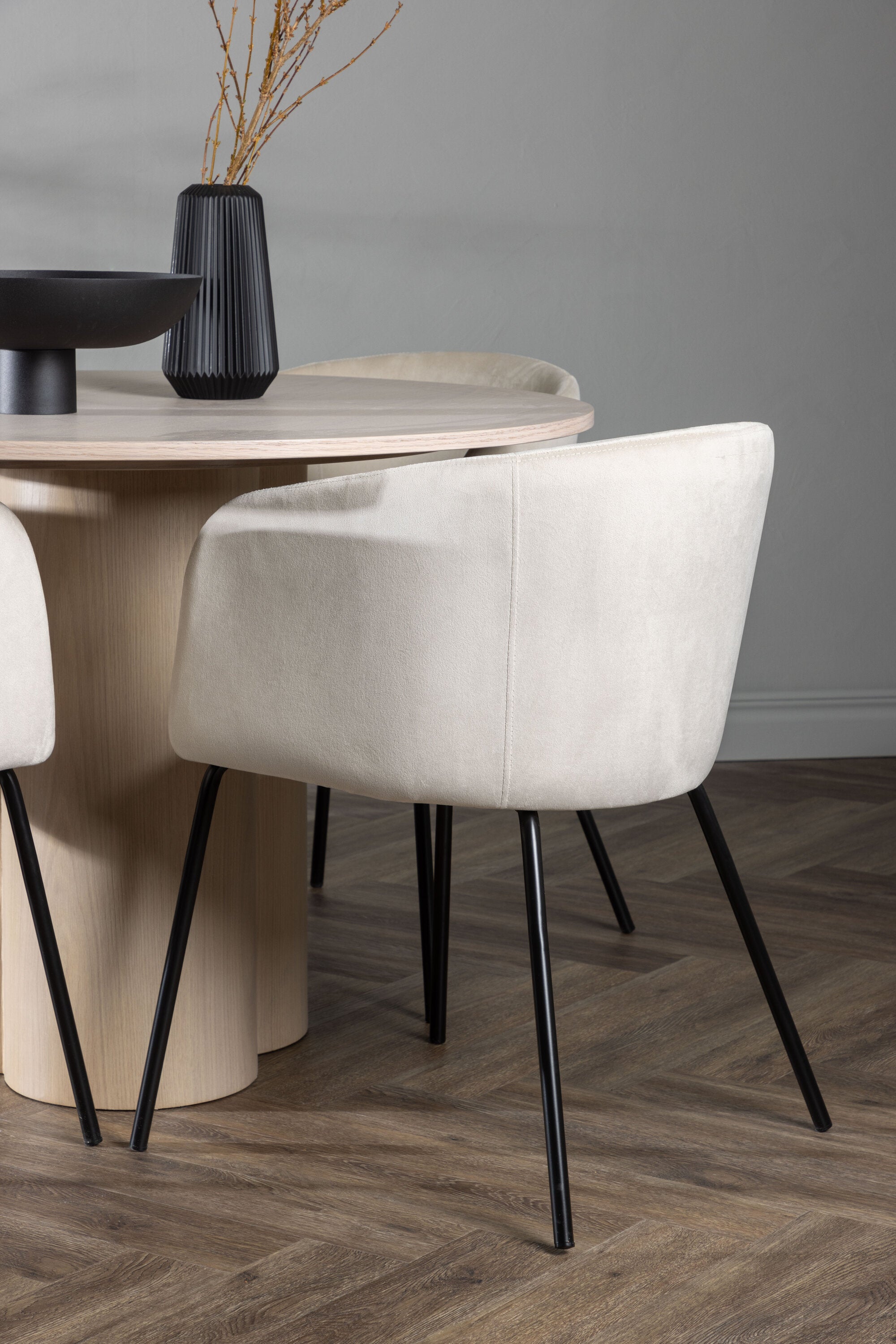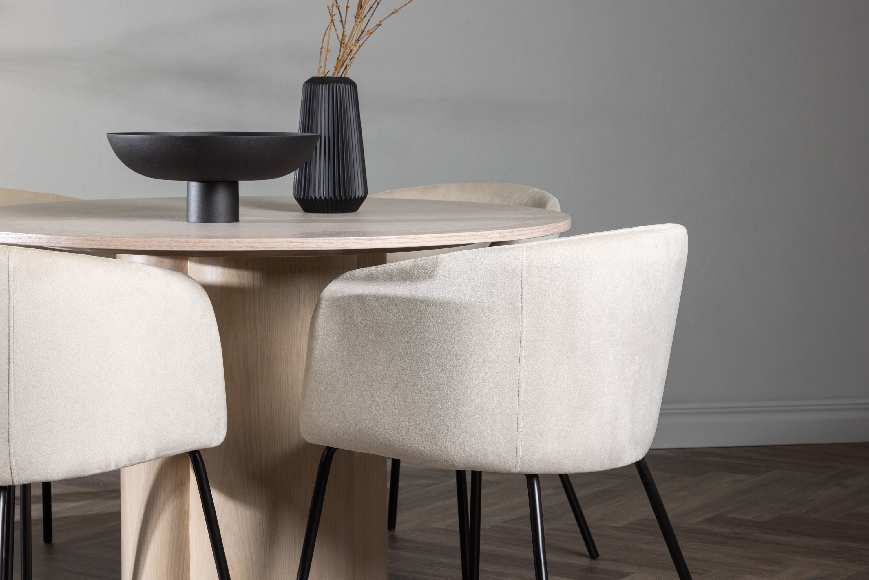 OliviaJídelní stůl-WhiteWashDýha+BeritChair-Black/BeigeVelvet_4