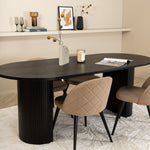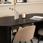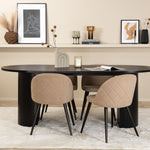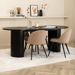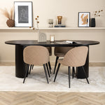 Oválný jídelní stůl Bianca - černá / černá dýha + židle se sametovými stehy - černá / béžová látka (polyesterové prádlo)_4