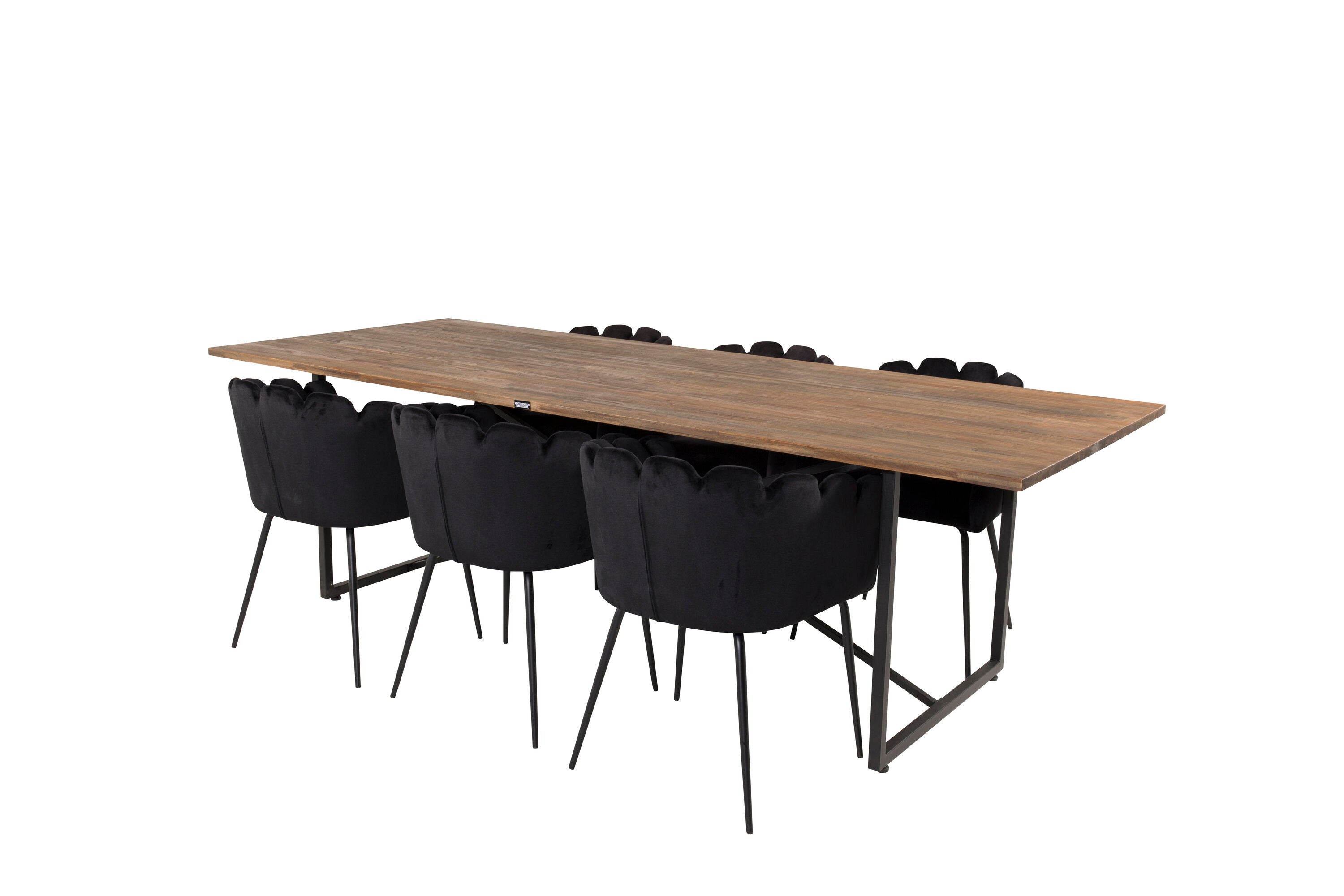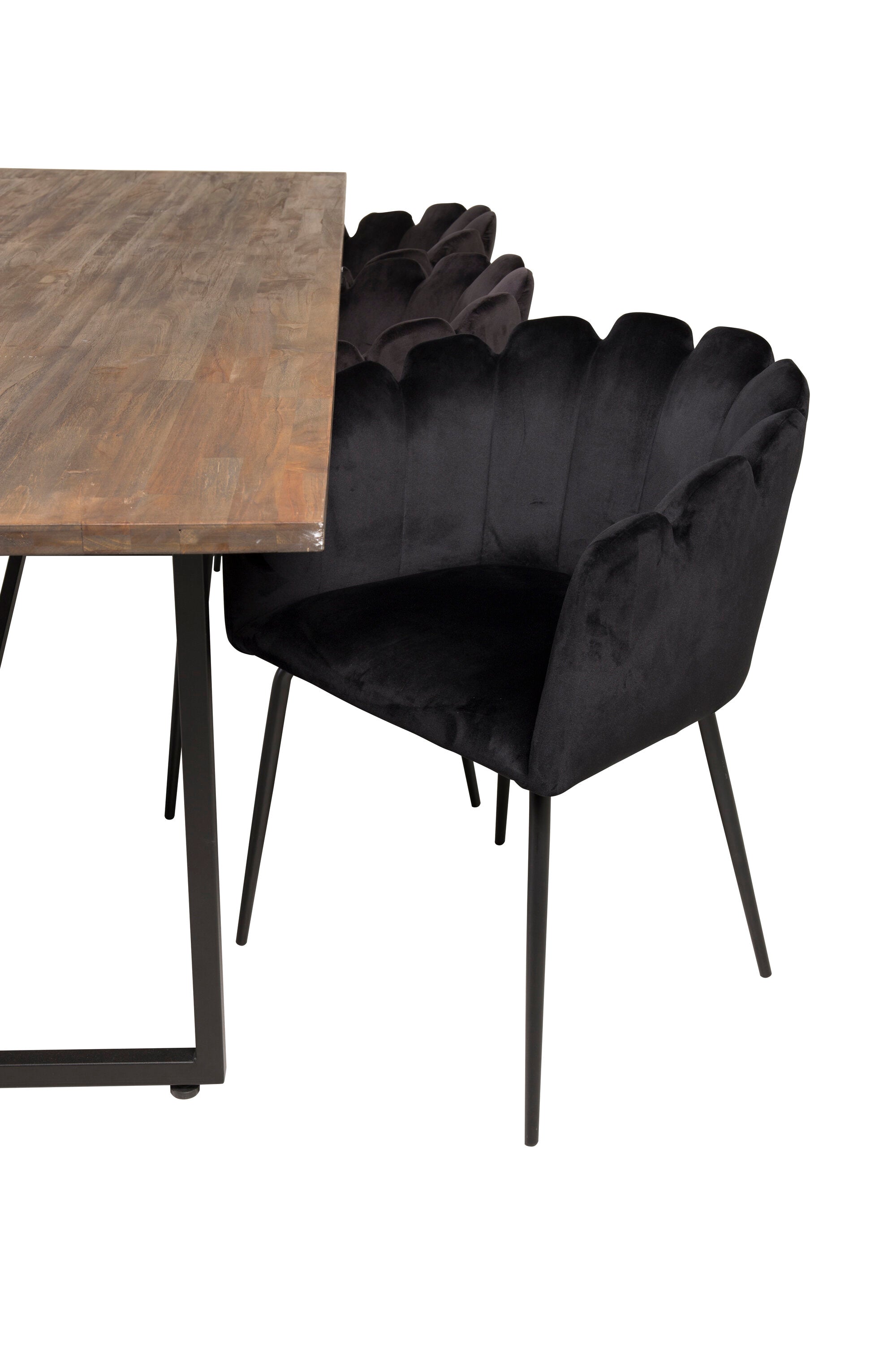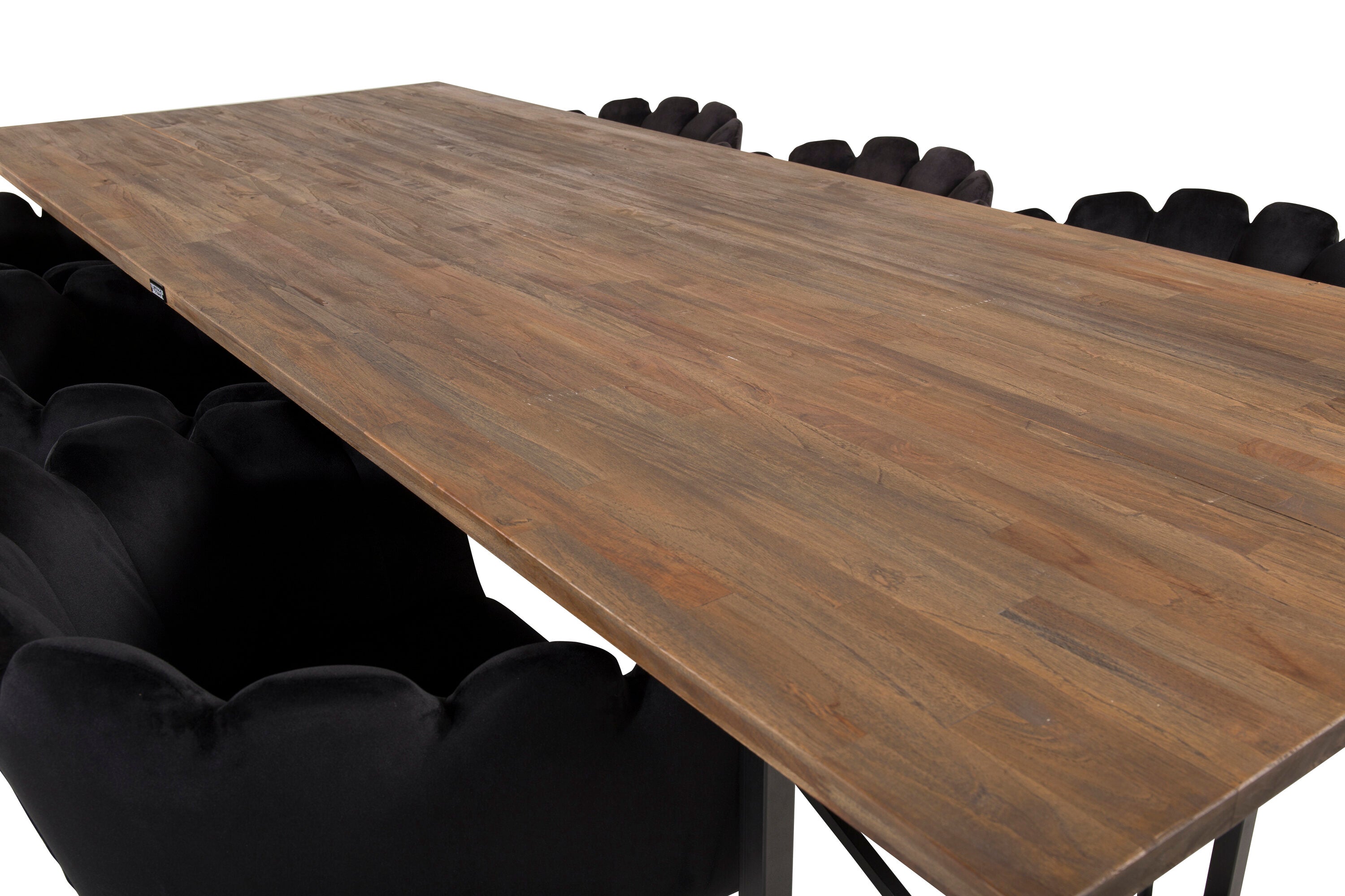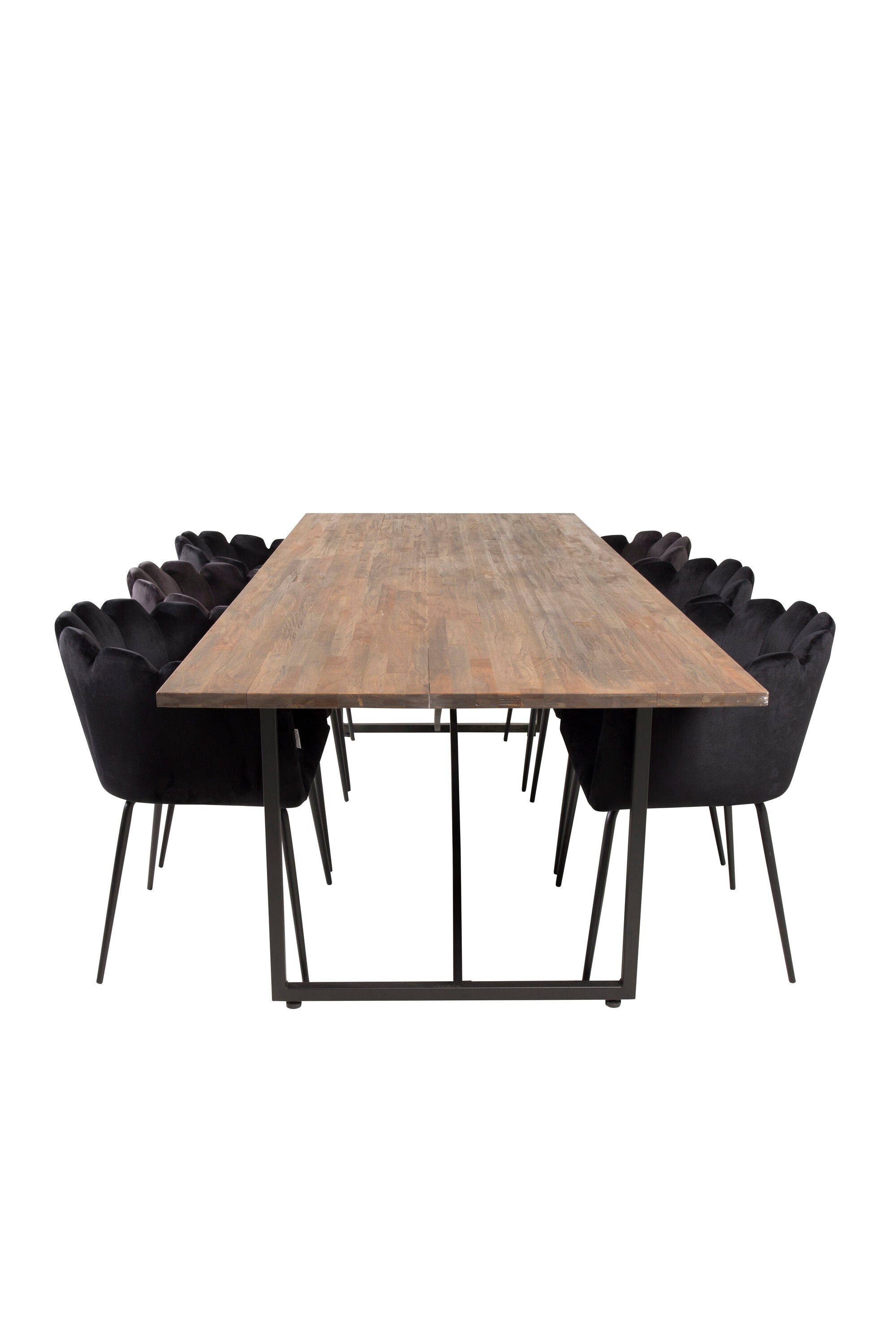 Padang Matbord - Svart / mörk Teak - 250*100*H76+Limhamn - Židle - Black Velvet_6