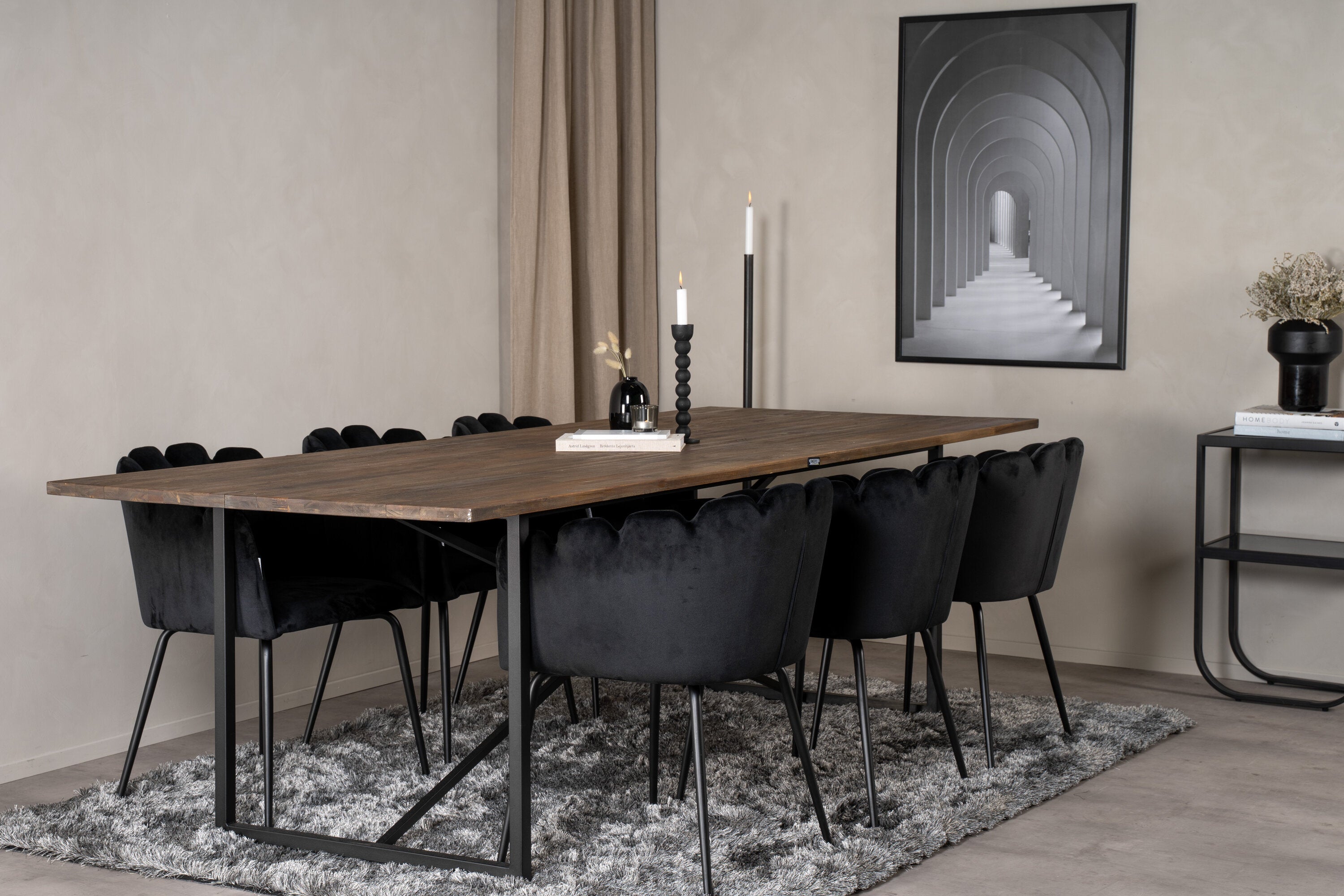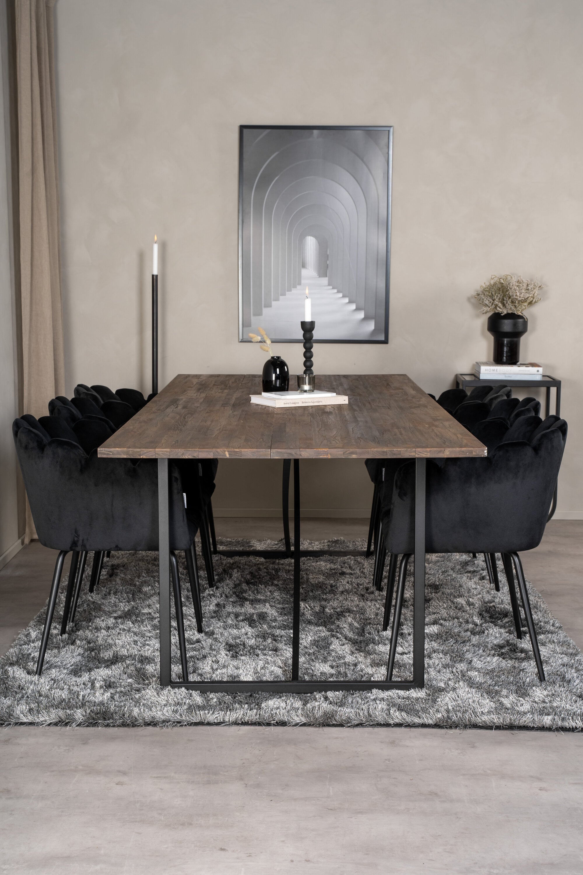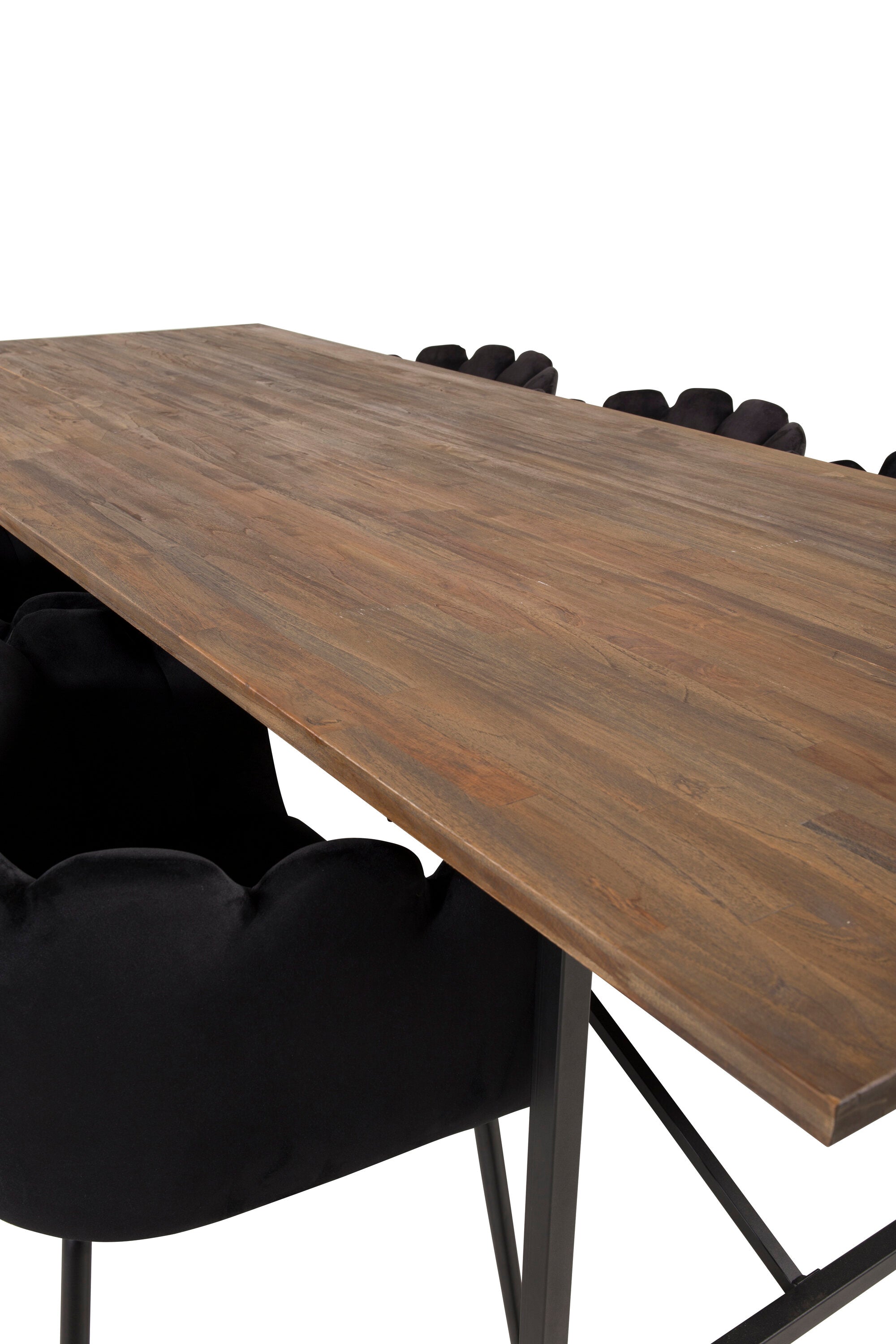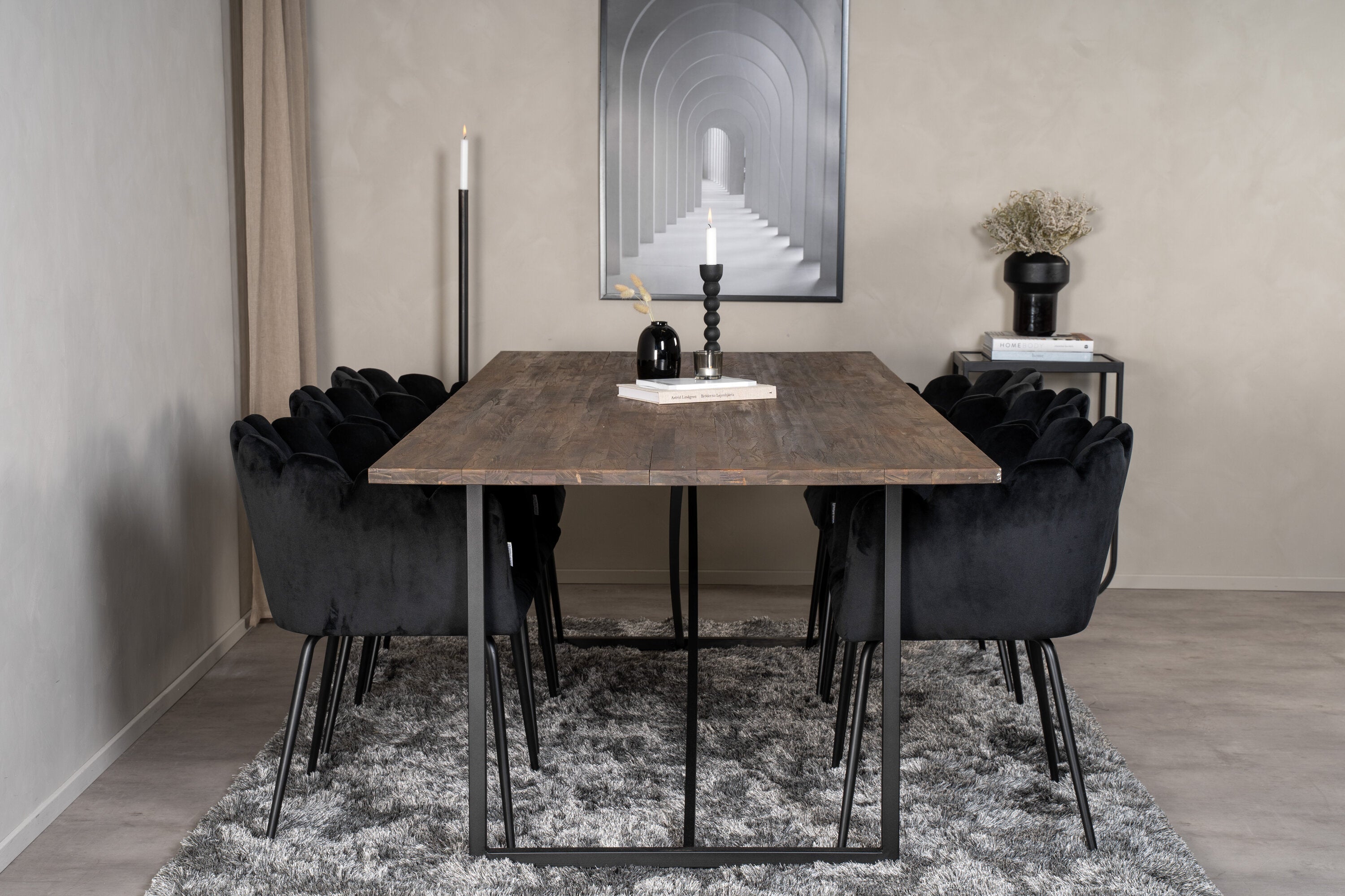 Padang Matbord - Svart / mörk Teak - 250*100*H76+Limhamn - Židle - Black Velvet_6