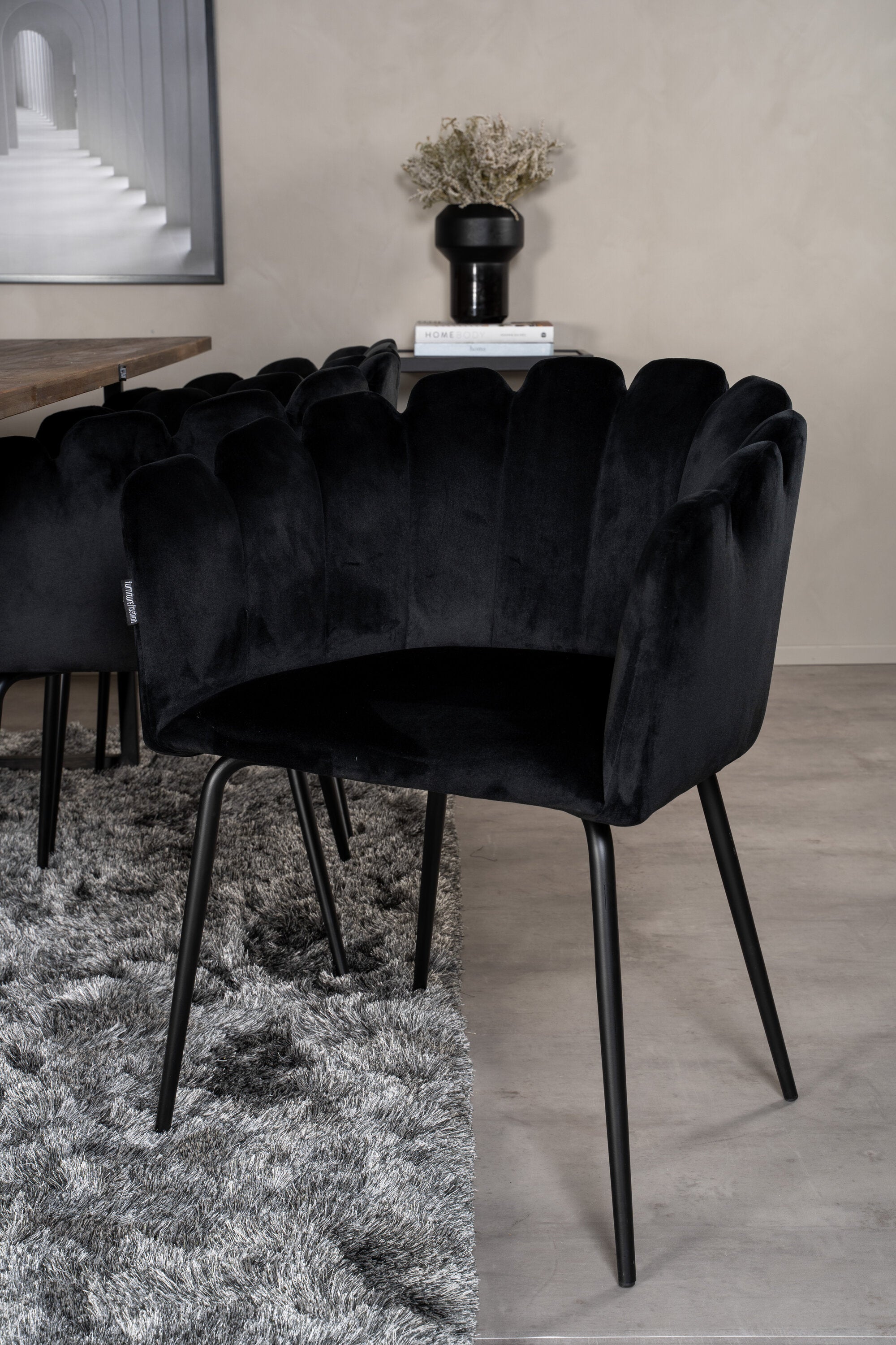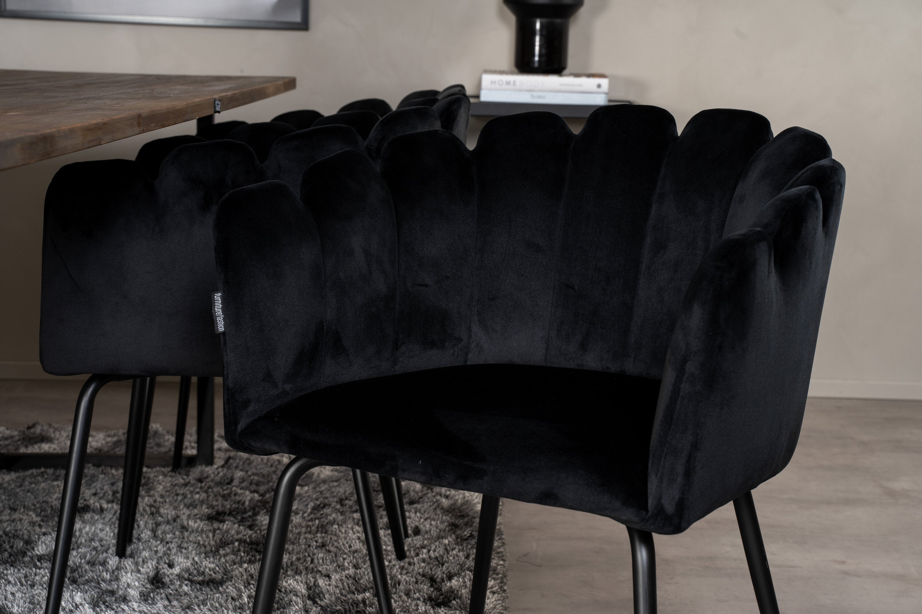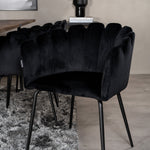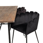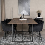 Jídelní stůl Padang v robustním provedení spolu s černými sametovými židlemi ze série Limhamn - perfektní kombinace pro ty, kteří chtějí trendy skupinu jídel. Zde získáte skupinu potravin, která přímo vštěpuje luxus a eleganci.