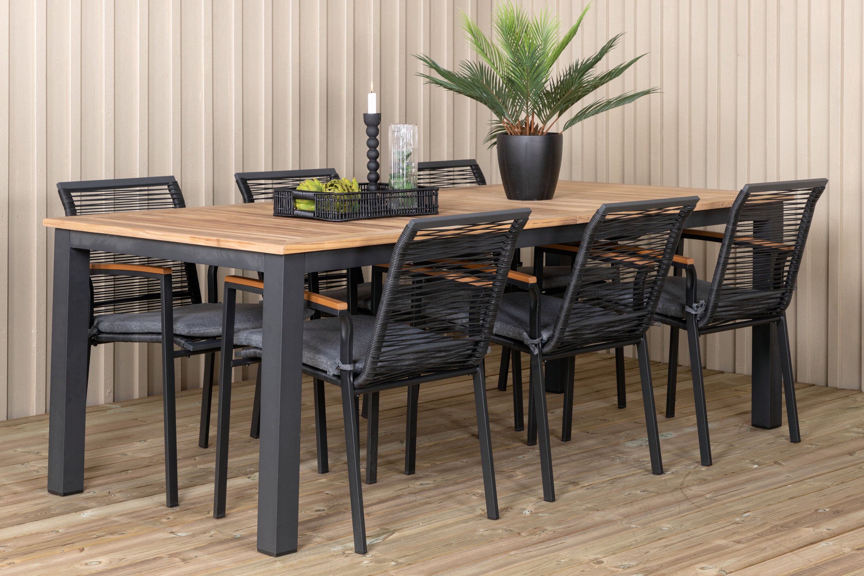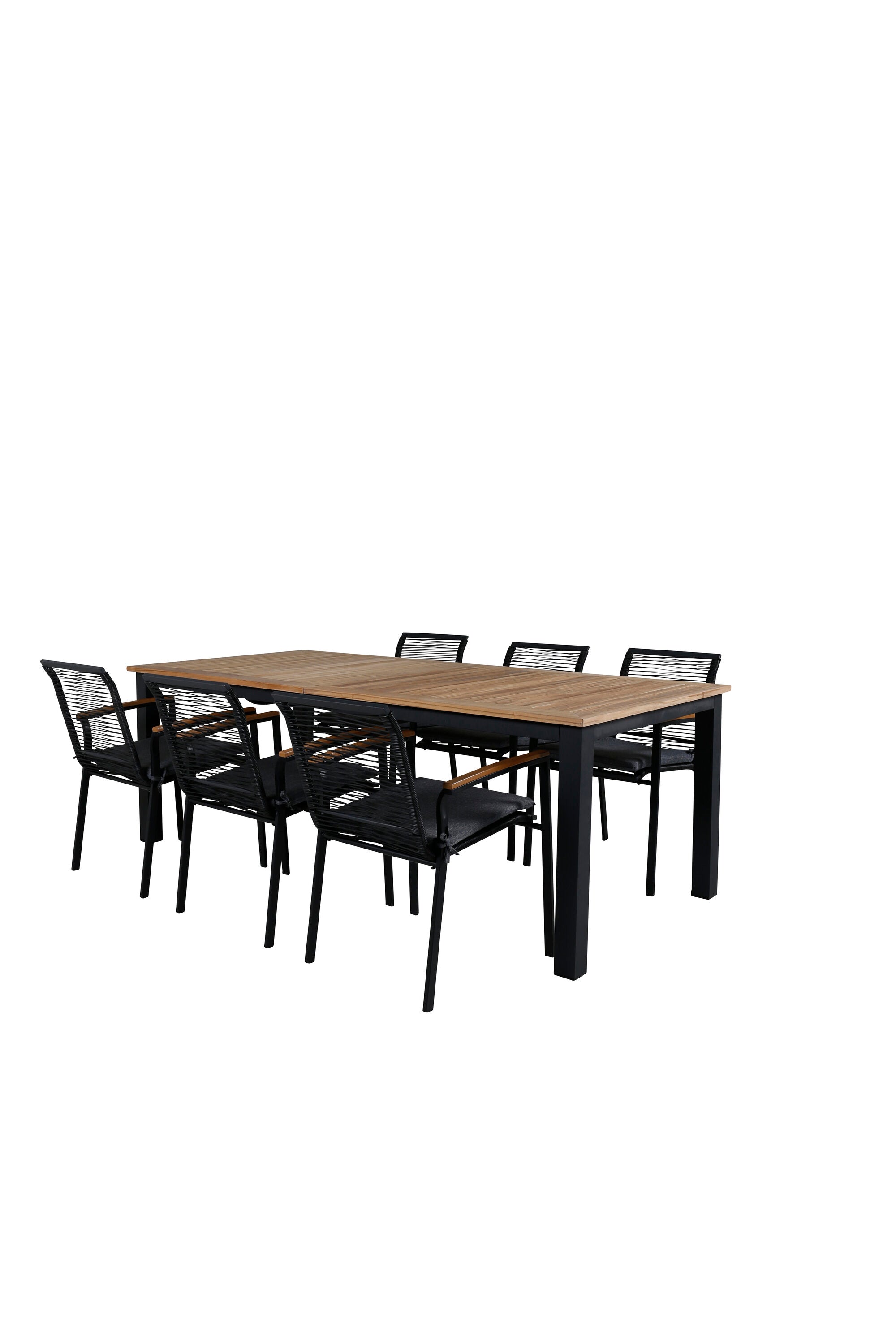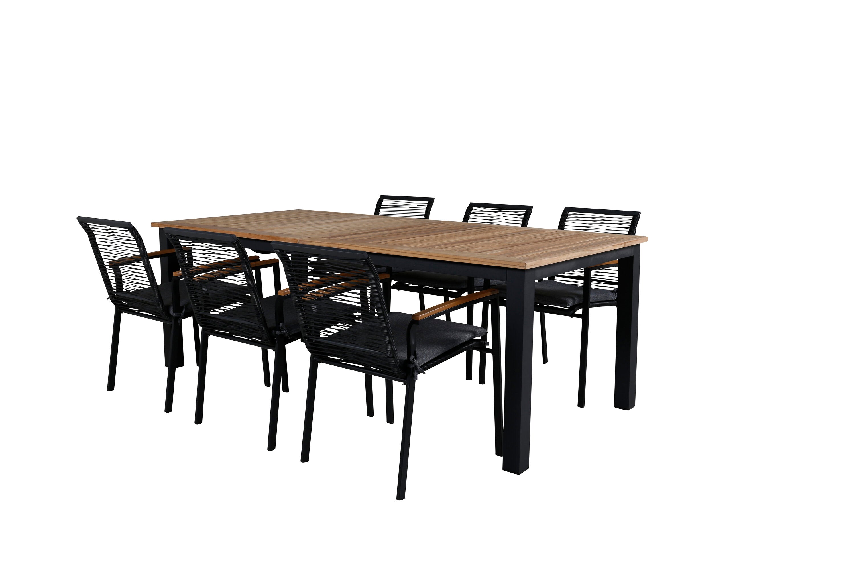 Panama - Stůl - 224/324*100 - svart Alu/Teak+Dallas Jídelní židle_6