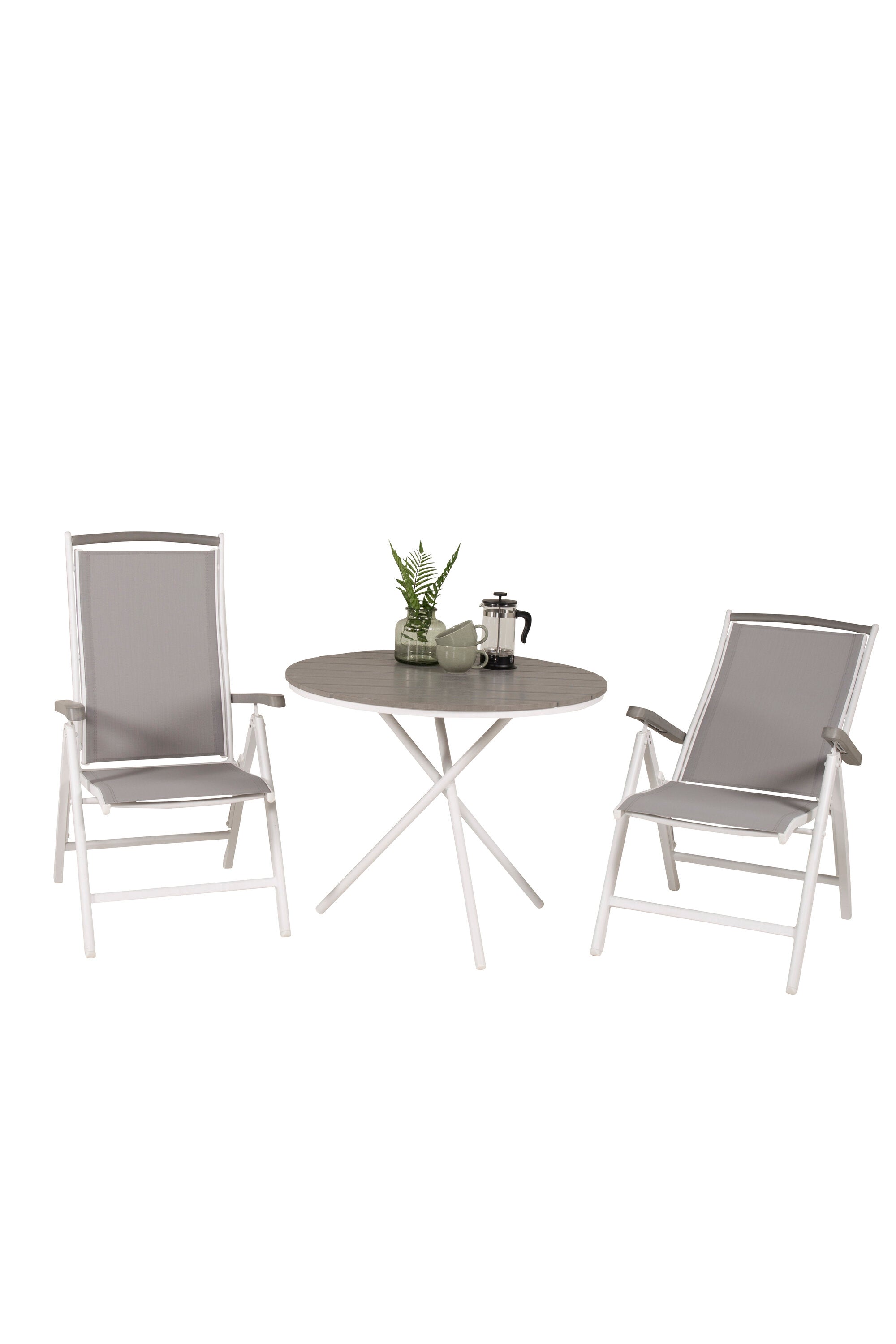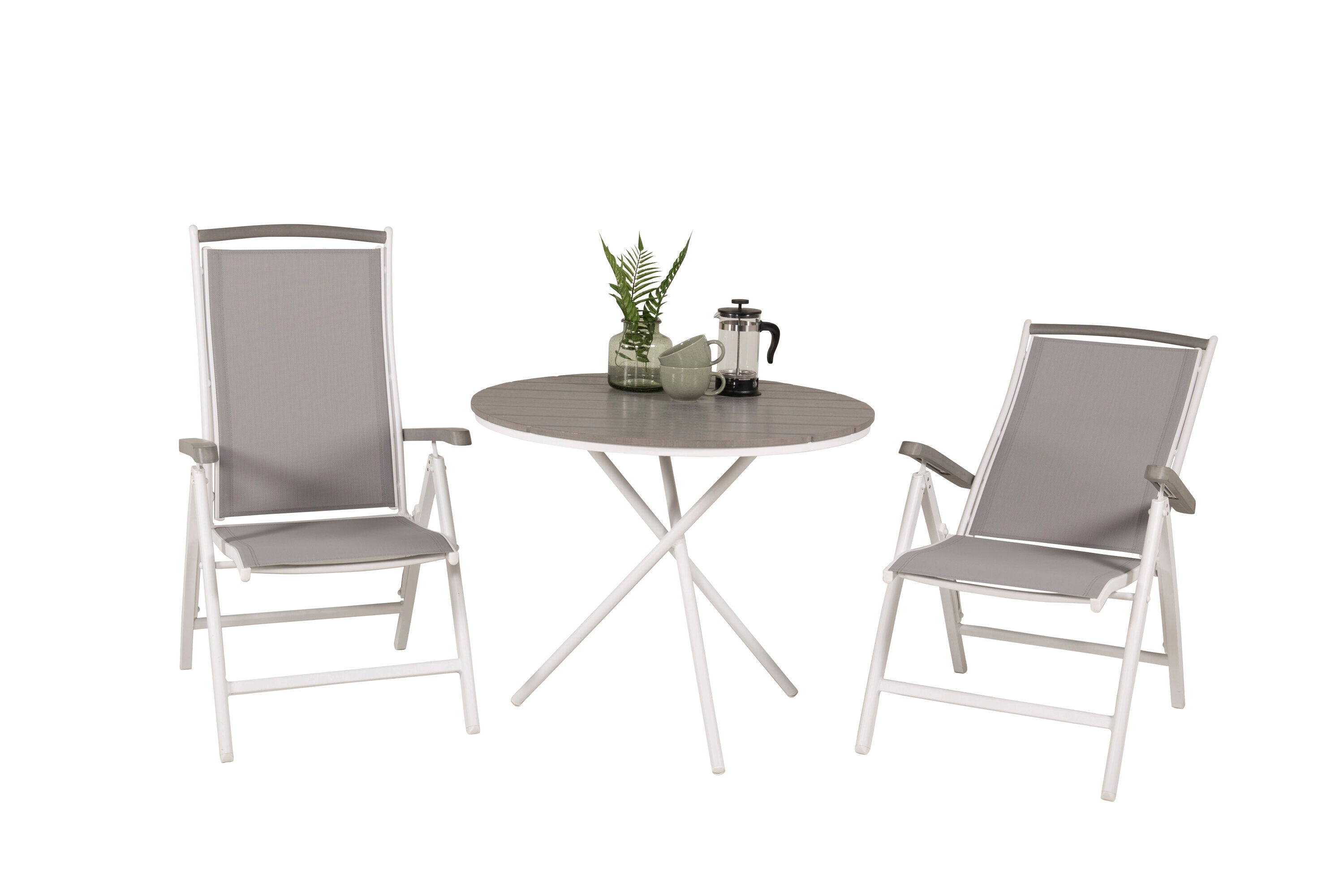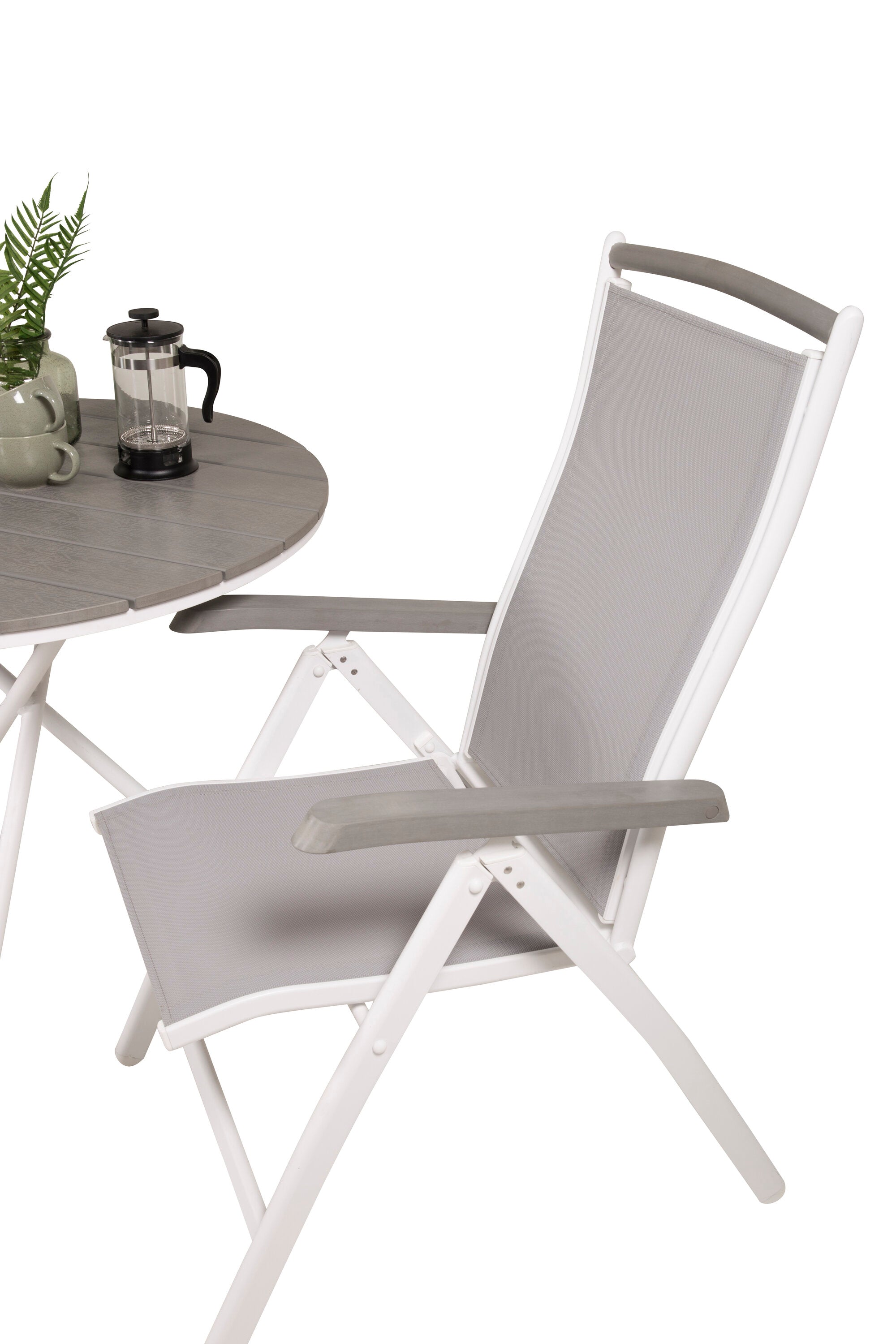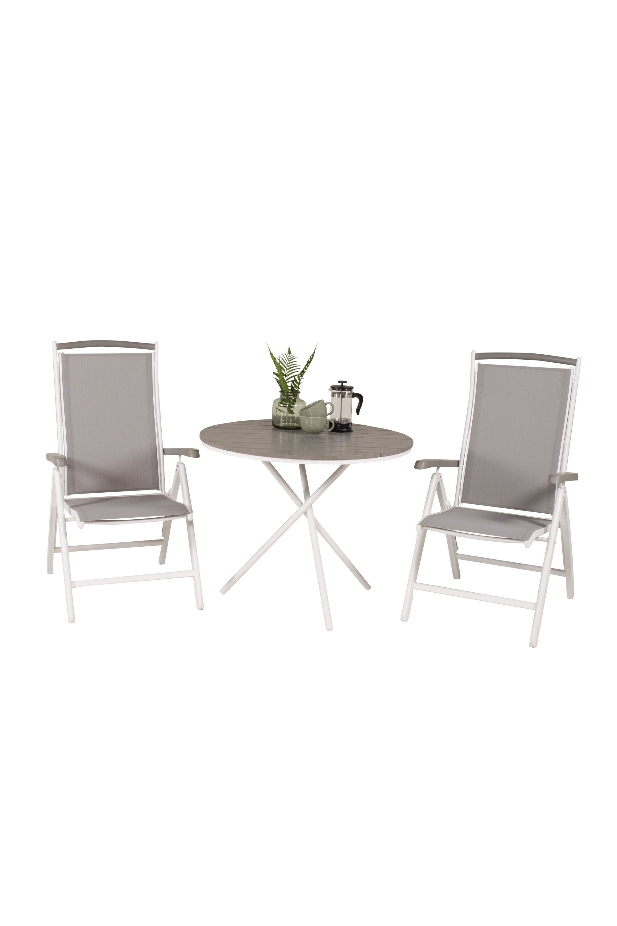 Parma cafébord ø90 - Bílá Alu / Šedá Aintwood+Albany Chair 5:pos - Bílá Alu / Šedá textilie / Aintwood_2