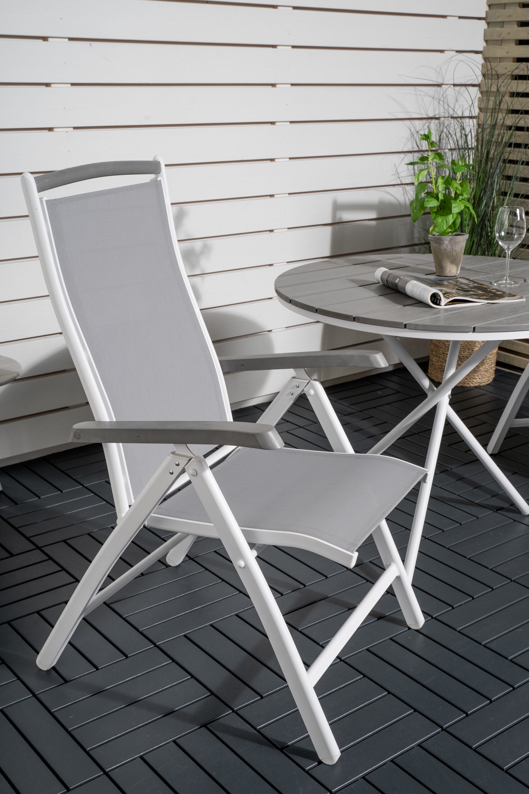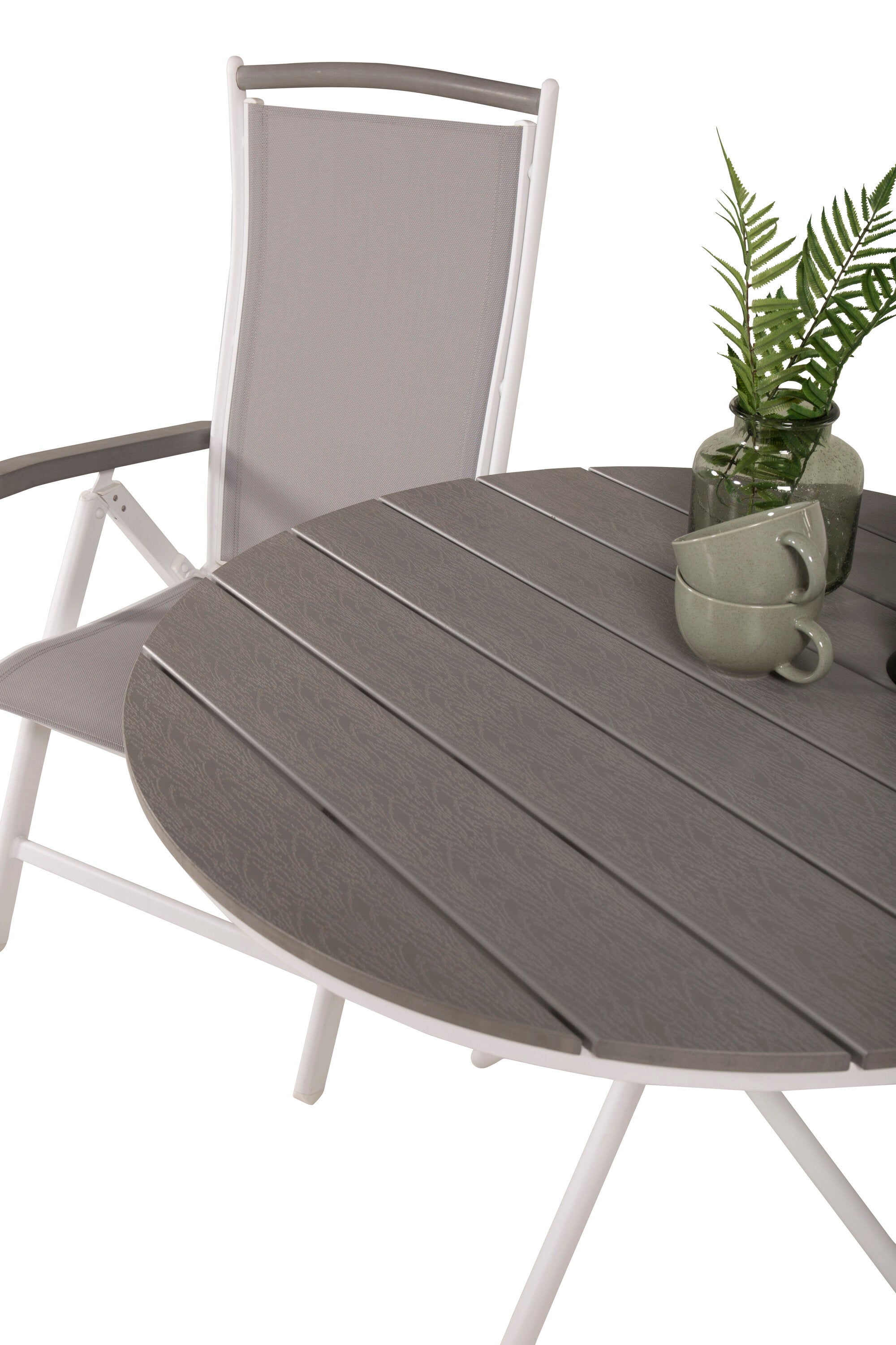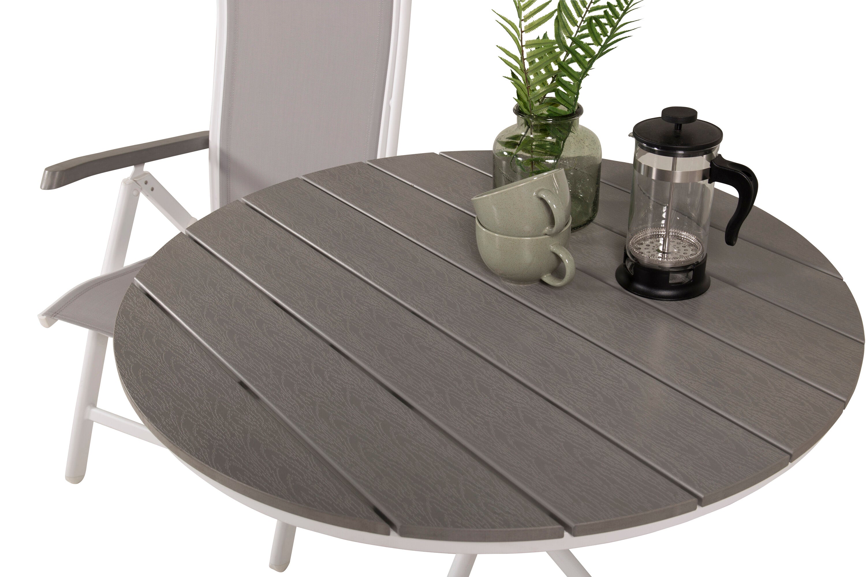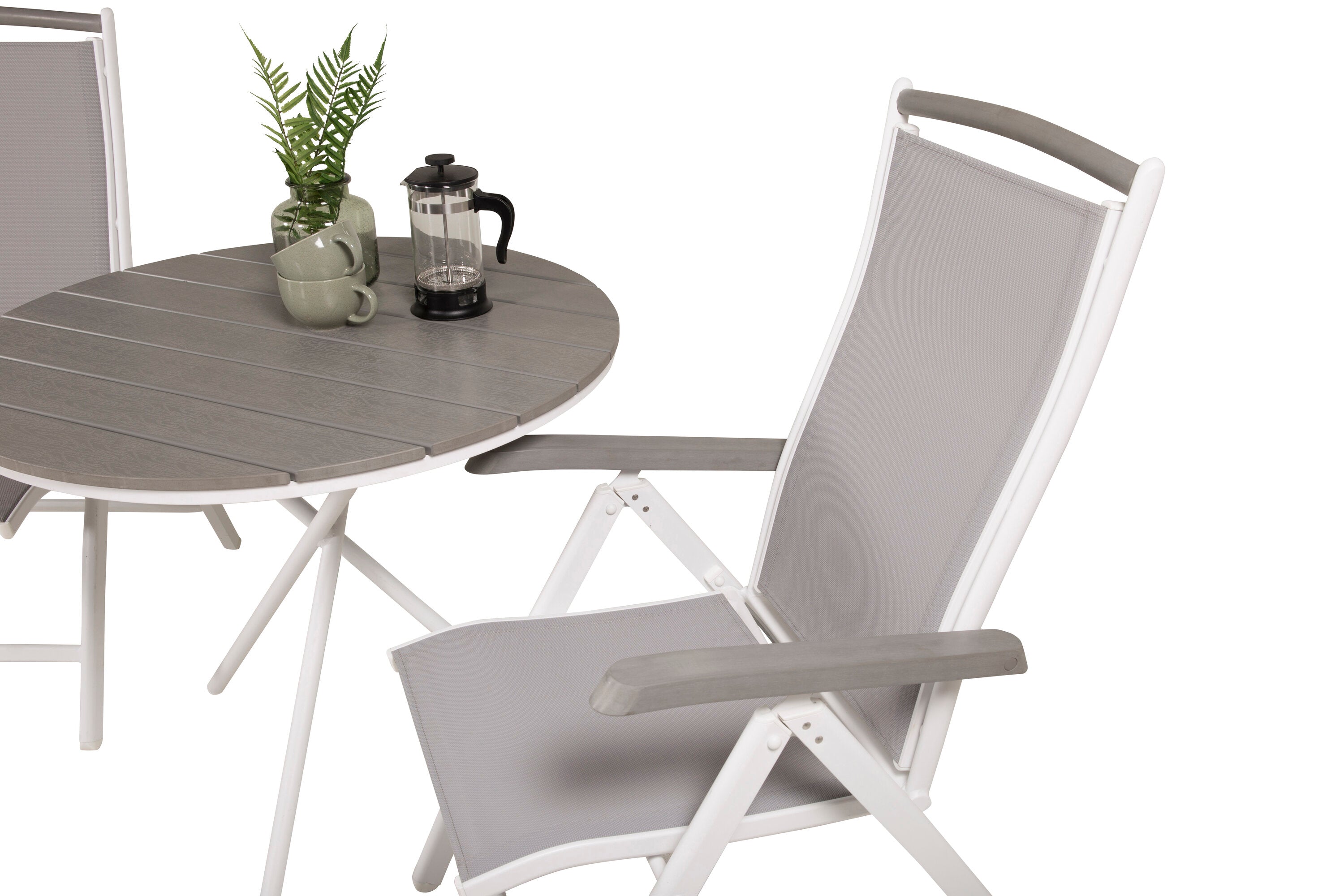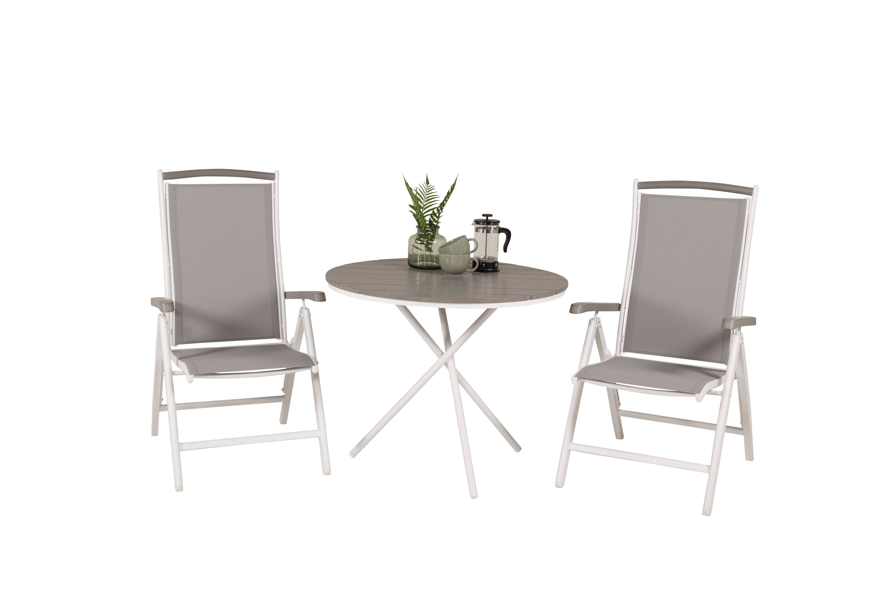 Parma cafébord ø90 - Bílá Alu / Šedá Aintwood+Albany Chair 5:pos - Bílá Alu / Šedá textilie / Aintwood_2