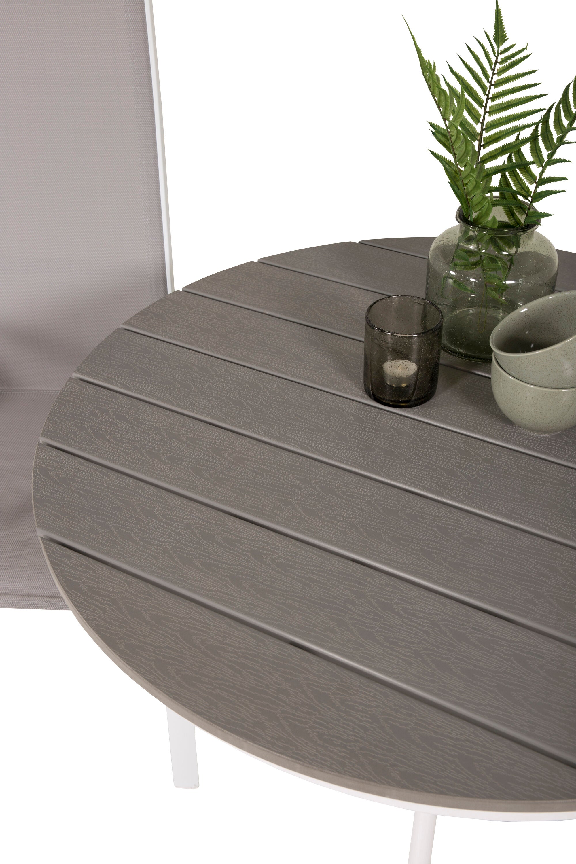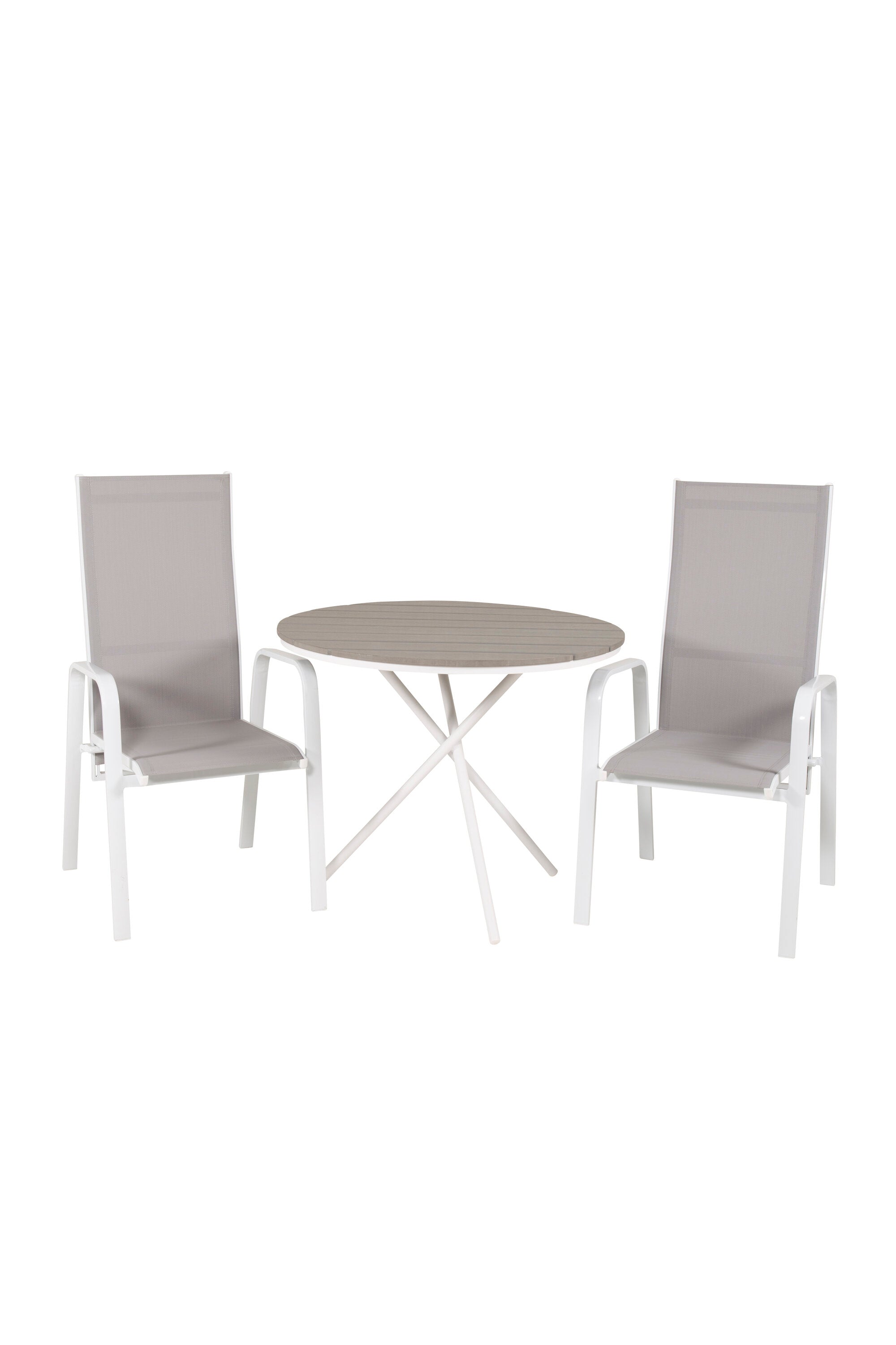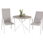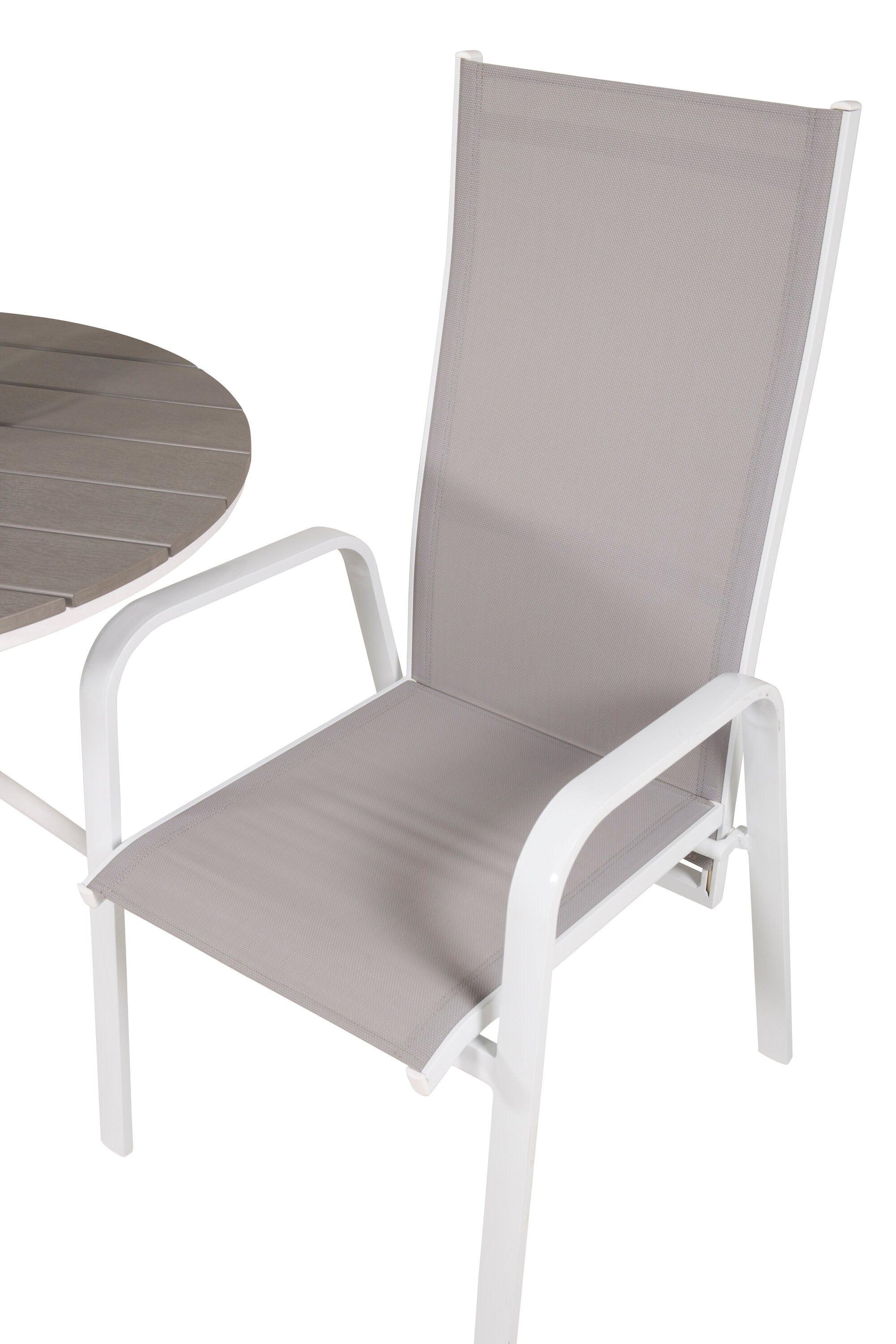 Parma cafébord ø90 - Bílá Alu / Šedá Aintwood+Copacabana Polohovací křeslo (stohovatelné) - Bílá Alu / Šedá Textilene_2
