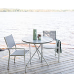 Parma cafébord ø90 - vit alu / grå aintwood+Copacabana Karmstol (stapelbar) Vit