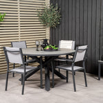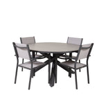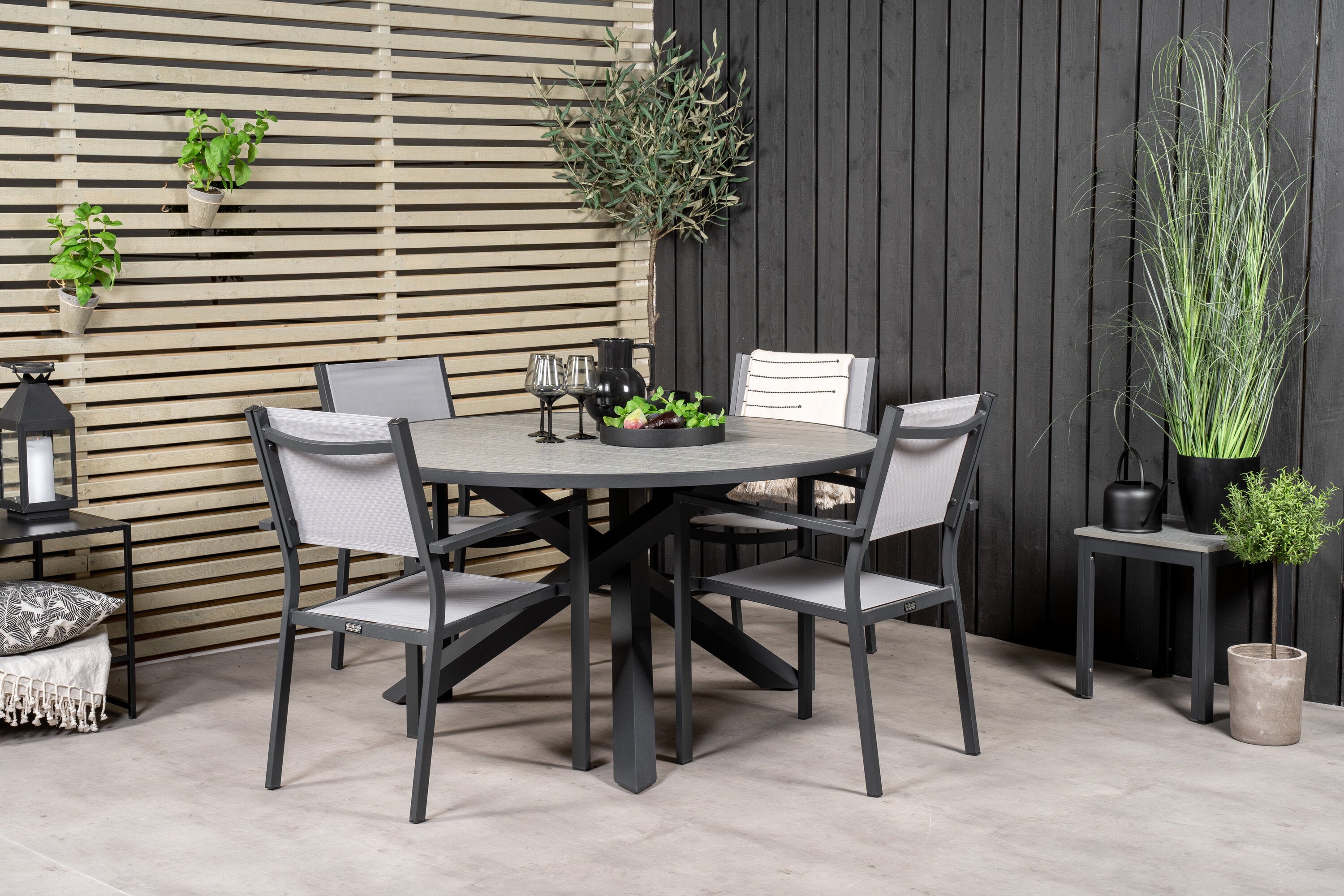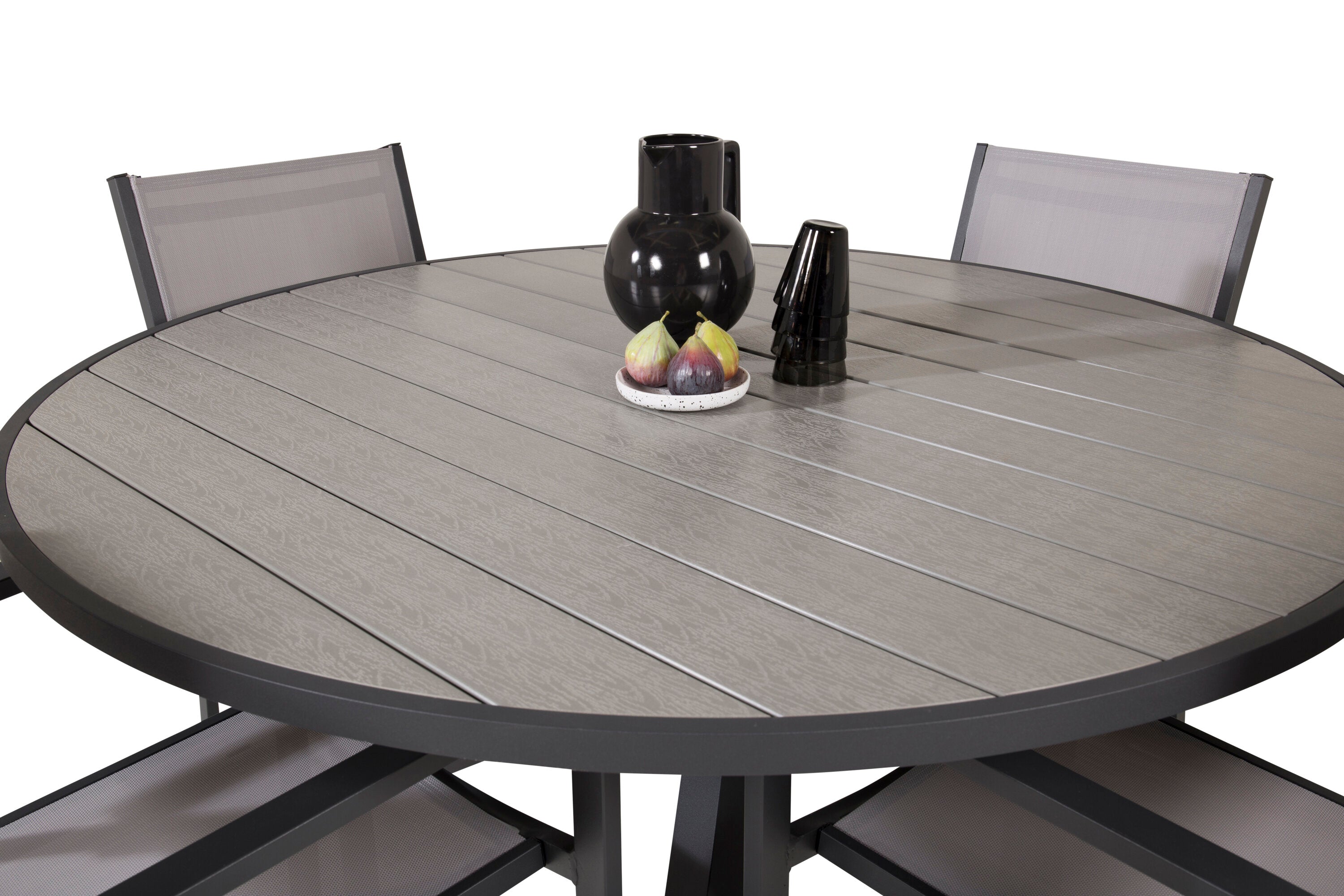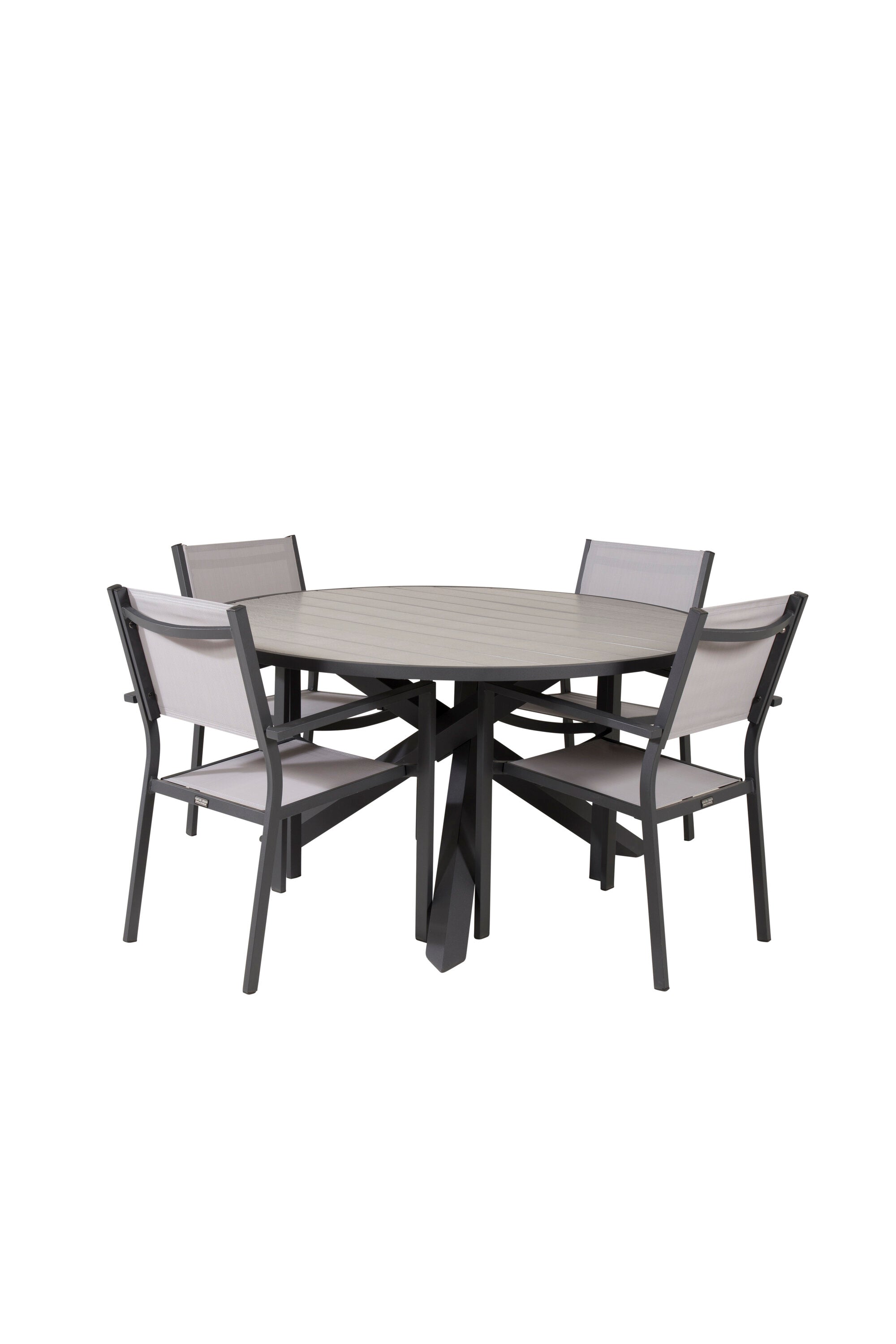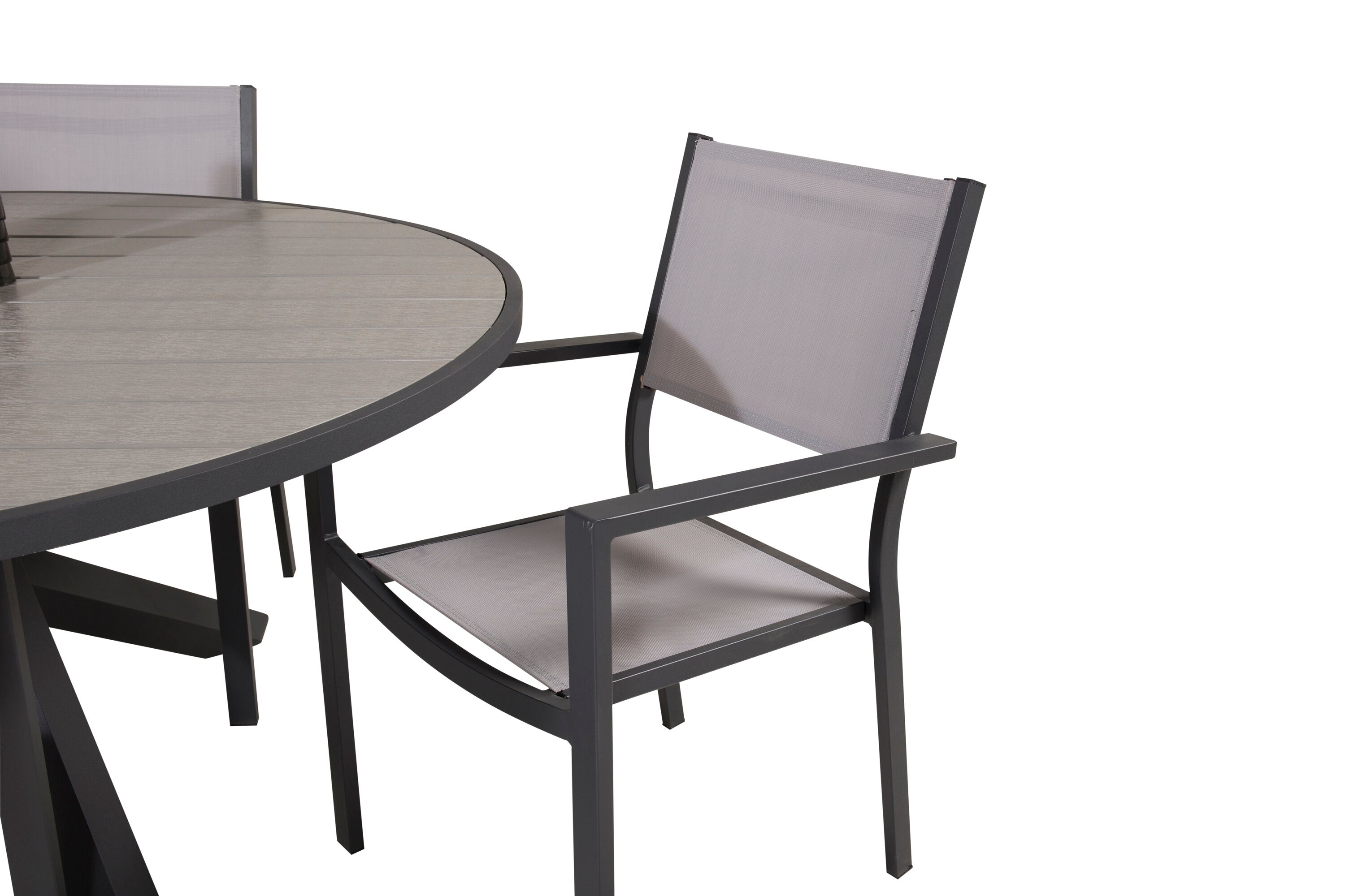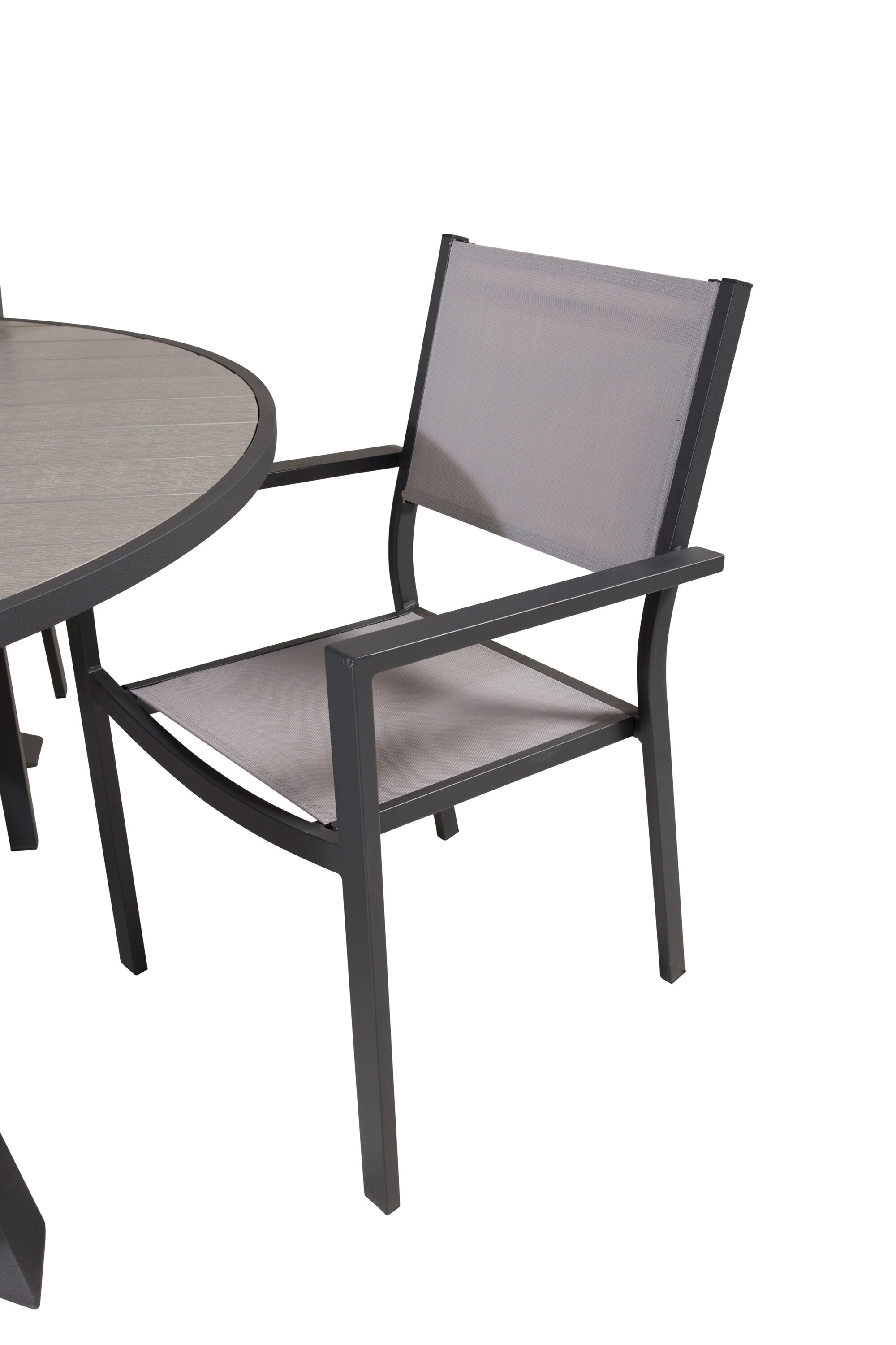 Parma - Stůl ø 140 - Černá Alu / šedá Aintwood+Copacabana křeslo (stohovatelné)