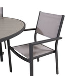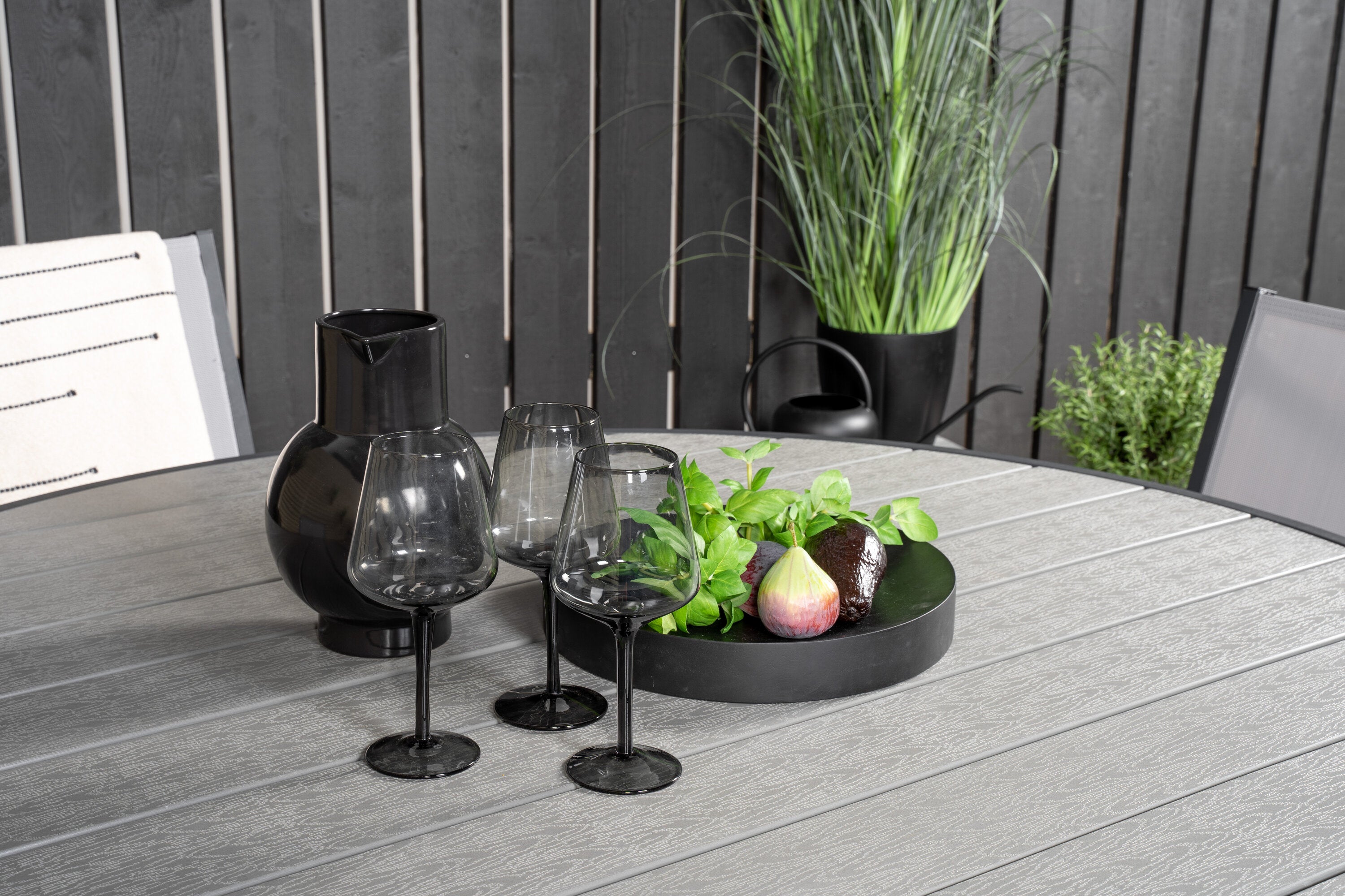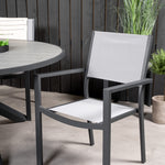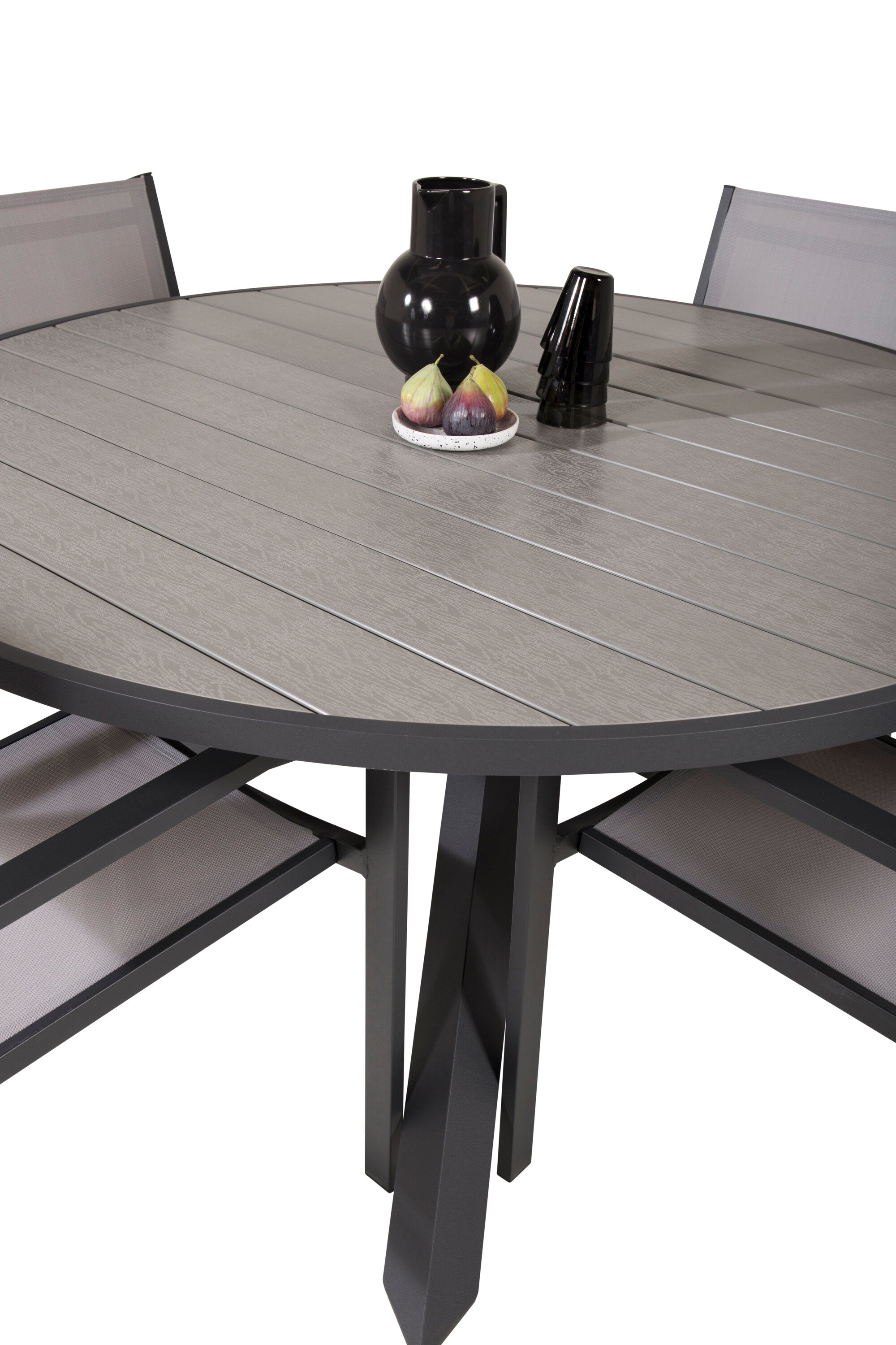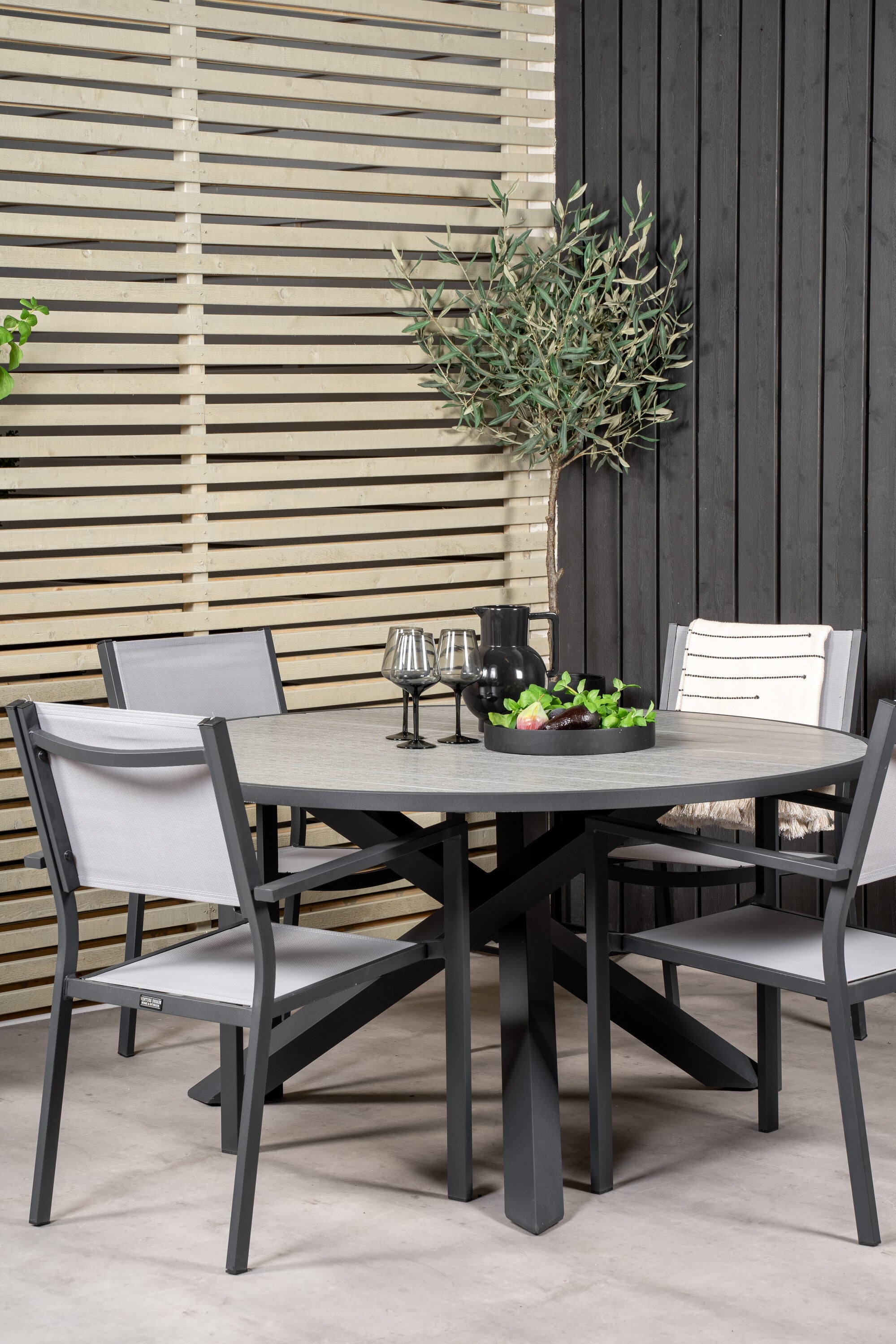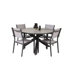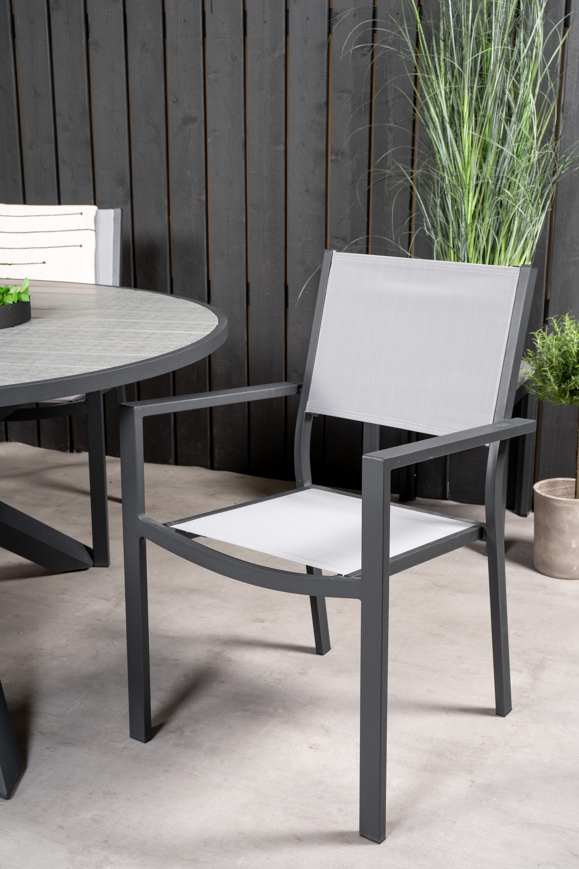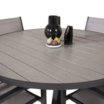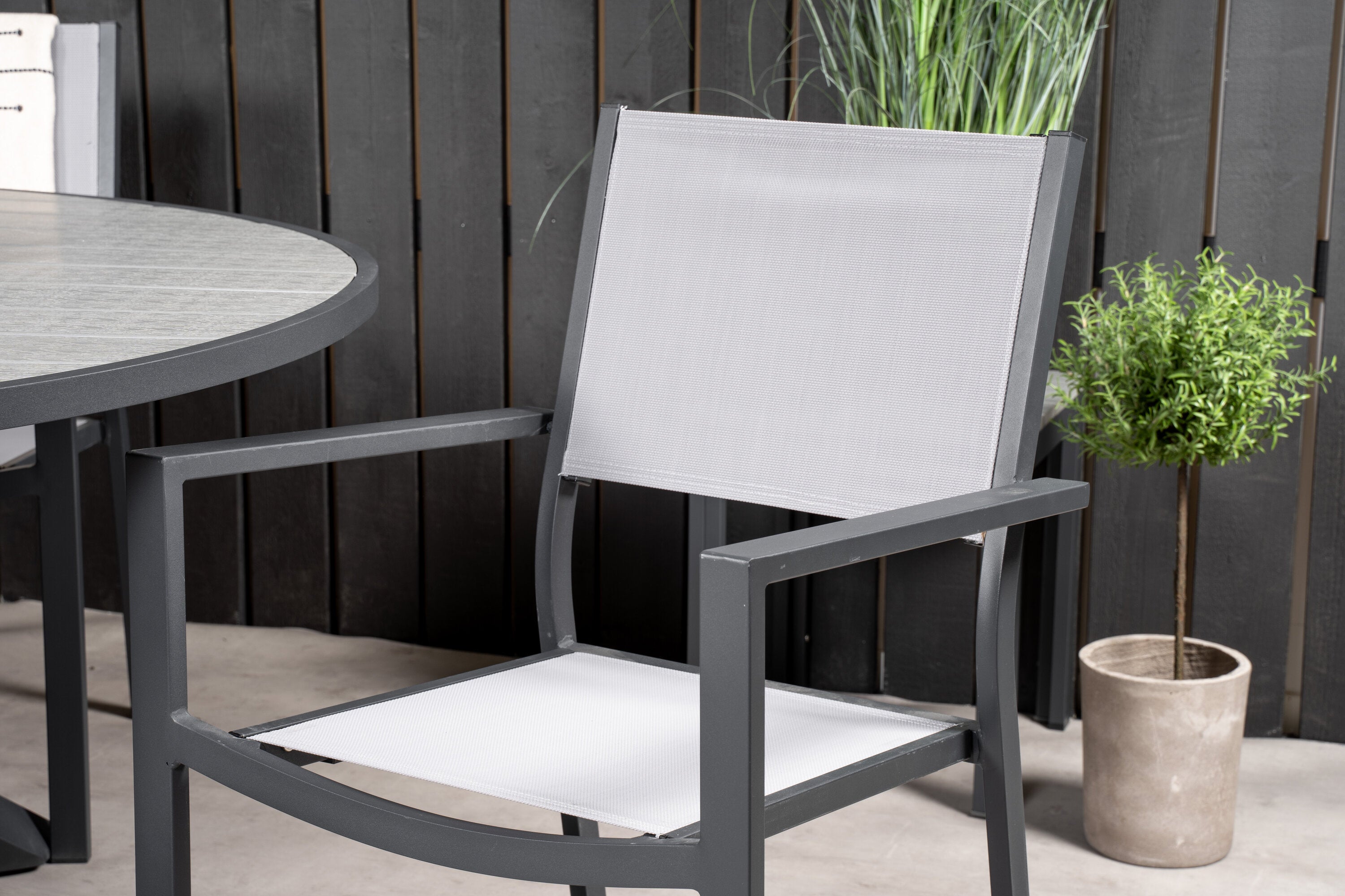 Parma - Stůl ø 140 - Černá Alu / šedá Aintwood+Copacabana křeslo (stohovatelné)