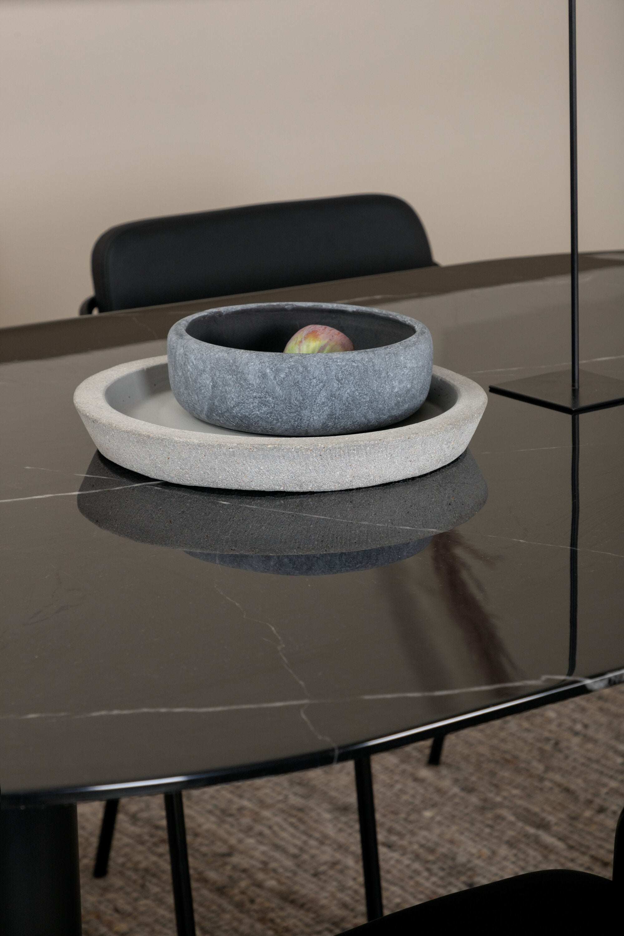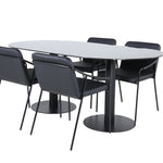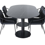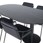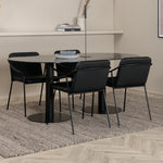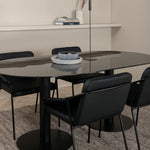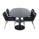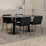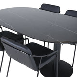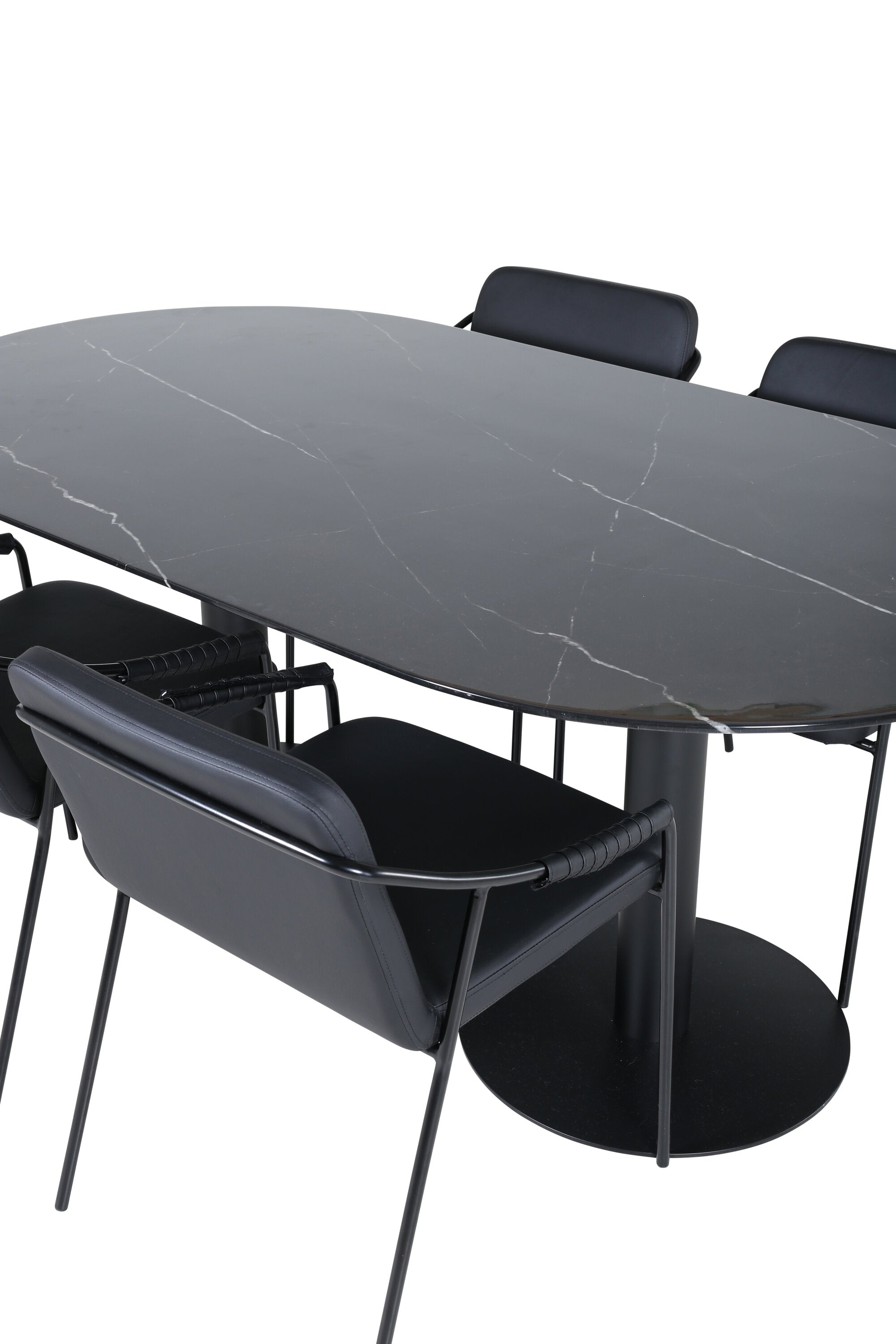 Pillan oválný jídelní stůl - černá / černá sklo mramor + židle Tvist - černá / černá PU_4