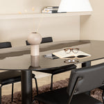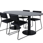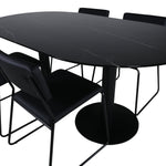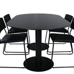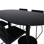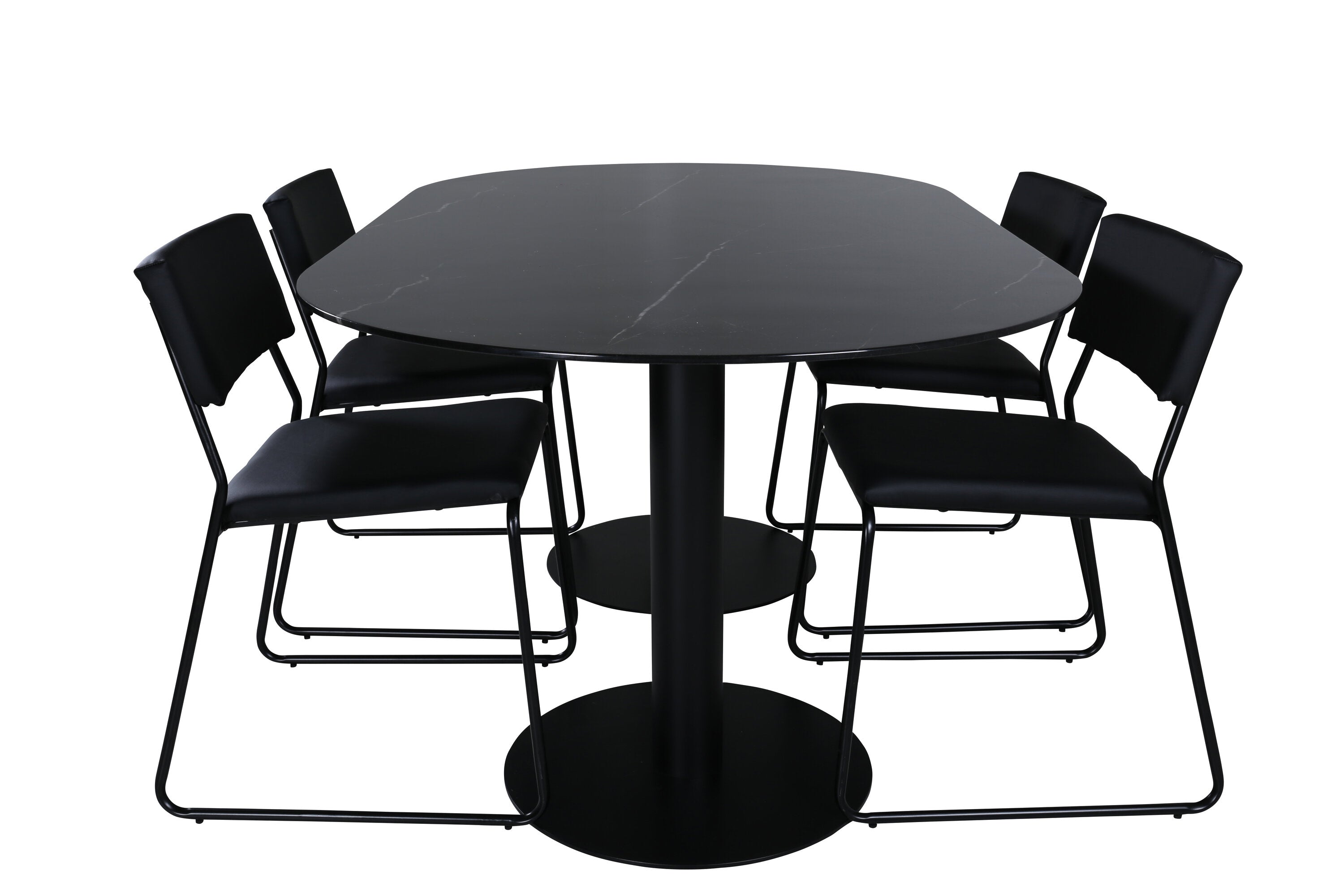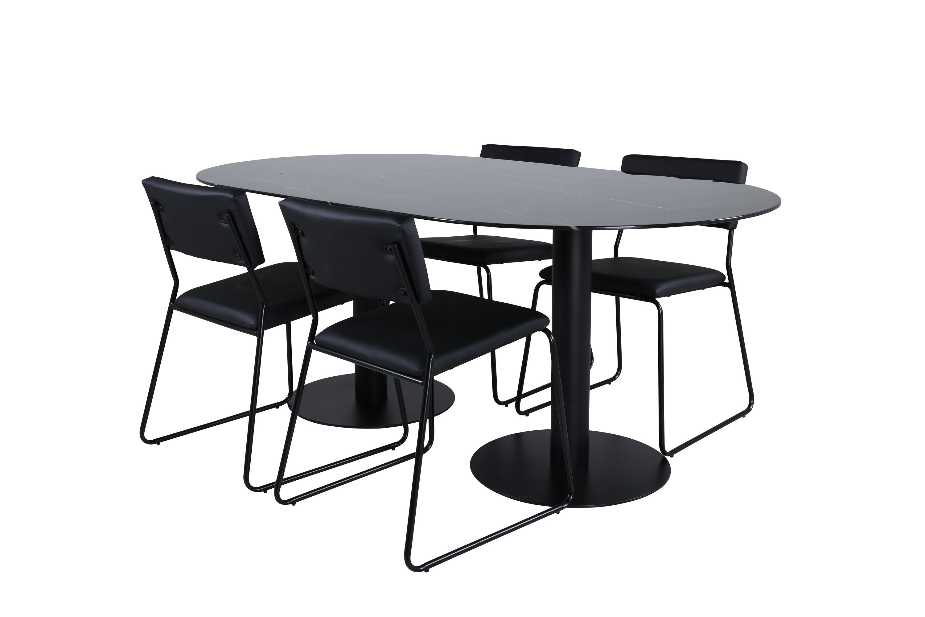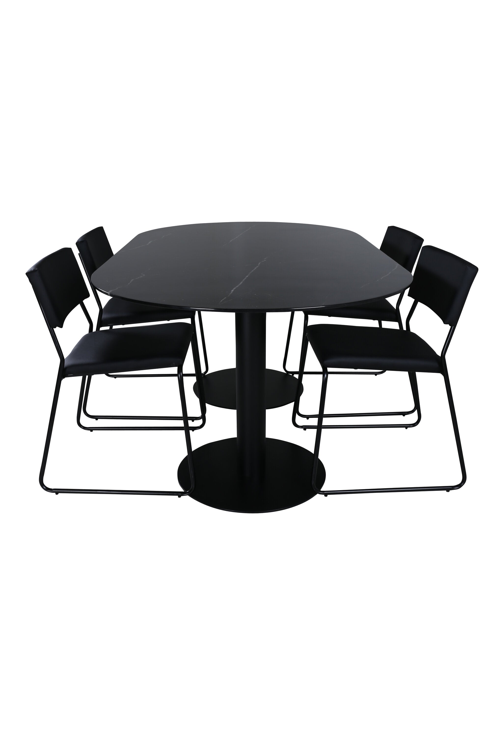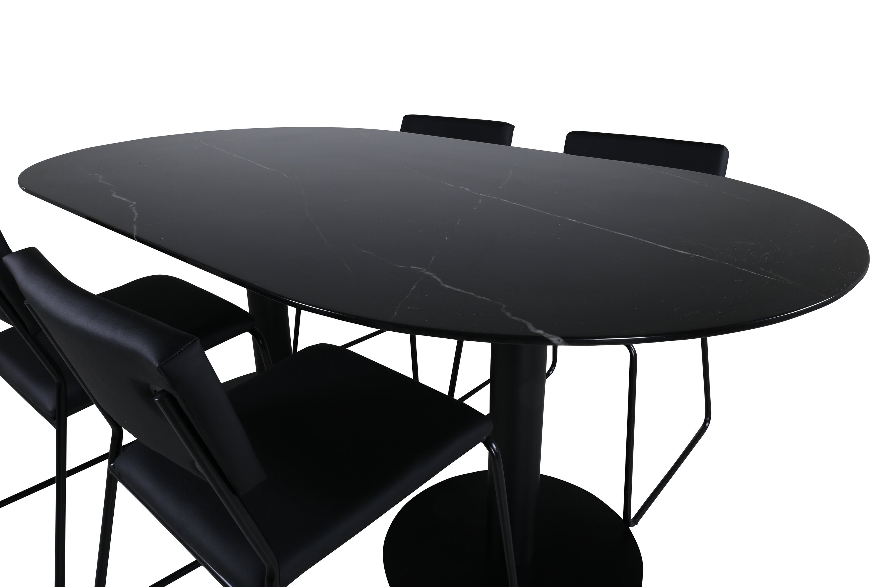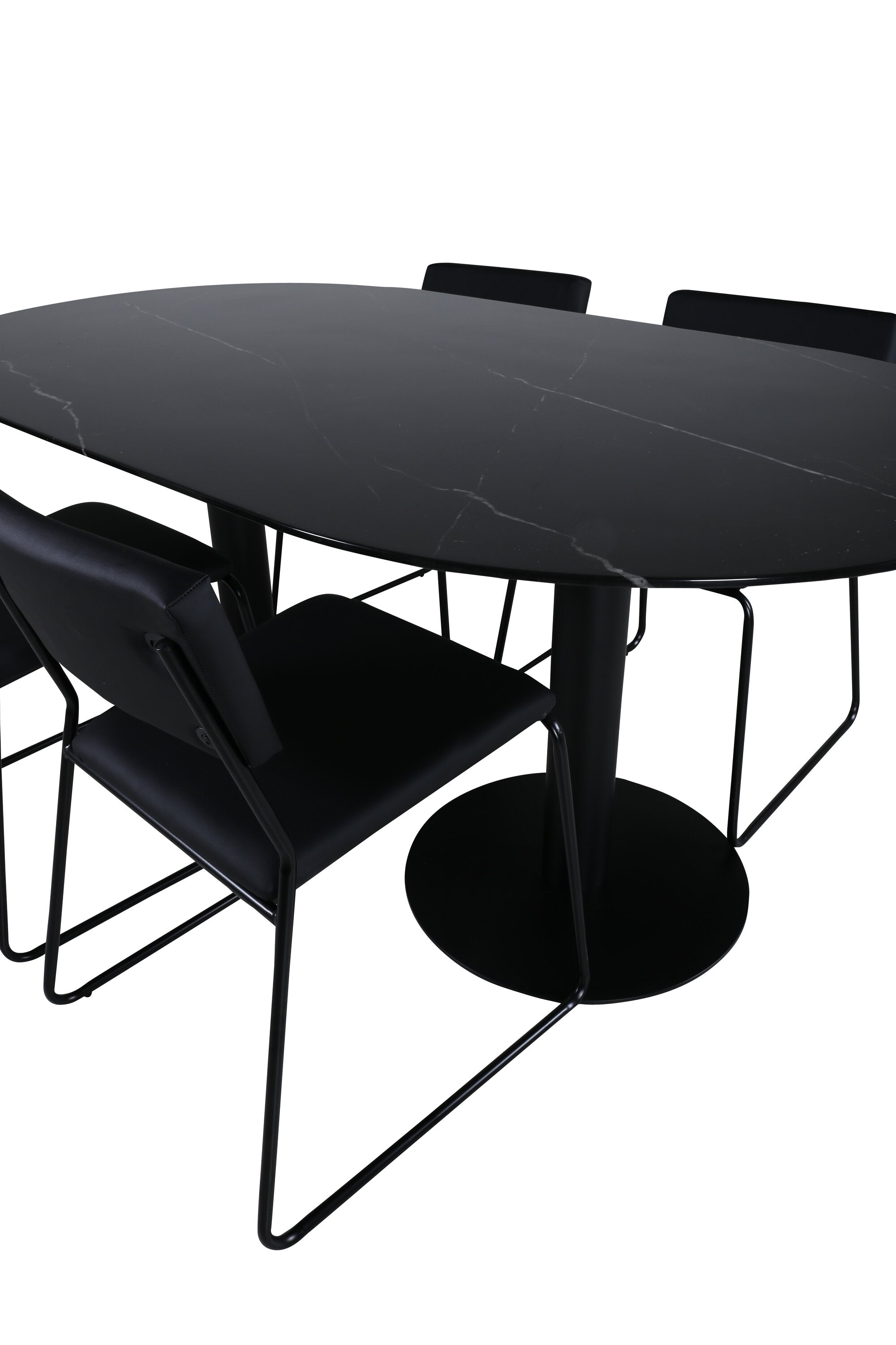 Pillan oválný jídelní stůl , černé černé sklo mramor + židle Kenth , černá černá PU_4