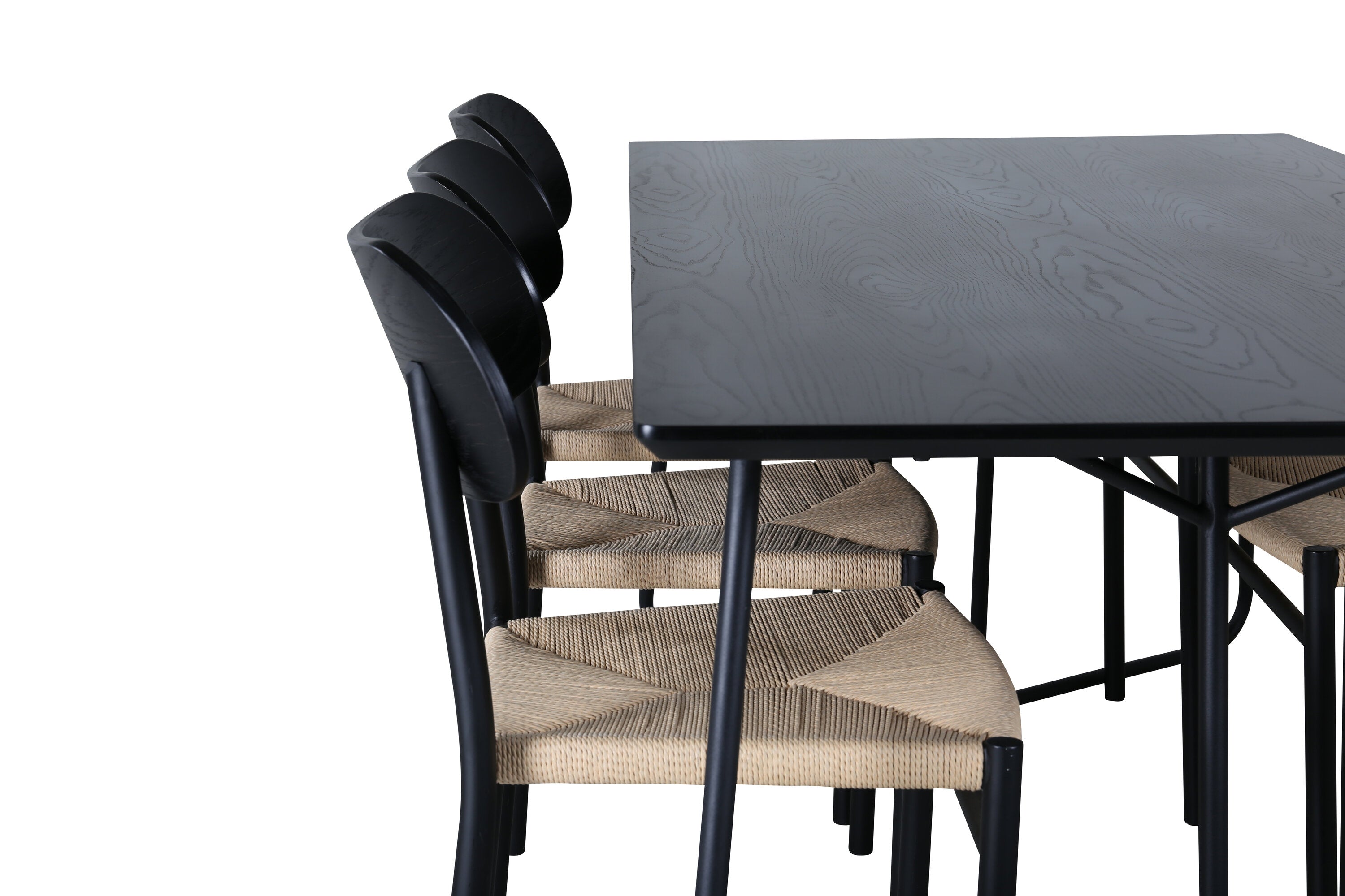 Pippi jídelní stůl - černá / černá dýha + jídelní židle Polly - černá / přírodní _6