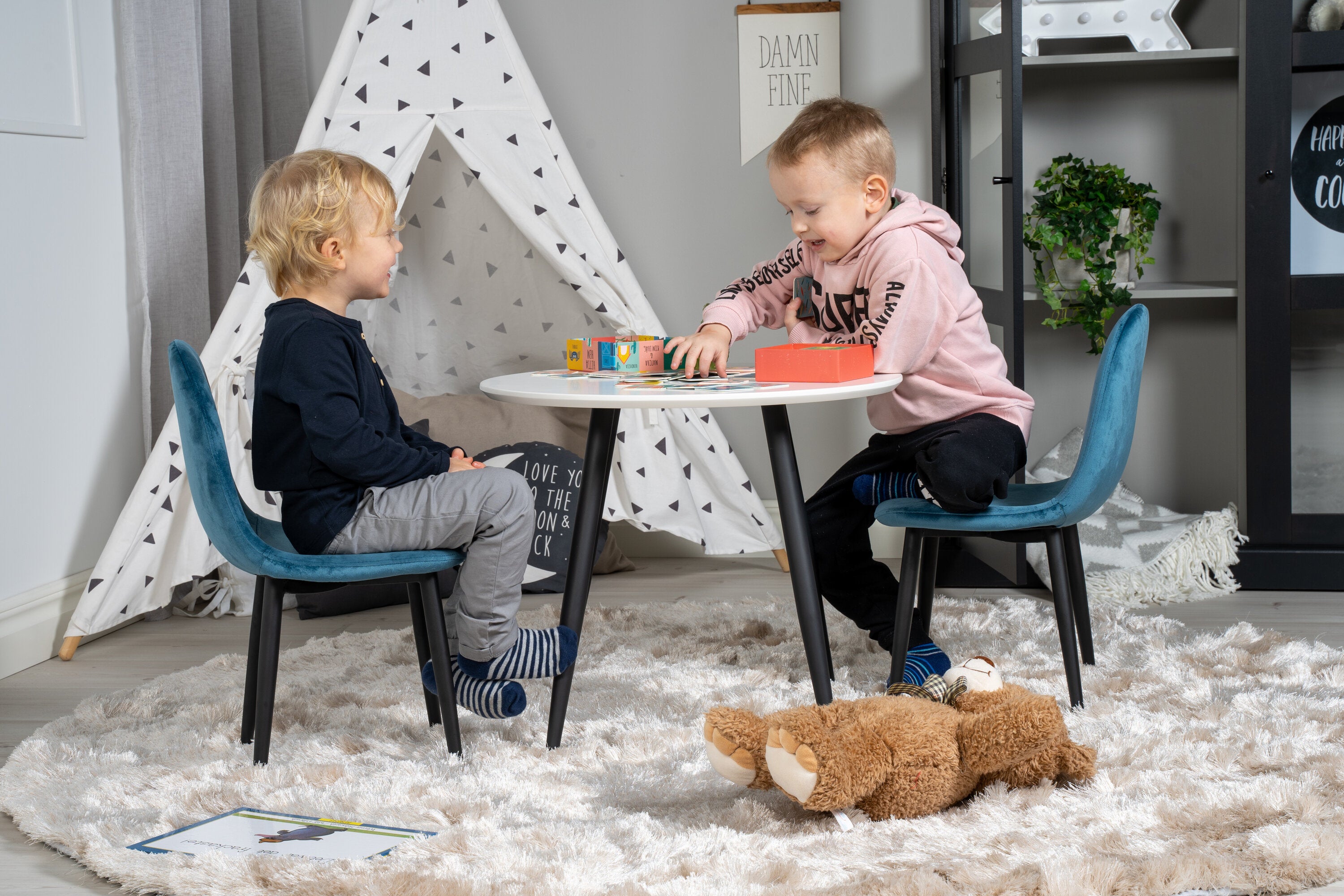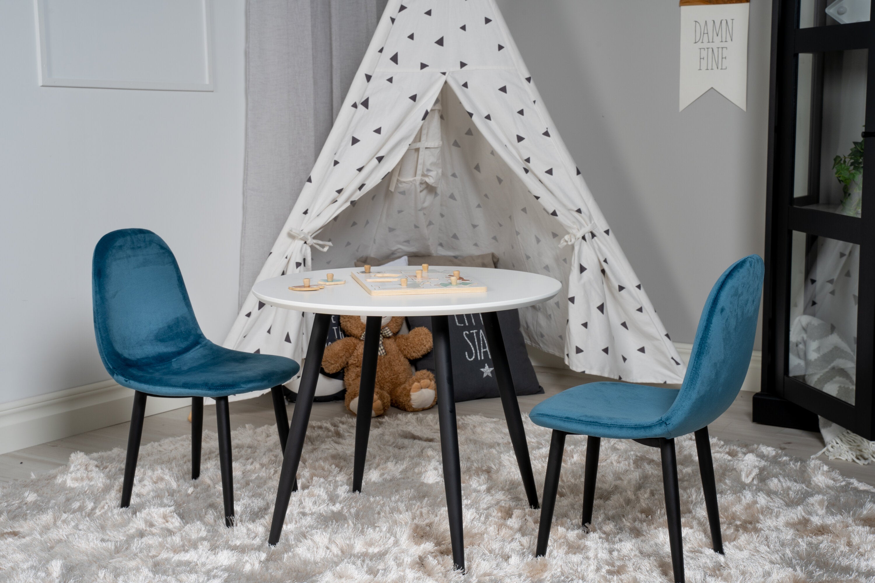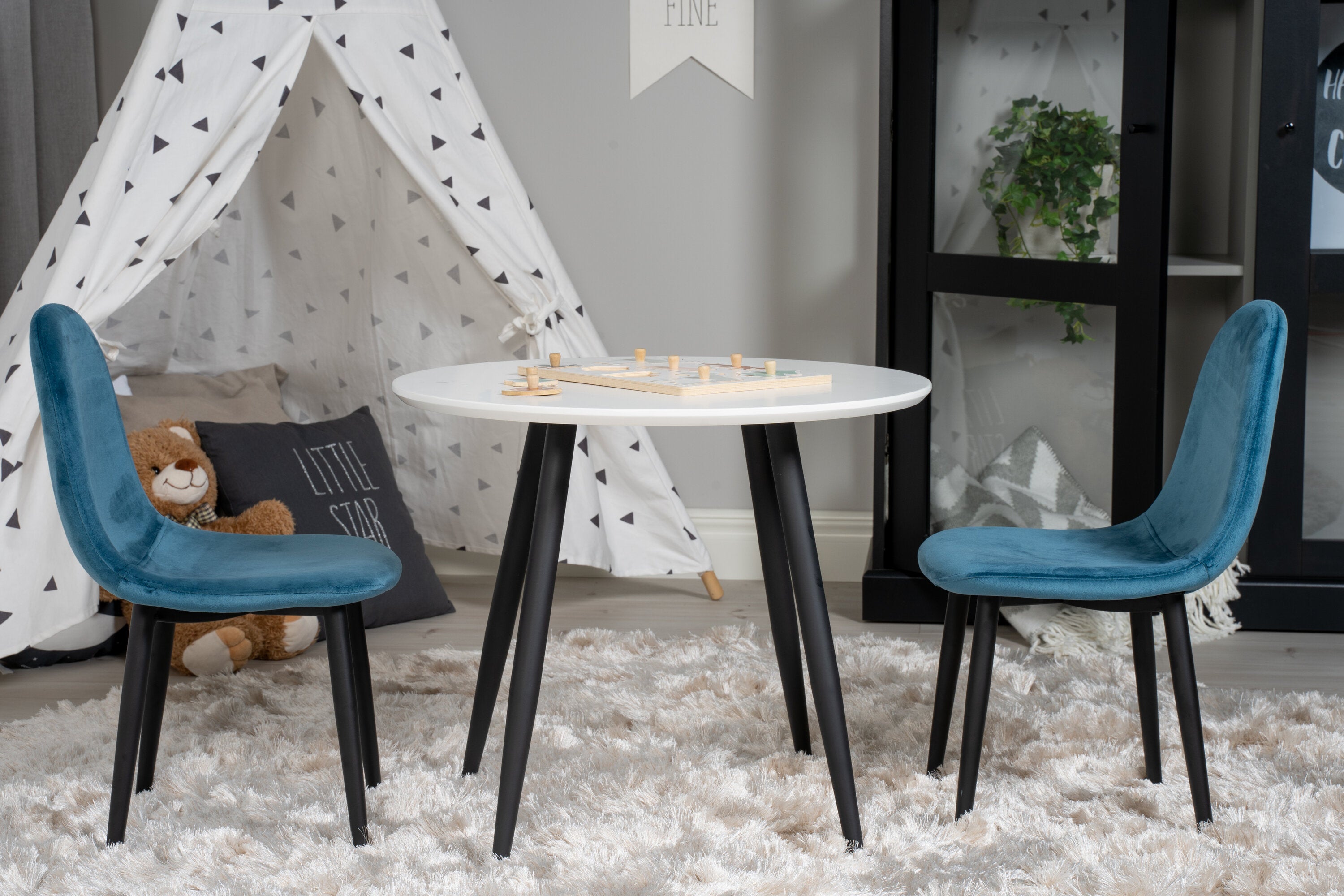 Plaza kulatý jídelní stůl ø60 XXS - bílá / černá + jídelní židle Polar XXS - modrá V