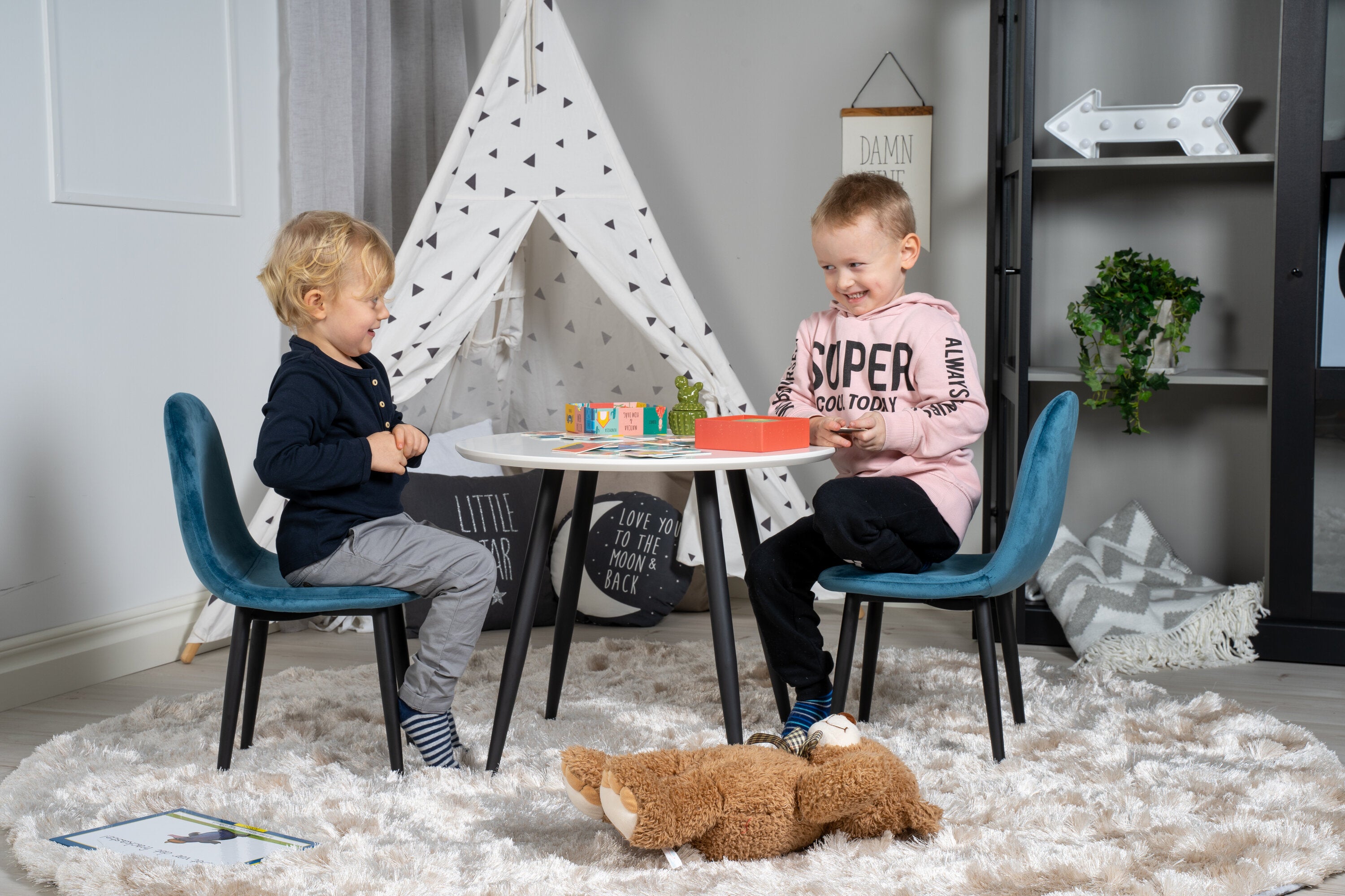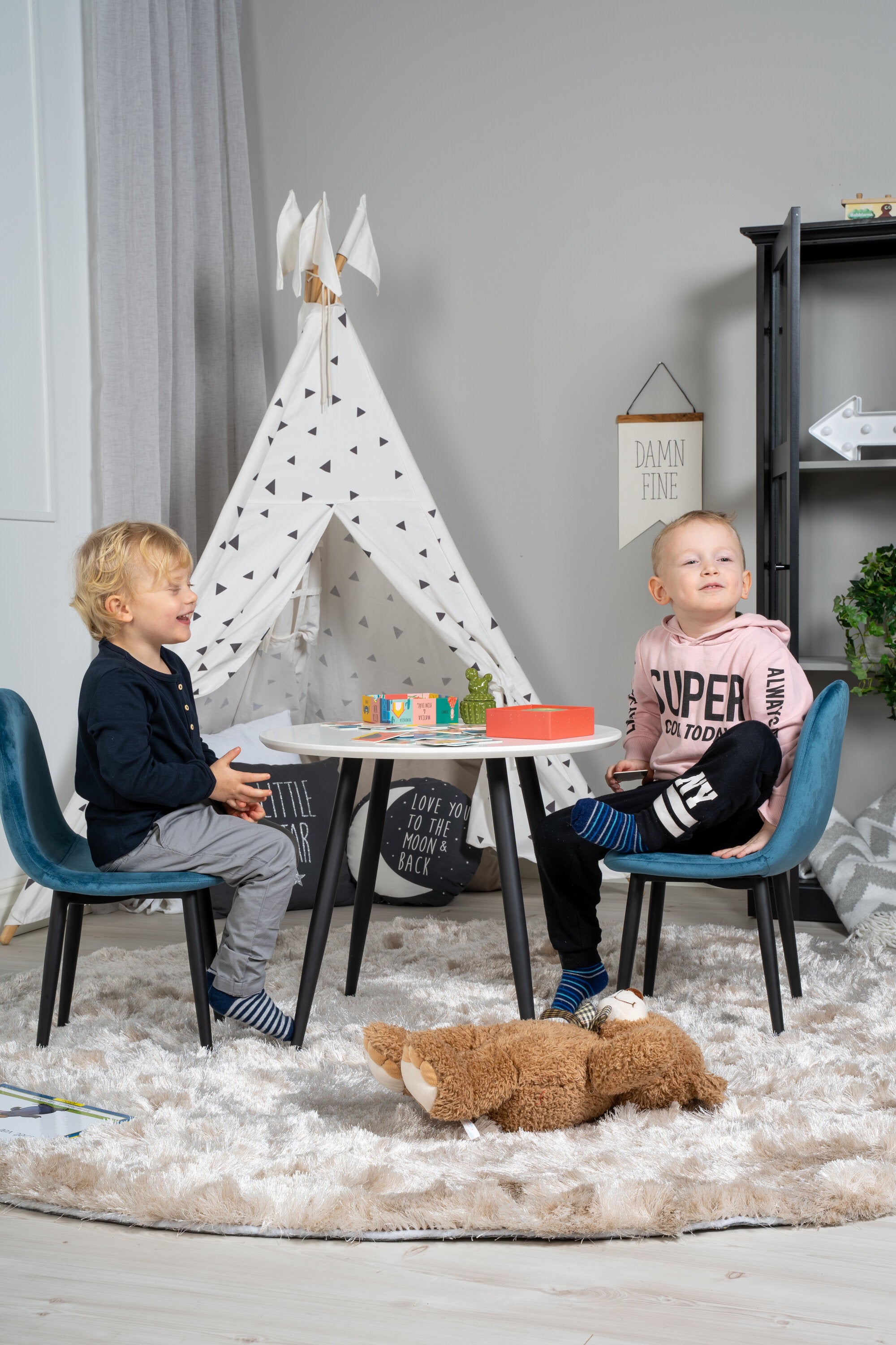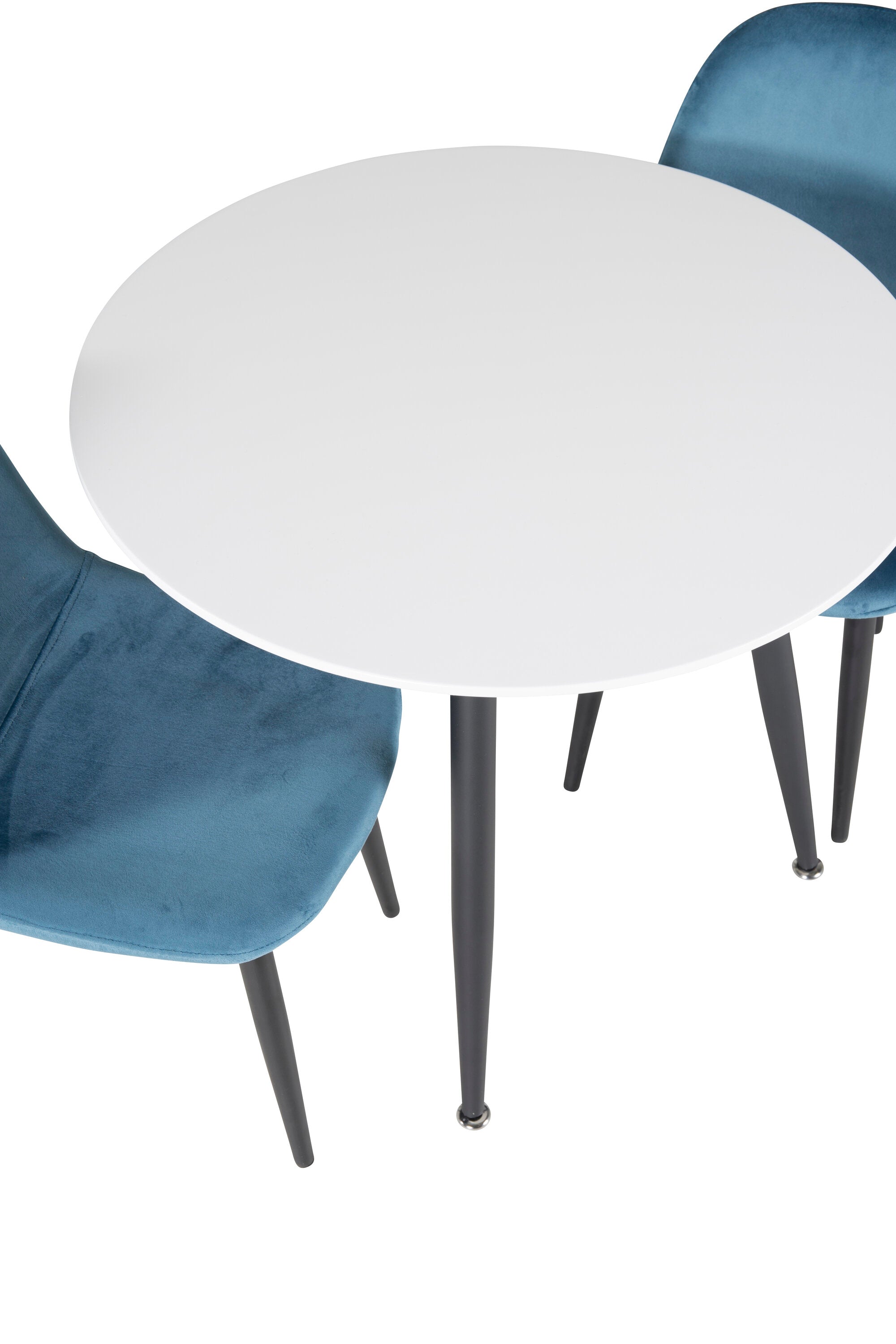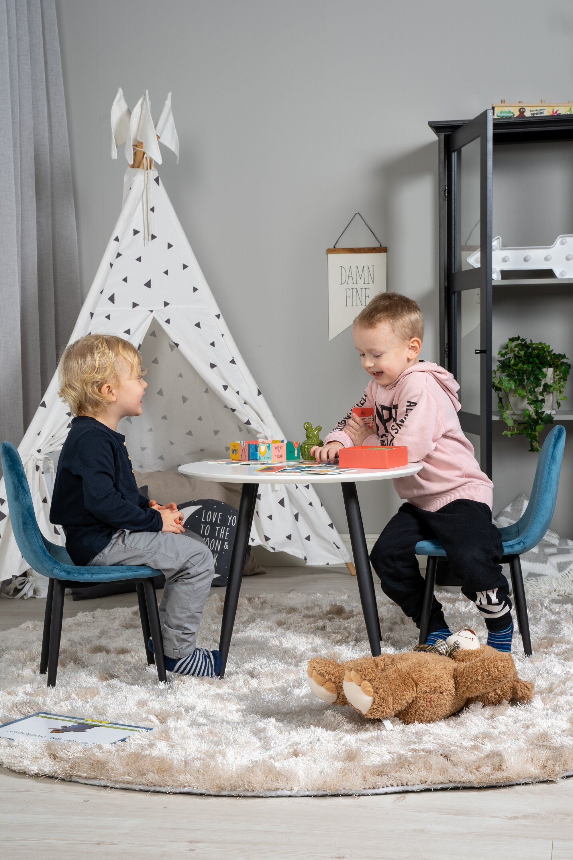 Plaza kulatý jídelní stůl ø60 XXS - bílá / černá + jídelní židle Polar XXS - modrá V