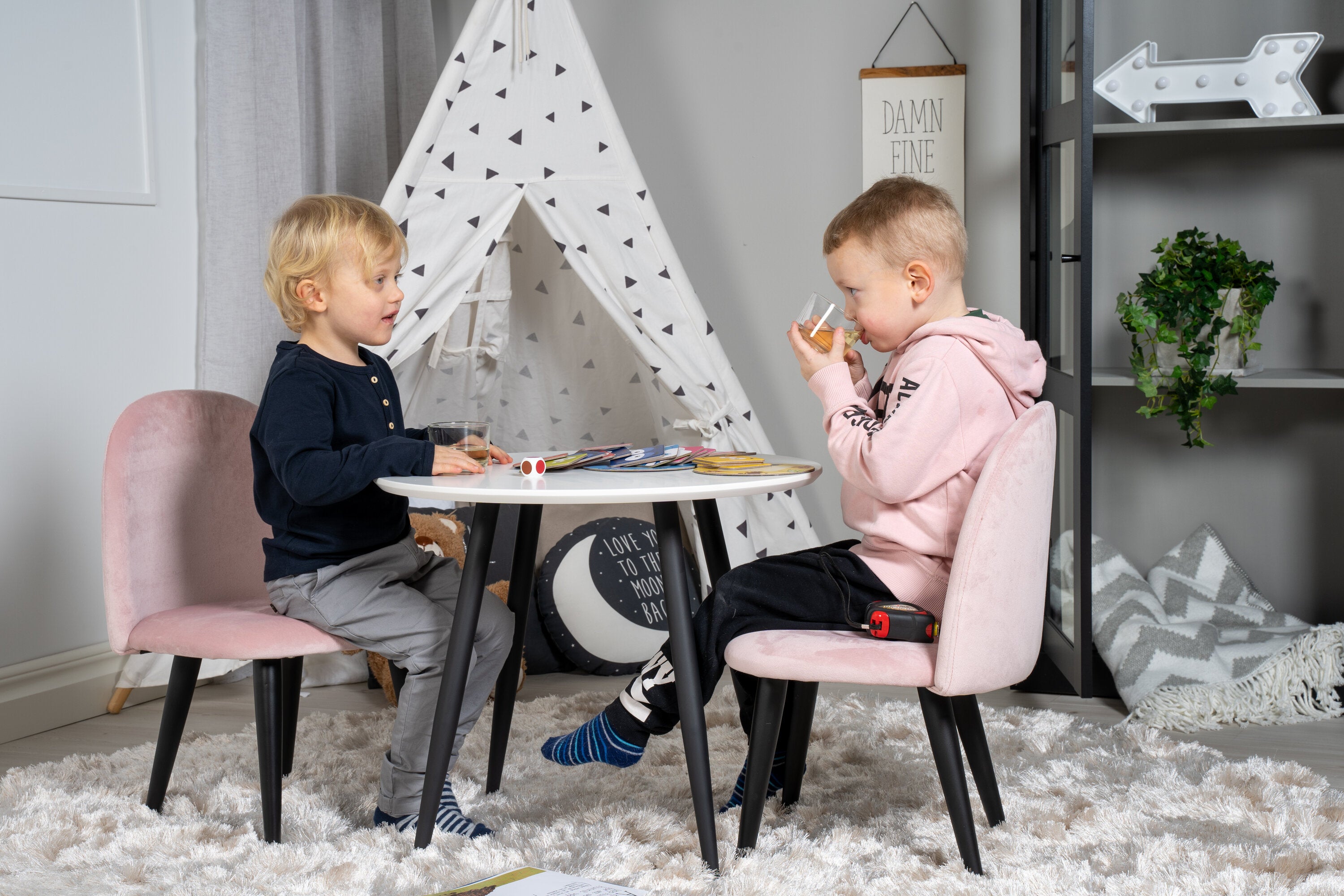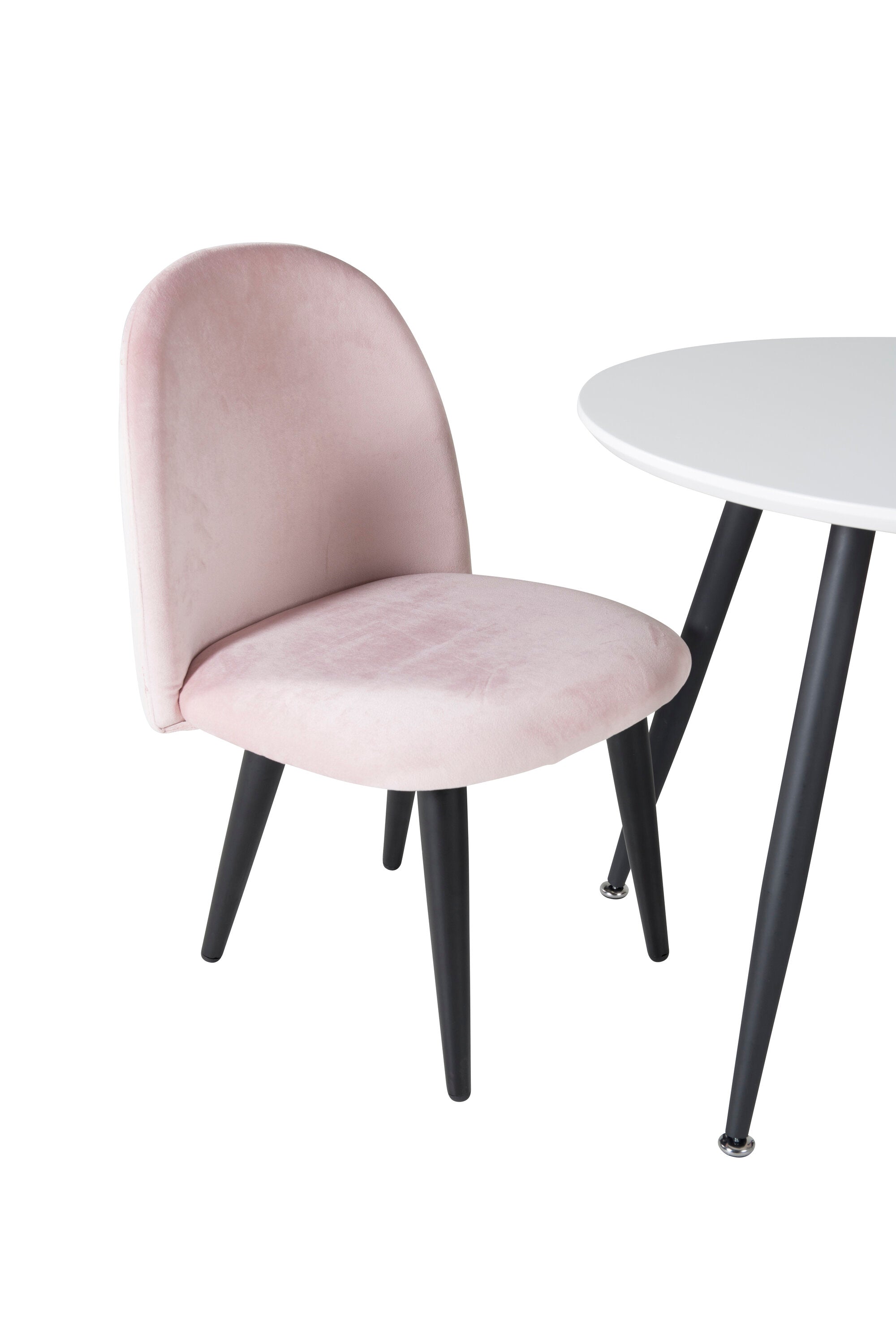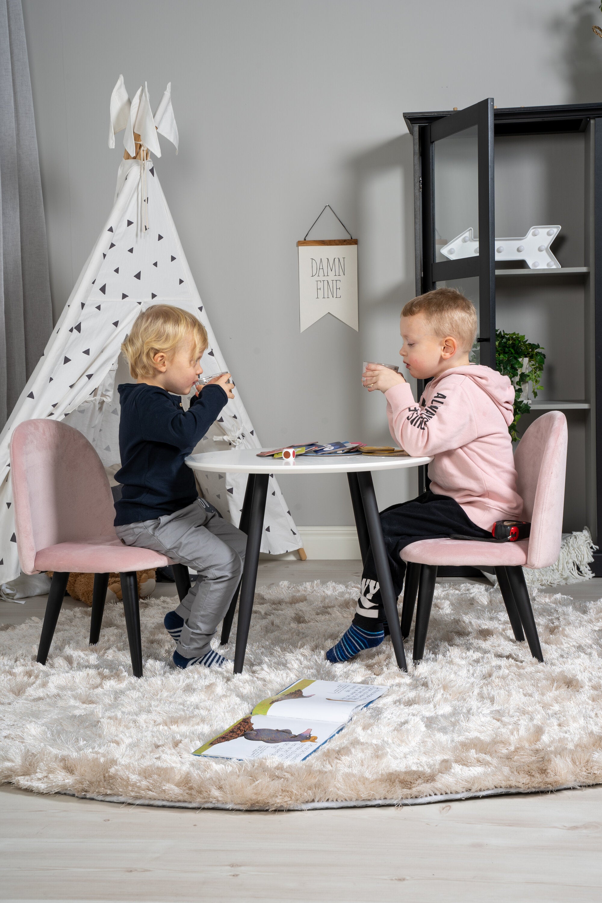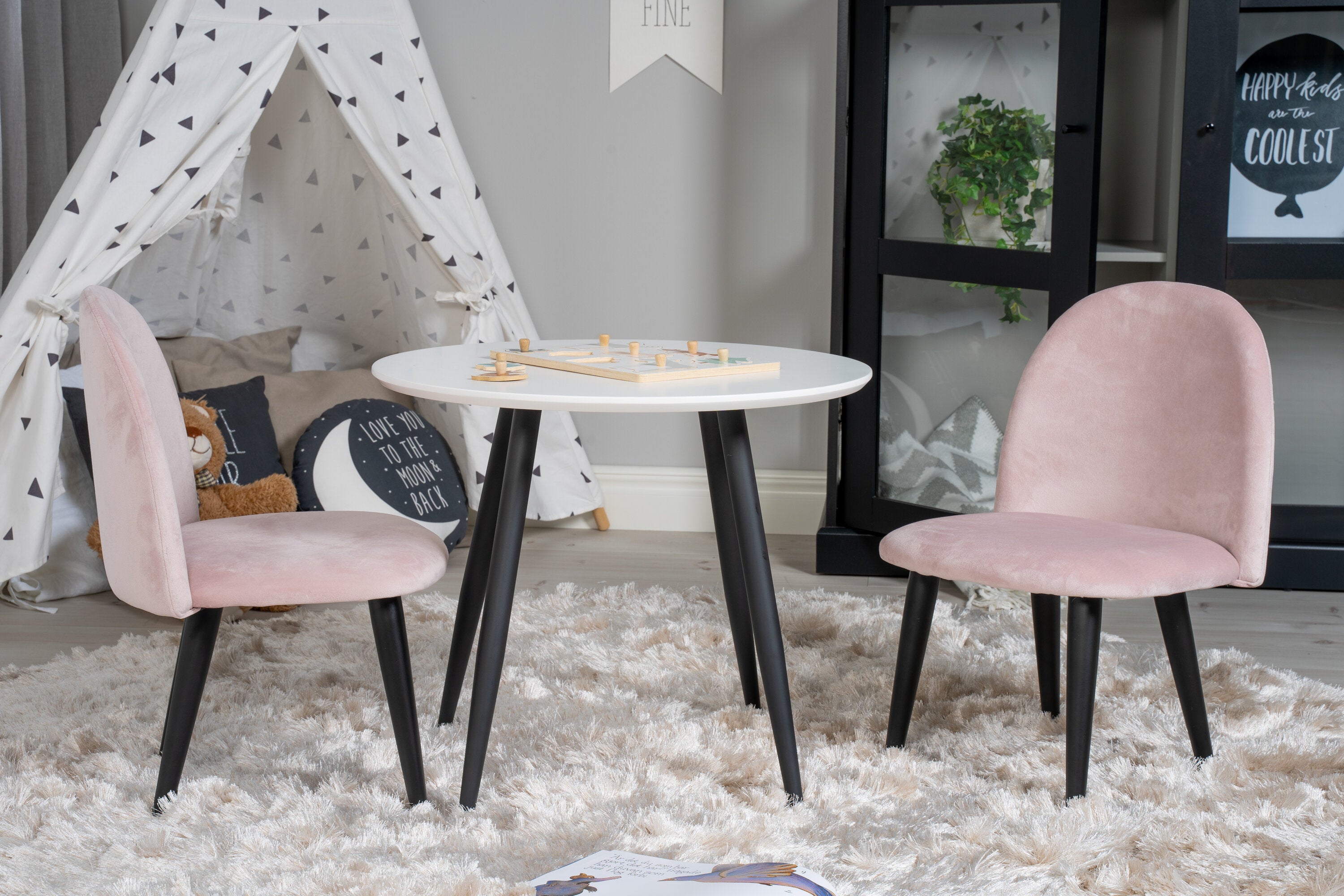 Plaza kulatý jídelní stůl ø60 XXS - bílá / černá + sametová jídelní židle XXS - růžová V