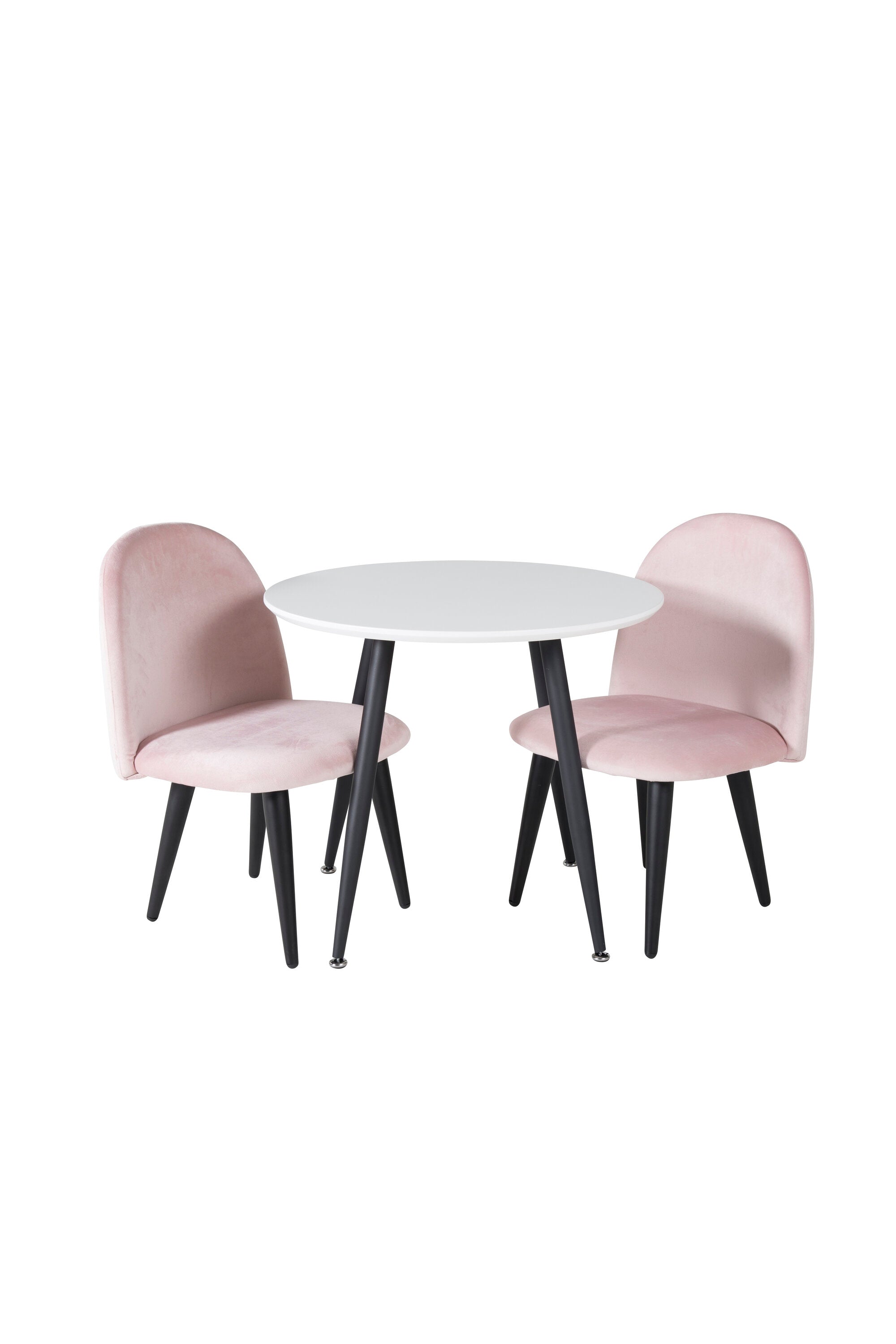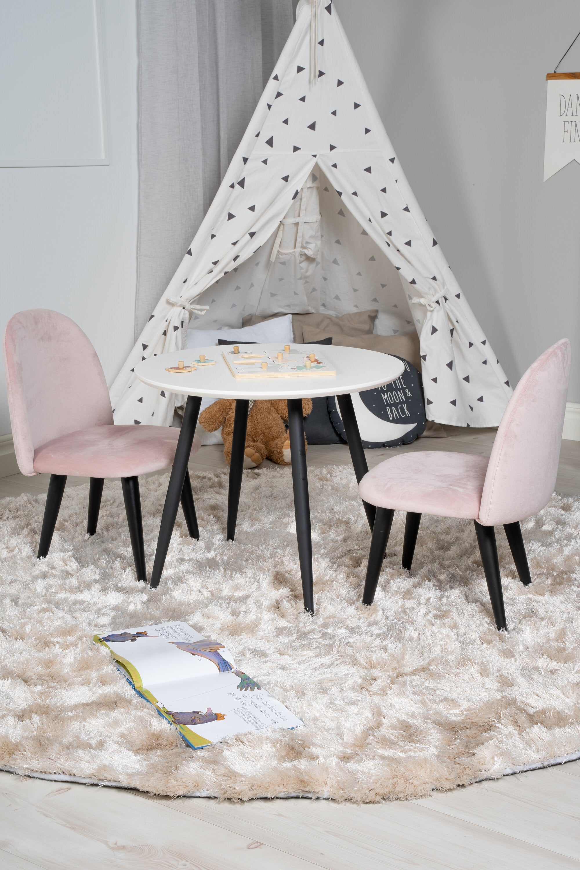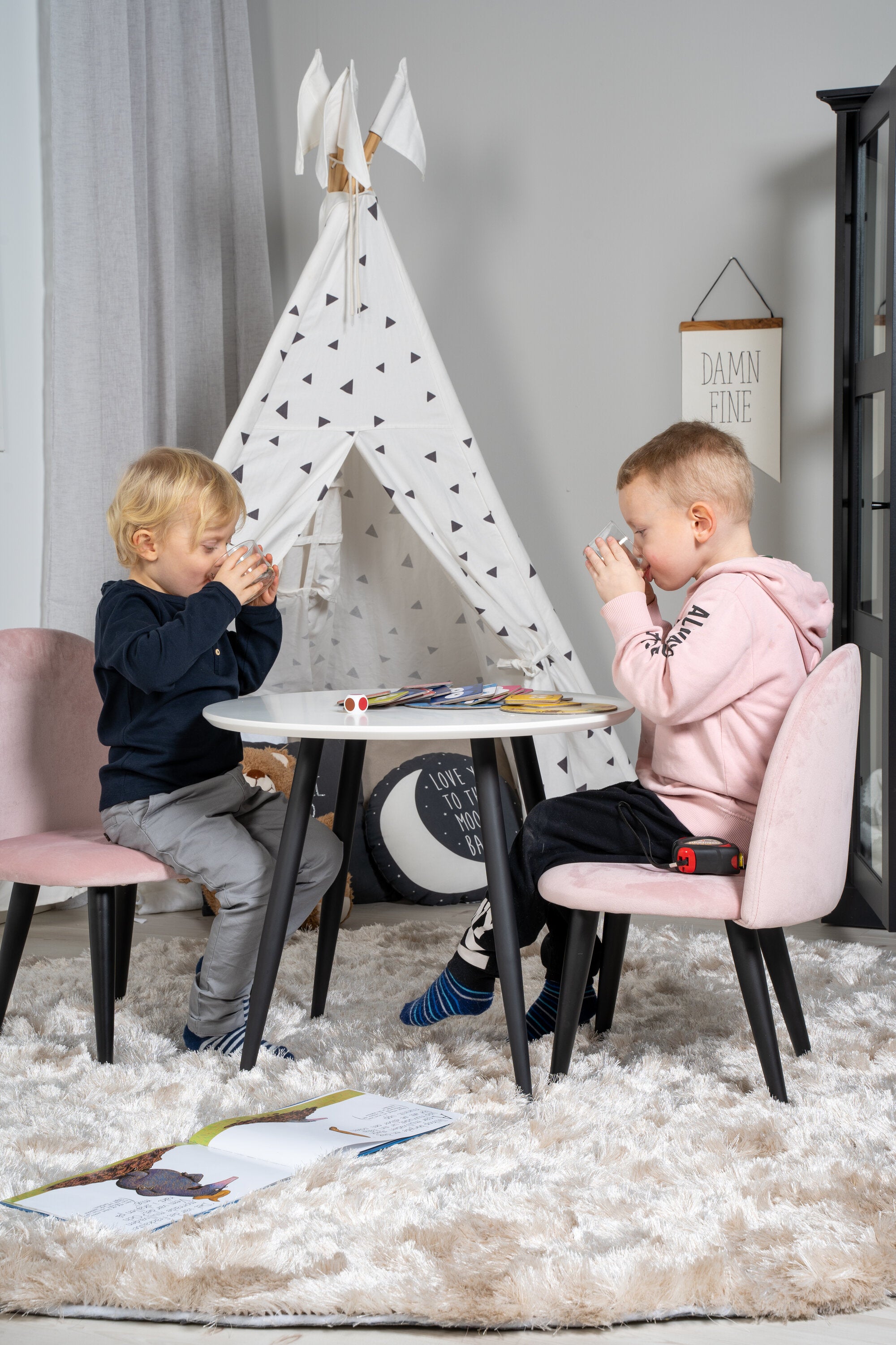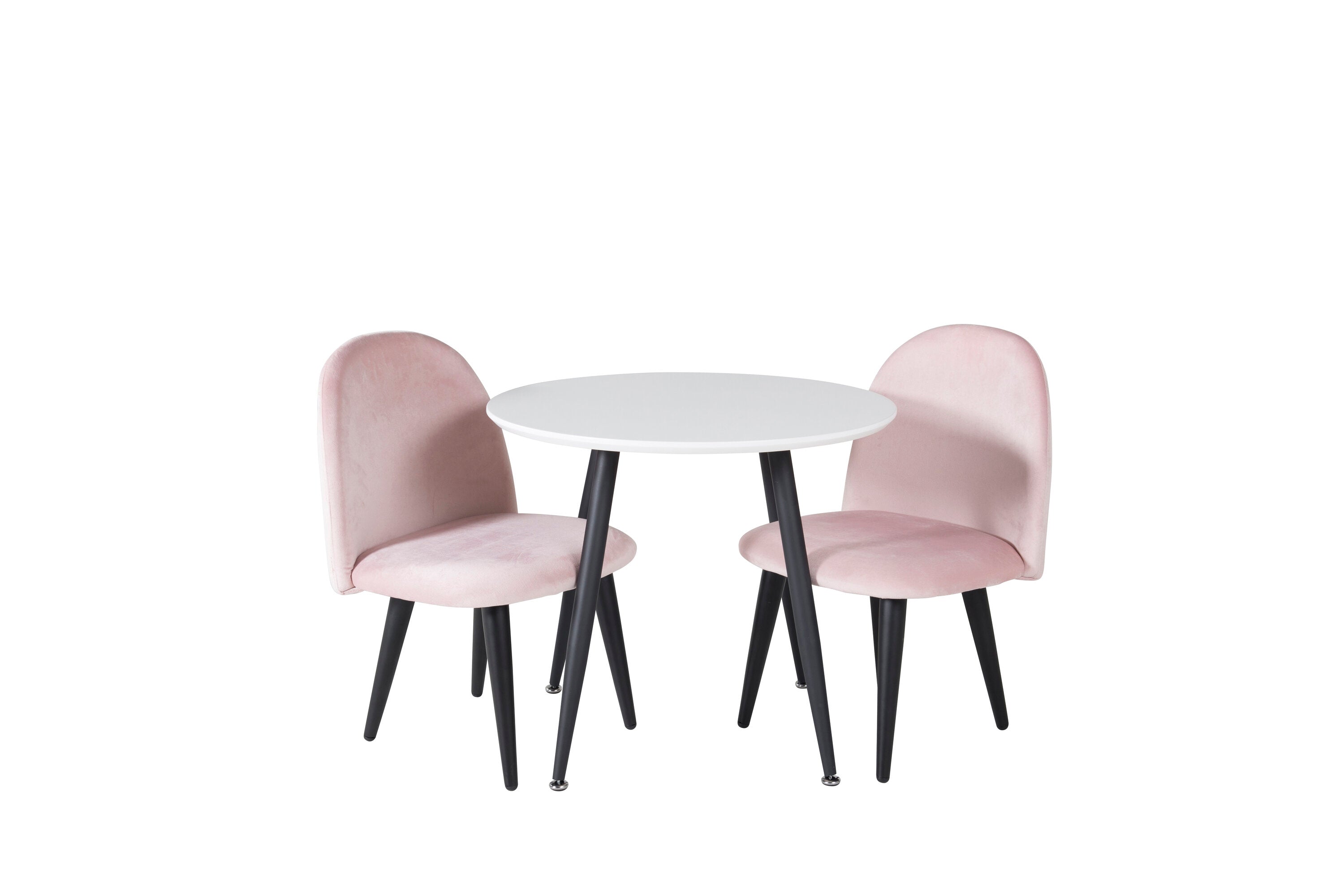 Plaza kulatý jídelní stůl ø60 XXS - bílá / černá + sametová jídelní židle XXS - růžová V